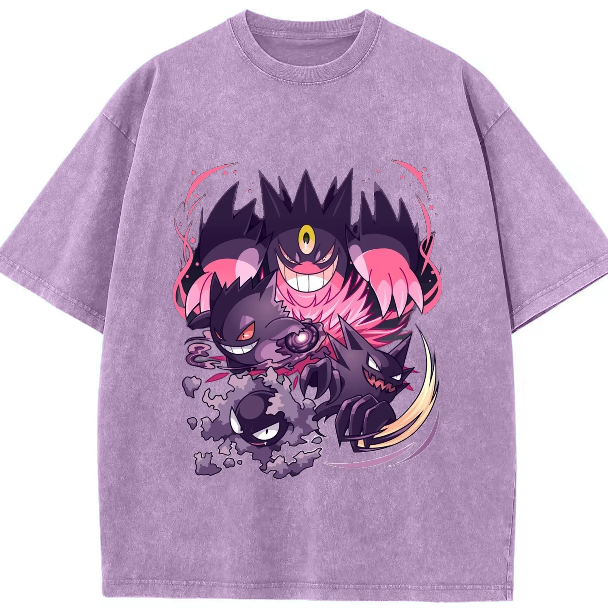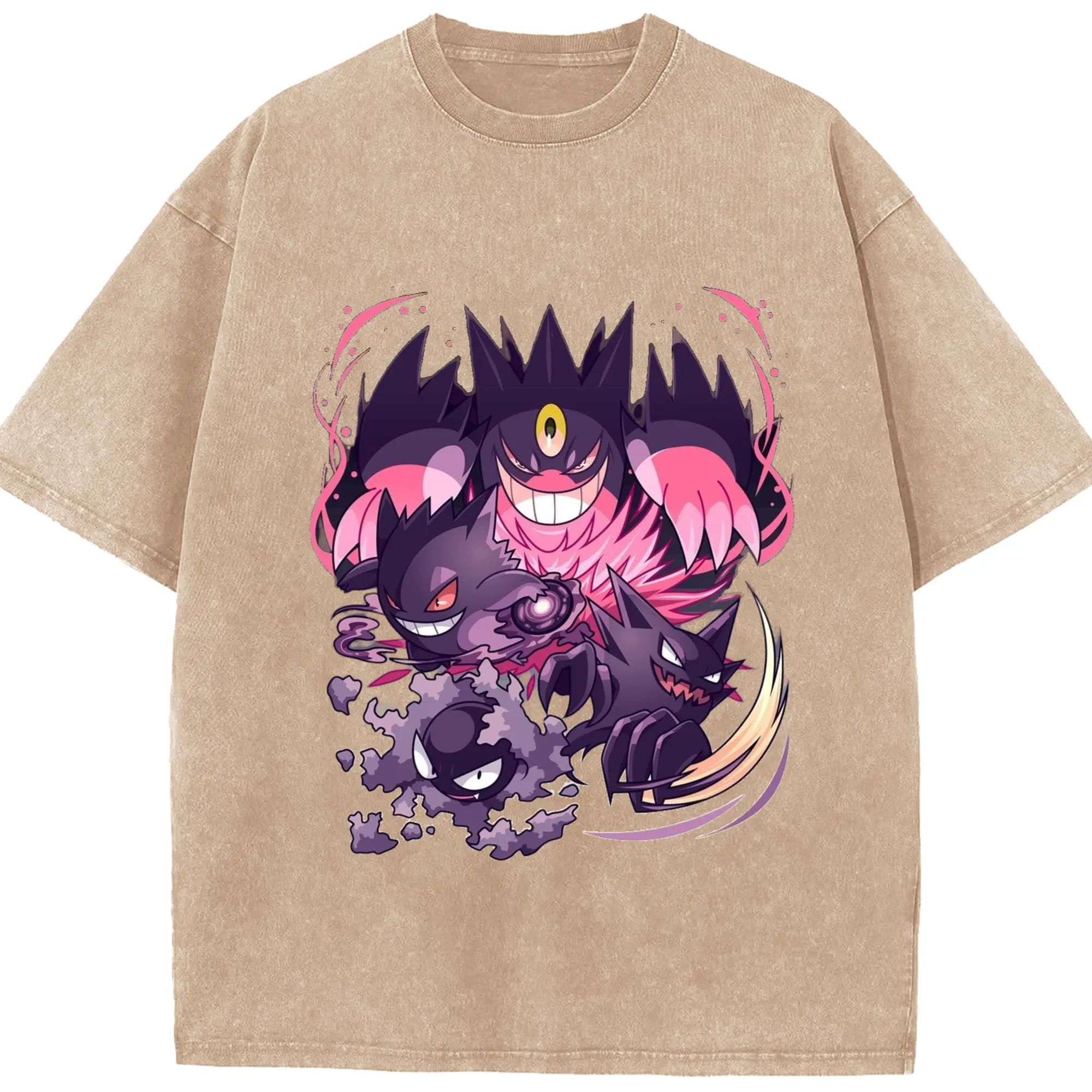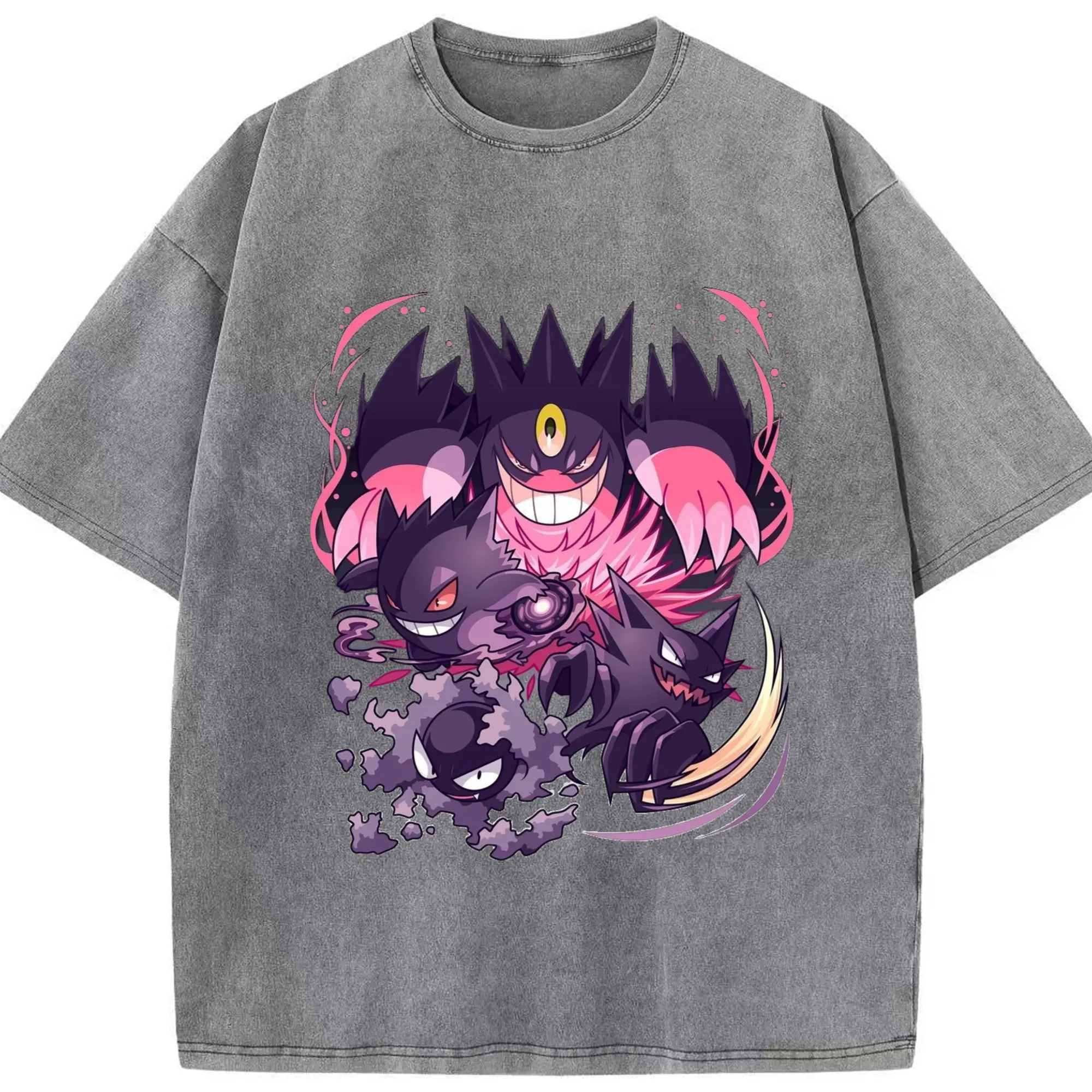 Pokemen gengar college tee - Washed Vintage Look 230g Cotton Oversized T-Shirt With Front Heat Transfer Print – Soft, Lightweight, Stylish Fit – Comfortable Casual Wear For Sports & Everyday Use