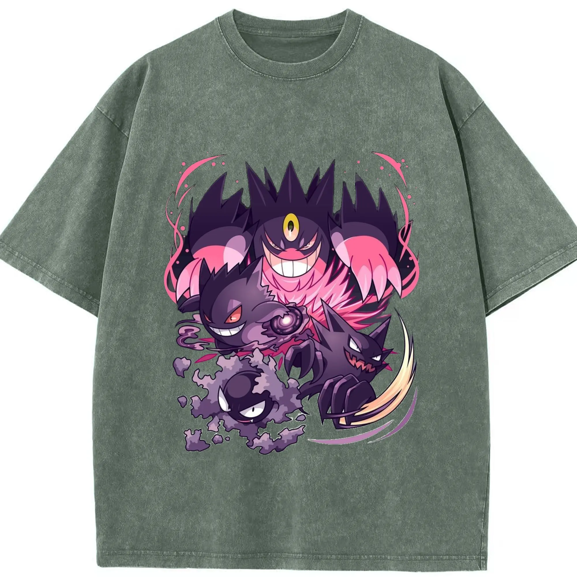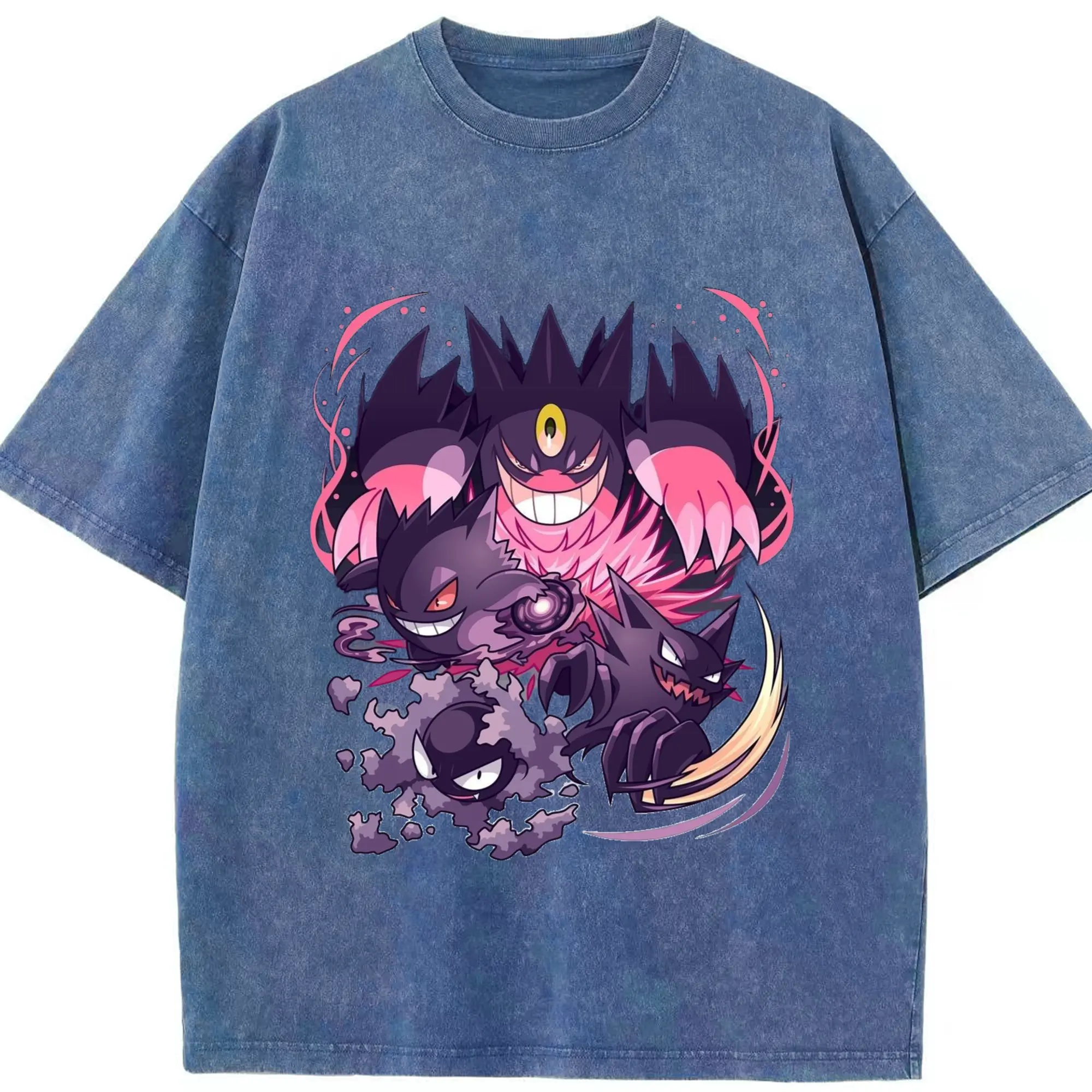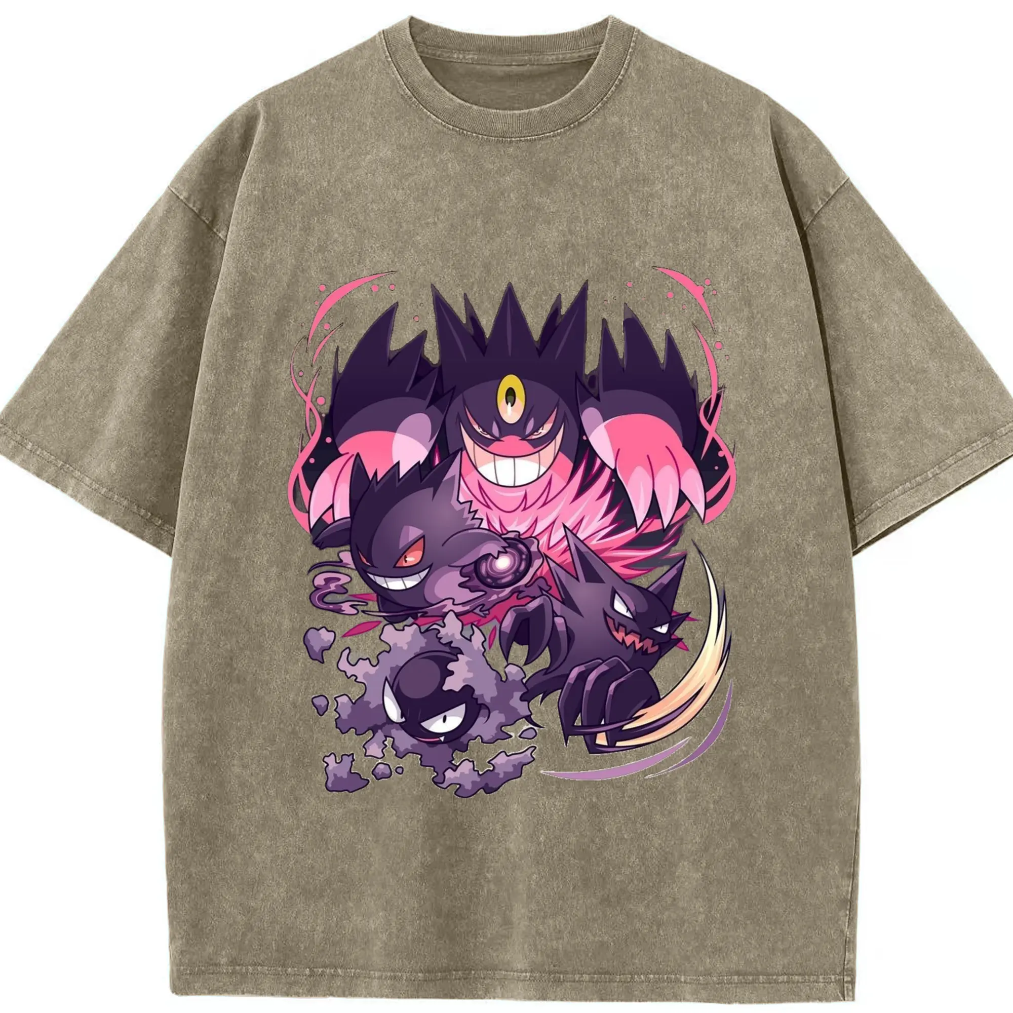 Pokemen gengar college tee - Washed Vintage Look 230g Cotton Oversized T-Shirt With Front Heat Transfer Print – Soft, Lightweight, Stylish Fit – Comfortable Casual Wear For Sports & Everyday Use