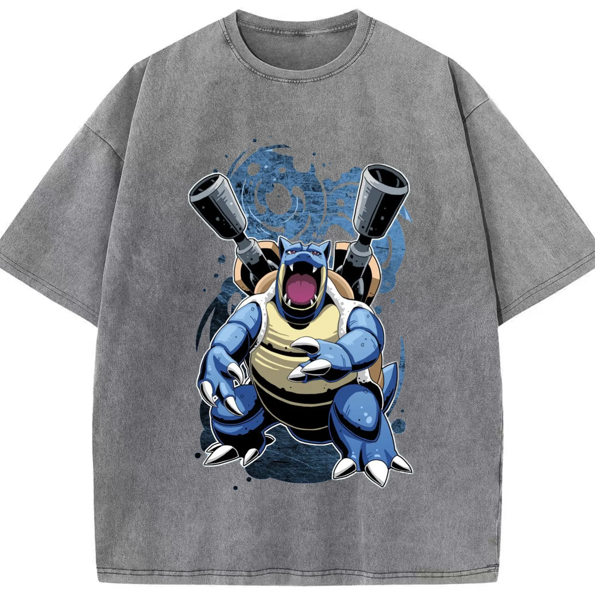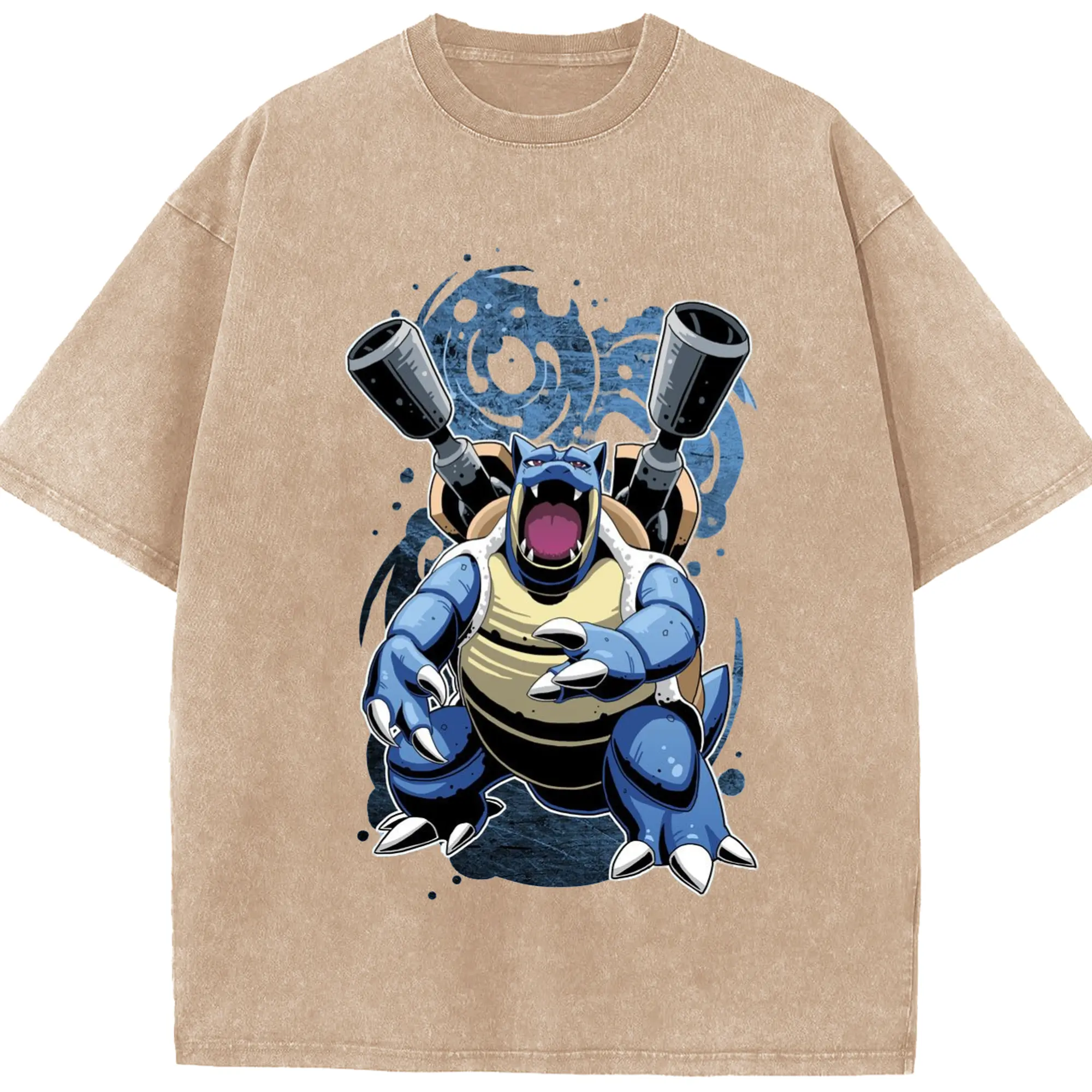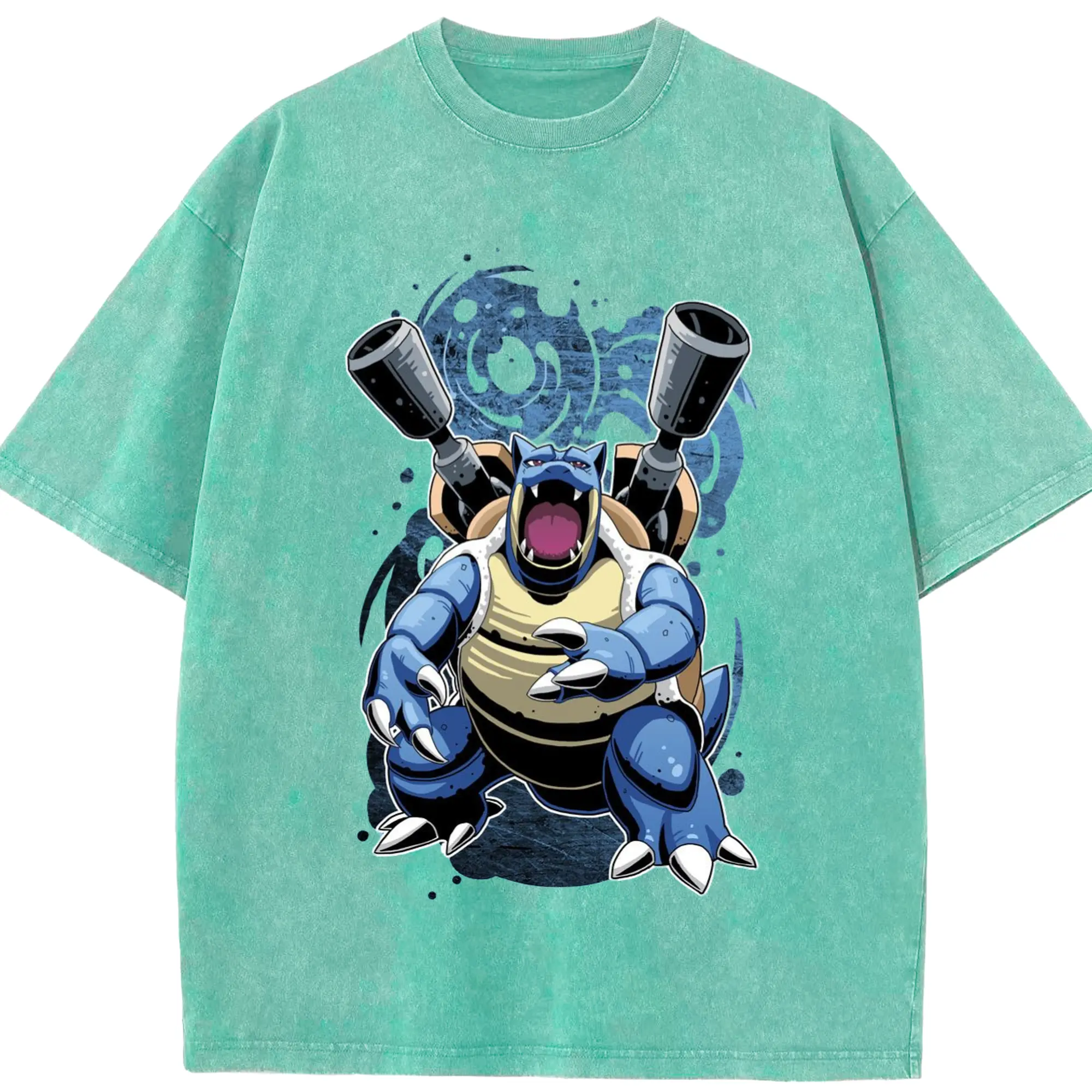 Pokemon blastoise graphic tee - Washed Vintage Look 230g Cotton Oversized T-Shirt With Front Heat Transfer Print – Soft, Lightweight, Stylish Fit – Comfortable Casual Wear For Sports & Everyday Use