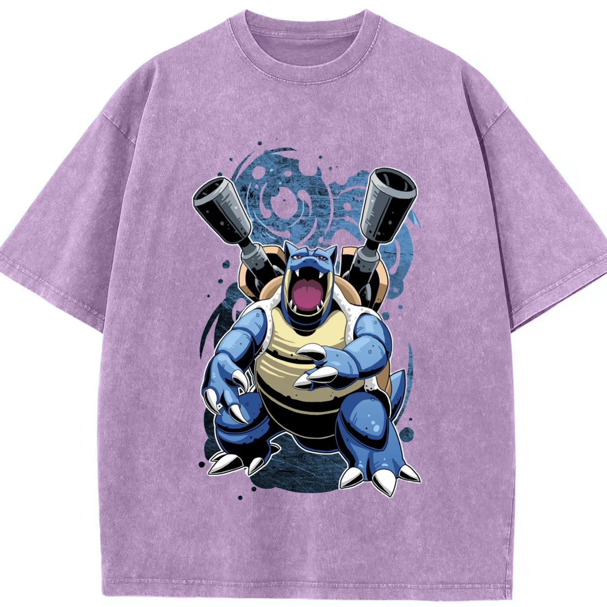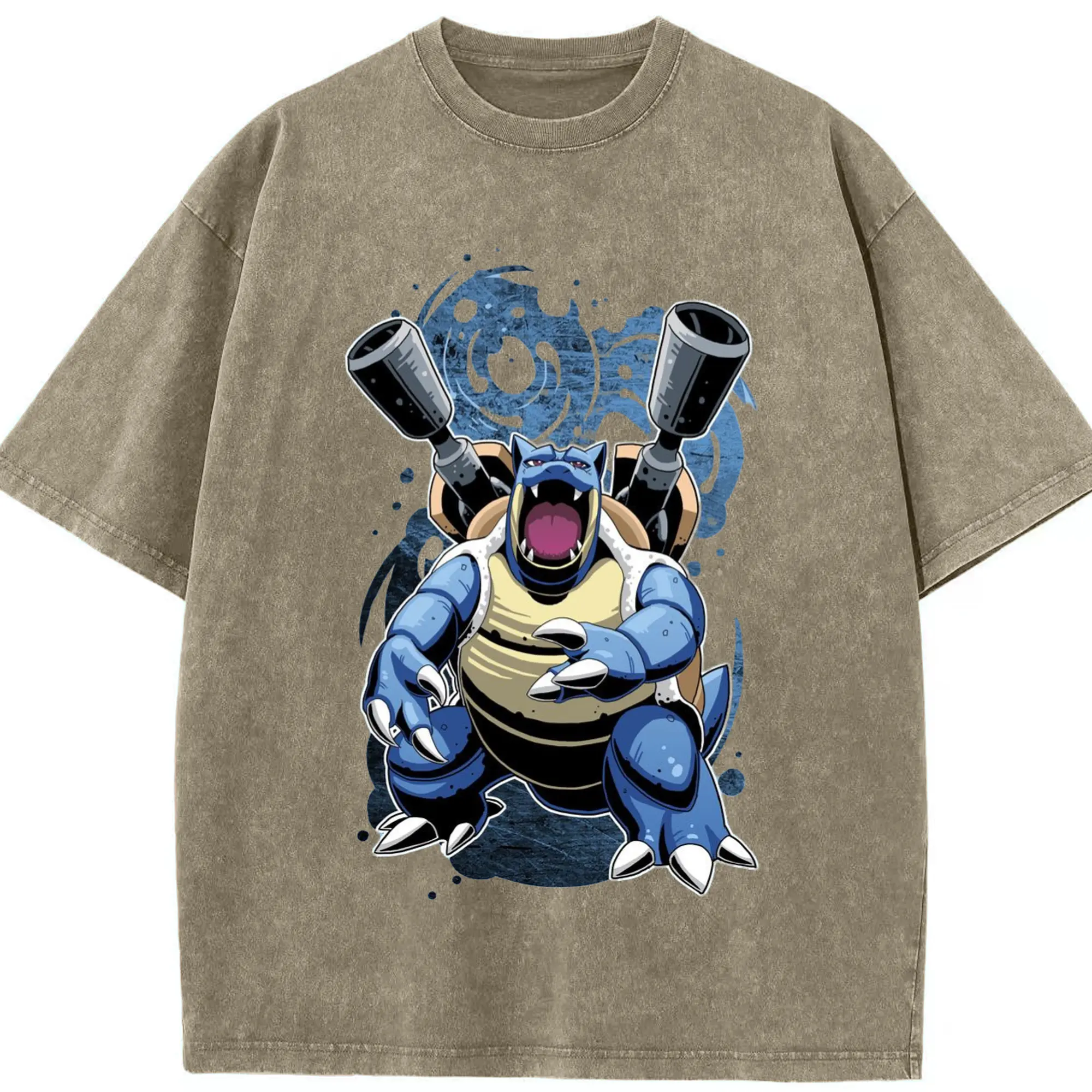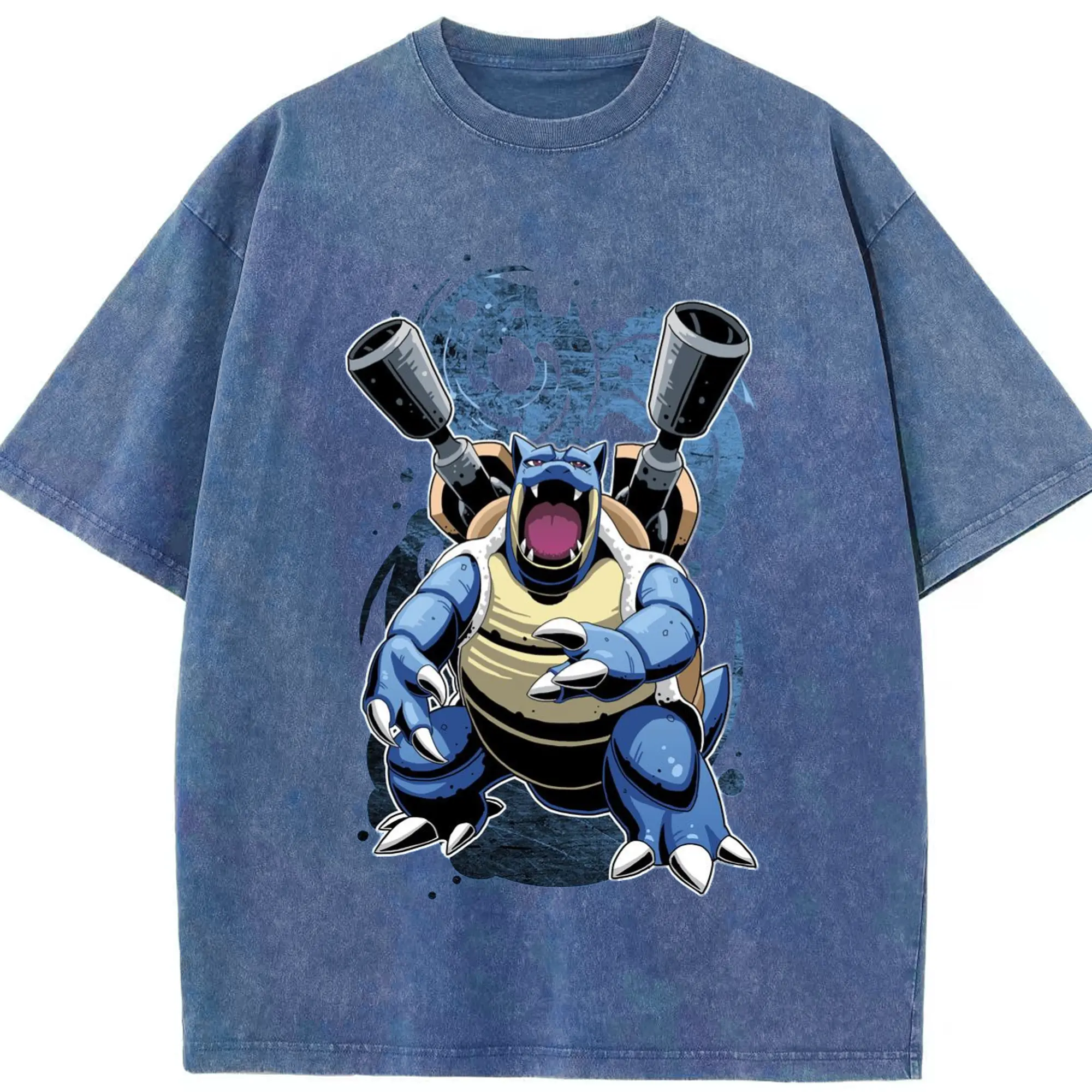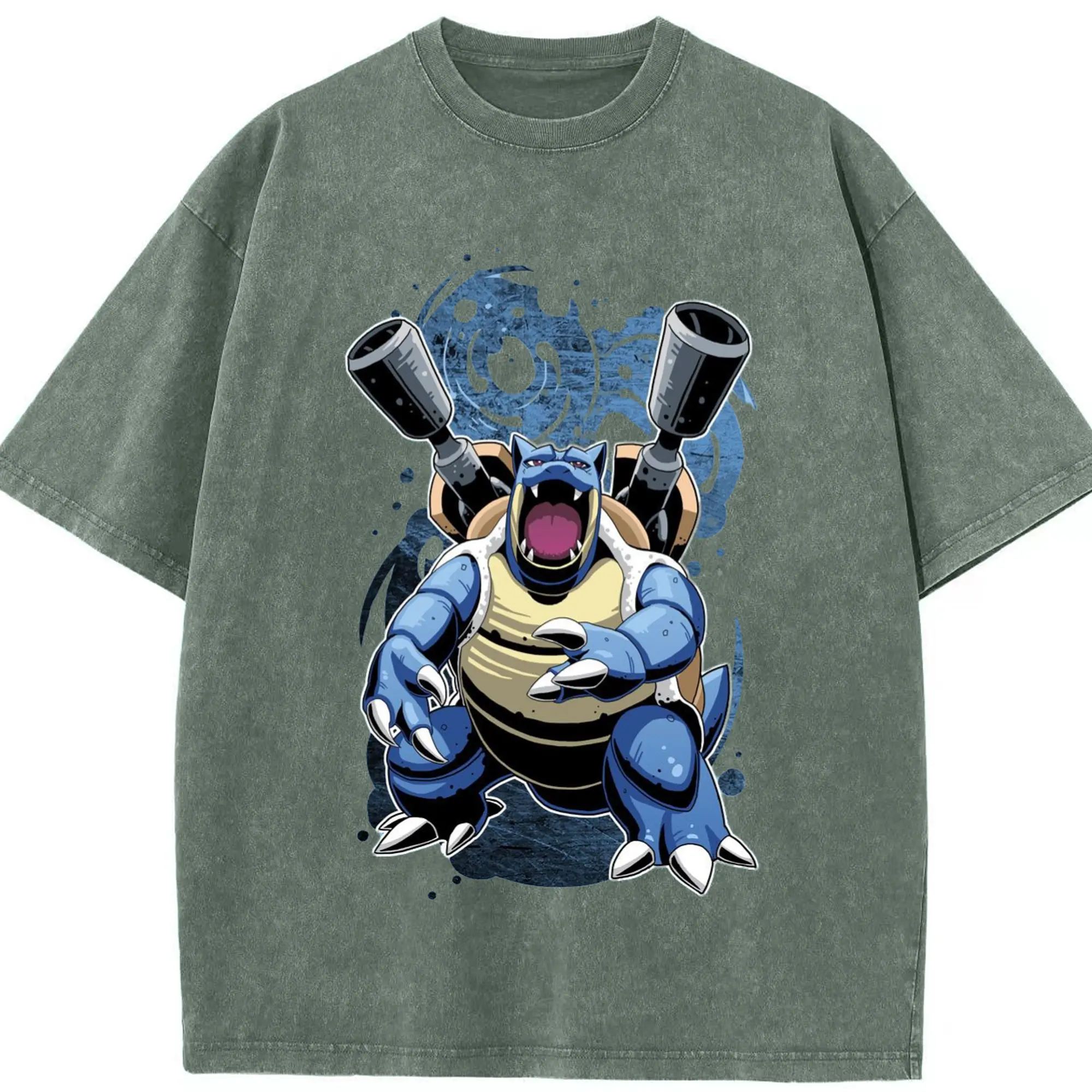 Pokemon blastoise graphic tee - Washed Vintage Look 230g Cotton Oversized T-Shirt With Front Heat Transfer Print – Soft, Lightweight, Stylish Fit – Comfortable Casual Wear For Sports & Everyday Use