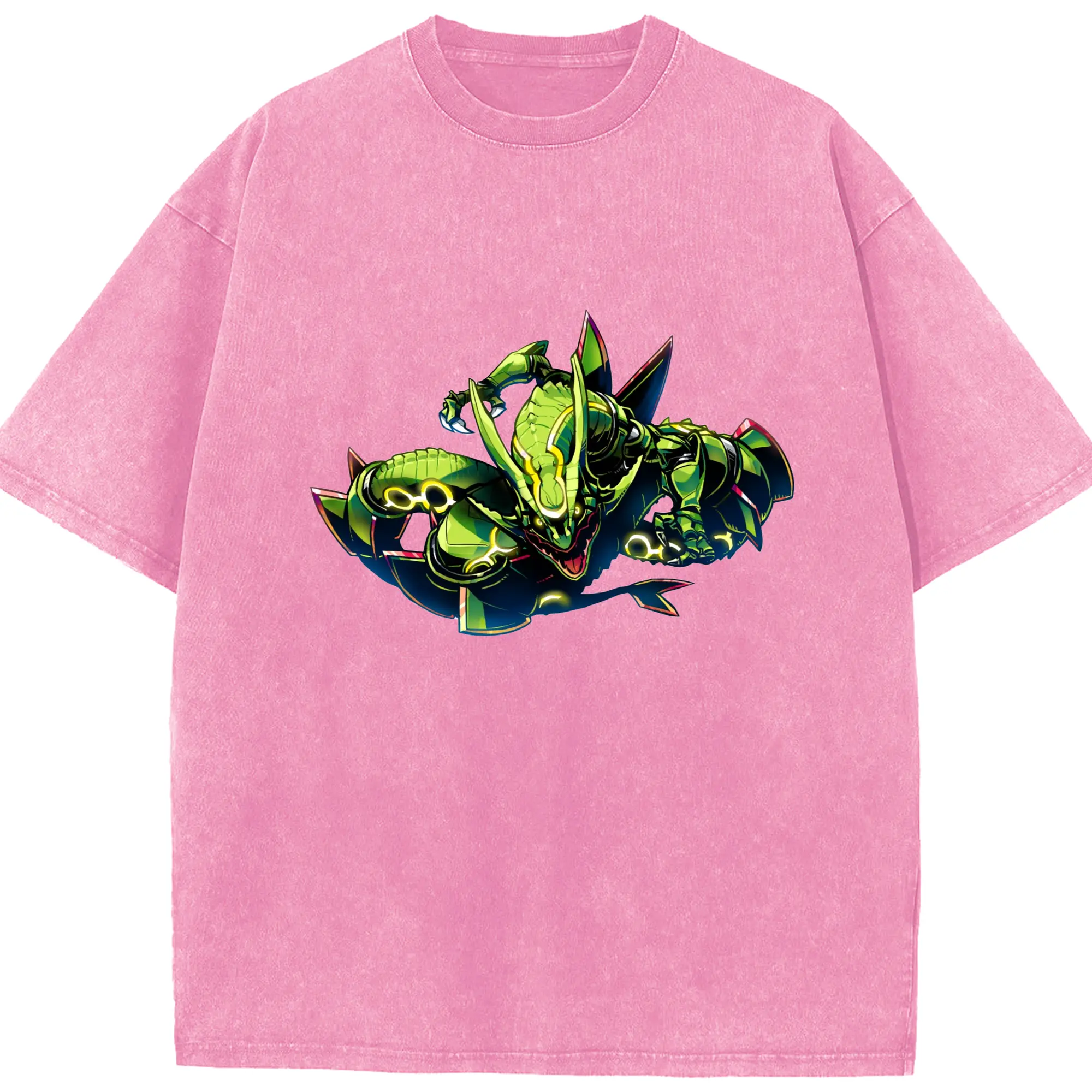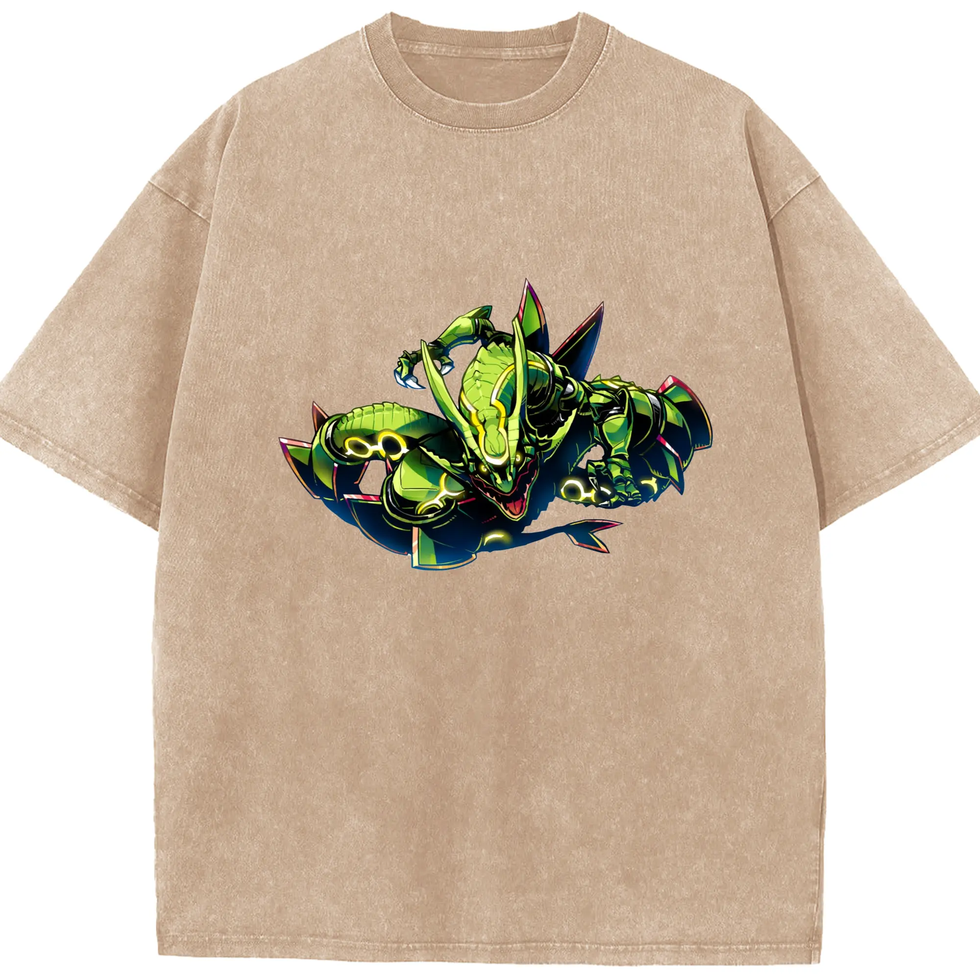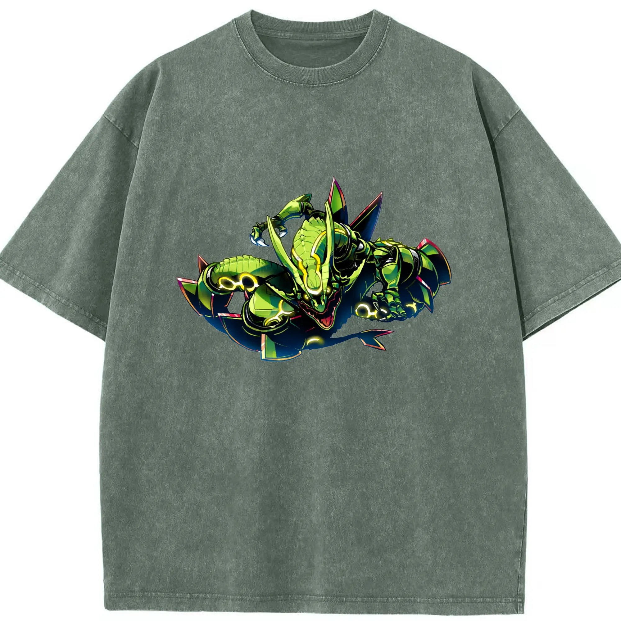 Pokemon cool rayquaza t-shirt - Washed Vintage Look 230g Cotton Oversized T-Shirt With Front Heat Transfer Print – Soft, Lightweight, Stylish Fit – Comfortable Casual Wear For Sports & Everyday Use