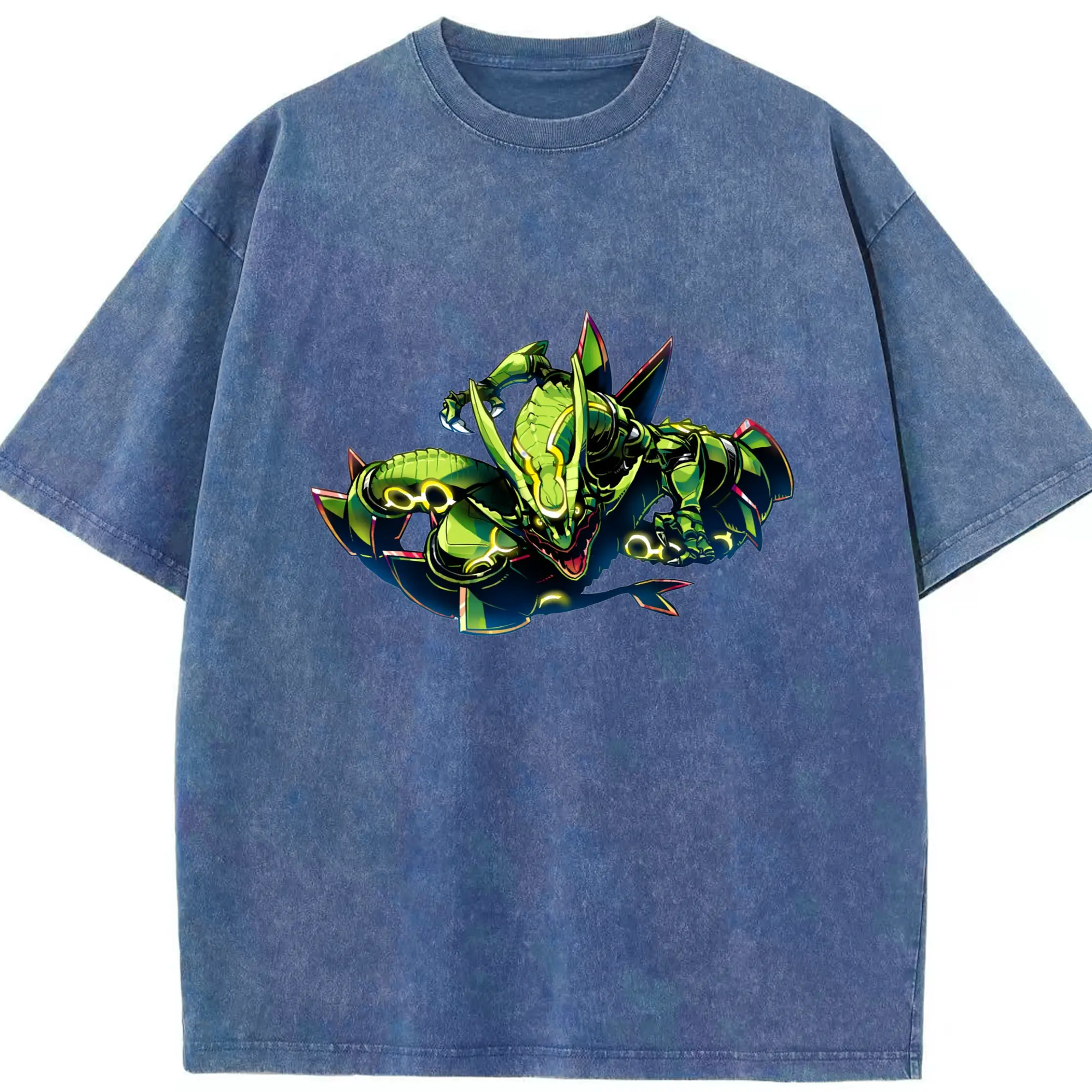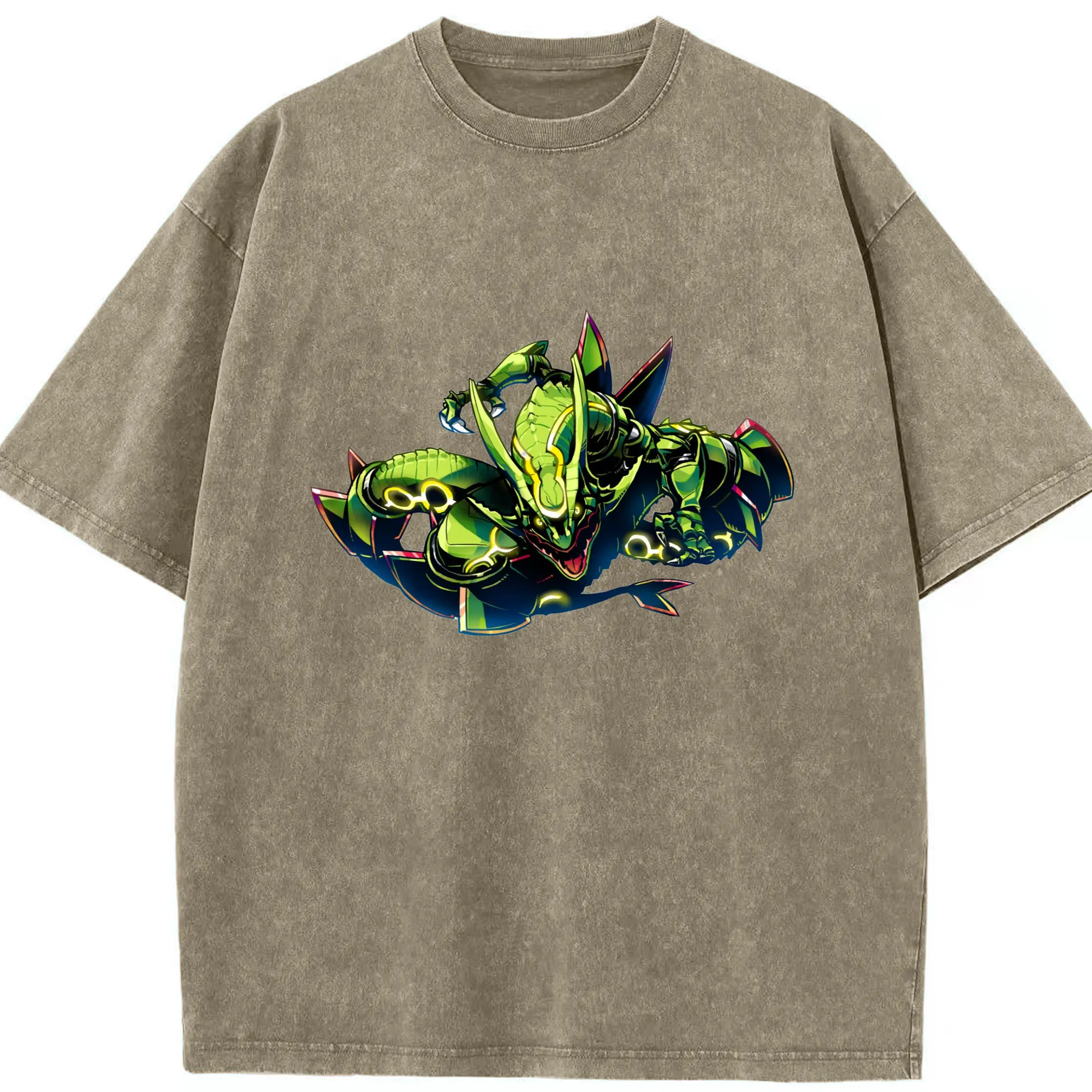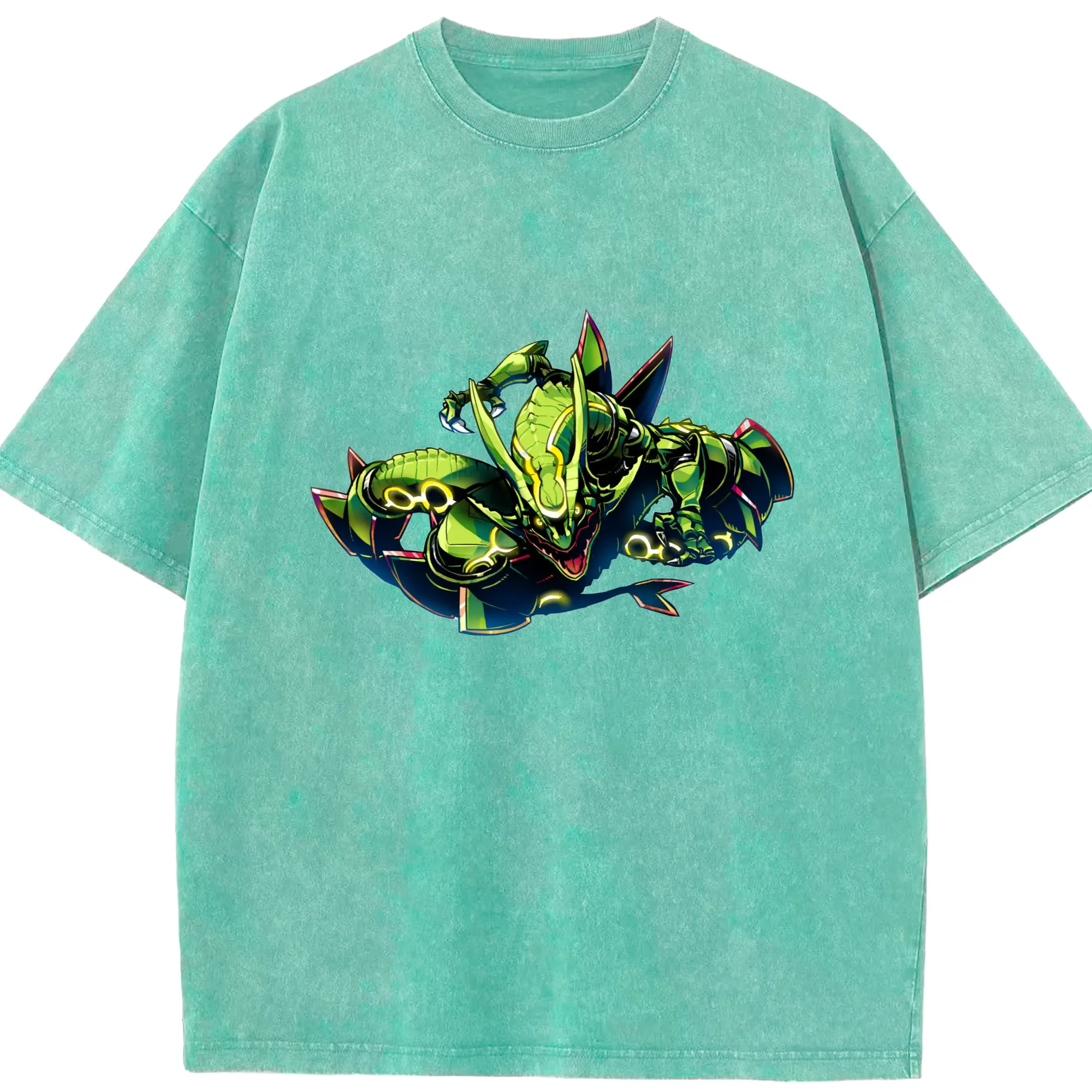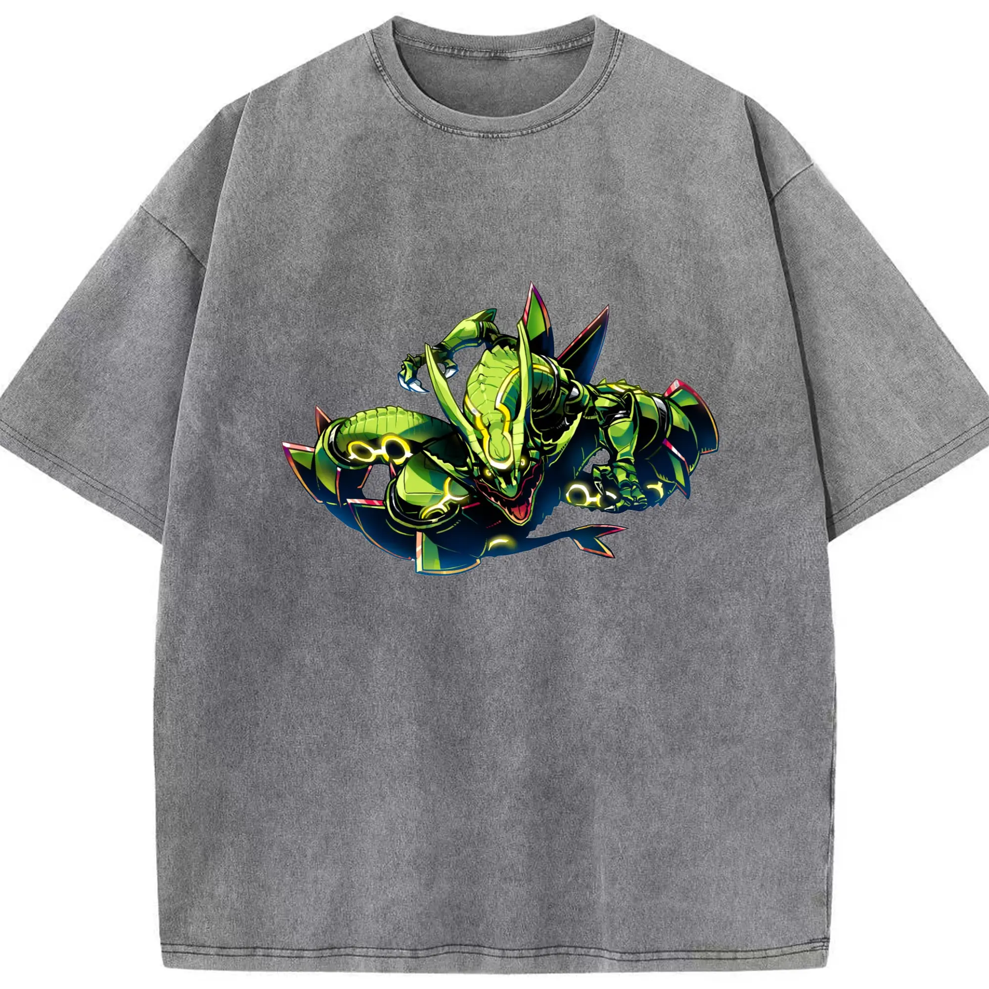 Pokemon cool rayquaza t-shirt - Washed Vintage Look 230g Cotton Oversized T-Shirt With Front Heat Transfer Print – Soft, Lightweight, Stylish Fit – Comfortable Casual Wear For Sports & Everyday Use