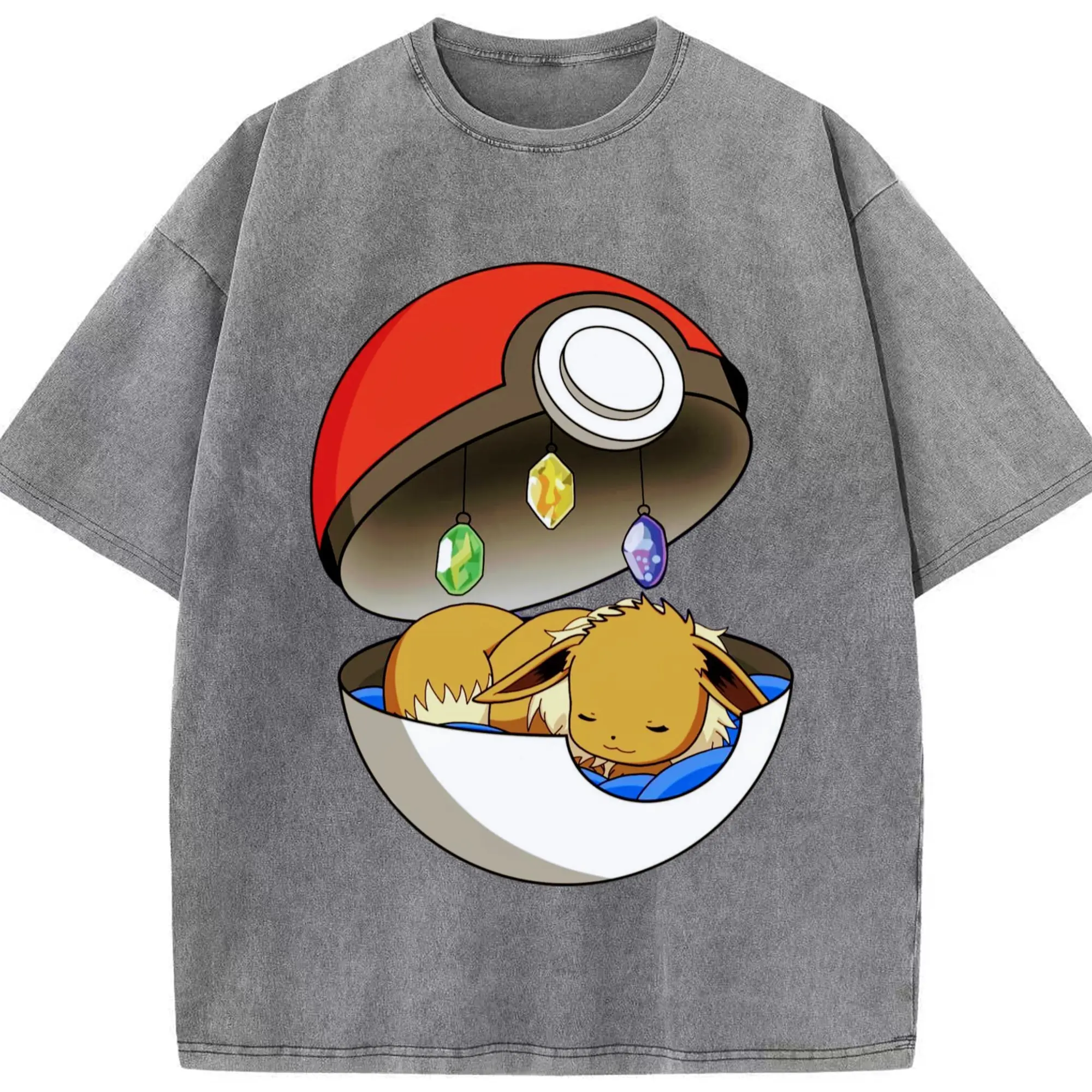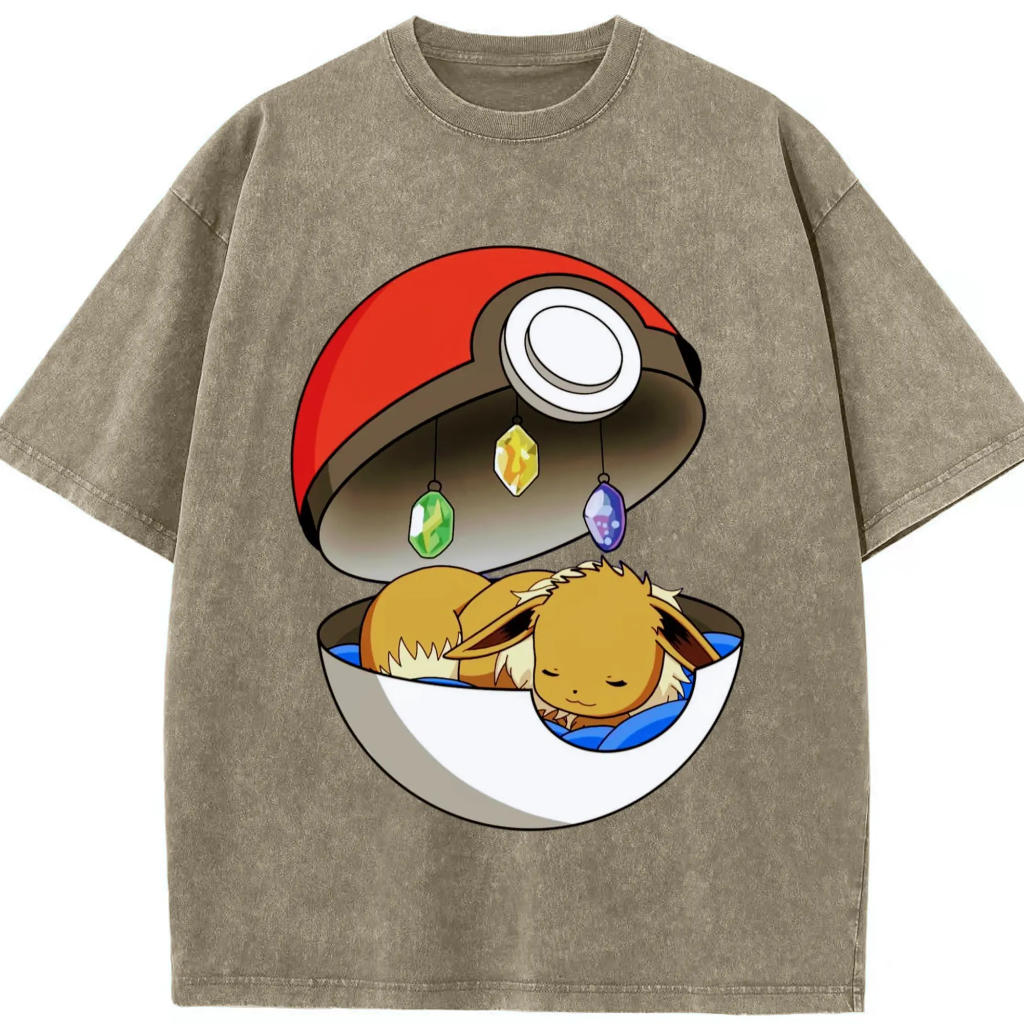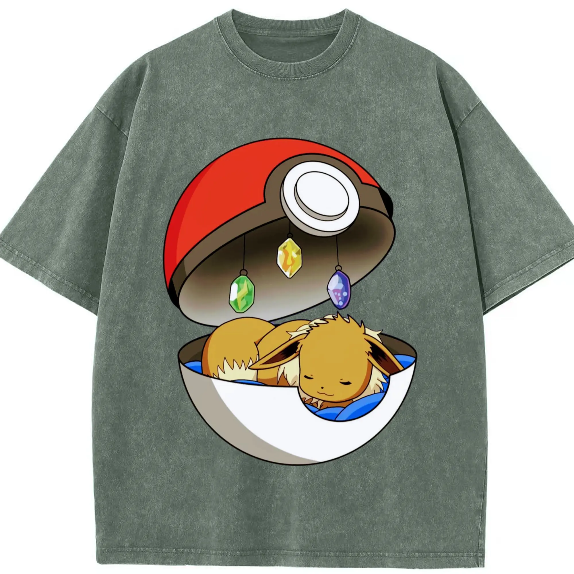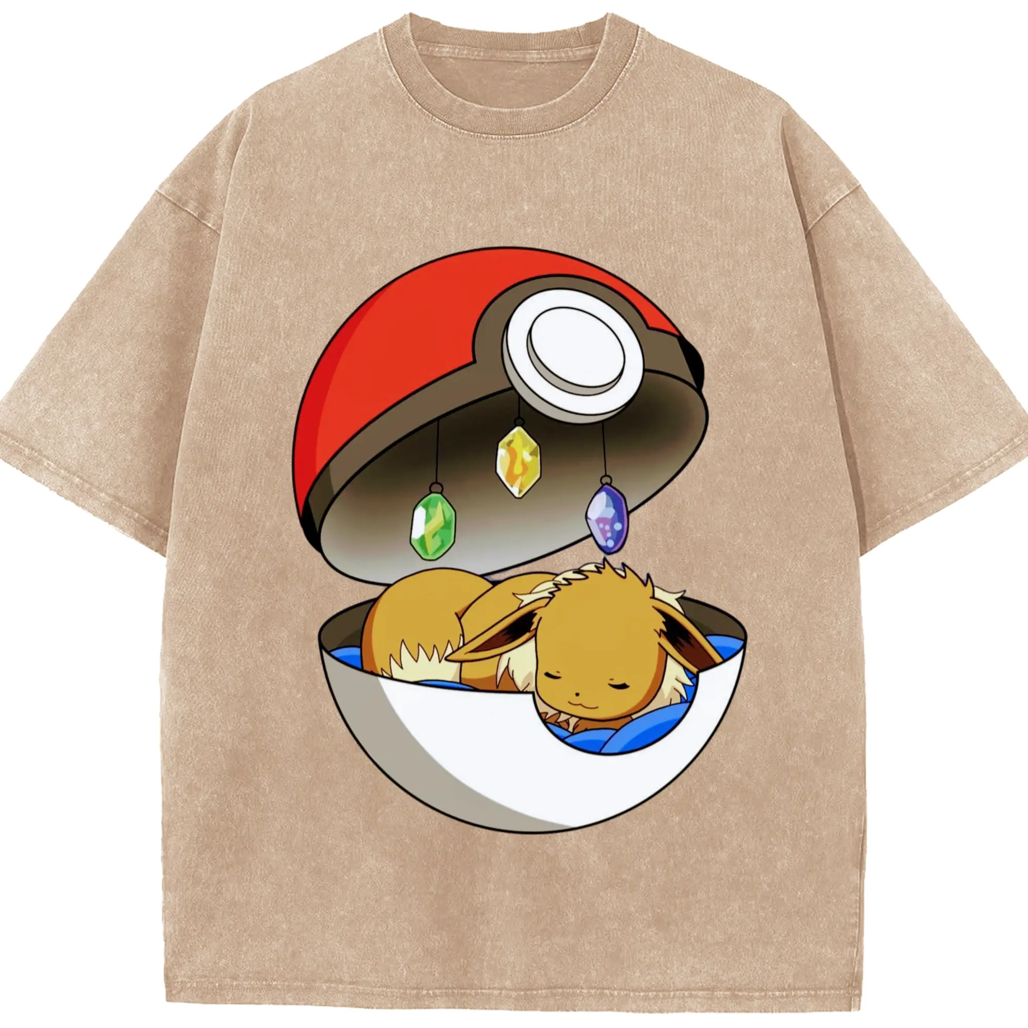 Pokemon eevee classic t-shirt - Washed Vintage Look 230g Cotton Oversized T-Shirt With Front Heat Transfer Print – Soft, Lightweight, Stylish Fit – Comfortable Casual Wear For Sports & Everyday Use