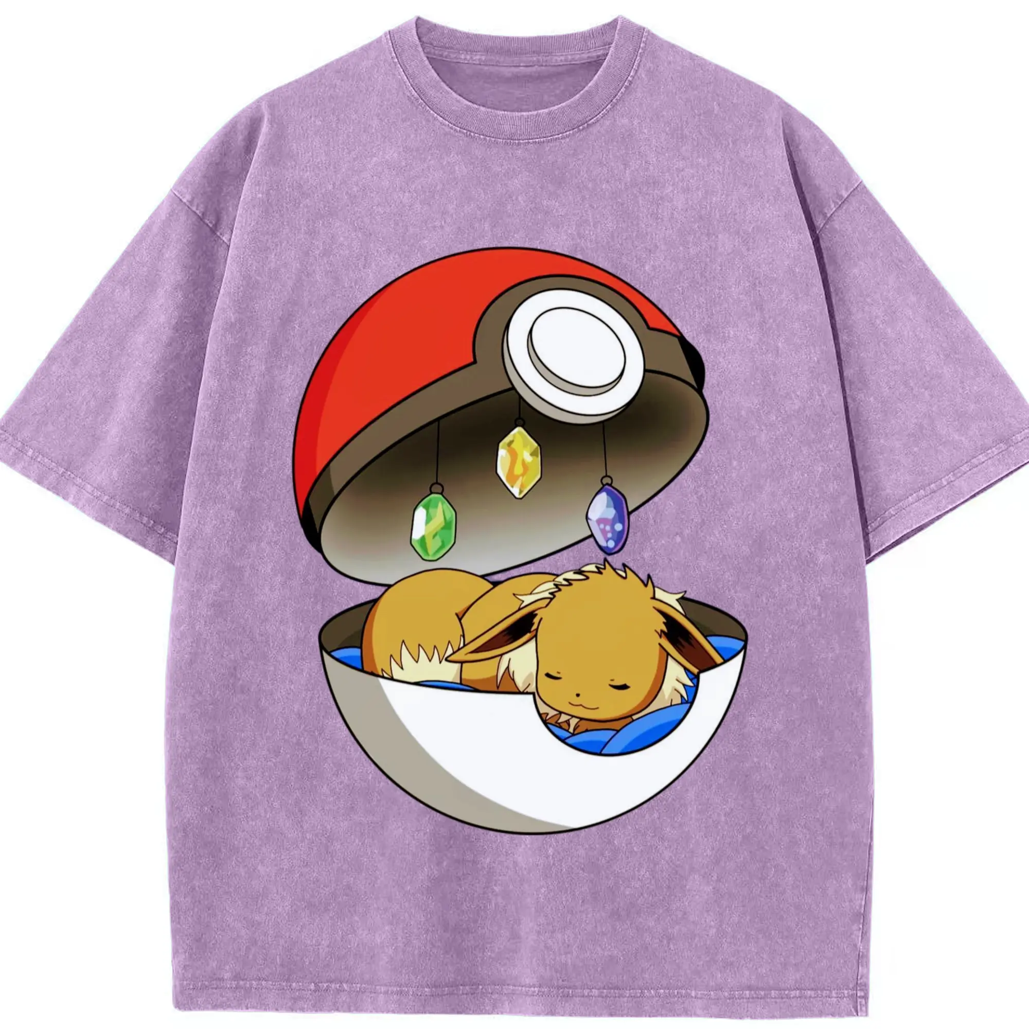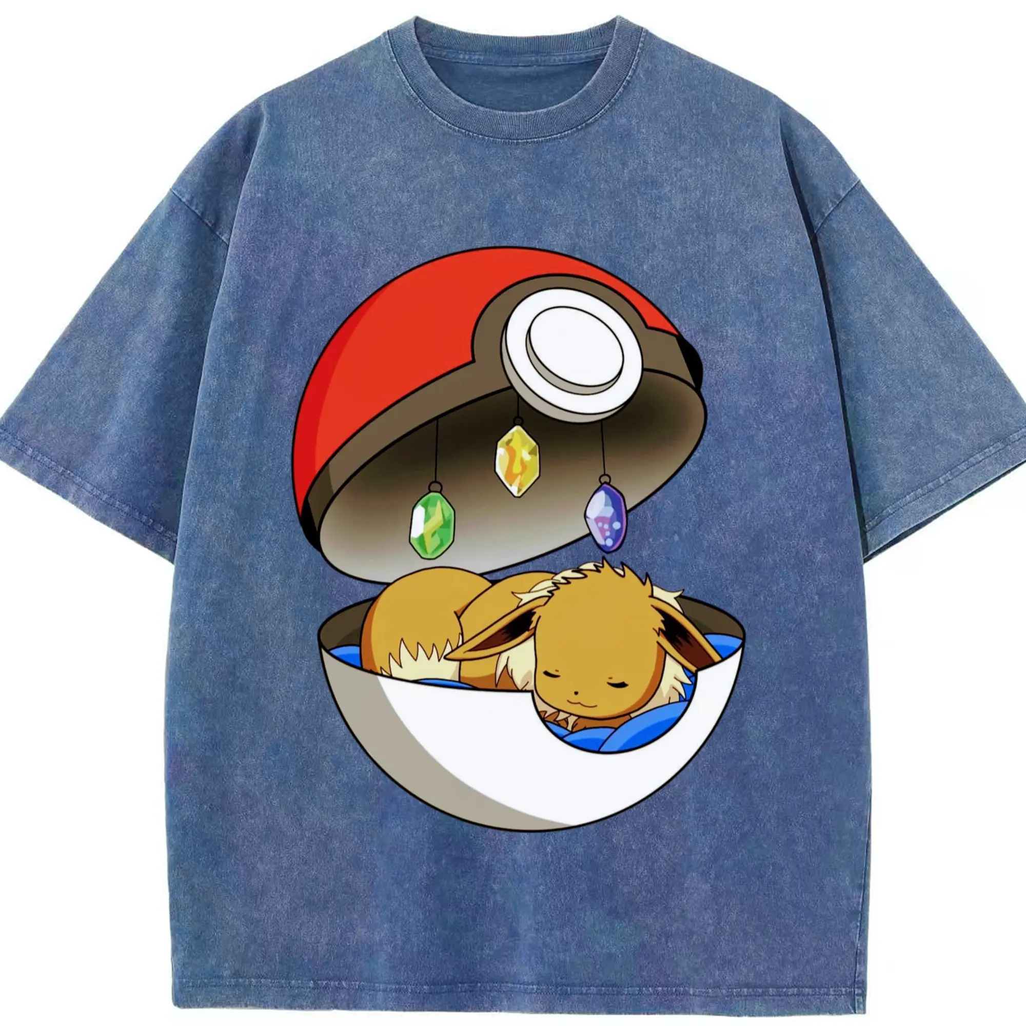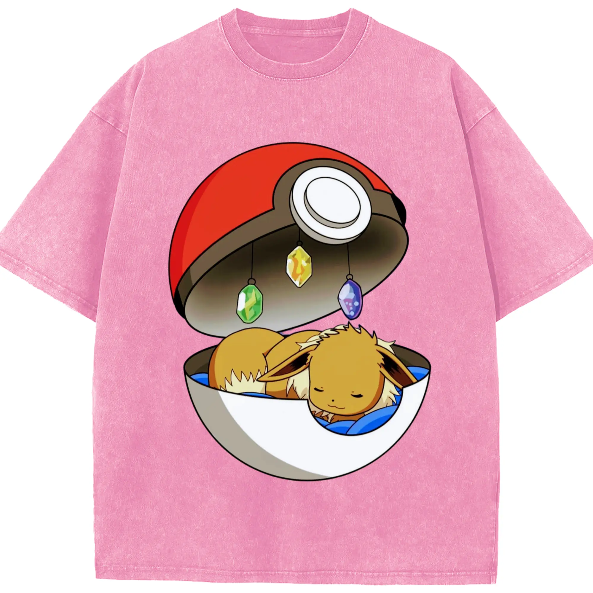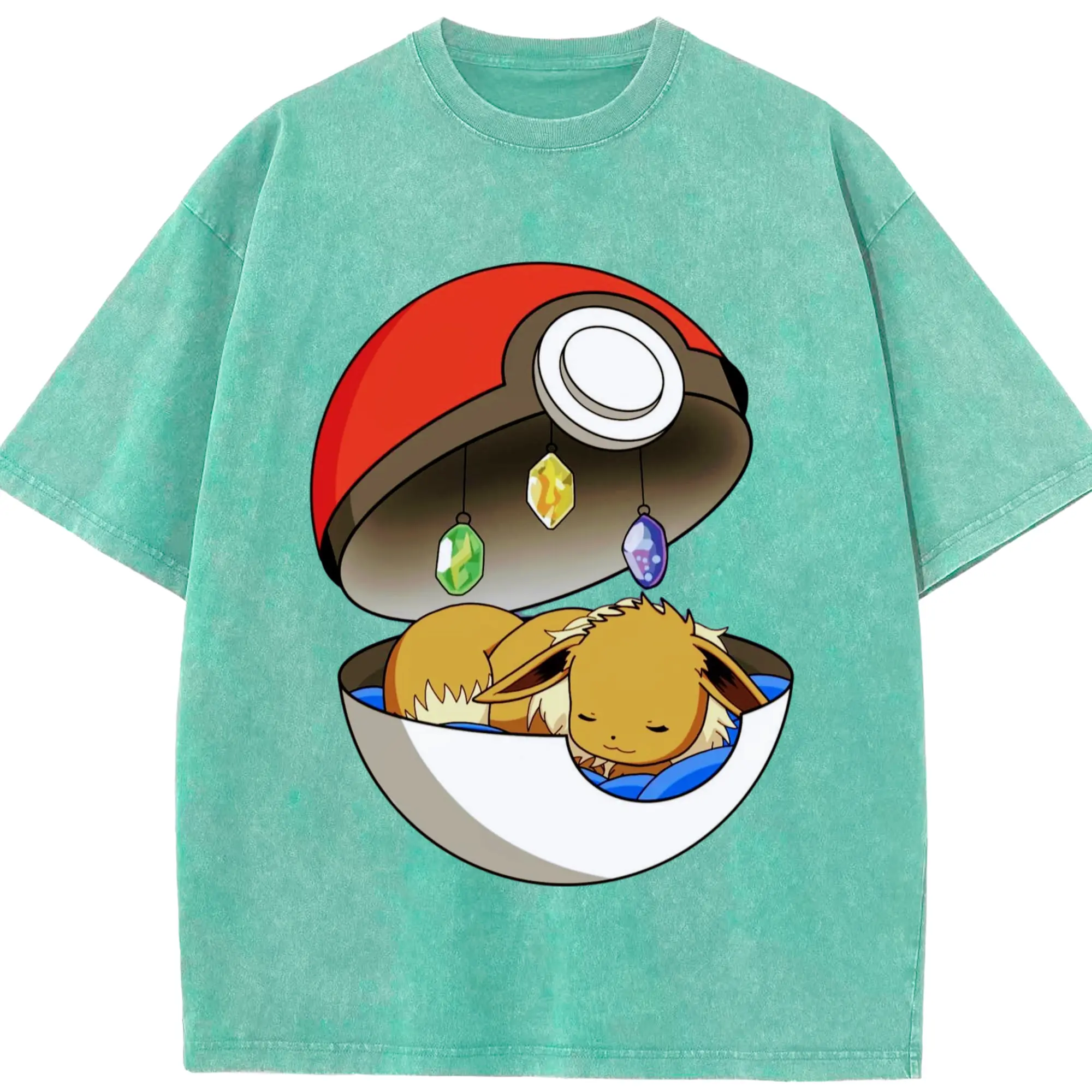 Pokemon eevee classic t-shirt - Washed Vintage Look 230g Cotton Oversized T-Shirt With Front Heat Transfer Print – Soft, Lightweight, Stylish Fit – Comfortable Casual Wear For Sports & Everyday Use