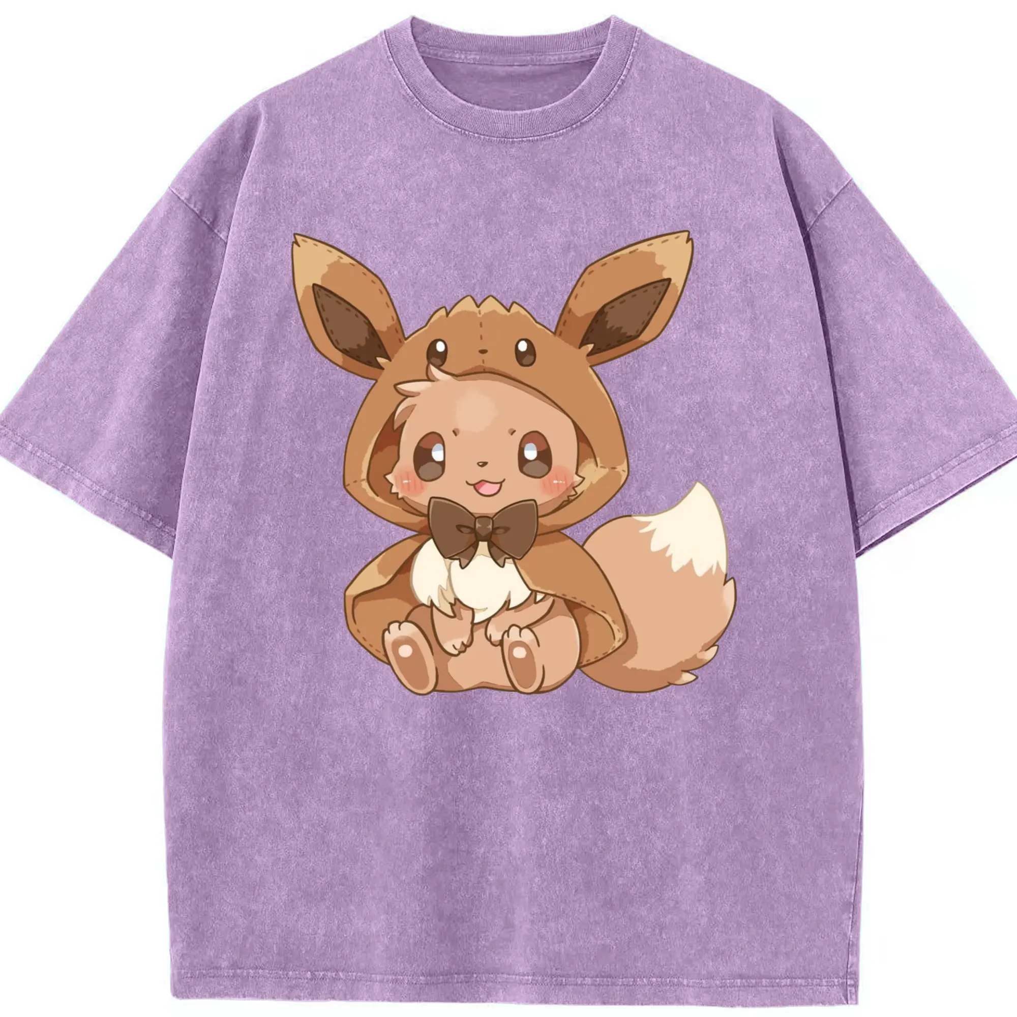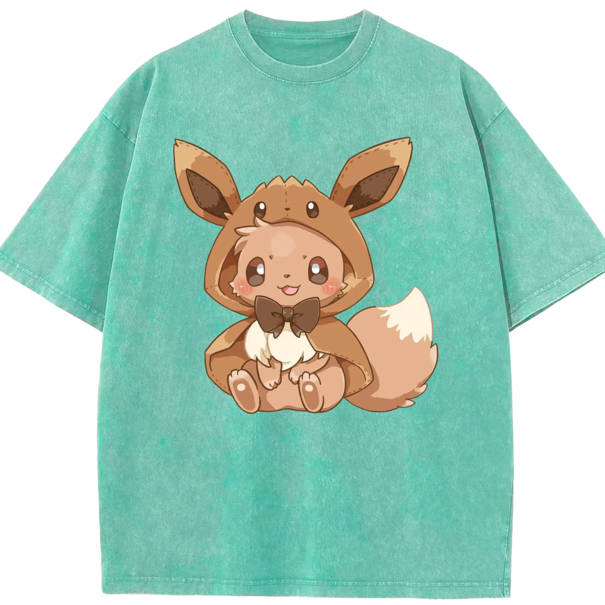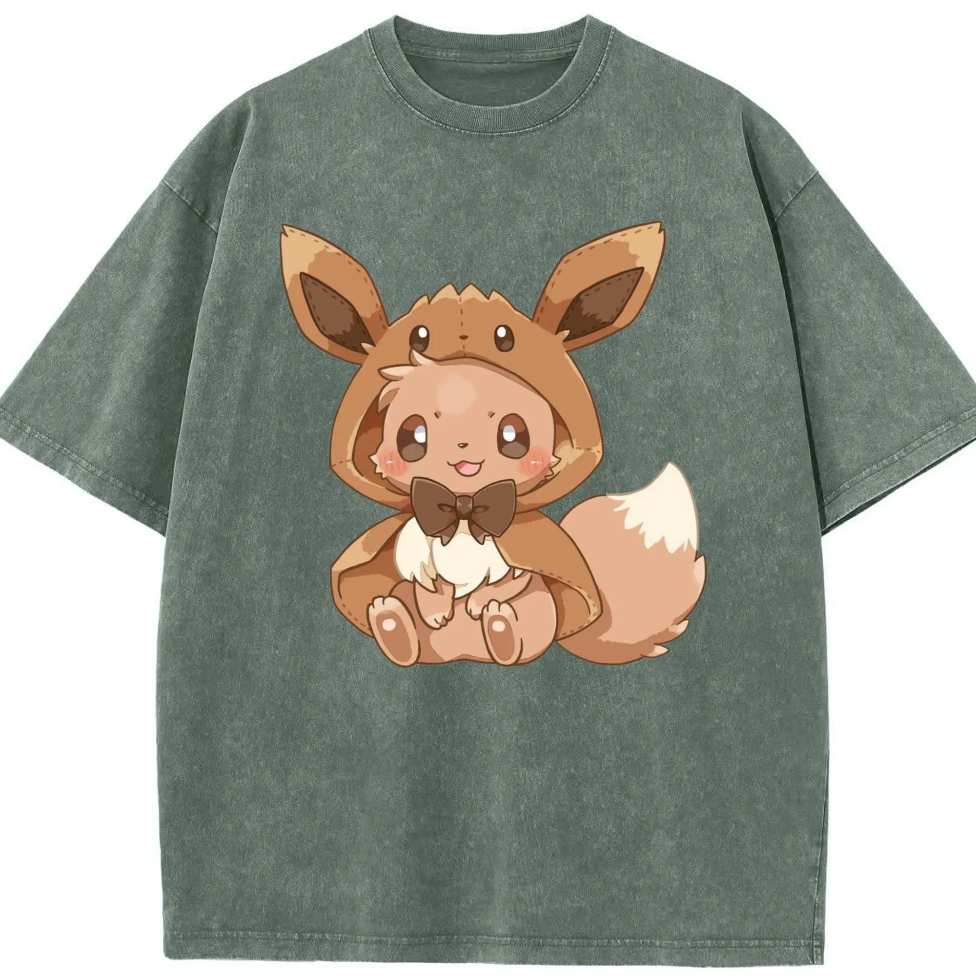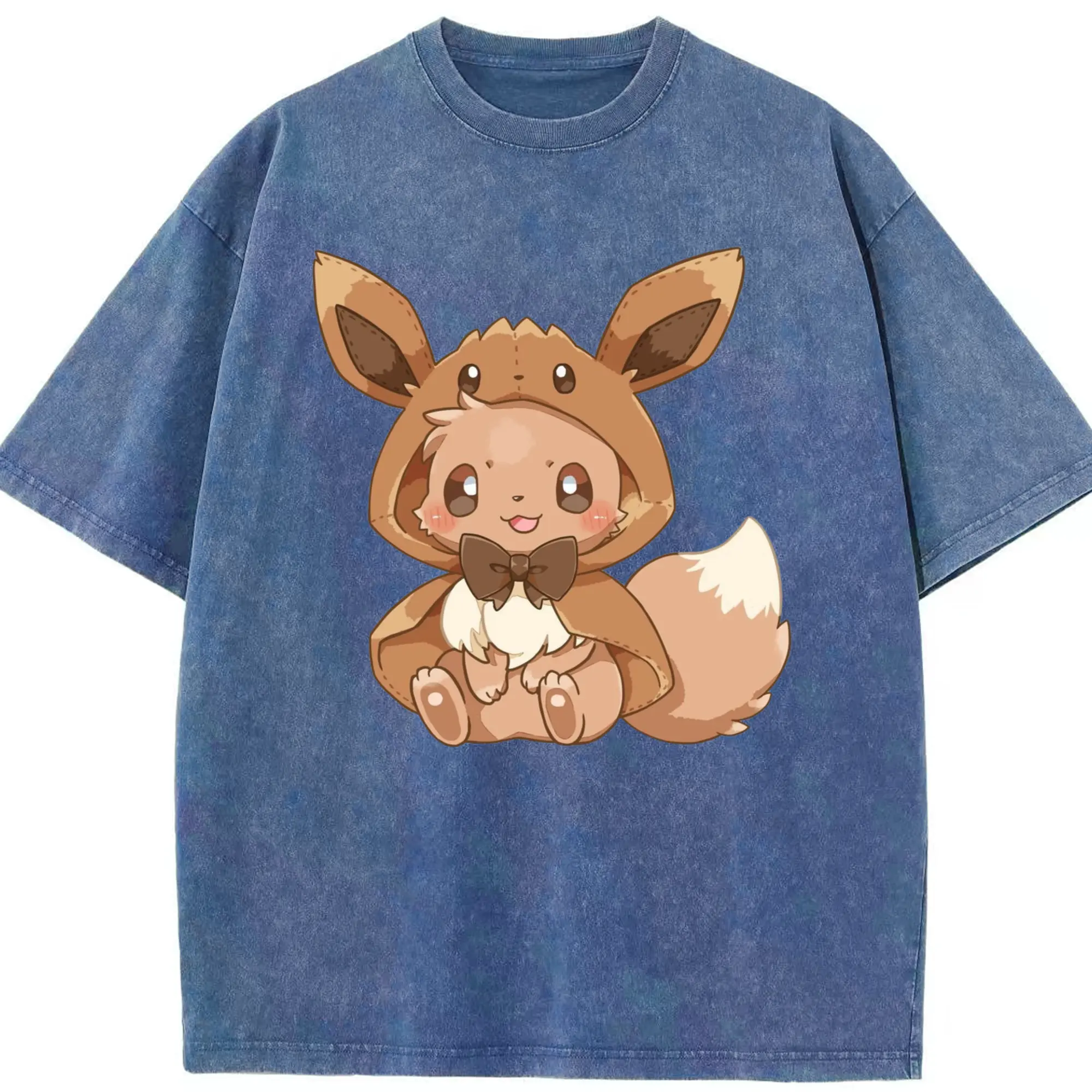 Pokemon Eevee T-shirt - Washed Vintage Look 230g Cotton Oversized T-Shirt With Front Heat Transfer Print – Soft, Lightweight, Stylish Fit – Comfortable Casual Wear For Sports & Everyday Use