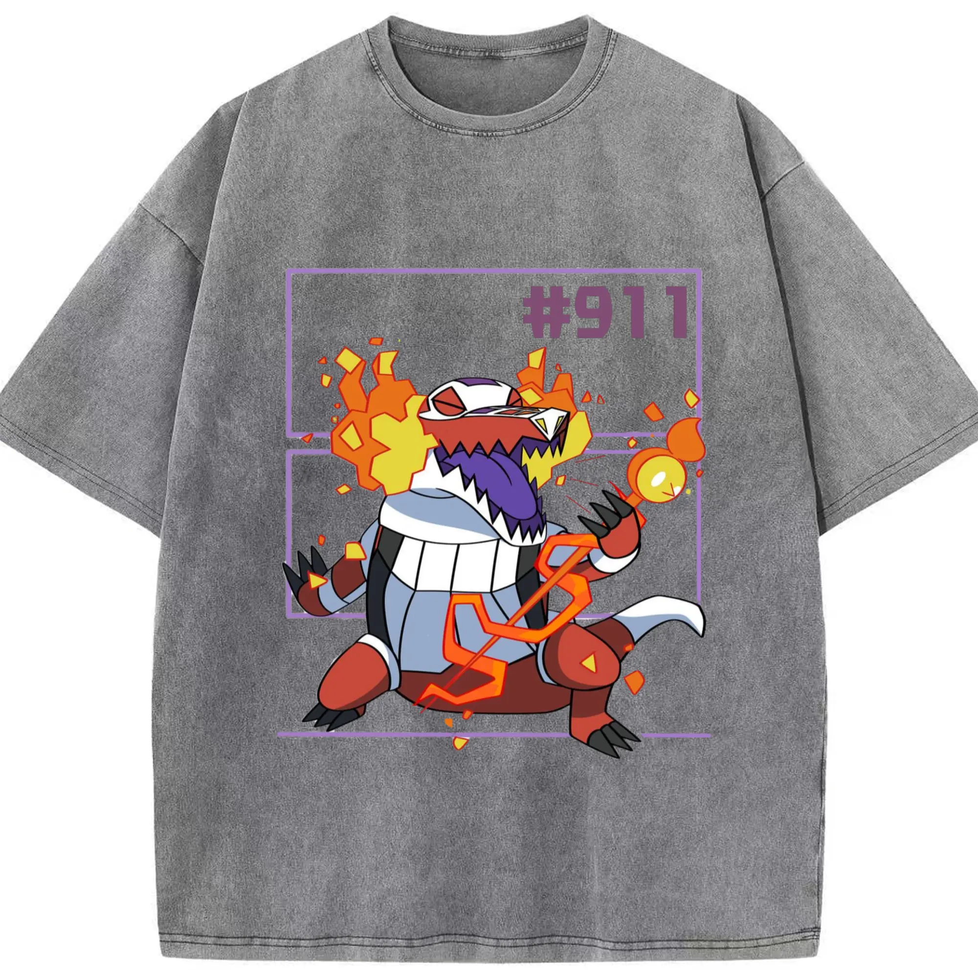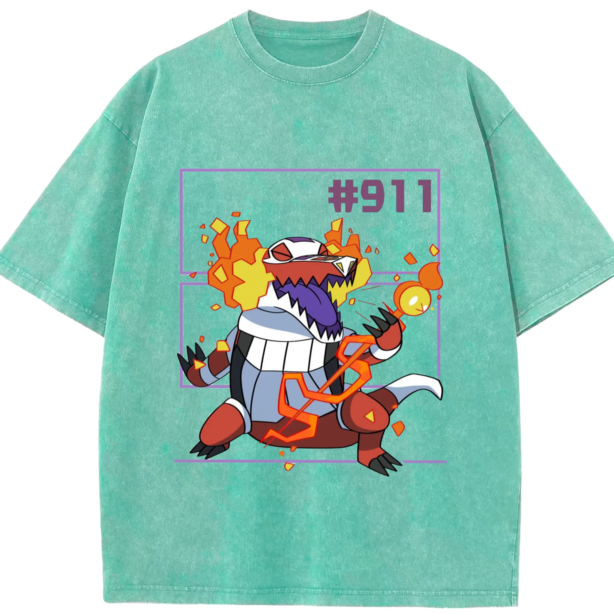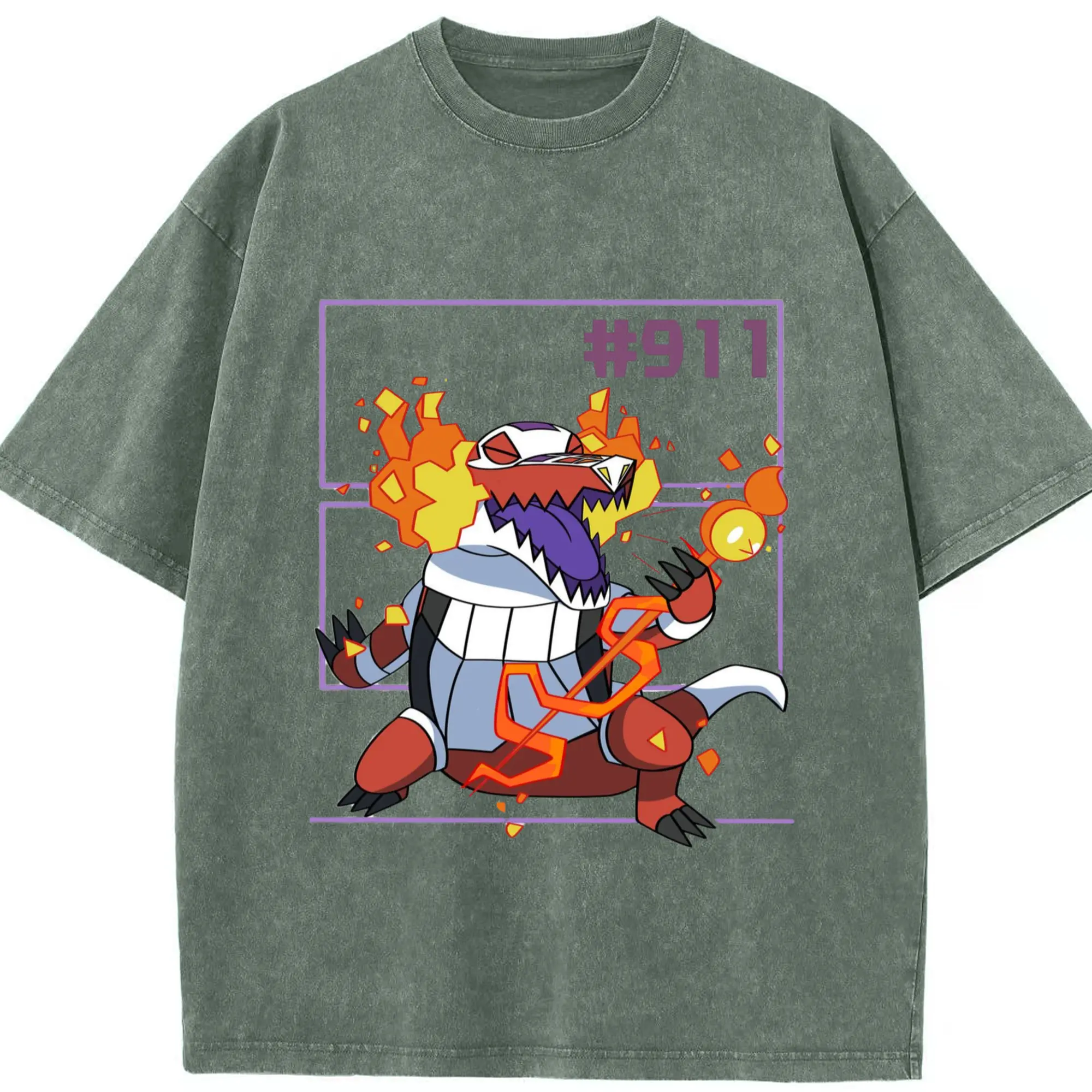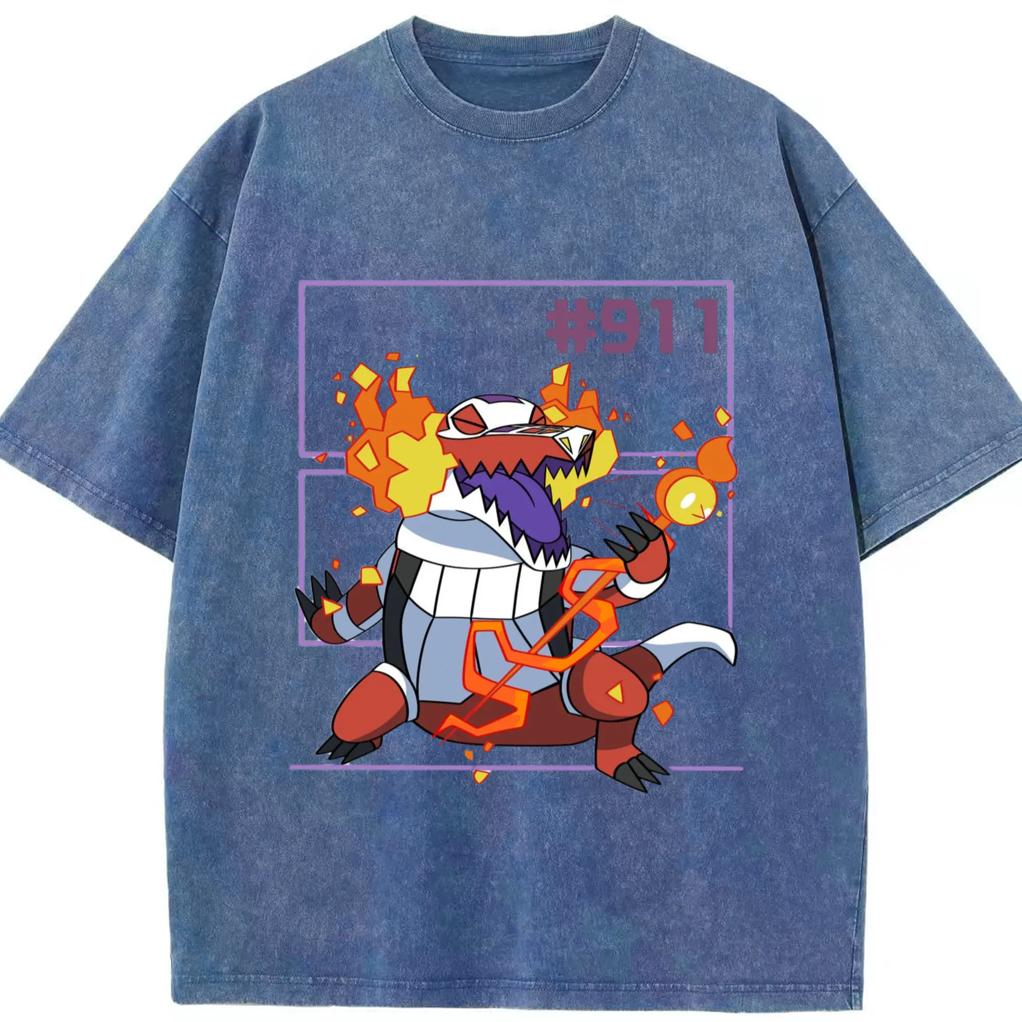 Pokemon fuecoco Eeveelution T-Shirt - Washed Vintage Look 230g Cotton Oversized T-Shirt With Front Heat Transfer Print – Soft, Lightweight, Stylish Fit – Comfortable Casual Wear For Sports & Everyday Use