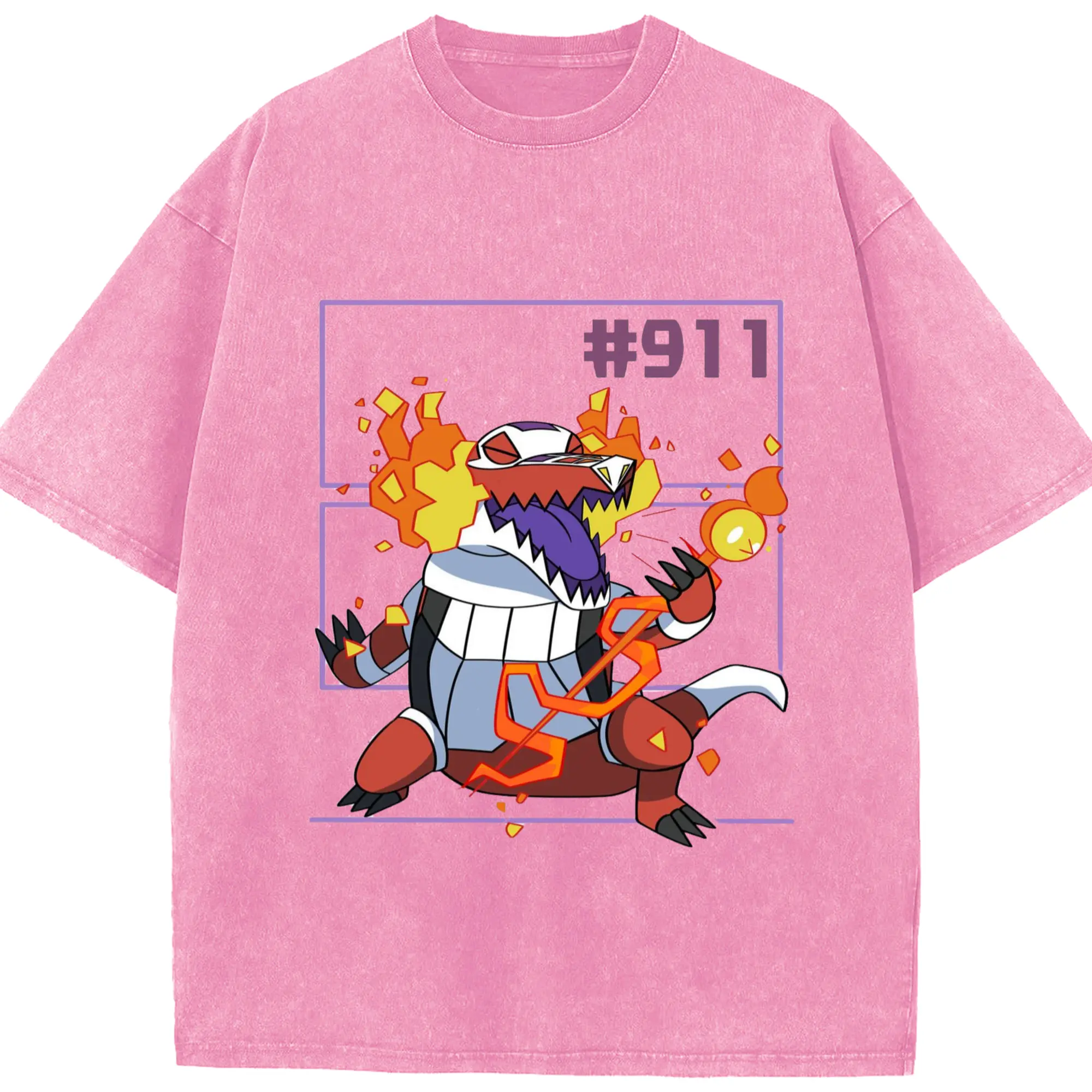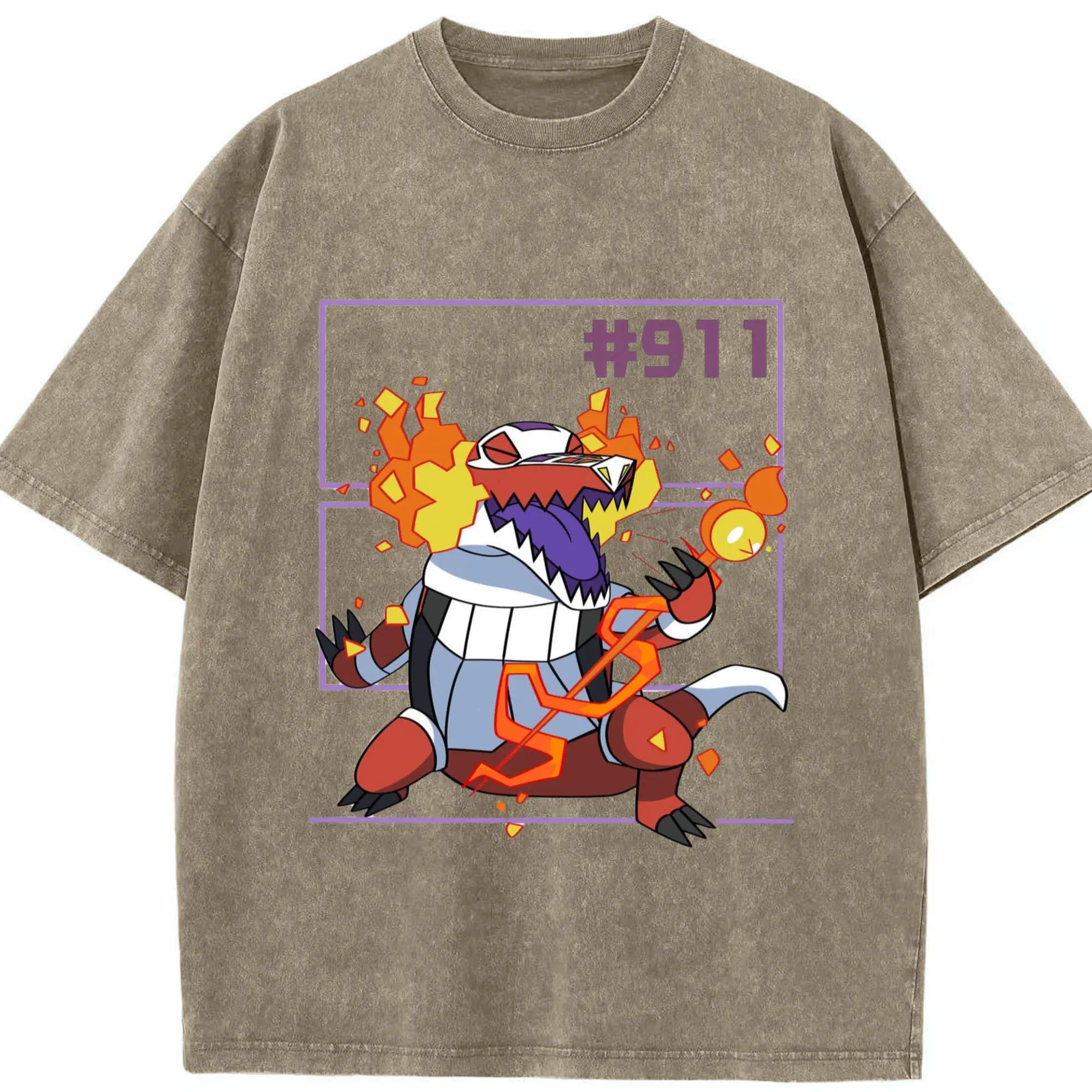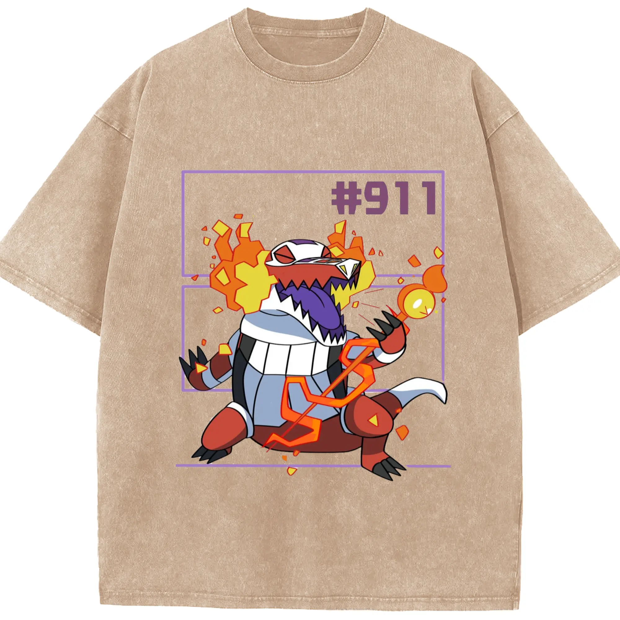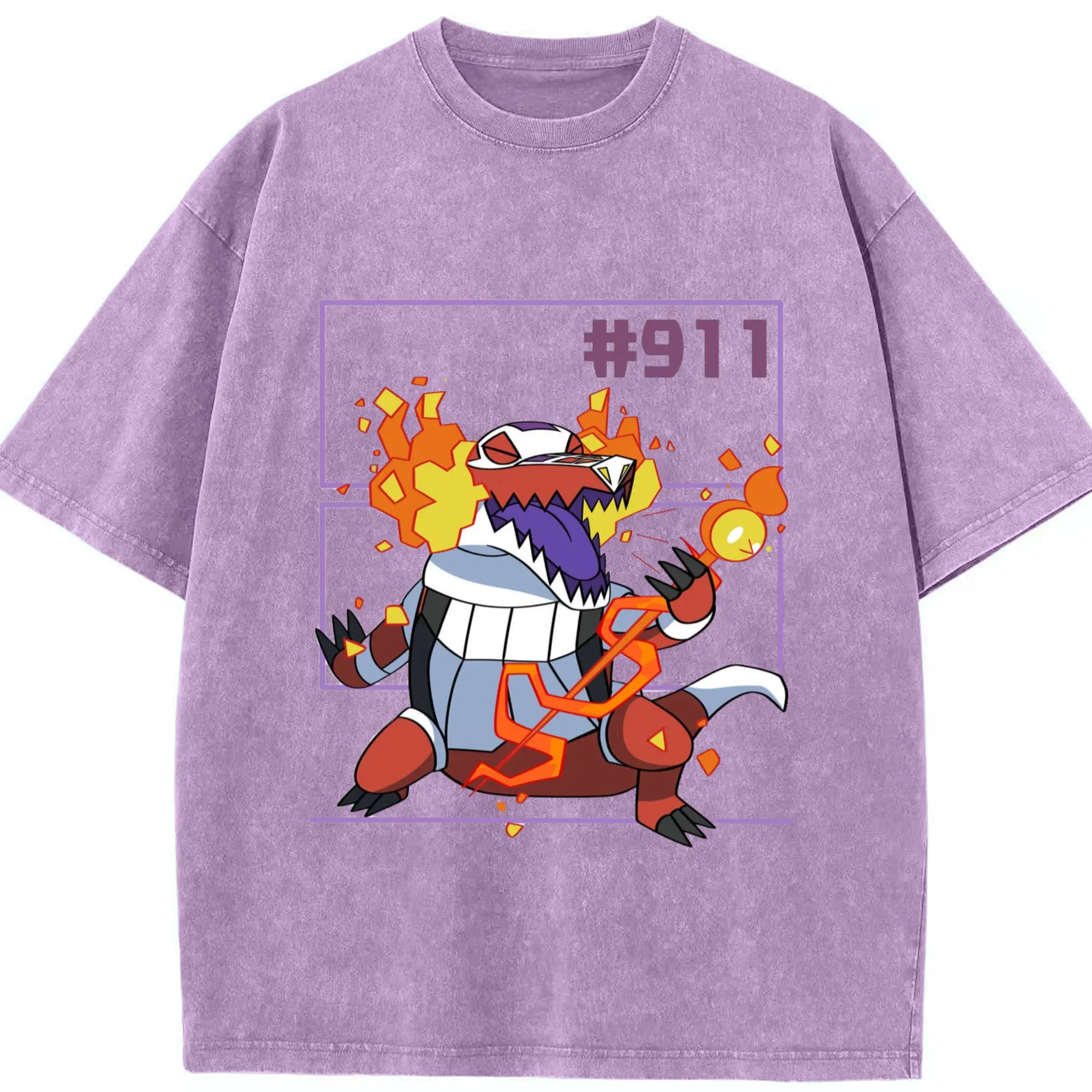 Pokemon fuecoco Eeveelution T-Shirt - Washed Vintage Look 230g Cotton Oversized T-Shirt With Front Heat Transfer Print – Soft, Lightweight, Stylish Fit – Comfortable Casual Wear For Sports & Everyday Use
