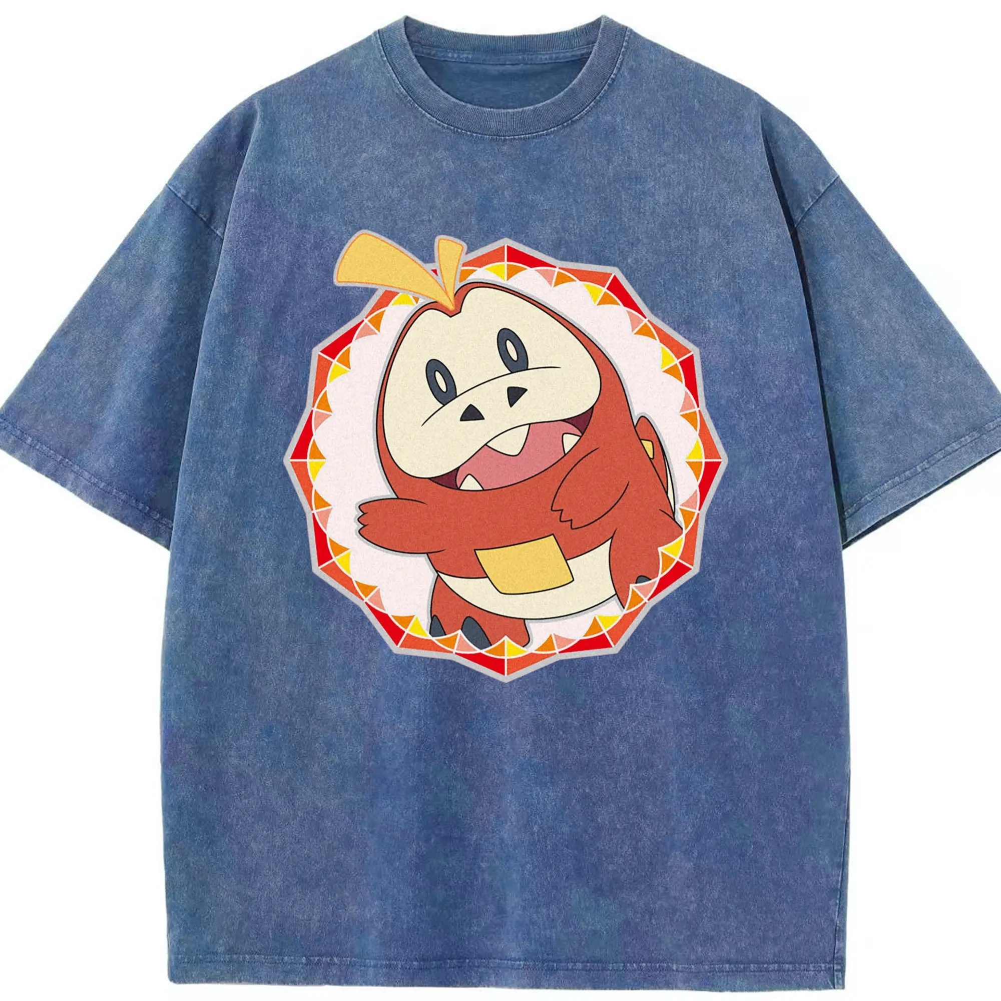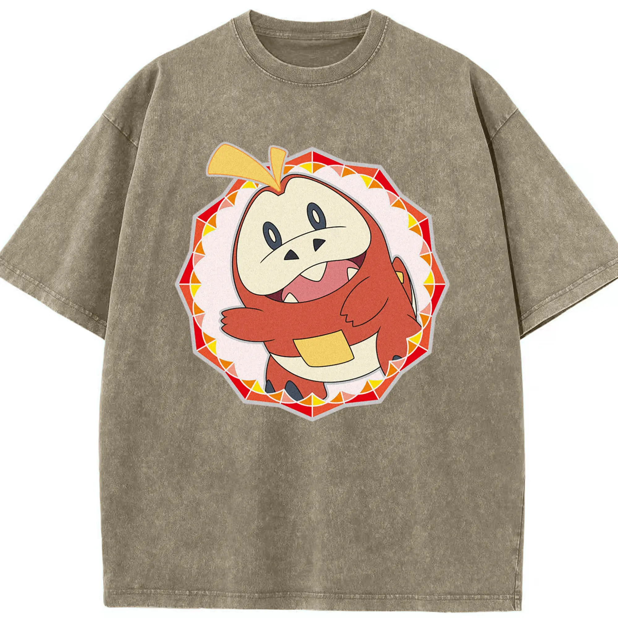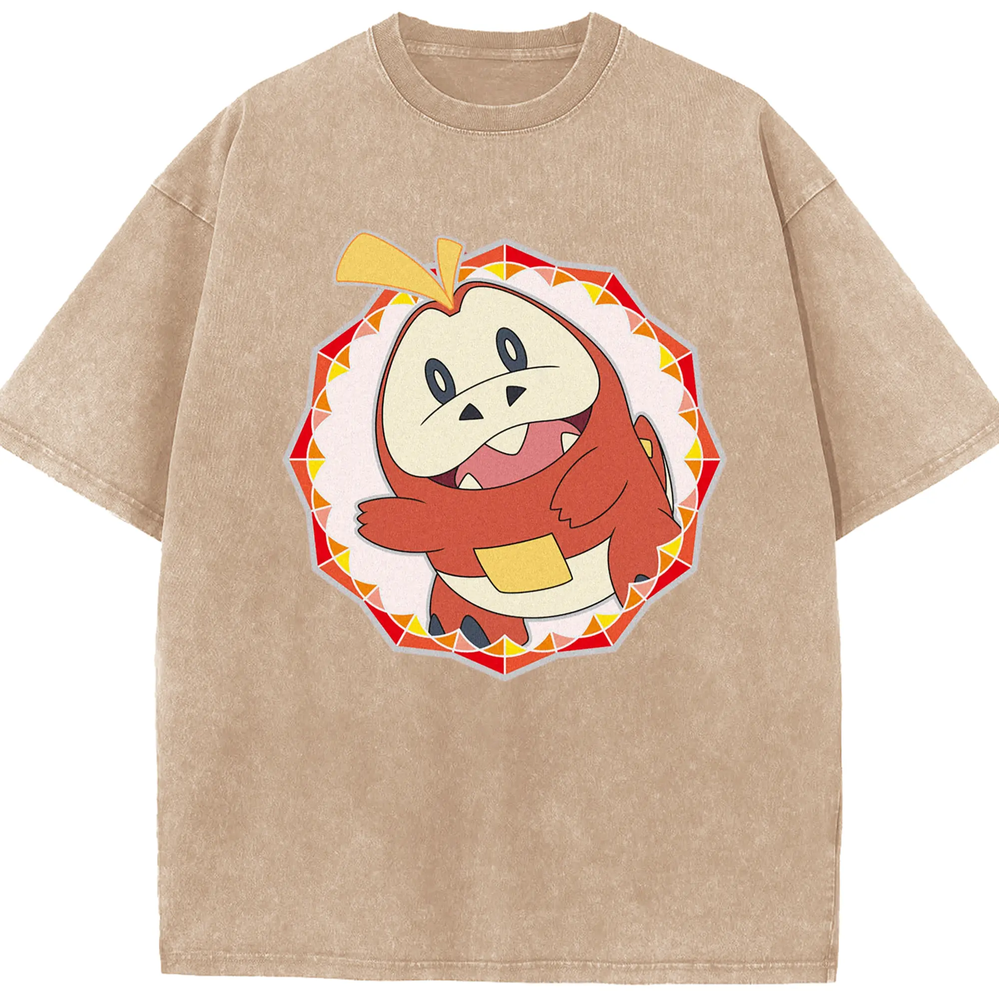 Pokemon Fuecoco T-Shirt - Washed Vintage Look 230g Cotton Oversized T-Shirt With Front Heat Transfer Print – Soft, Lightweight, Stylish Fit – Comfortable Casual Wear For Sports & Everyday Use
