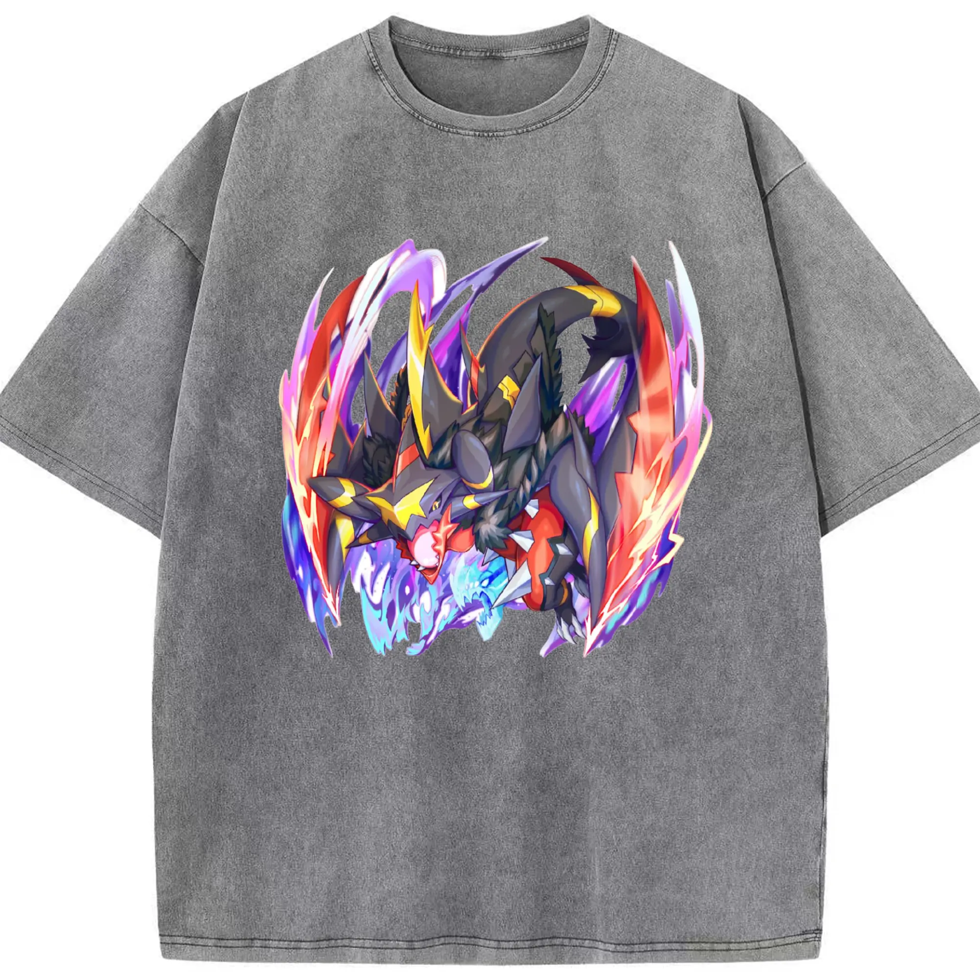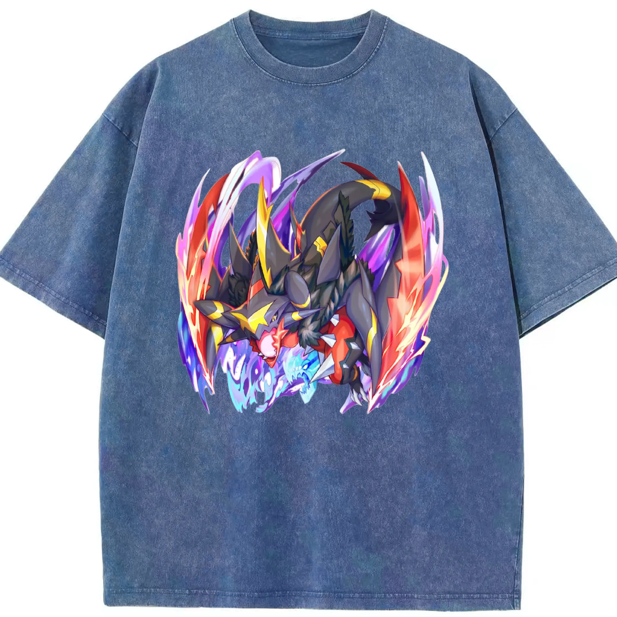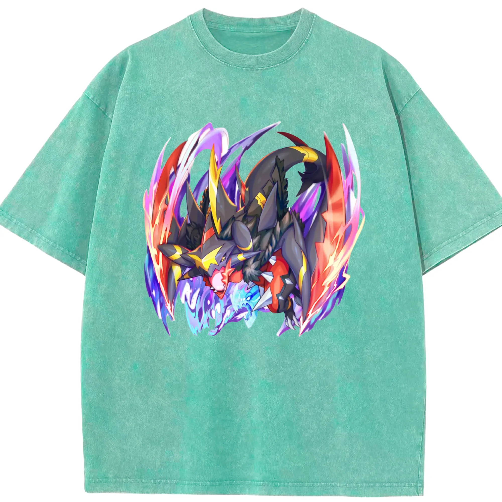 Pokemon Garchomp t shirt - Washed Vintage Look 230g Cotton Oversized T-Shirt With Front Heat Transfer Print – Soft, Lightweight, Stylish Fit – Comfortable Casual Wear For Sports & Everyday Use