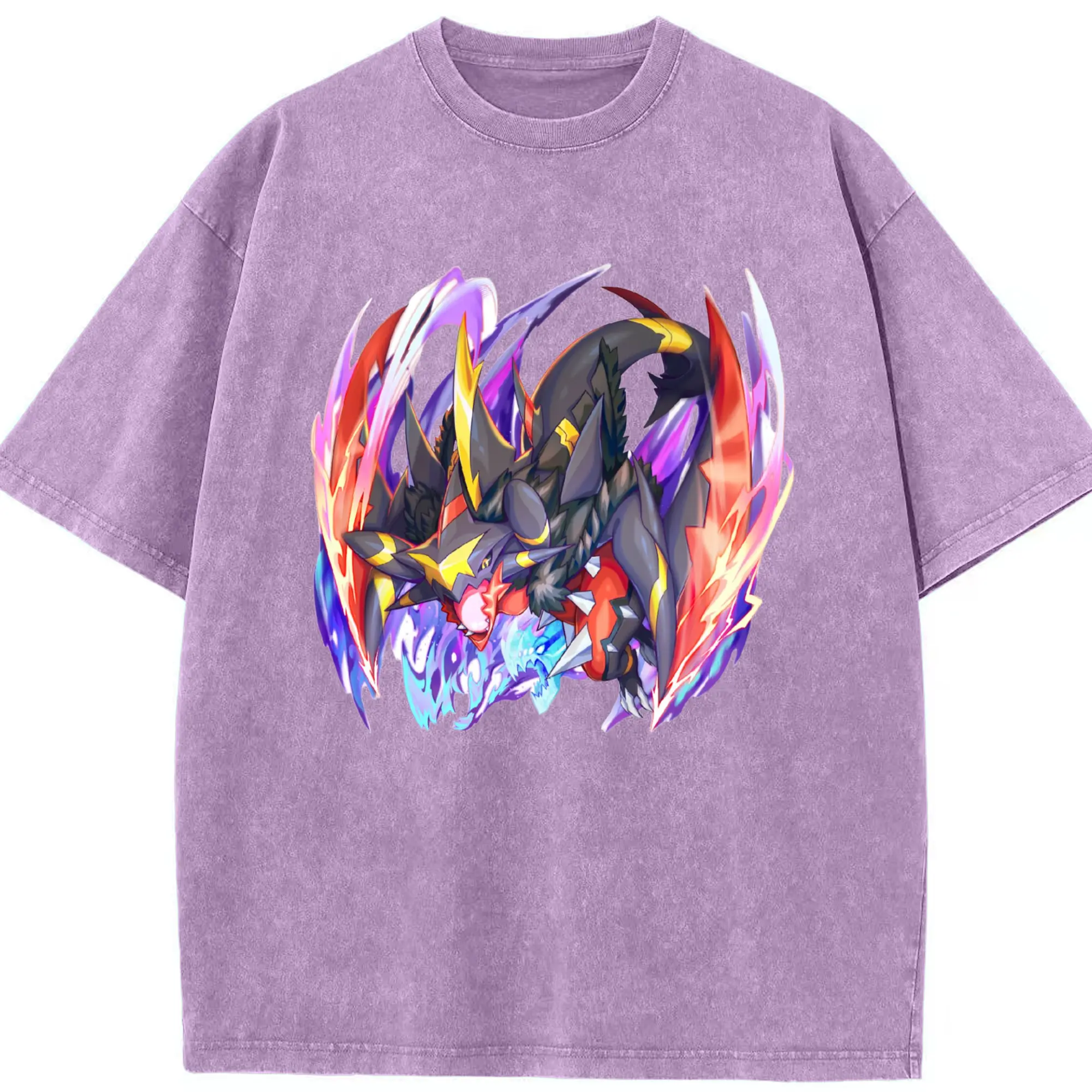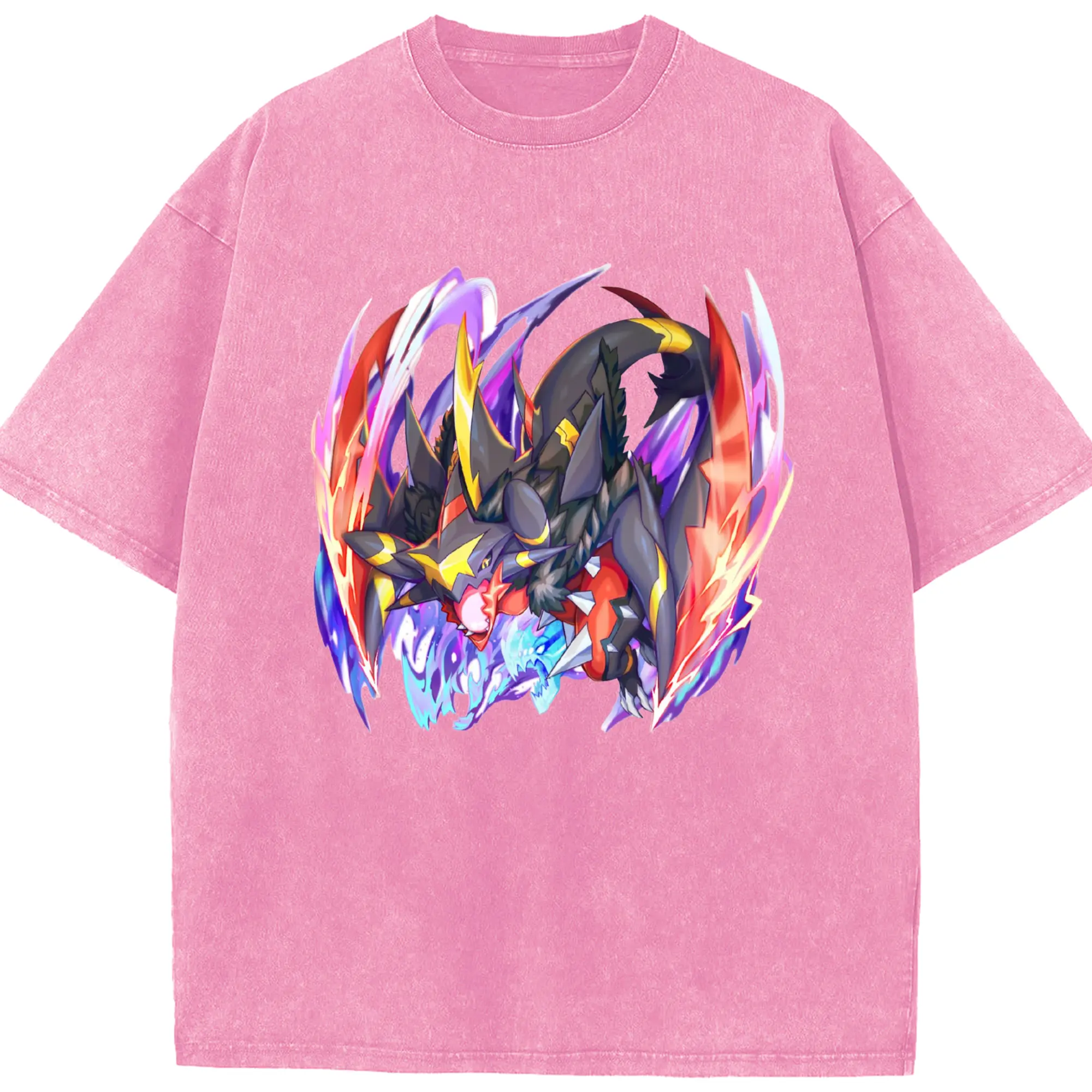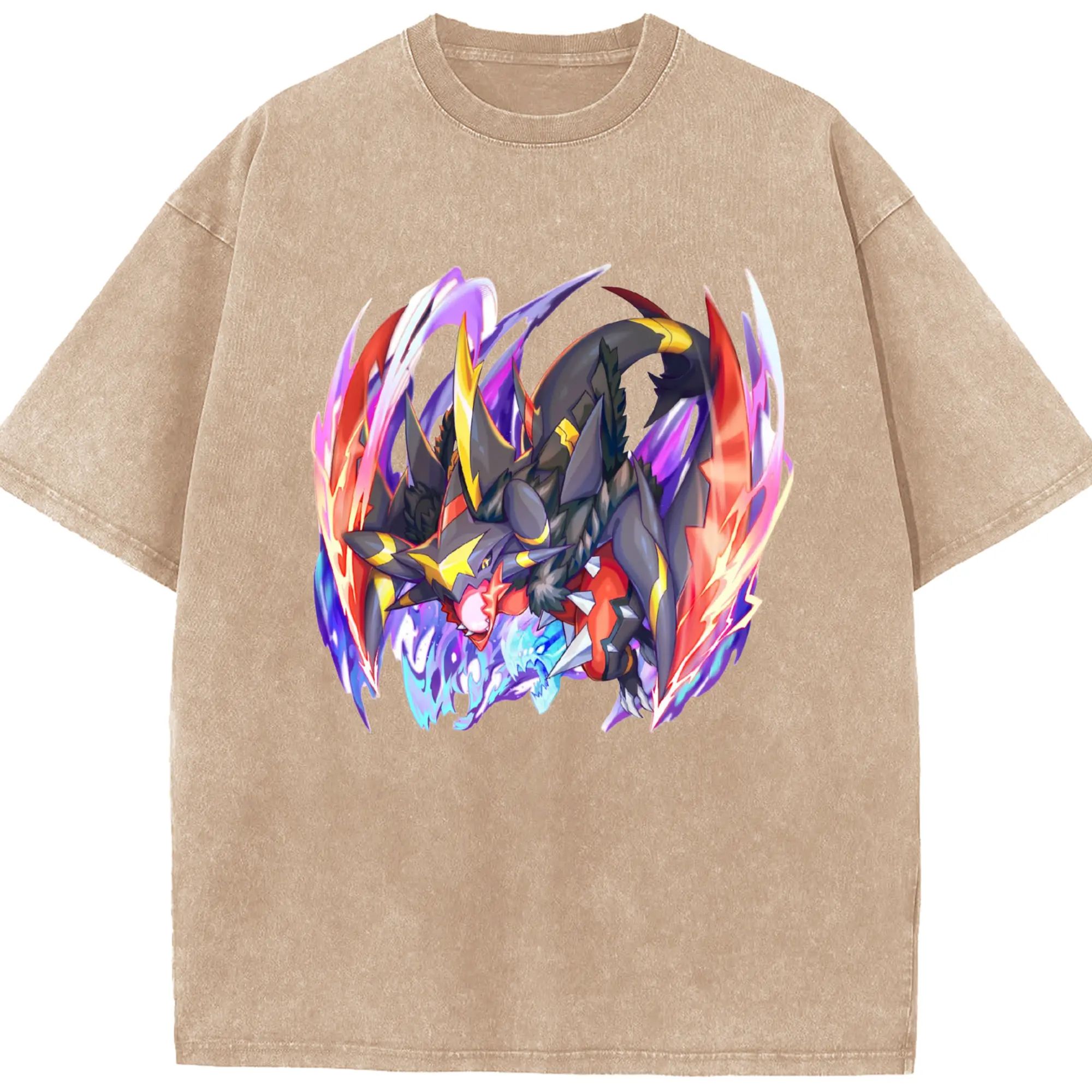 Pokemon Garchomp t shirt - Washed Vintage Look 230g Cotton Oversized T-Shirt With Front Heat Transfer Print – Soft, Lightweight, Stylish Fit – Comfortable Casual Wear For Sports & Everyday Use