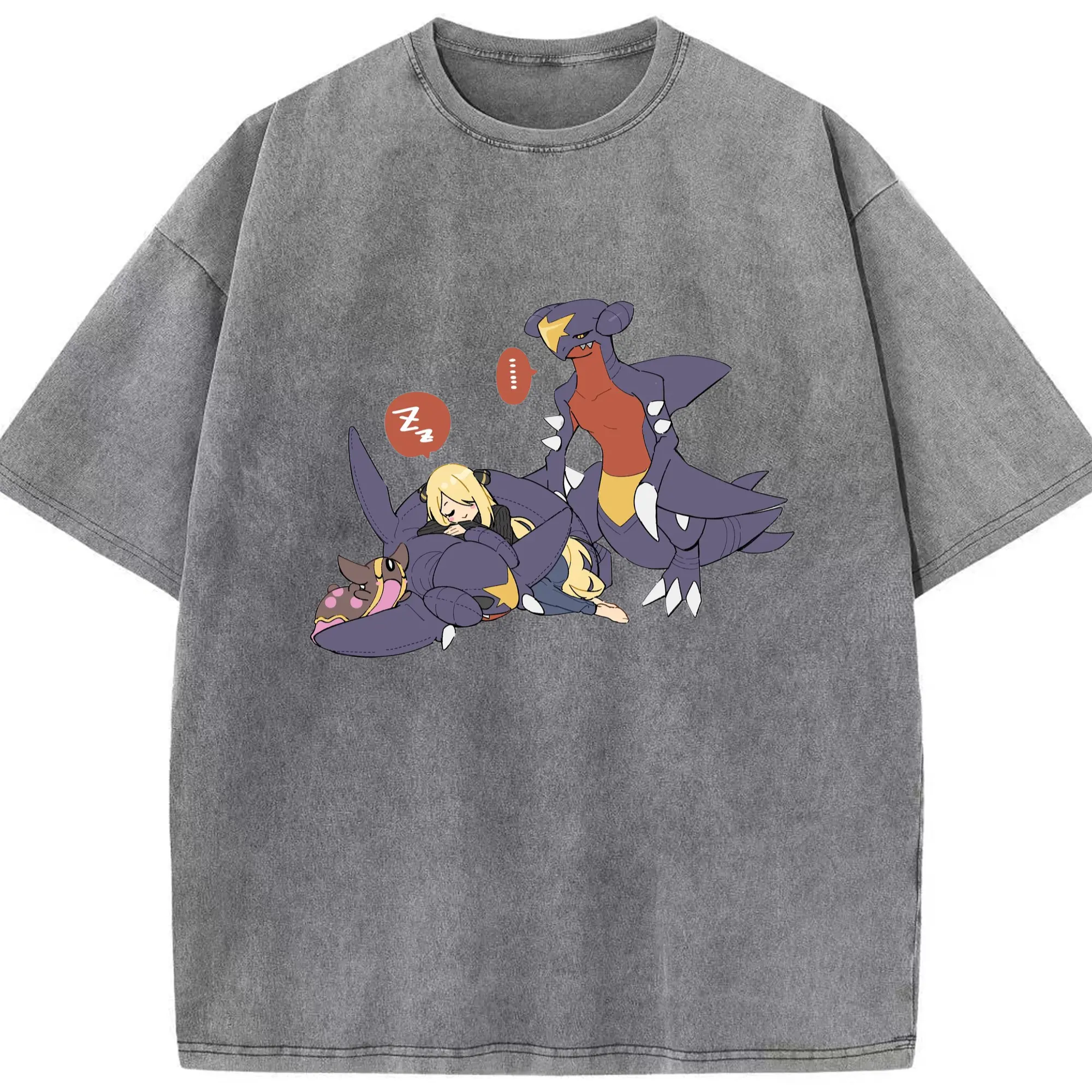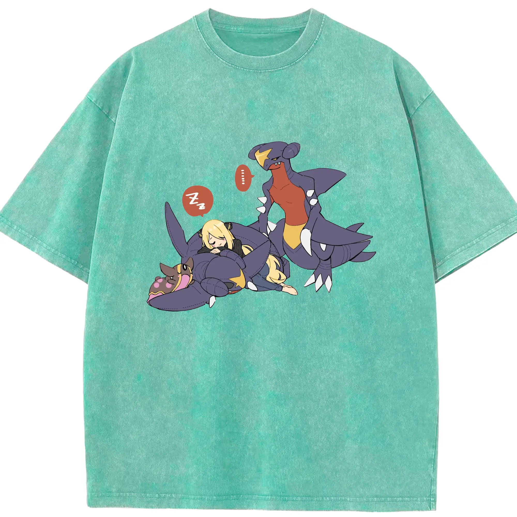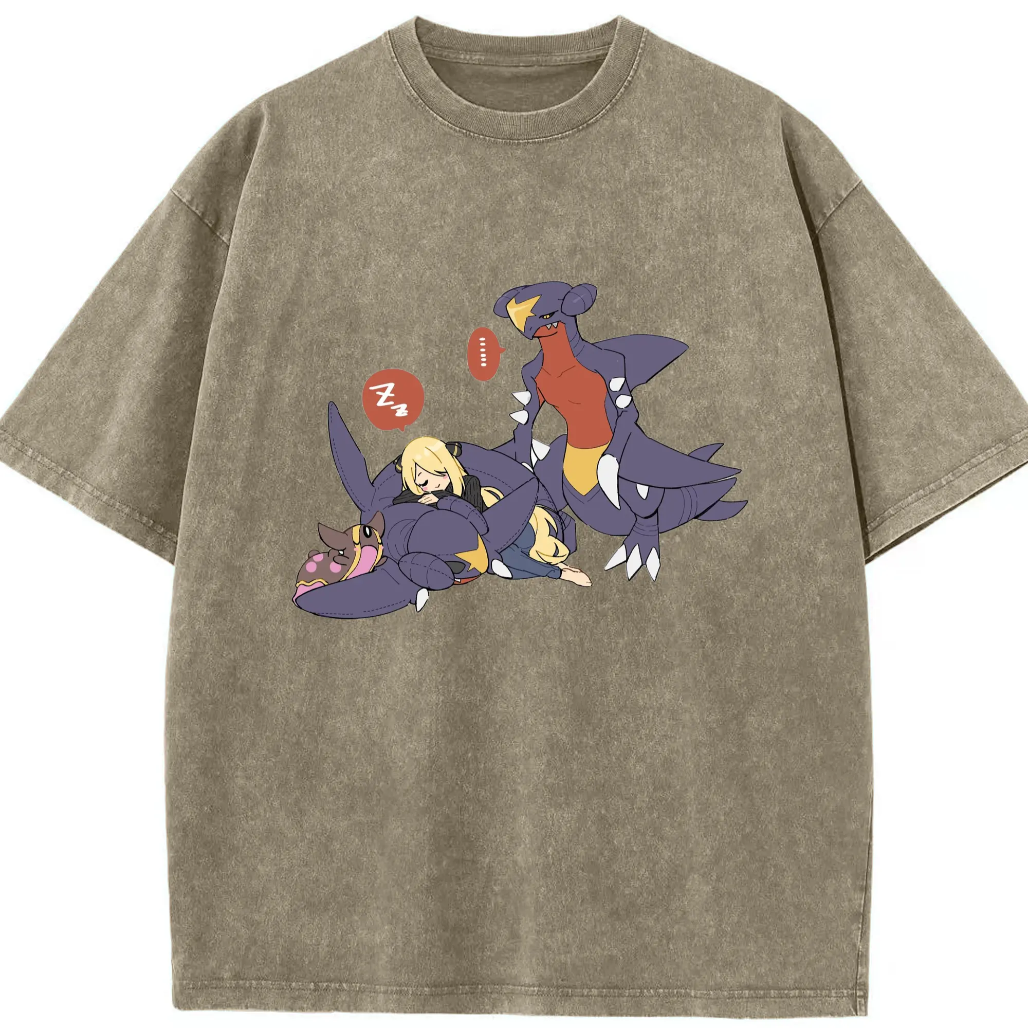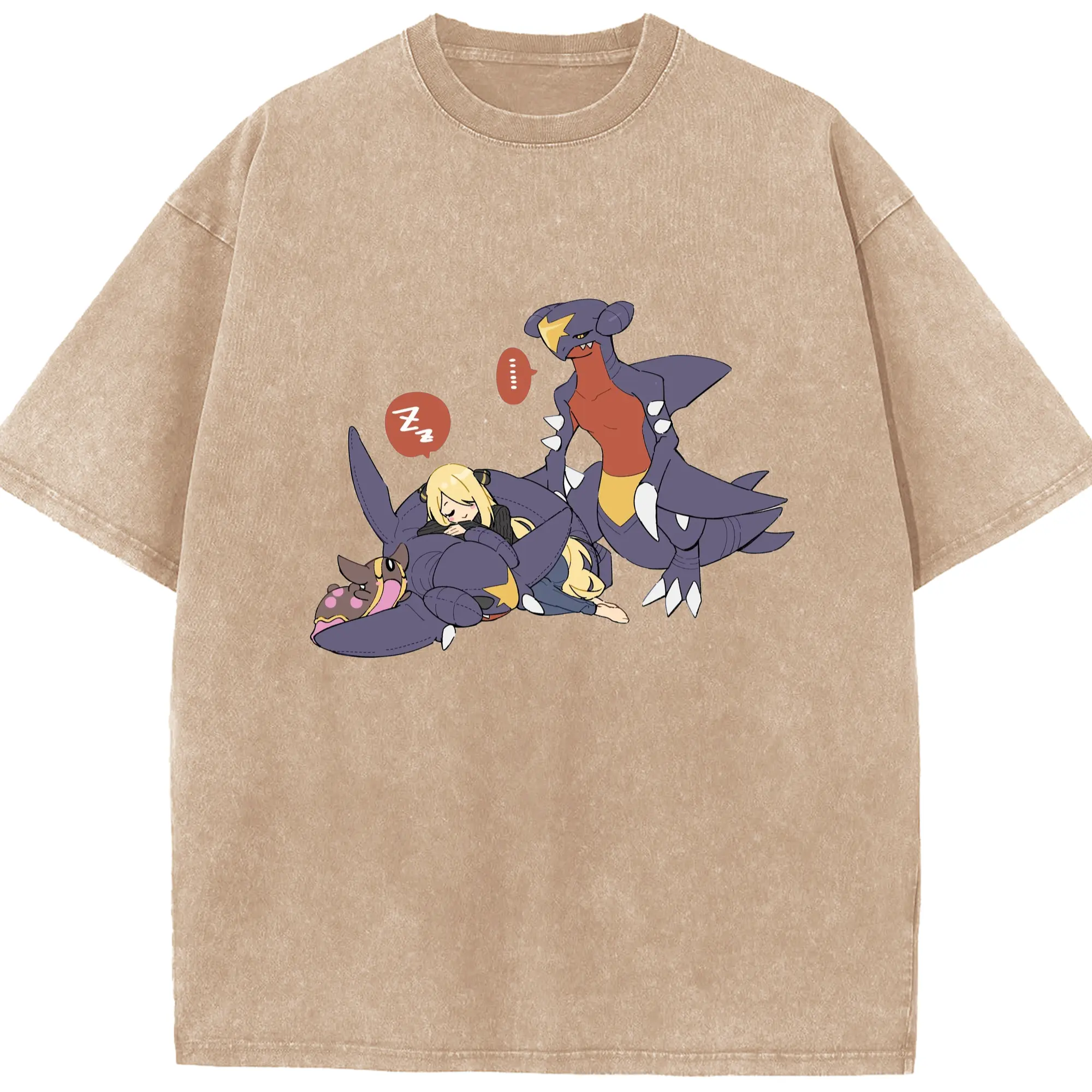 Pokemon Garchomp tee - Washed Vintage Look 230g Cotton Oversized T-Shirt With Front Heat Transfer Print – Soft, Lightweight, Stylish Fit – Comfortable Casual Wear For Sports & Everyday Use