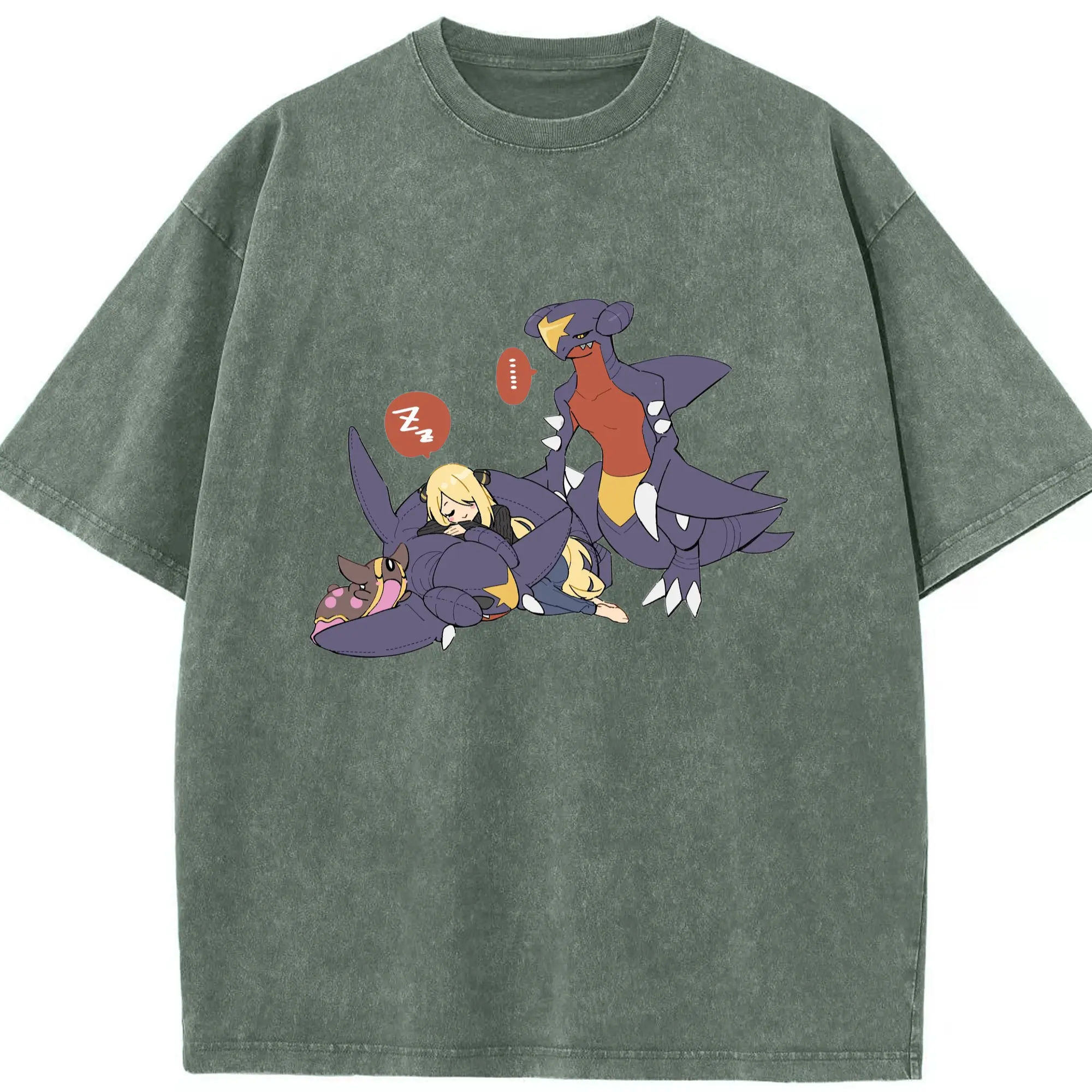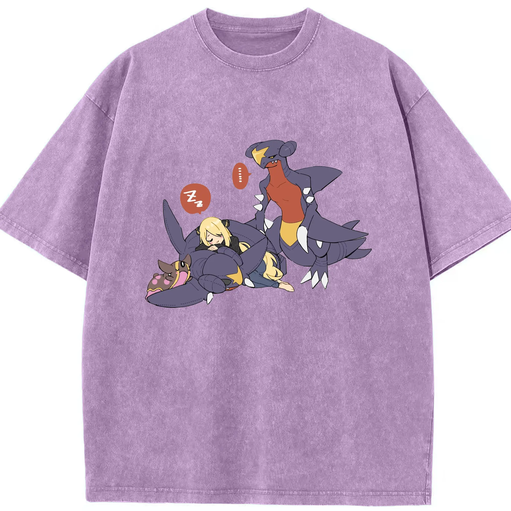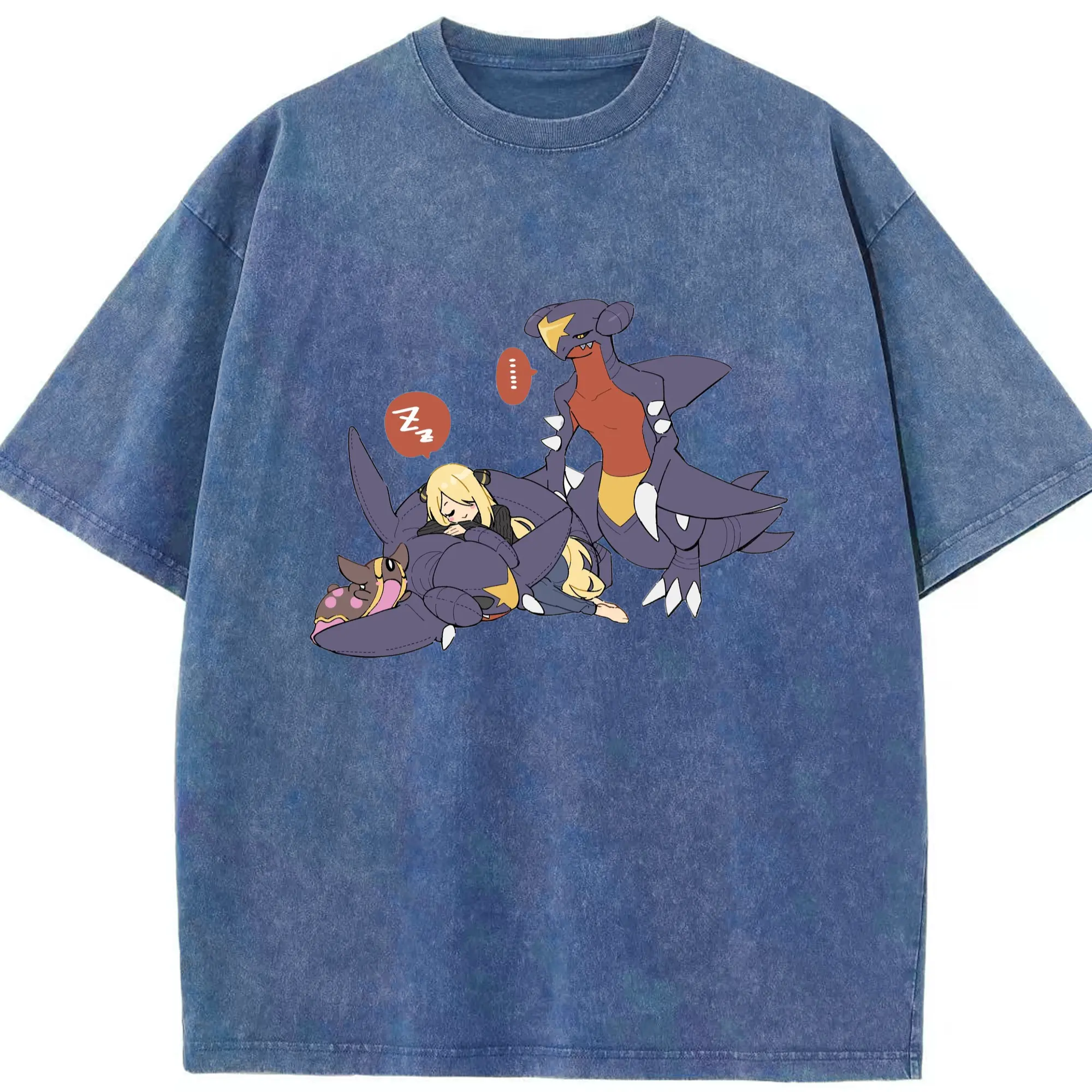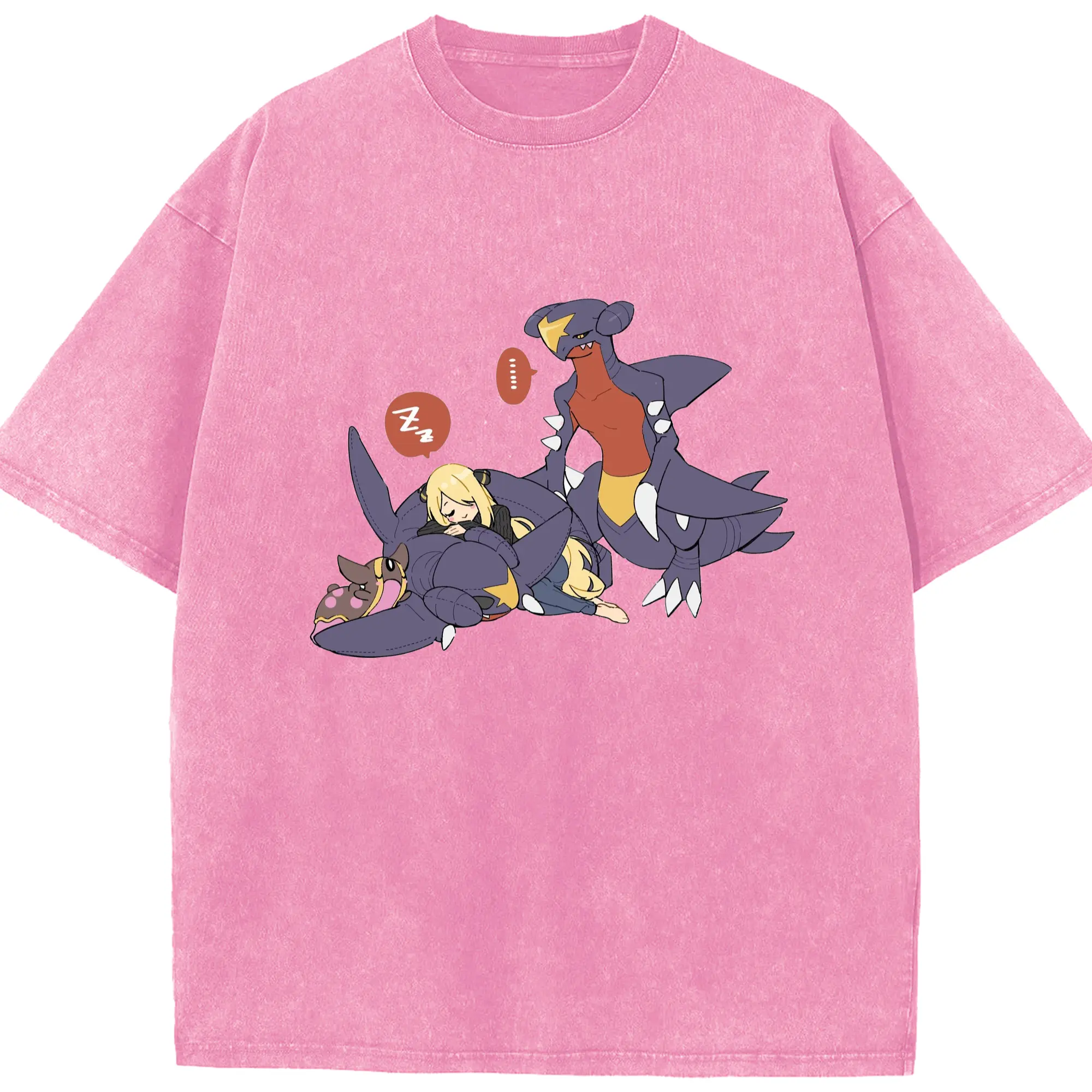 Pokemon Garchomp tee - Washed Vintage Look 230g Cotton Oversized T-Shirt With Front Heat Transfer Print – Soft, Lightweight, Stylish Fit – Comfortable Casual Wear For Sports & Everyday Use