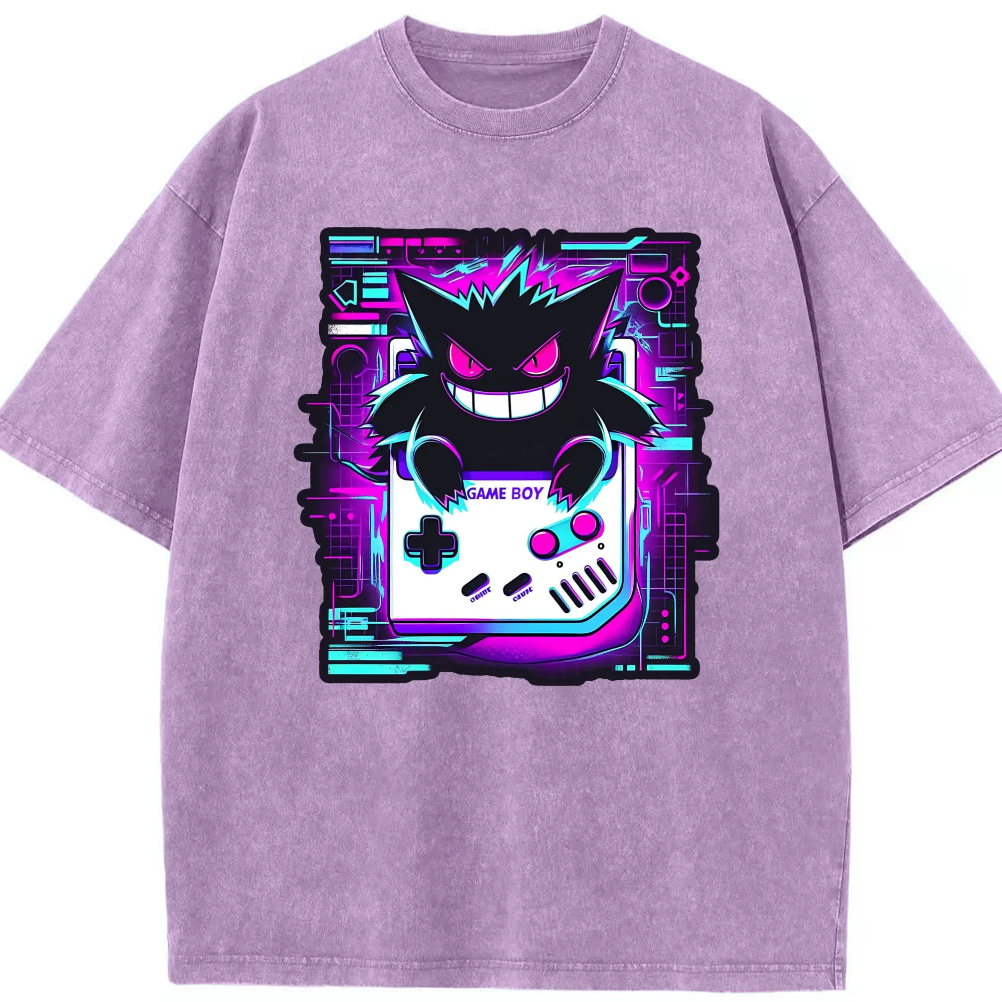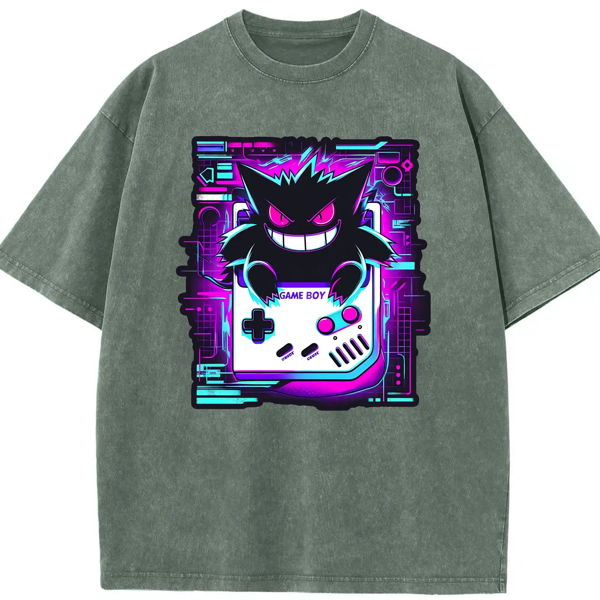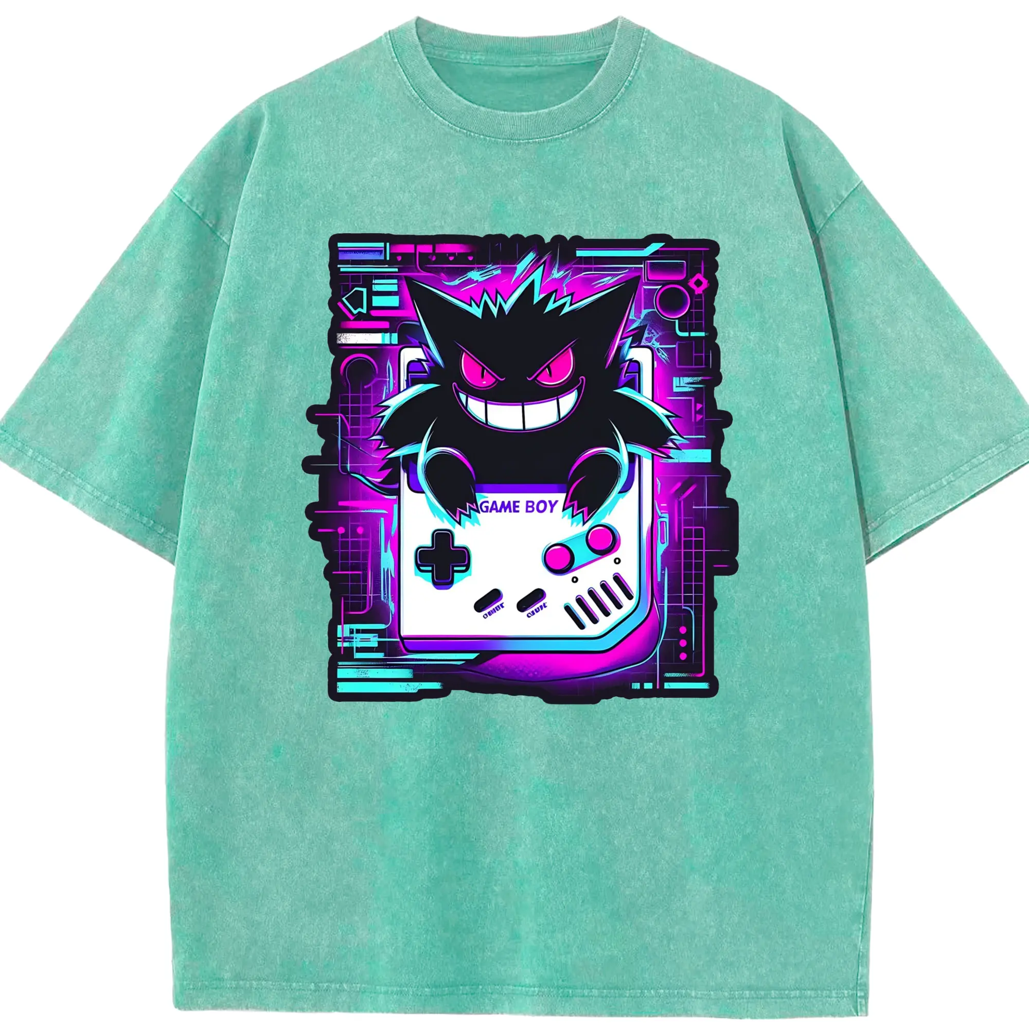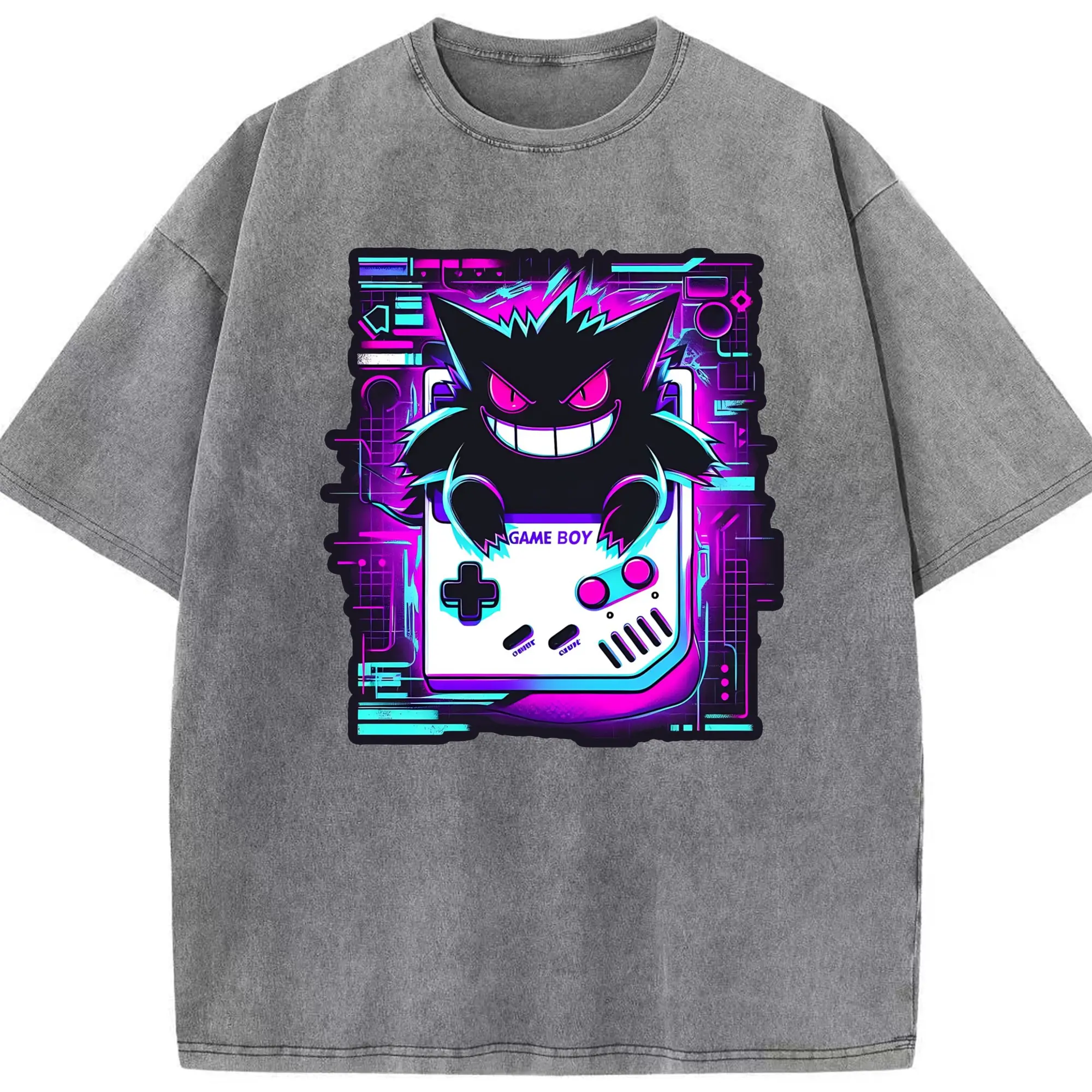 Pokemon gengar art shirt - Washed Vintage Look 230g Cotton Oversized T-Shirt With Front Heat Transfer Print – Soft, Lightweight, Stylish Fit – Comfortable Casual Wear For Sports & Everyday Use