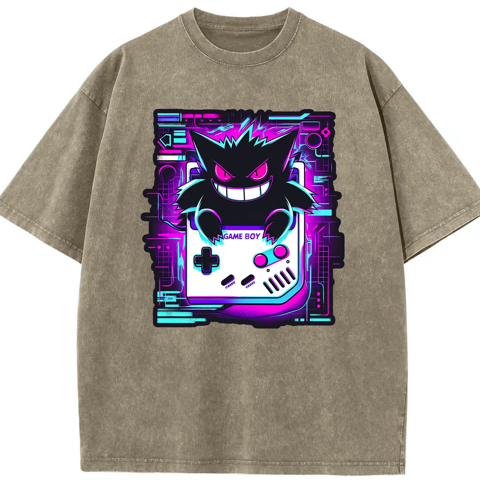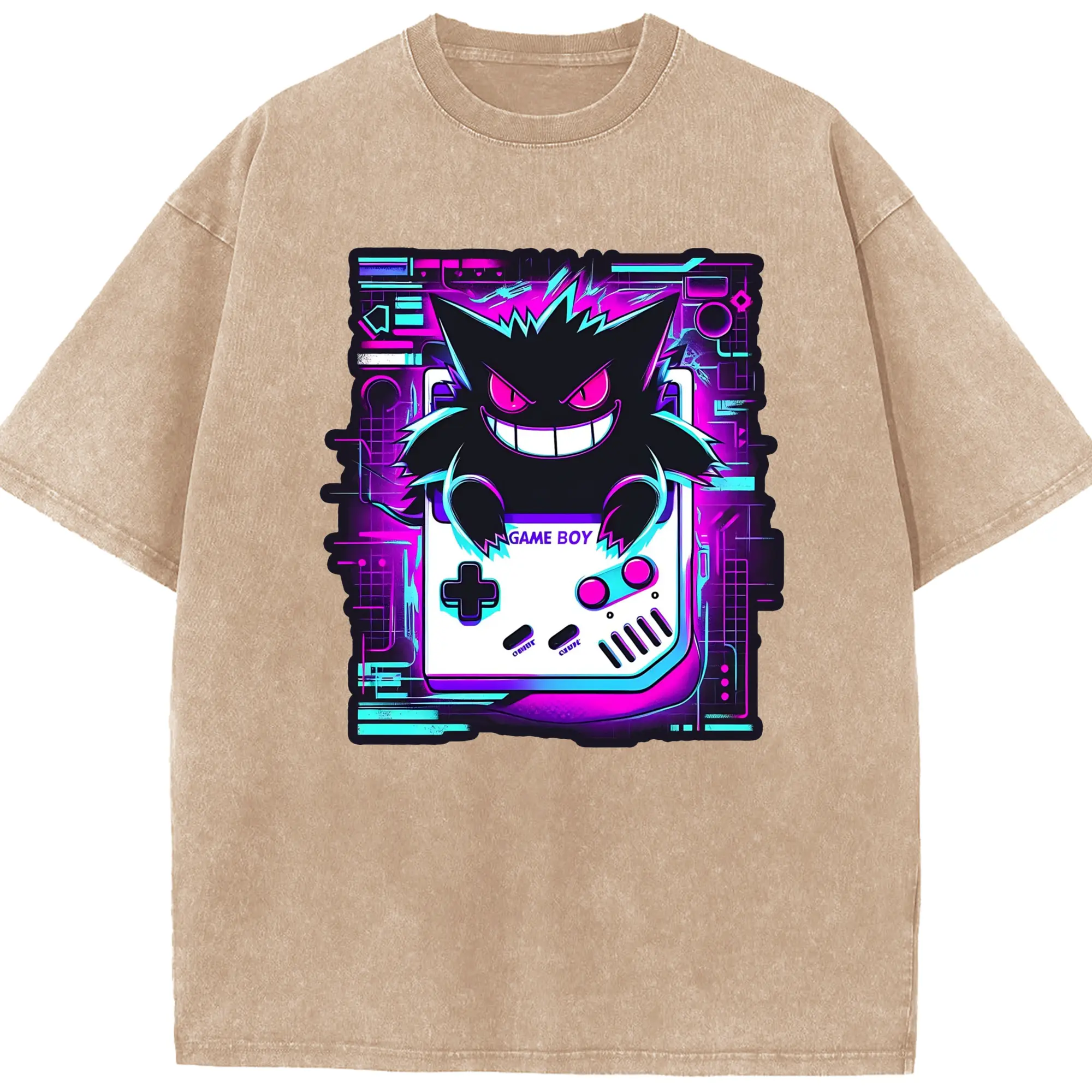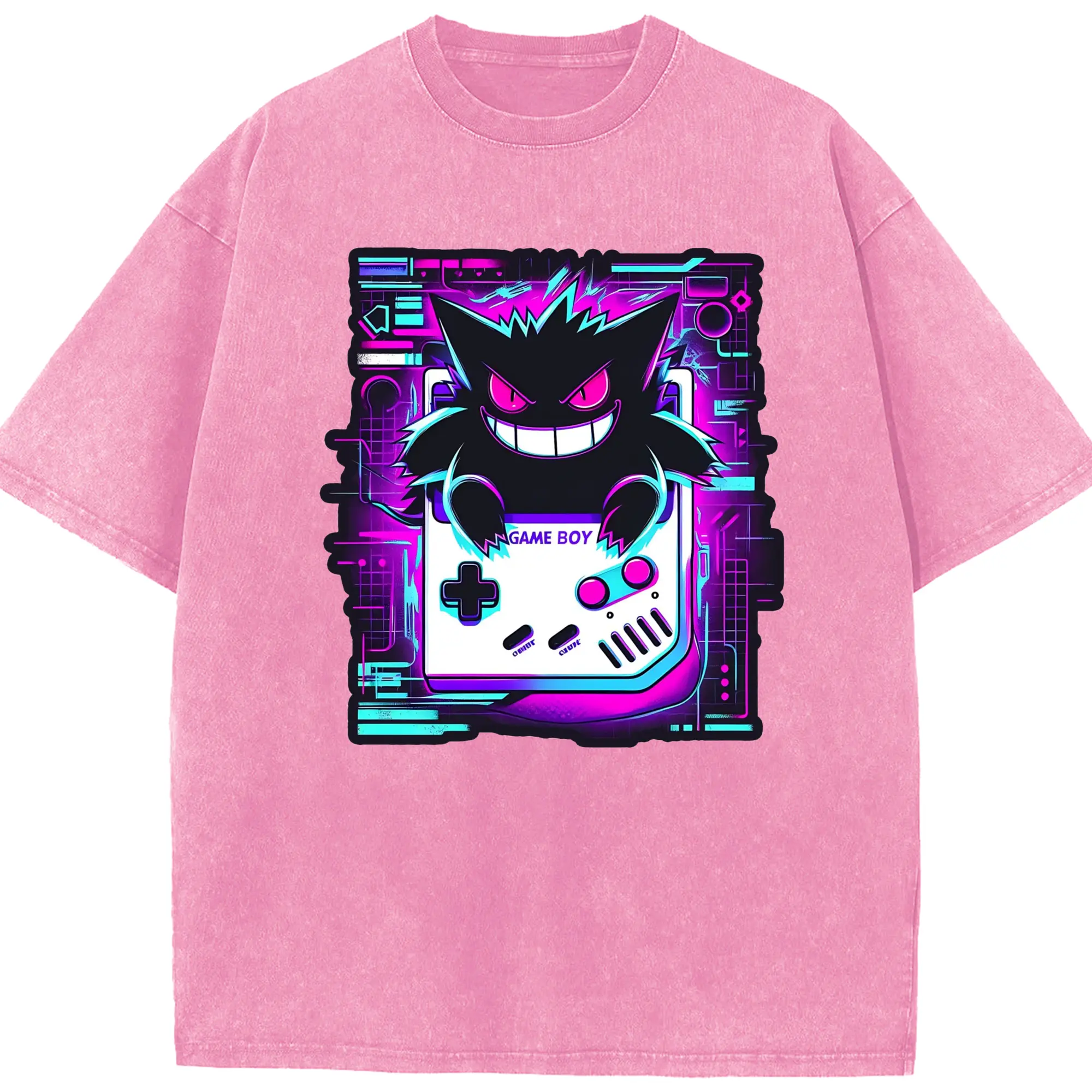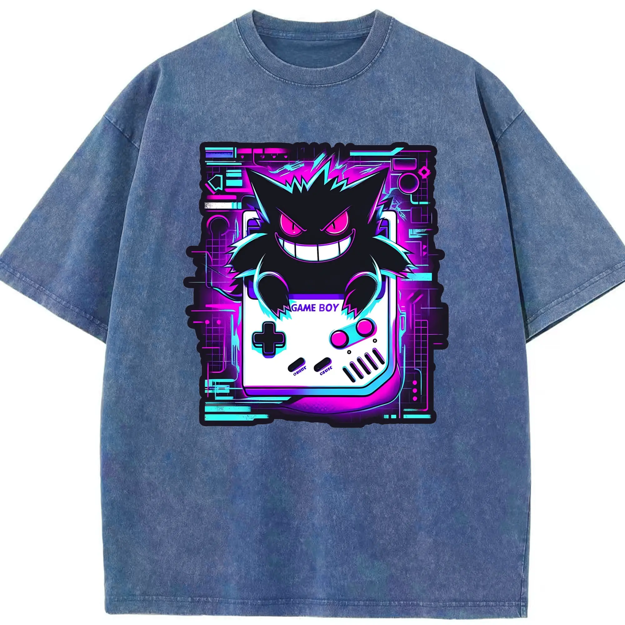 Pokemon gengar art shirt - Washed Vintage Look 230g Cotton Oversized T-Shirt With Front Heat Transfer Print – Soft, Lightweight, Stylish Fit – Comfortable Casual Wear For Sports & Everyday Use