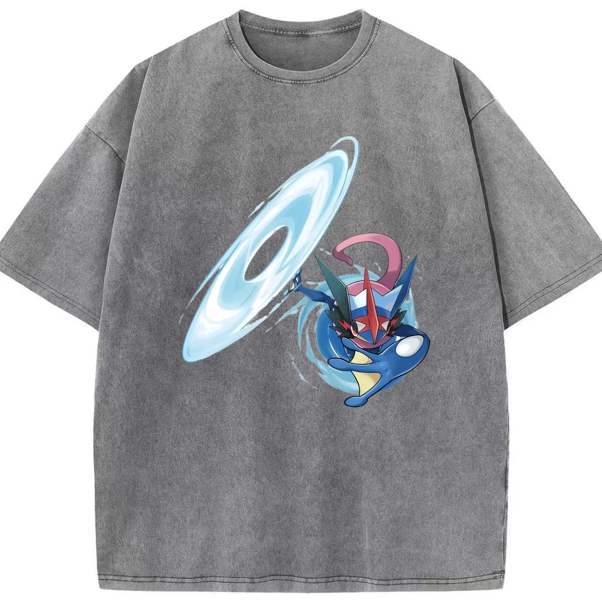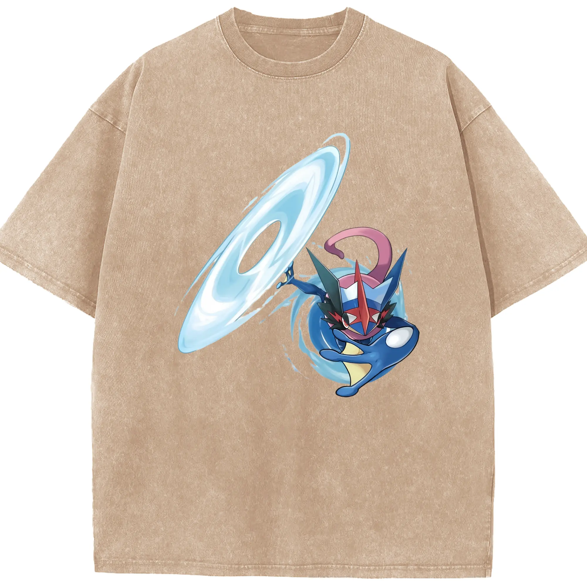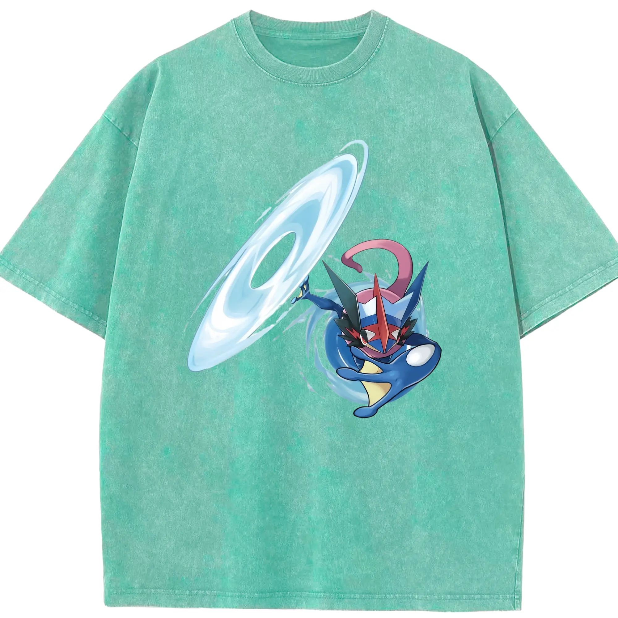 Pokemon greninja graphic tee - Washed Vintage Look 230g Cotton Oversized T-Shirt With Front Heat Transfer Print – Soft, Lightweight, Stylish Fit – Comfortable Casual Wear For Sports & Everyday Use