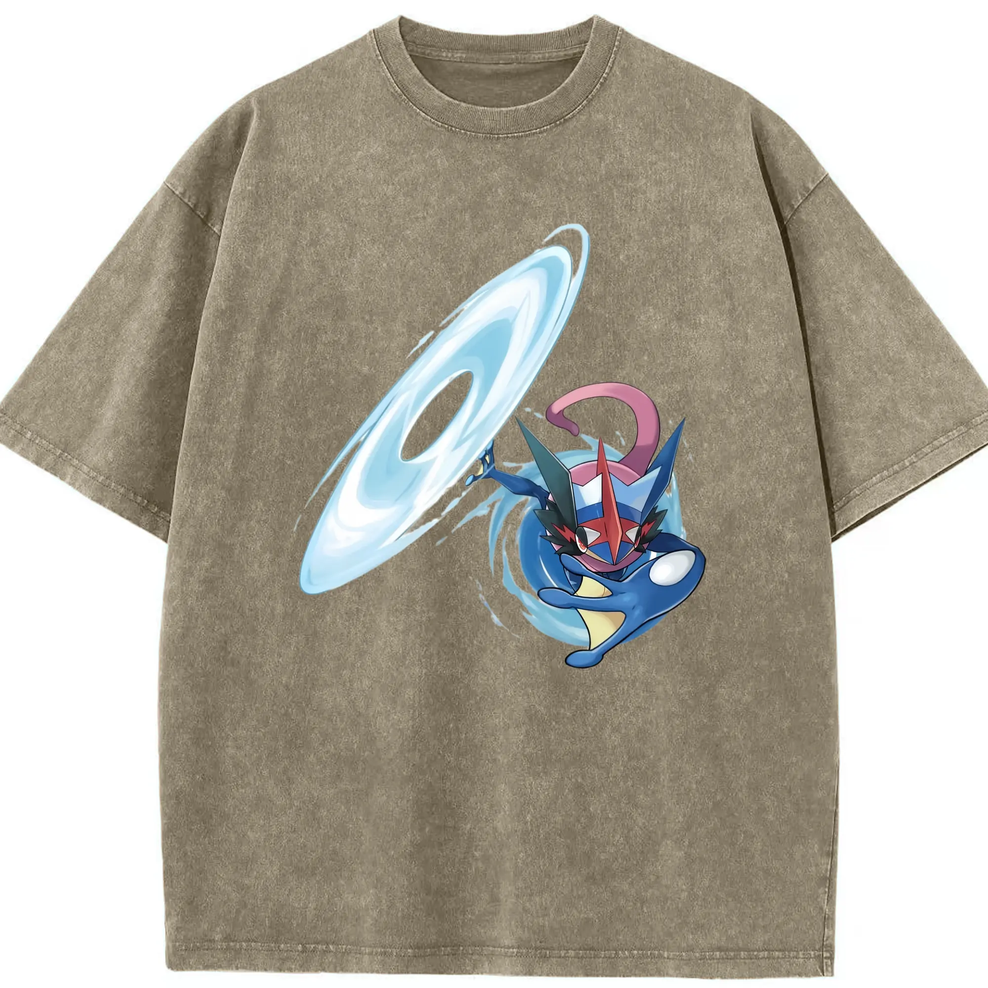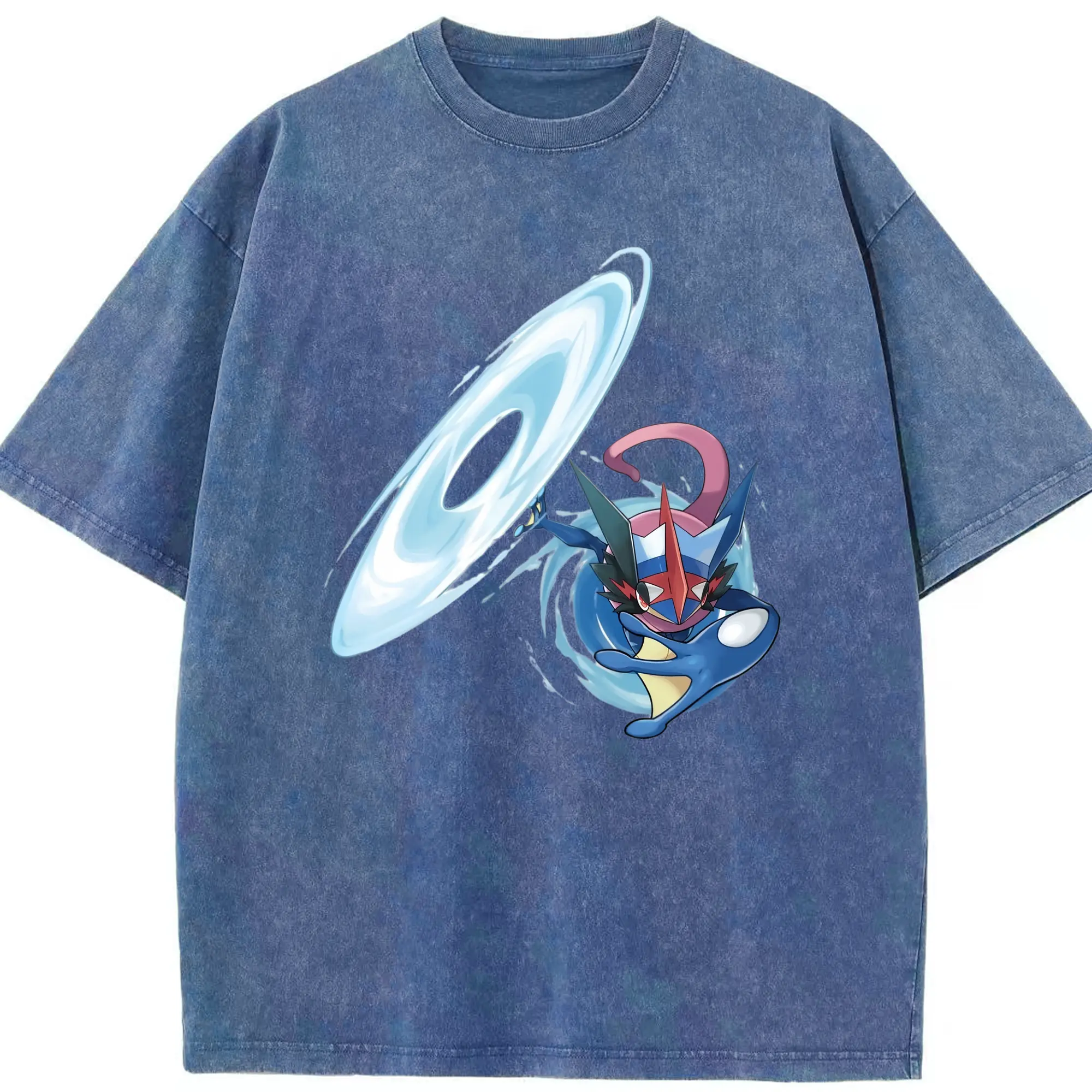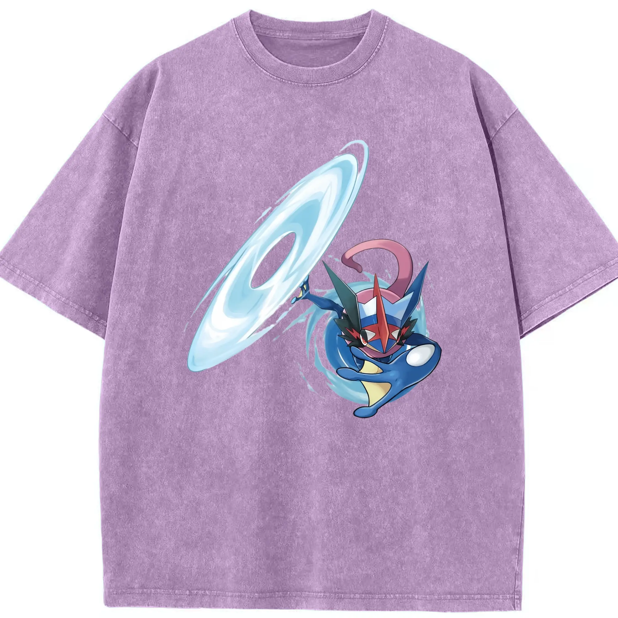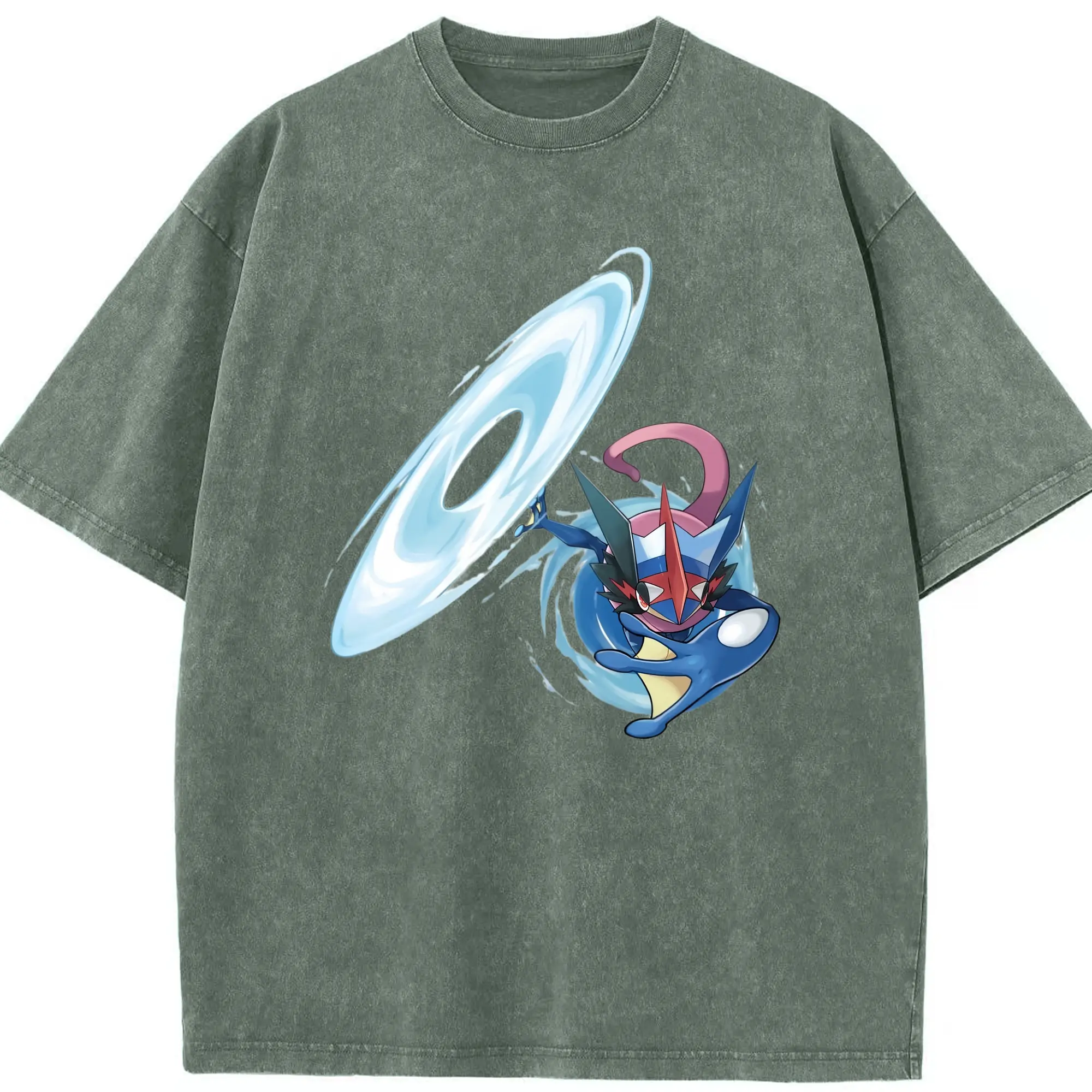 Pokemon greninja graphic tee - Washed Vintage Look 230g Cotton Oversized T-Shirt With Front Heat Transfer Print – Soft, Lightweight, Stylish Fit – Comfortable Casual Wear For Sports & Everyday Use