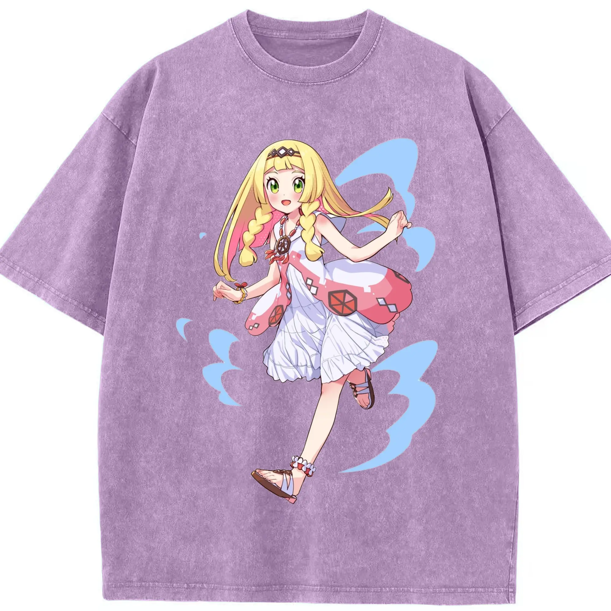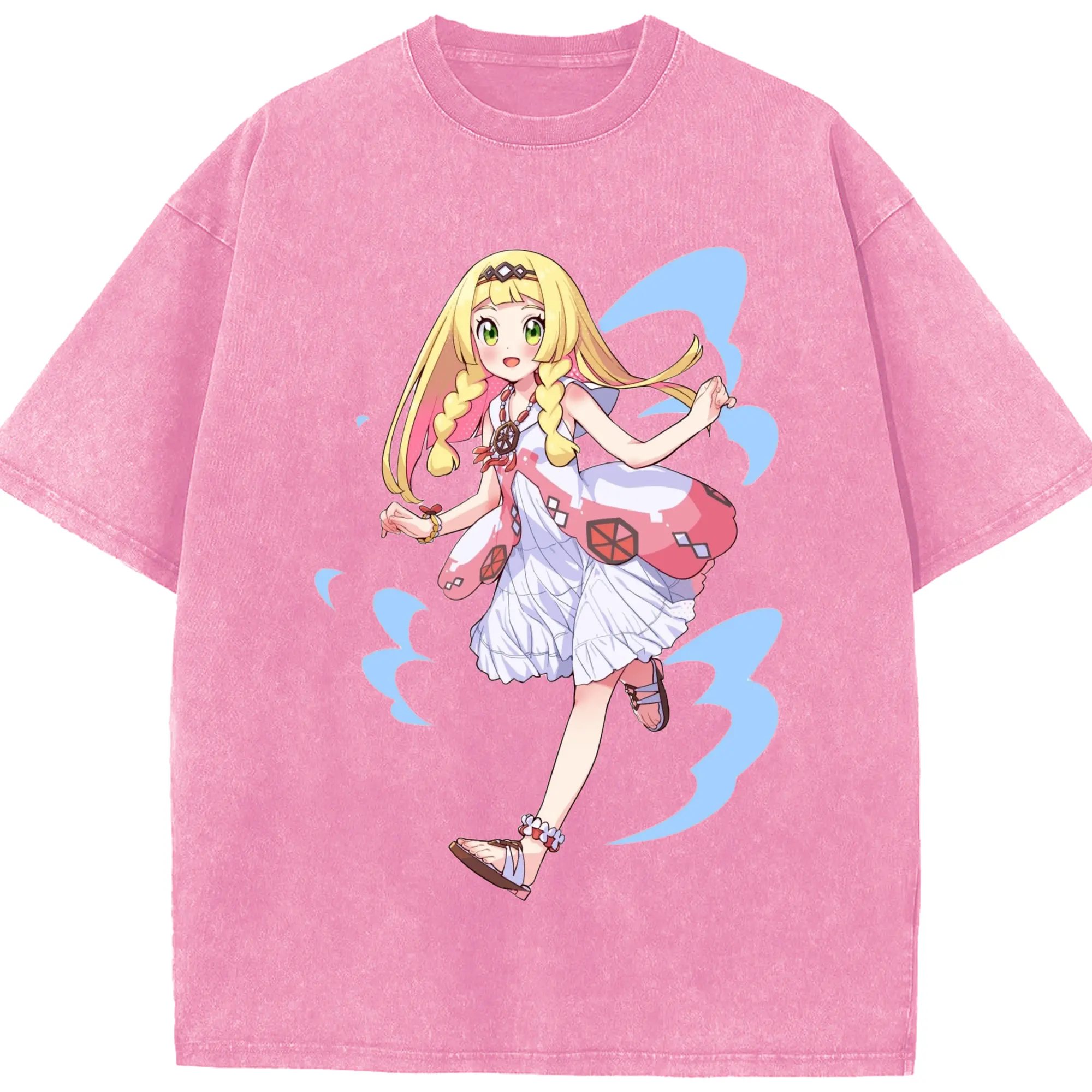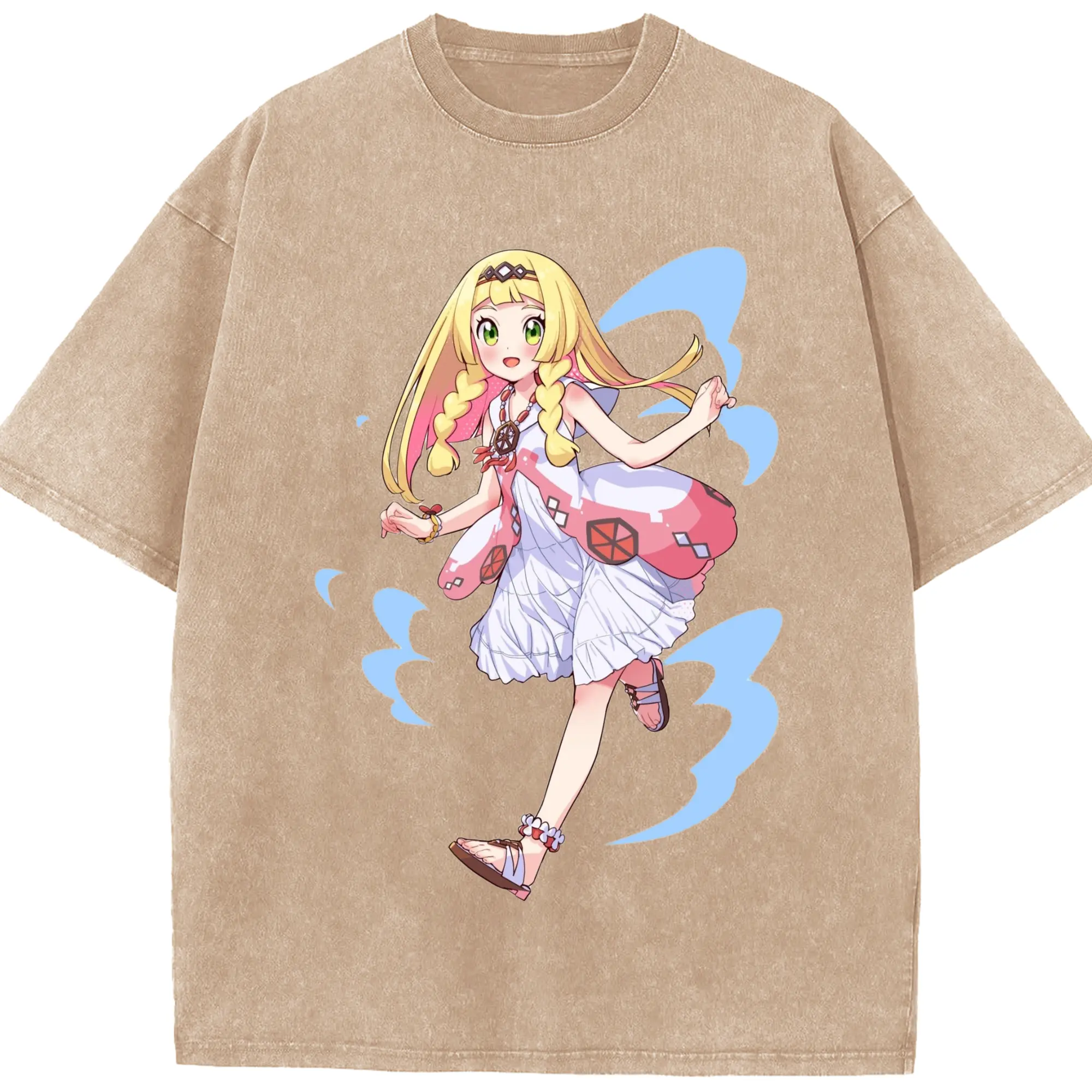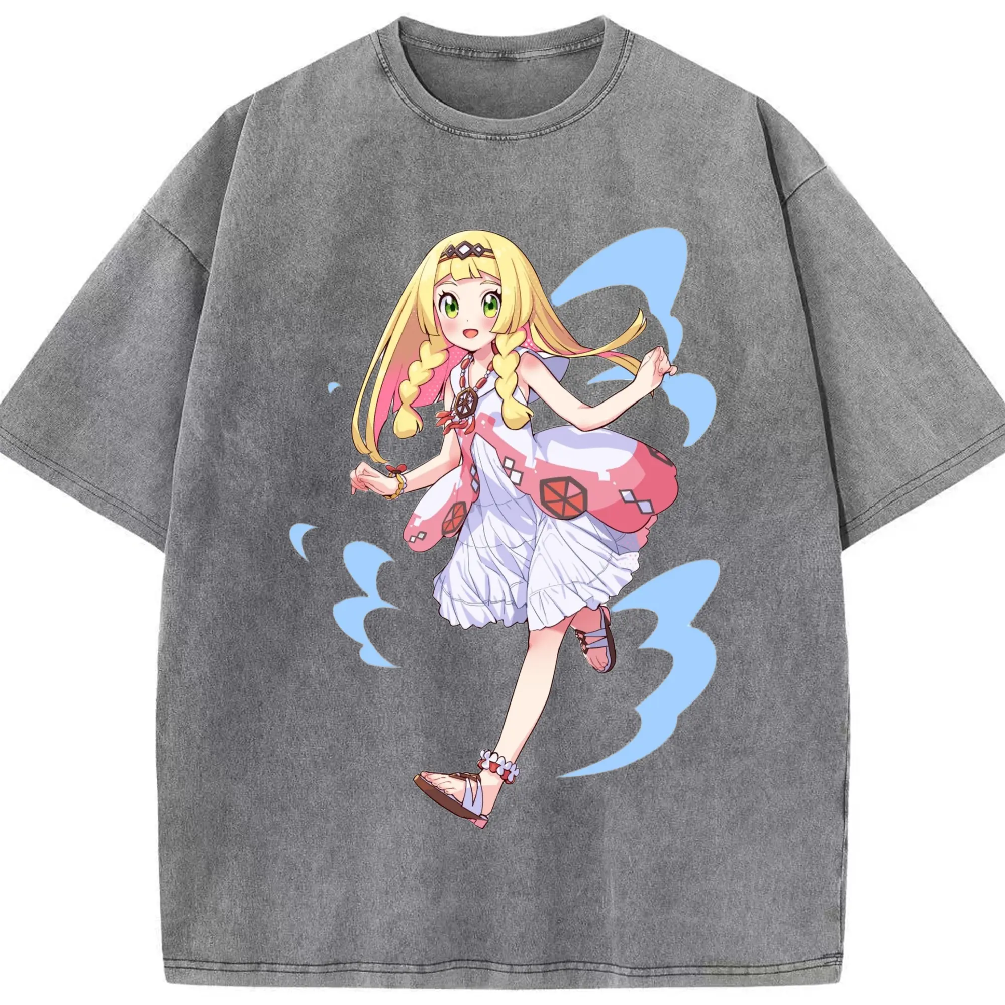 Pokemon Lillie T-Shirts - Washed Vintage Look 230g Cotton Oversized T-Shirt With Front Heat Transfer Print – Soft, Lightweight, Stylish Fit – Comfortable Casual Wear For Sports & Everyday Use