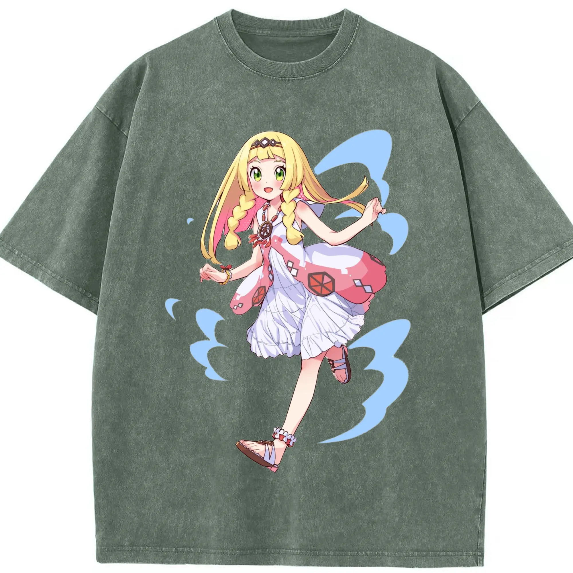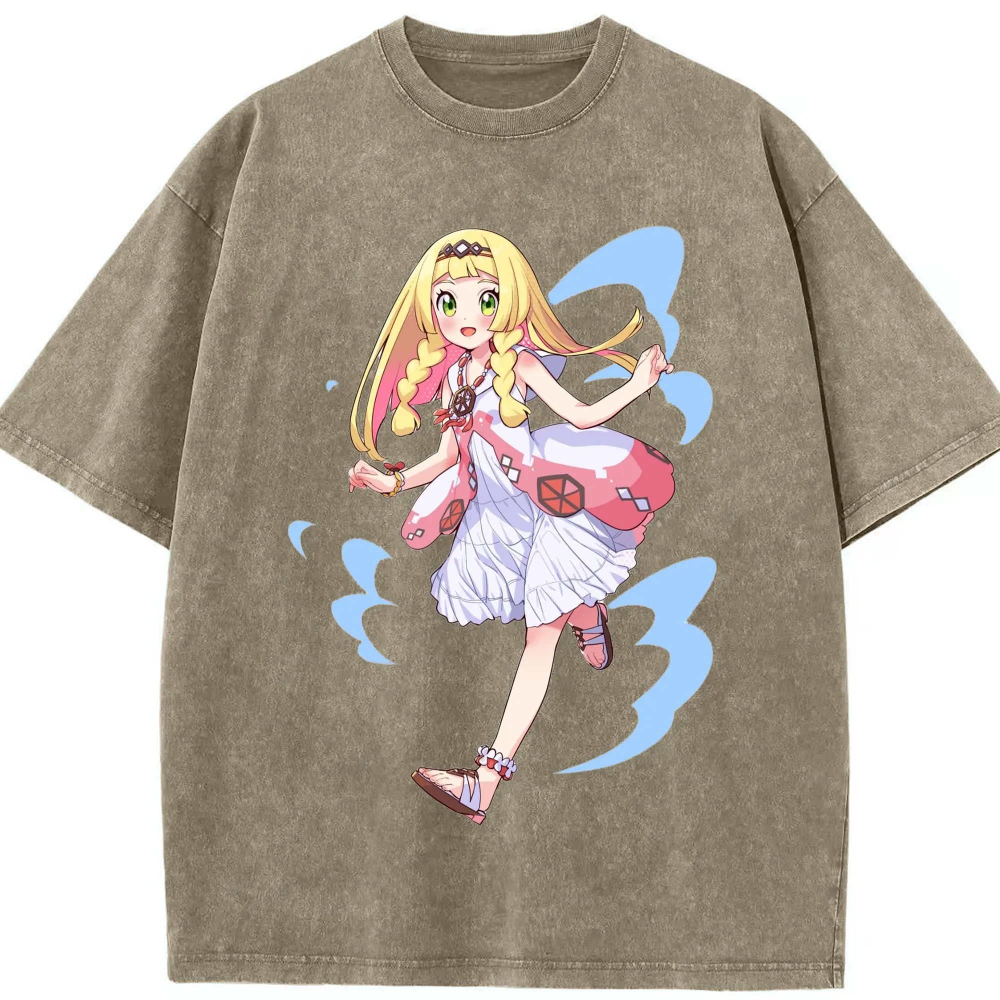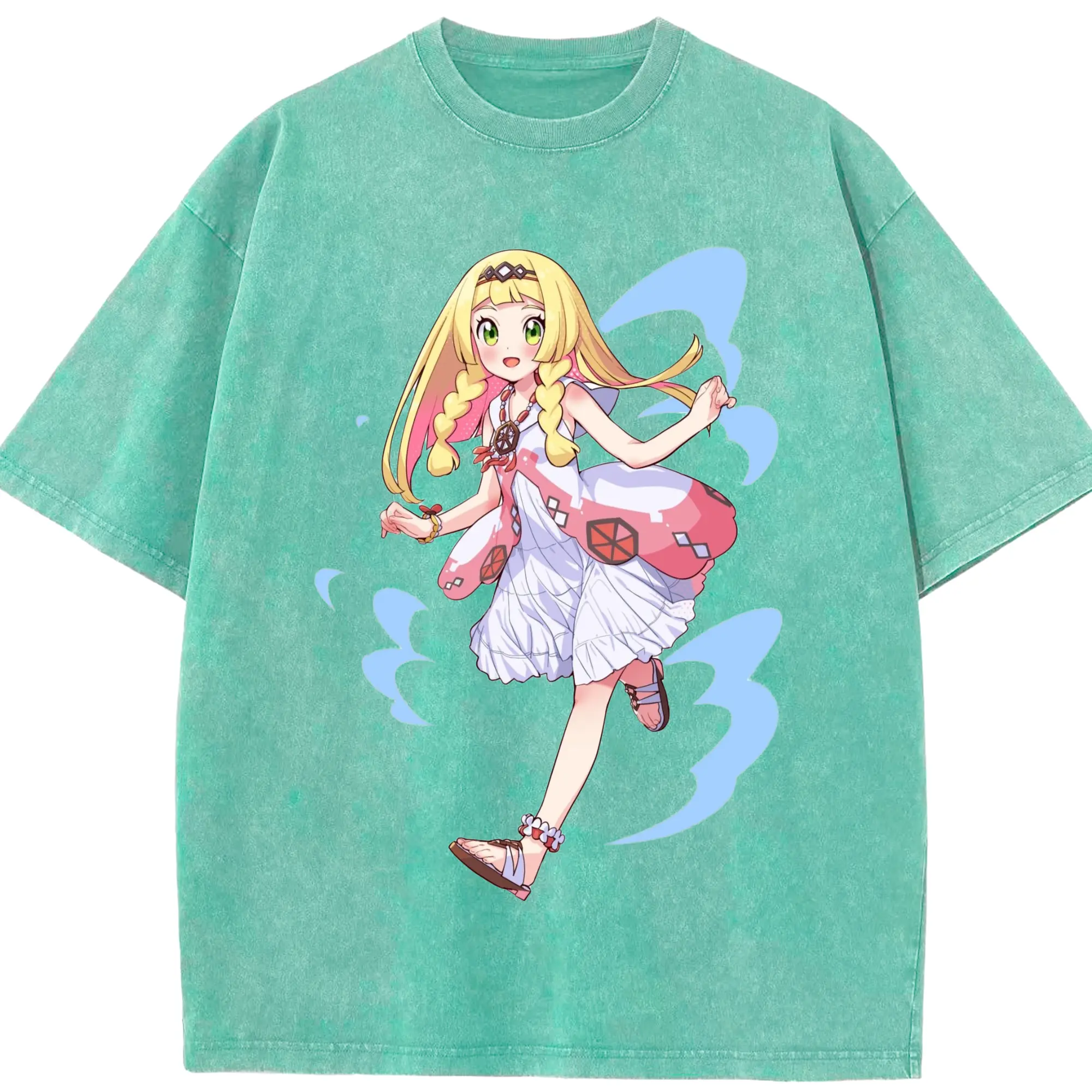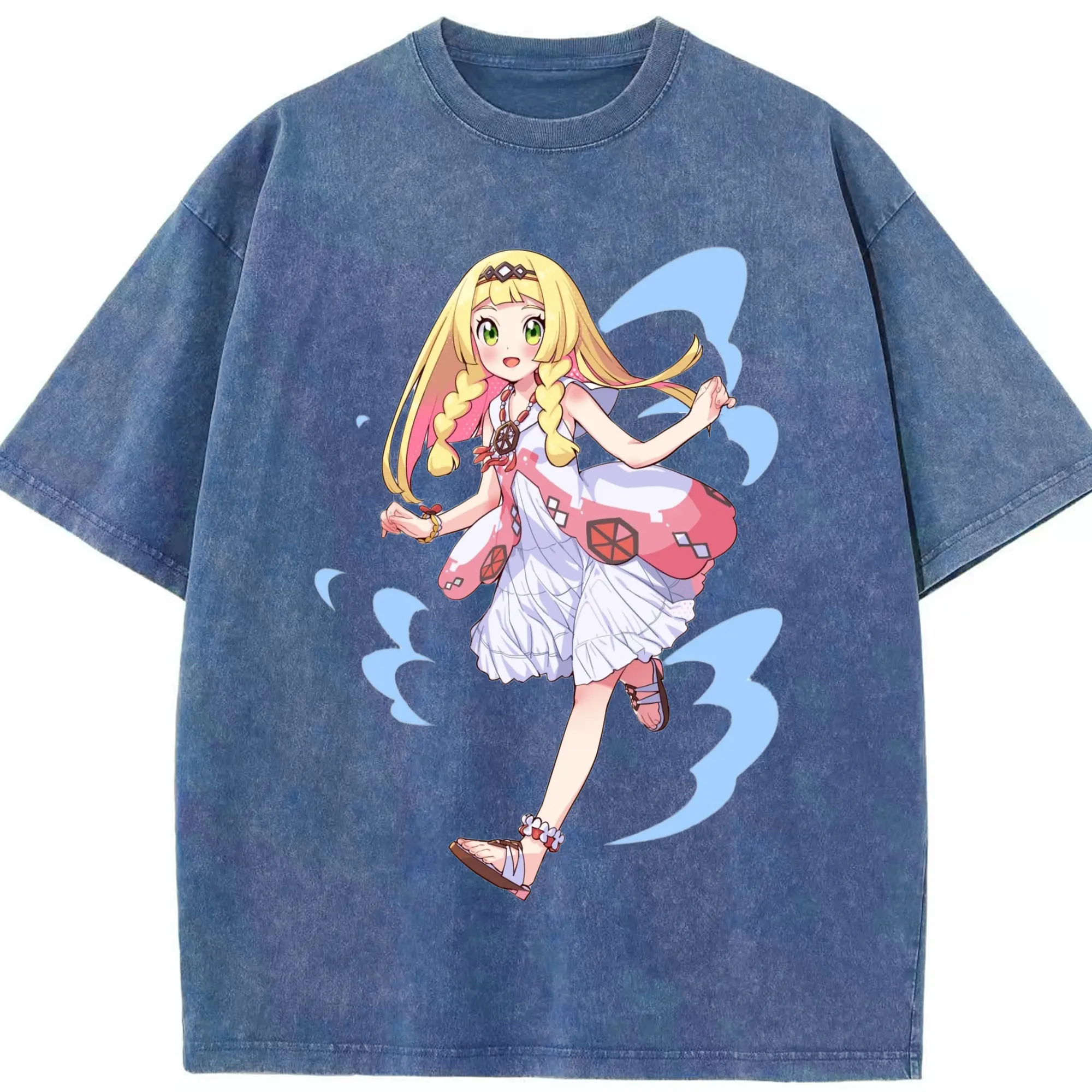Pokemon Lillie T-Shirts - Washed Vintage Look 230g Cotton Oversized T-Shirt With Front Heat Transfer Print – Soft, Lightweight, Stylish Fit – Comfortable Casual Wear For Sports & Everyday Use