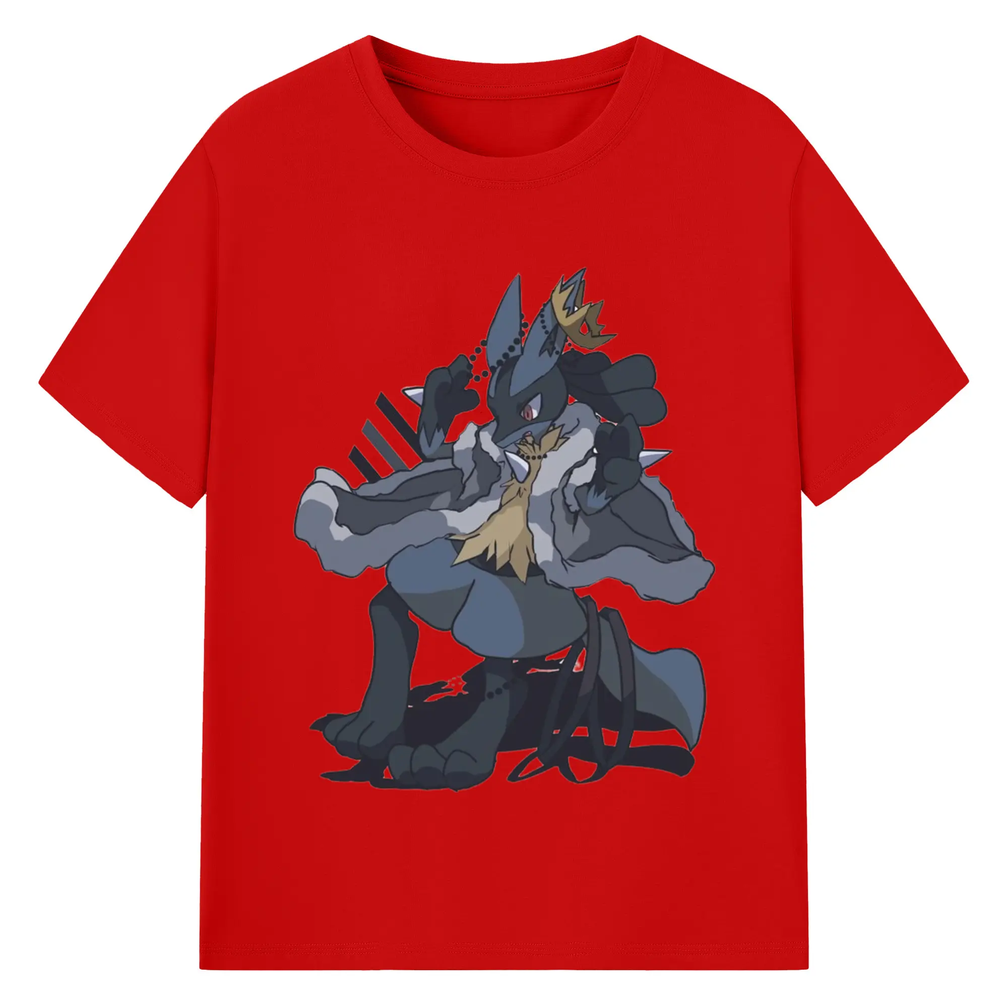 Pokemon Lucario graphic t shirt - 180g Cotton T-Shirt With Front Heat Transfer Print – Soft, Lightweight, Fitted Design – Comfortable Casual Wear For Sports & Everyday Use
