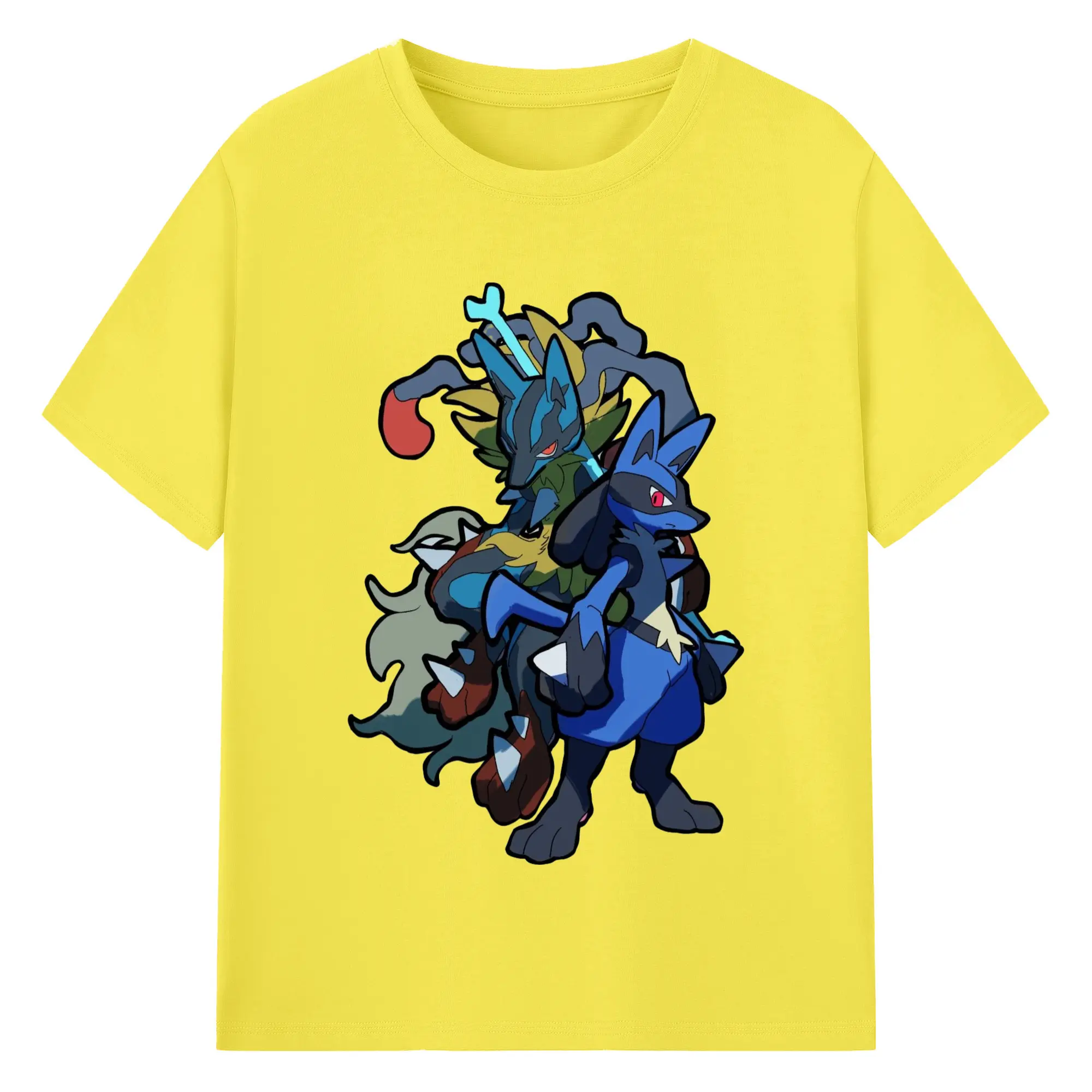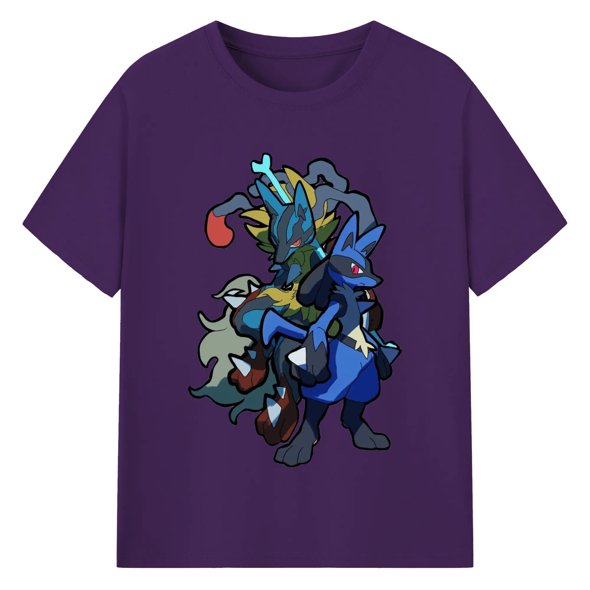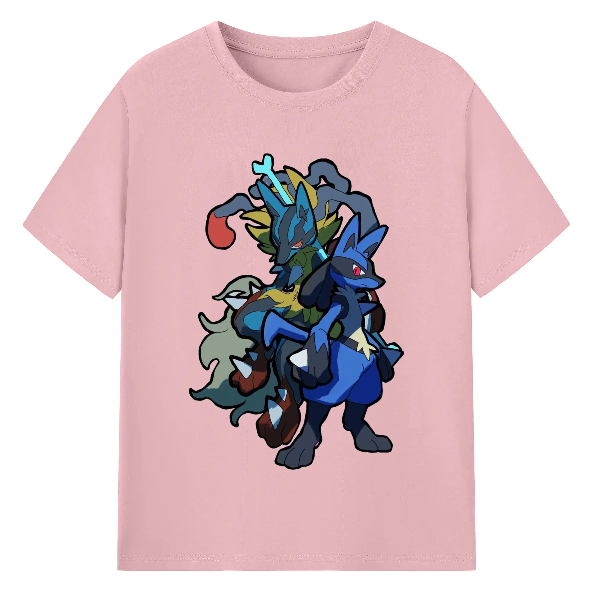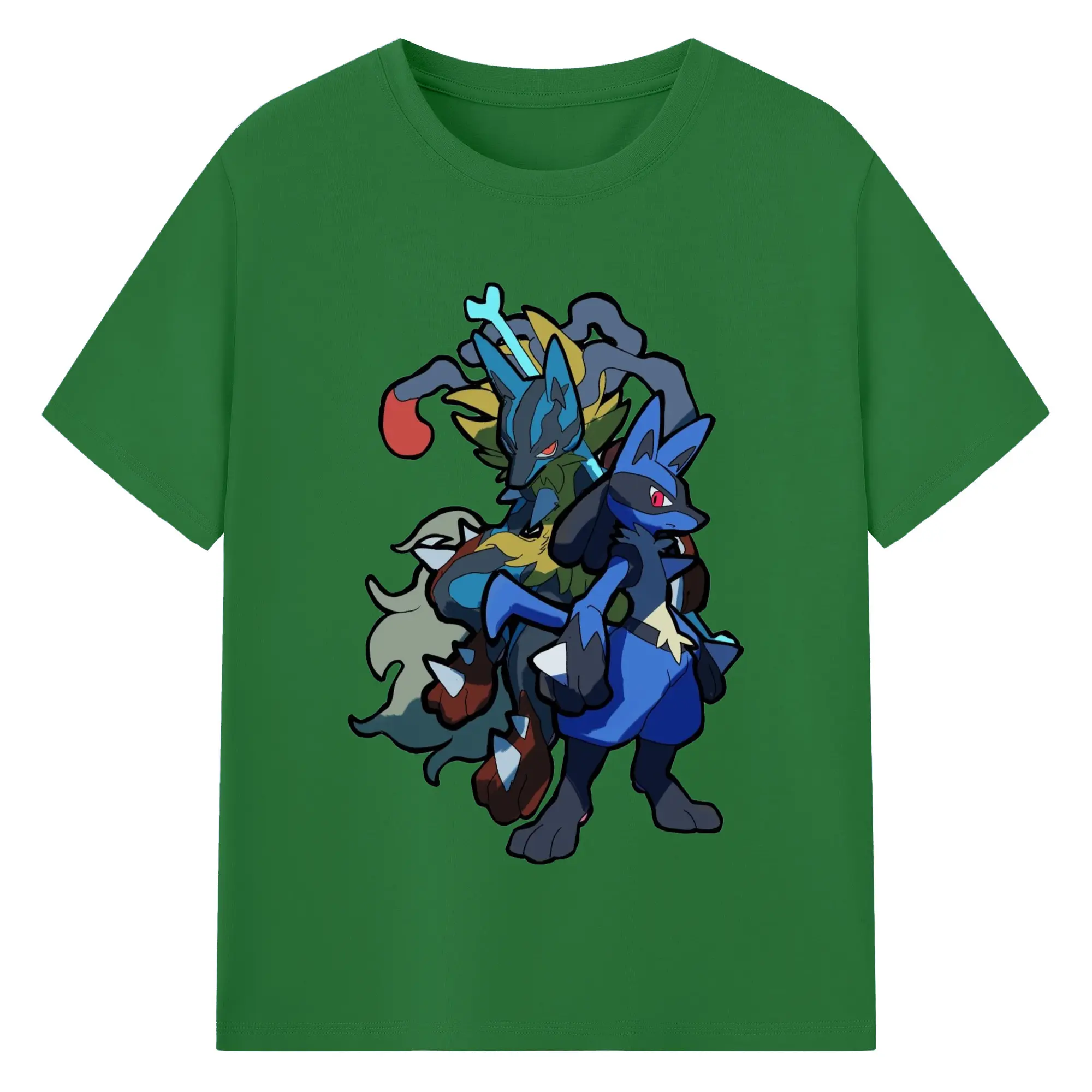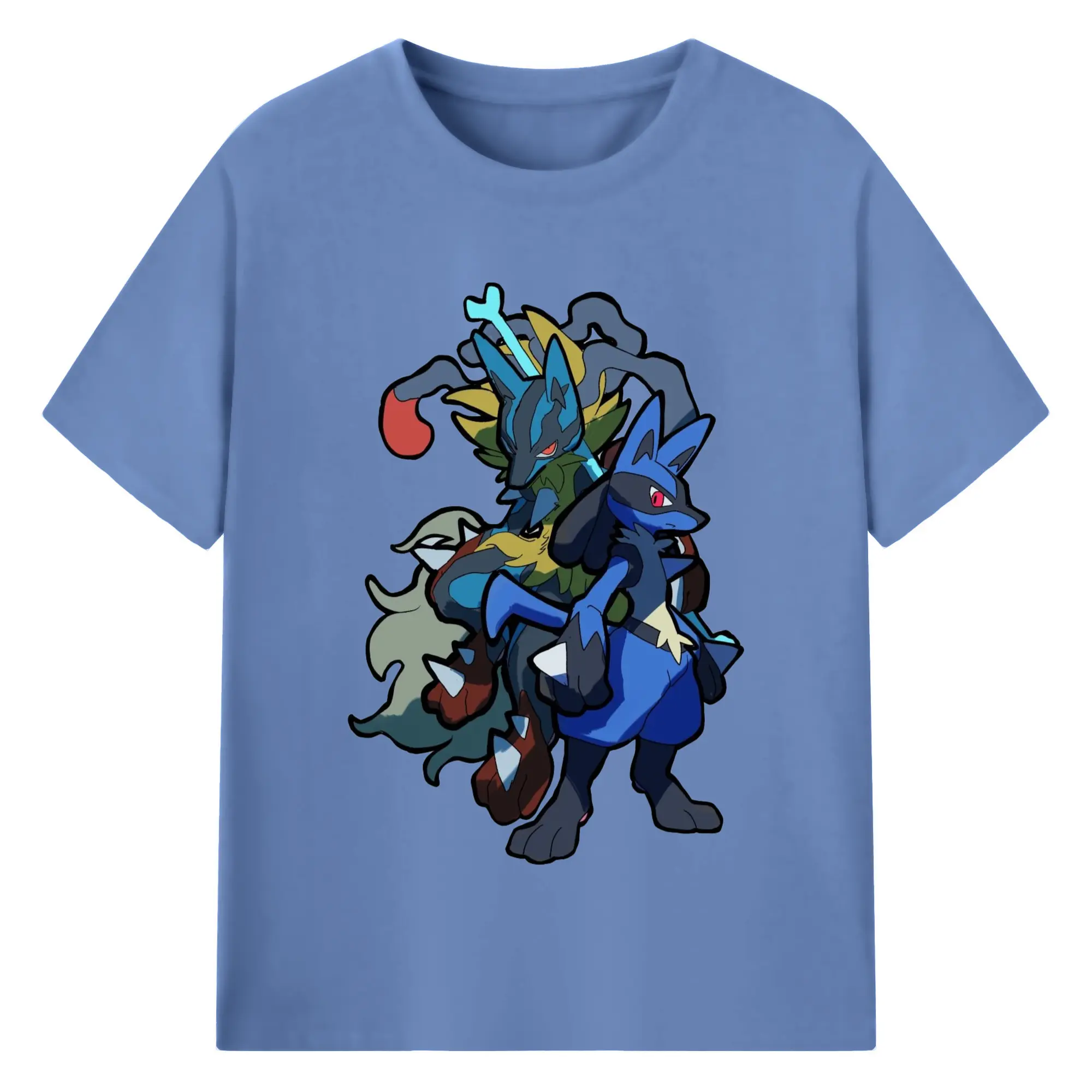 Pokemon lucario tee shirt - 180g Cotton T-Shirt With Front Heat Transfer Print – Soft, Lightweight, Fitted Design – Comfortable Casual Wear For Sports & Everyday Use