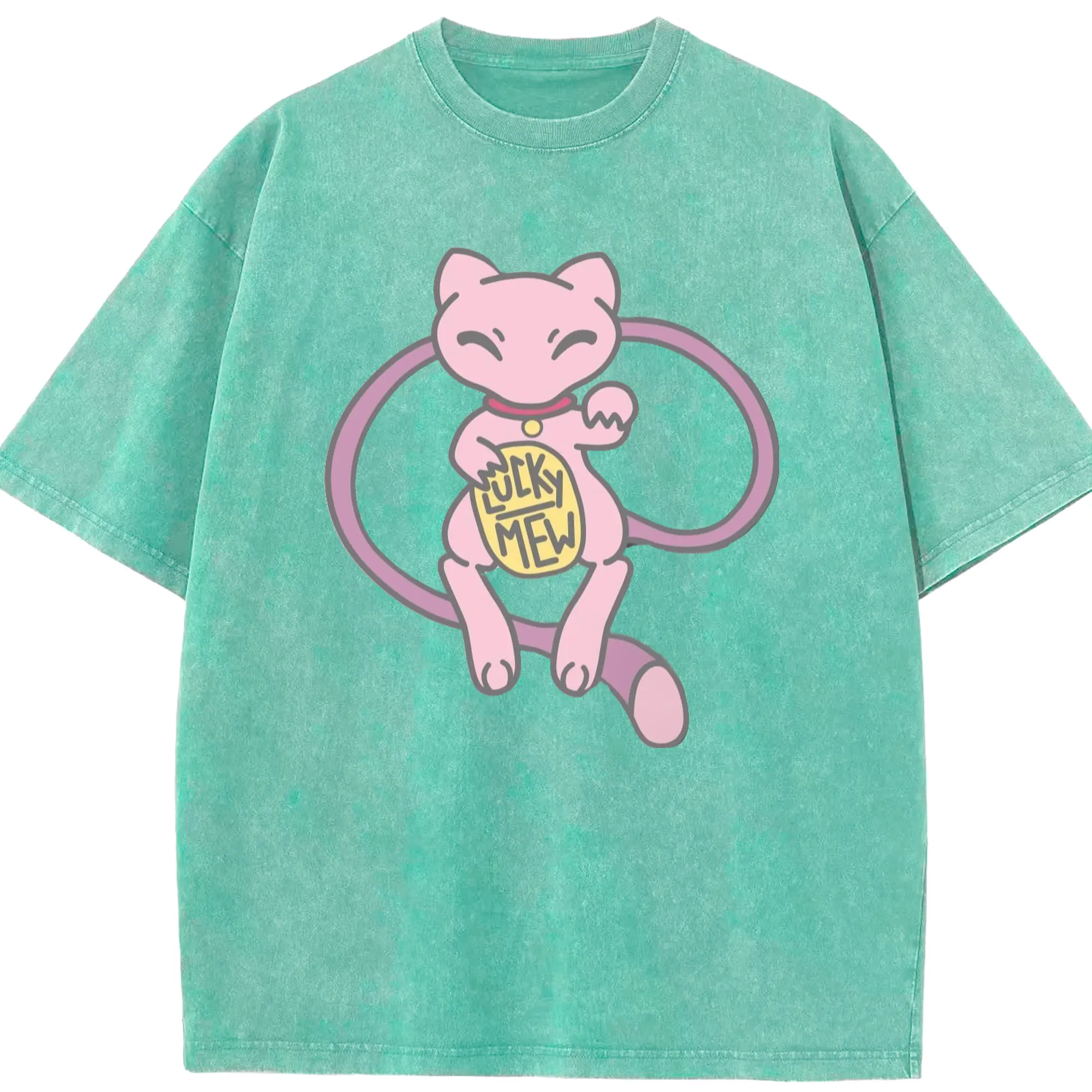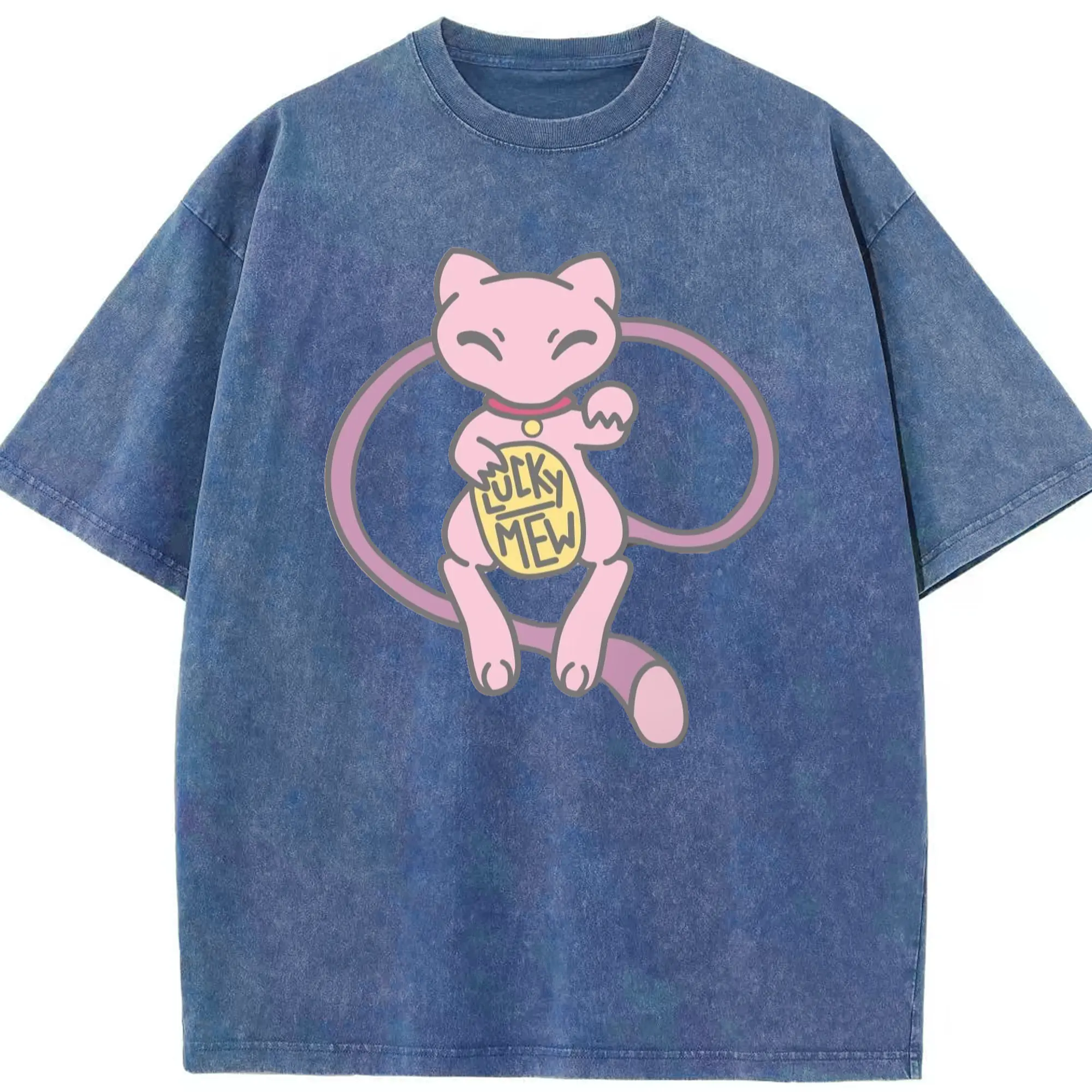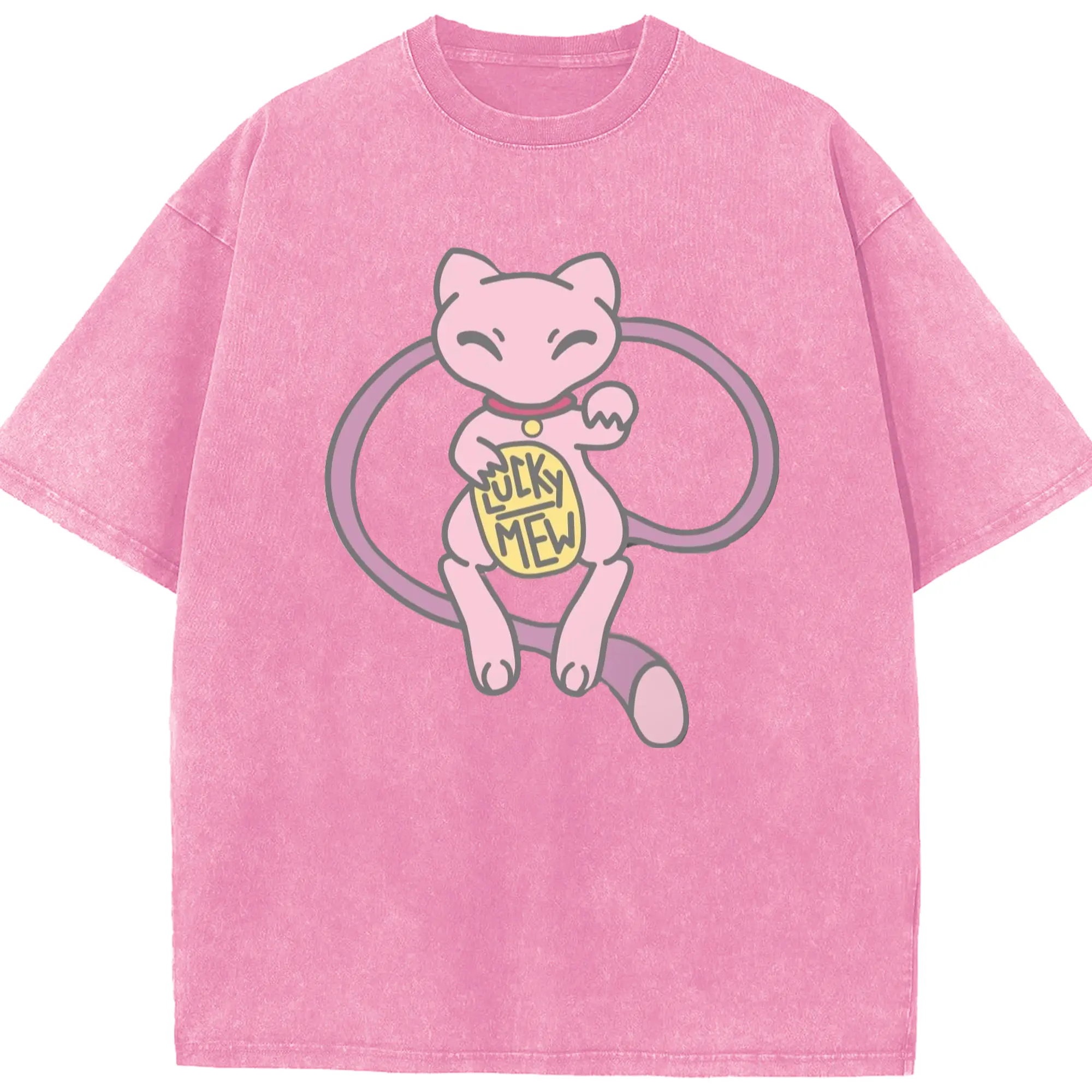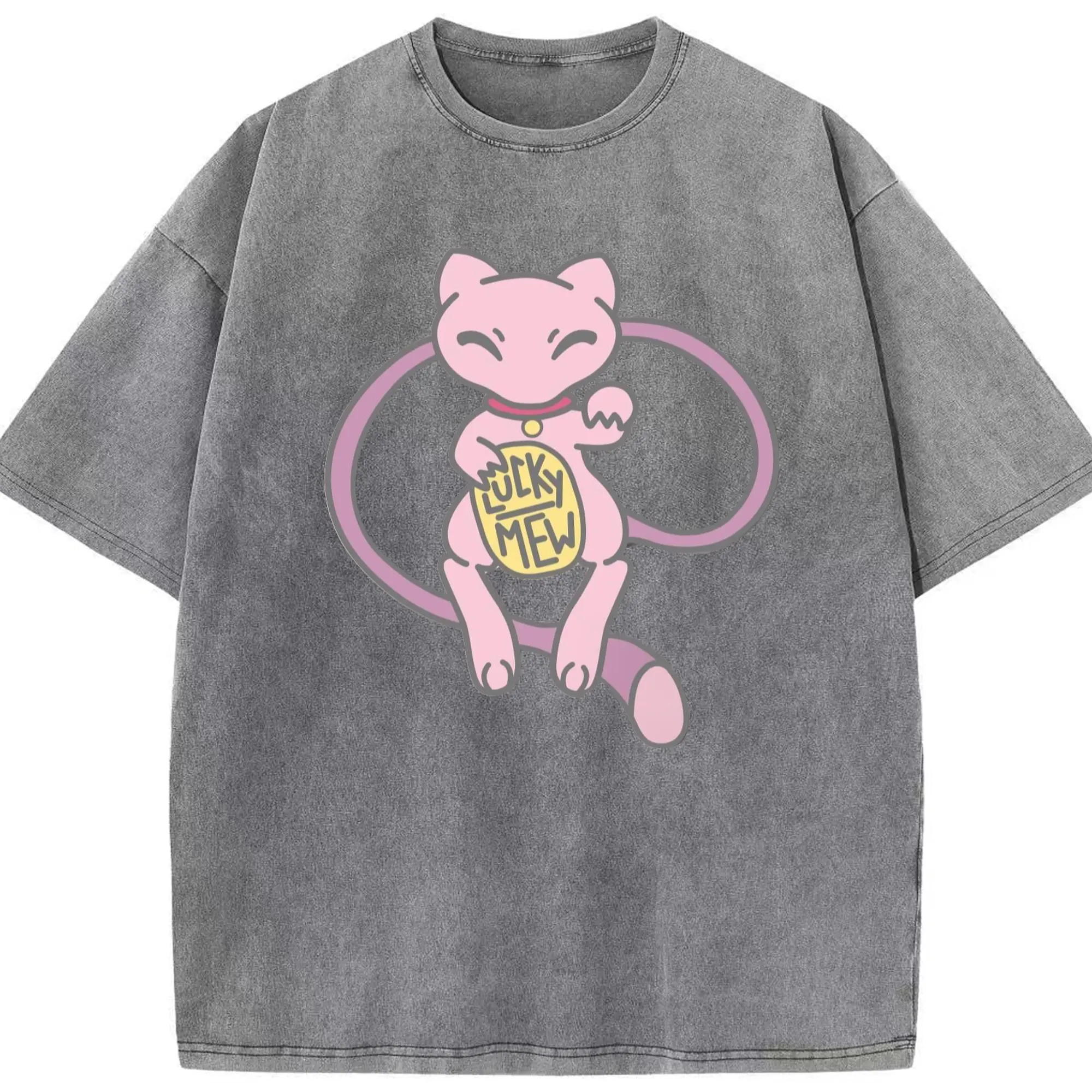 Pokemon lucky mew shirt​ - Washed Vintage Look 230g Cotton Oversized T-Shirt With Front Heat Transfer Print – Soft, Lightweight, Stylish Fit – Comfortable Casual Wear For Sports & Everyday Use