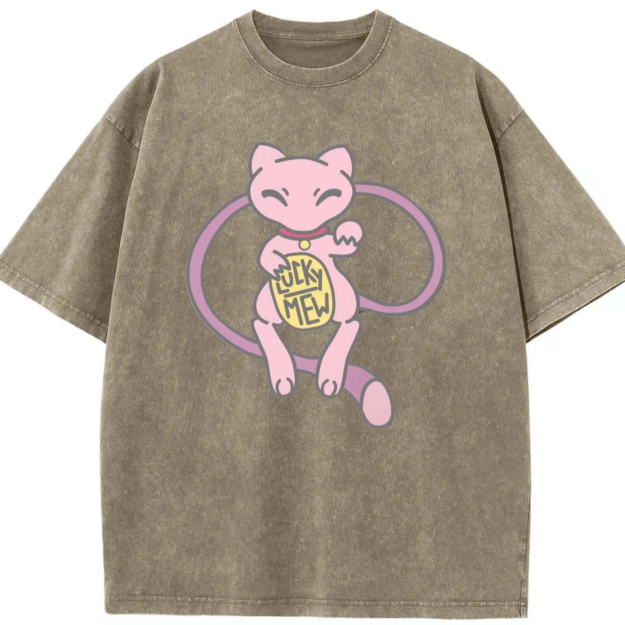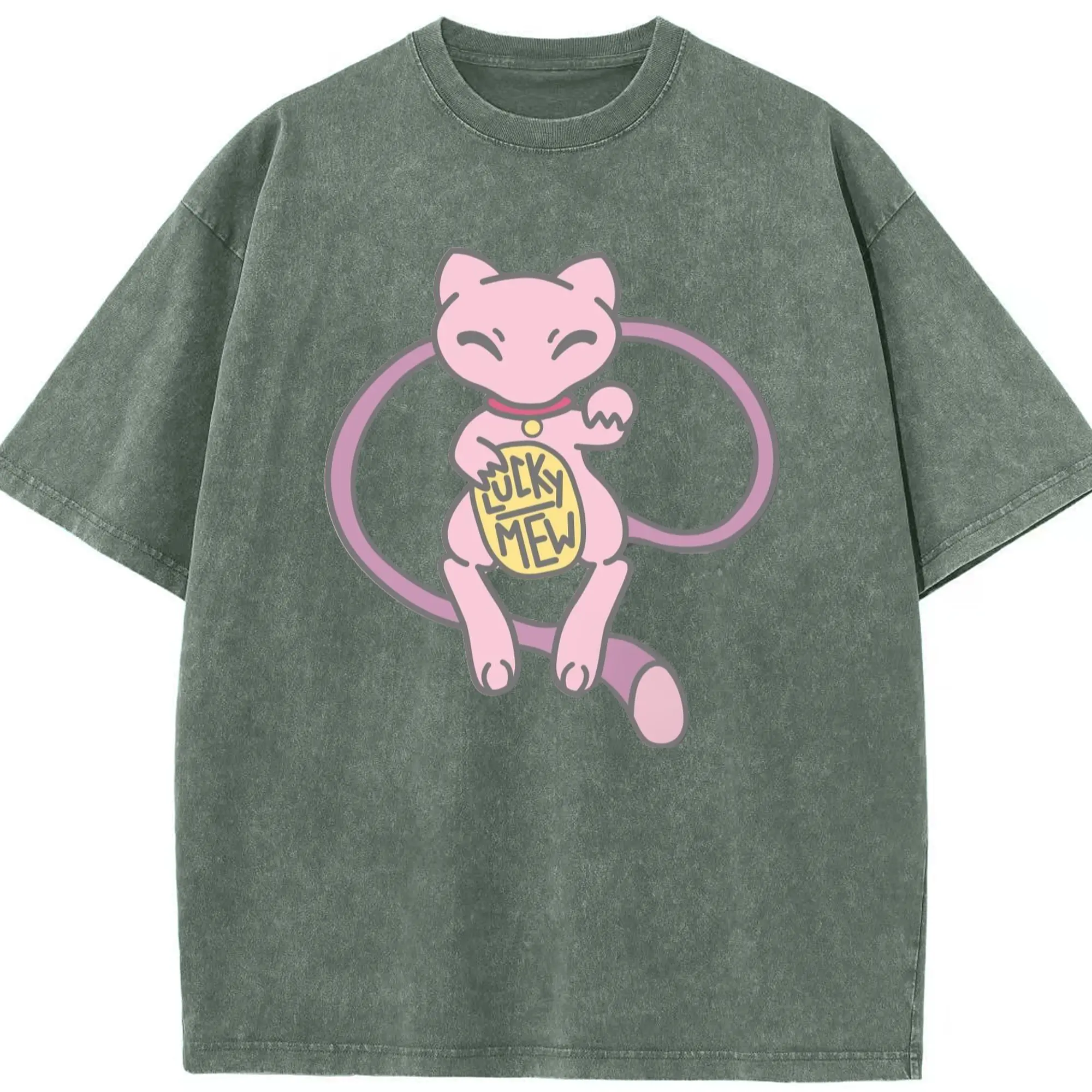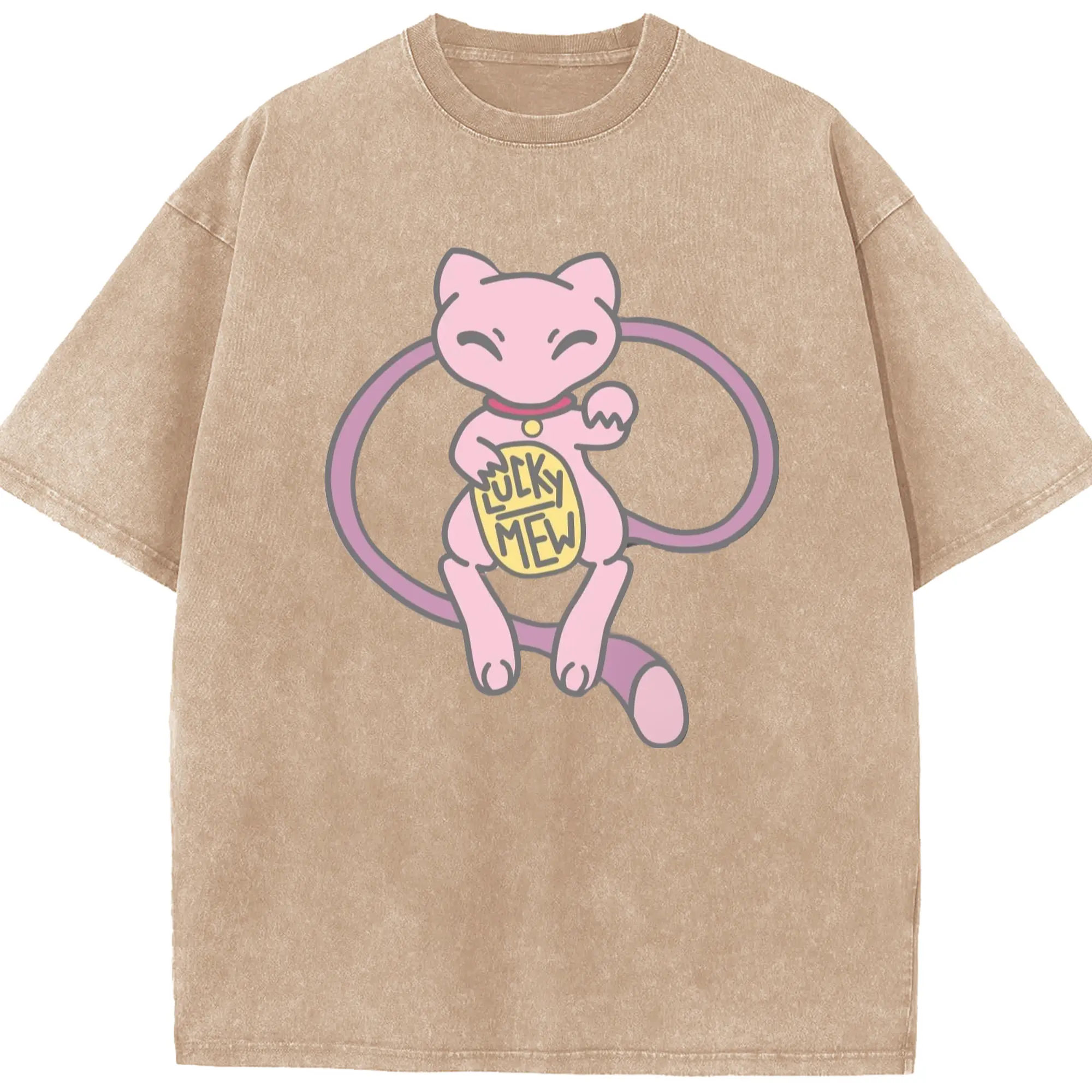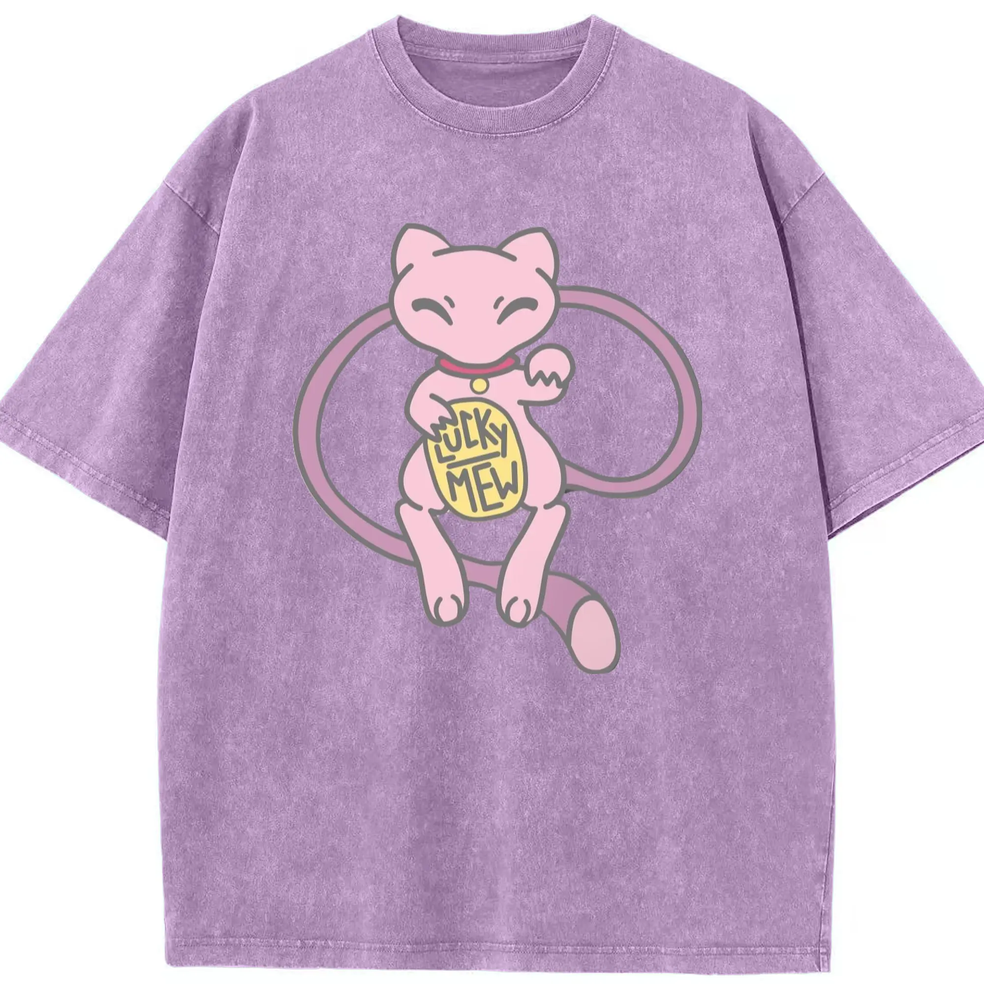 Pokemon lucky mew shirt​ - Washed Vintage Look 230g Cotton Oversized T-Shirt With Front Heat Transfer Print – Soft, Lightweight, Stylish Fit – Comfortable Casual Wear For Sports & Everyday Use