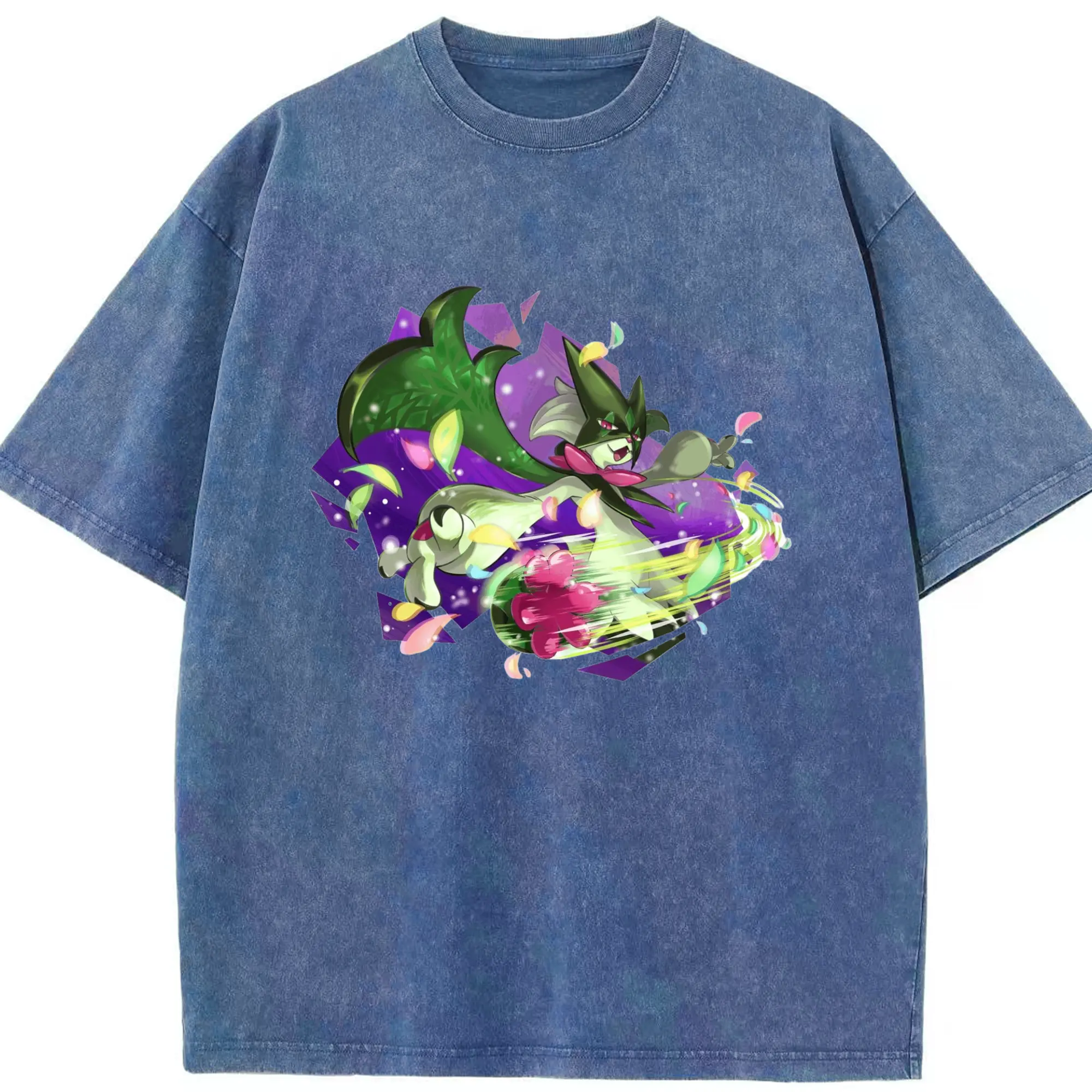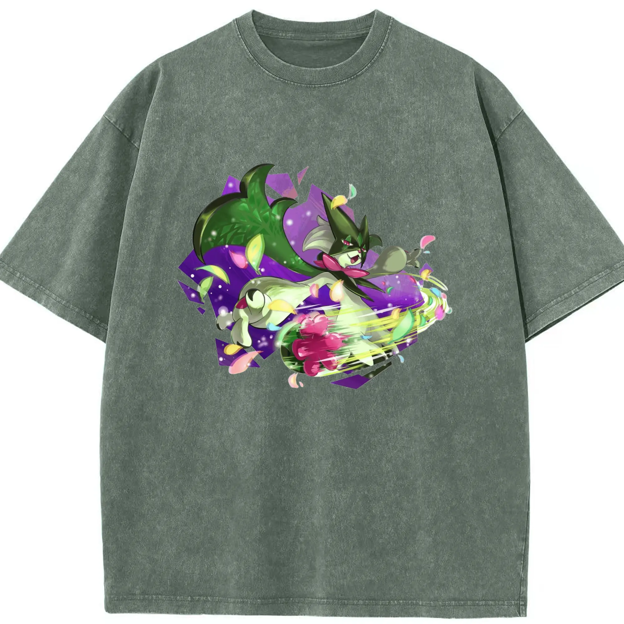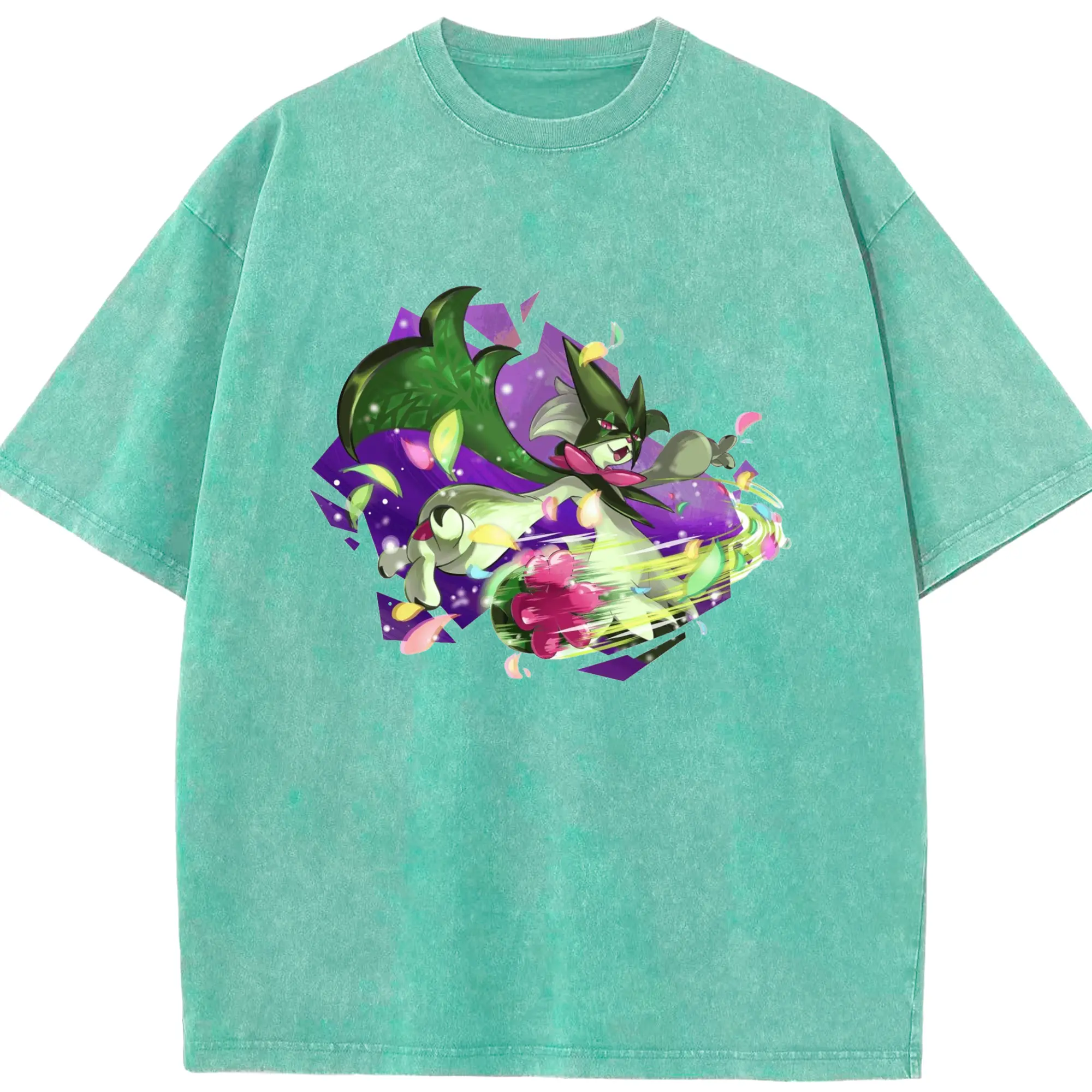 Pokemon Meowscarada art shirt - Washed Vintage Look 230g Cotton Oversized T-Shirt With Front Heat Transfer Print – Soft, Lightweight, Stylish Fit – Comfortable Casual Wear For Sports & Everyday Use