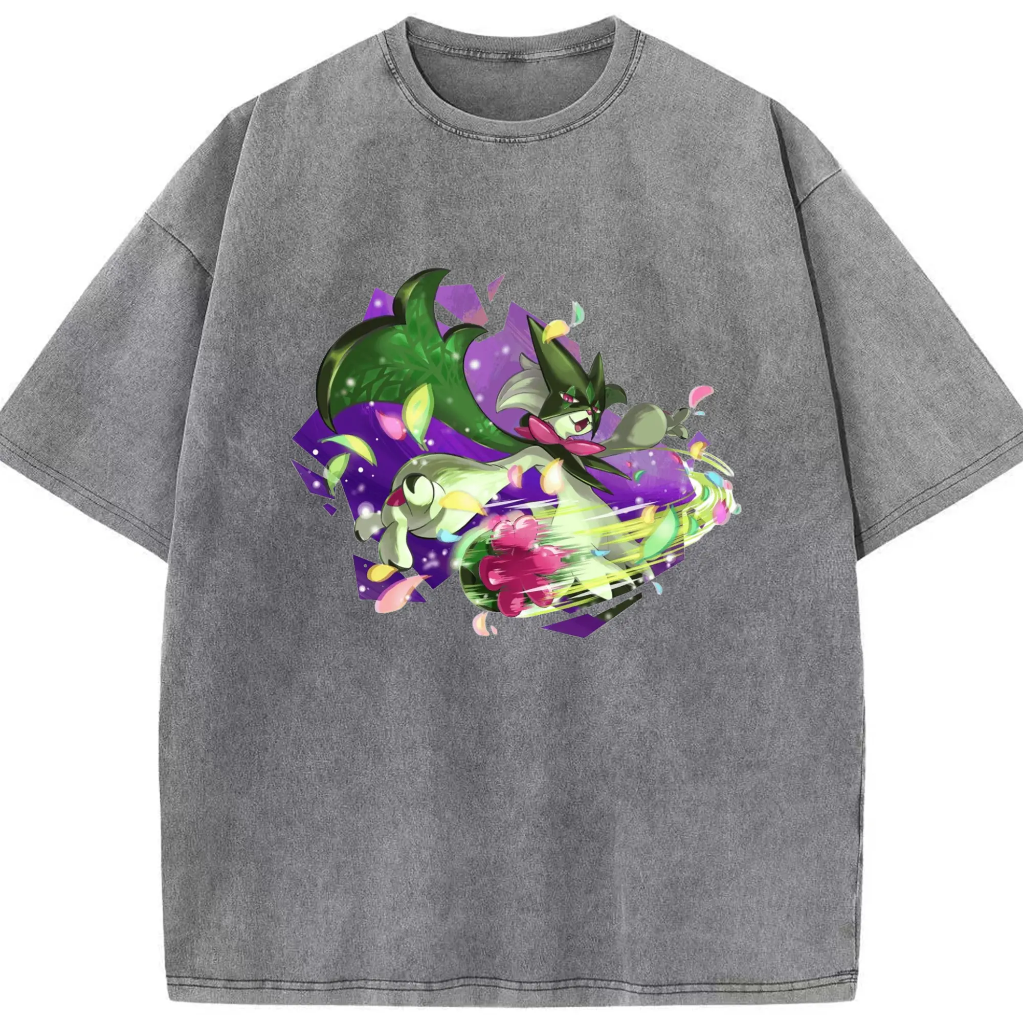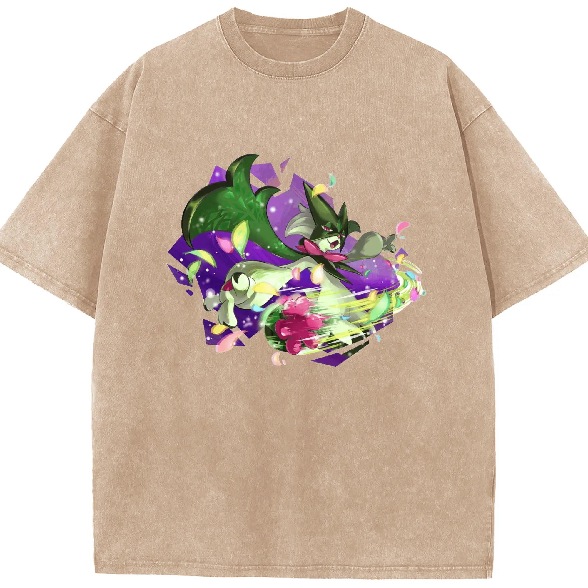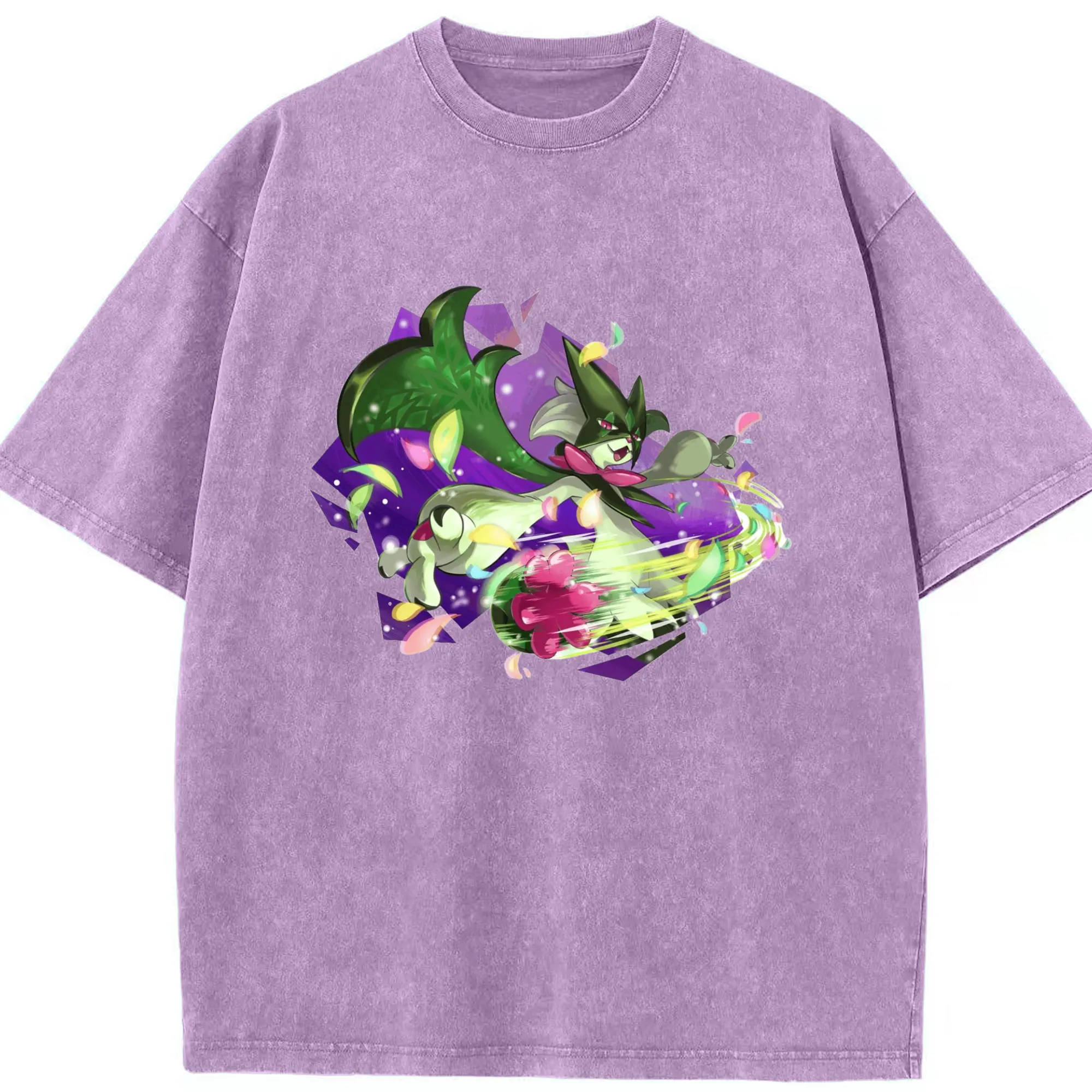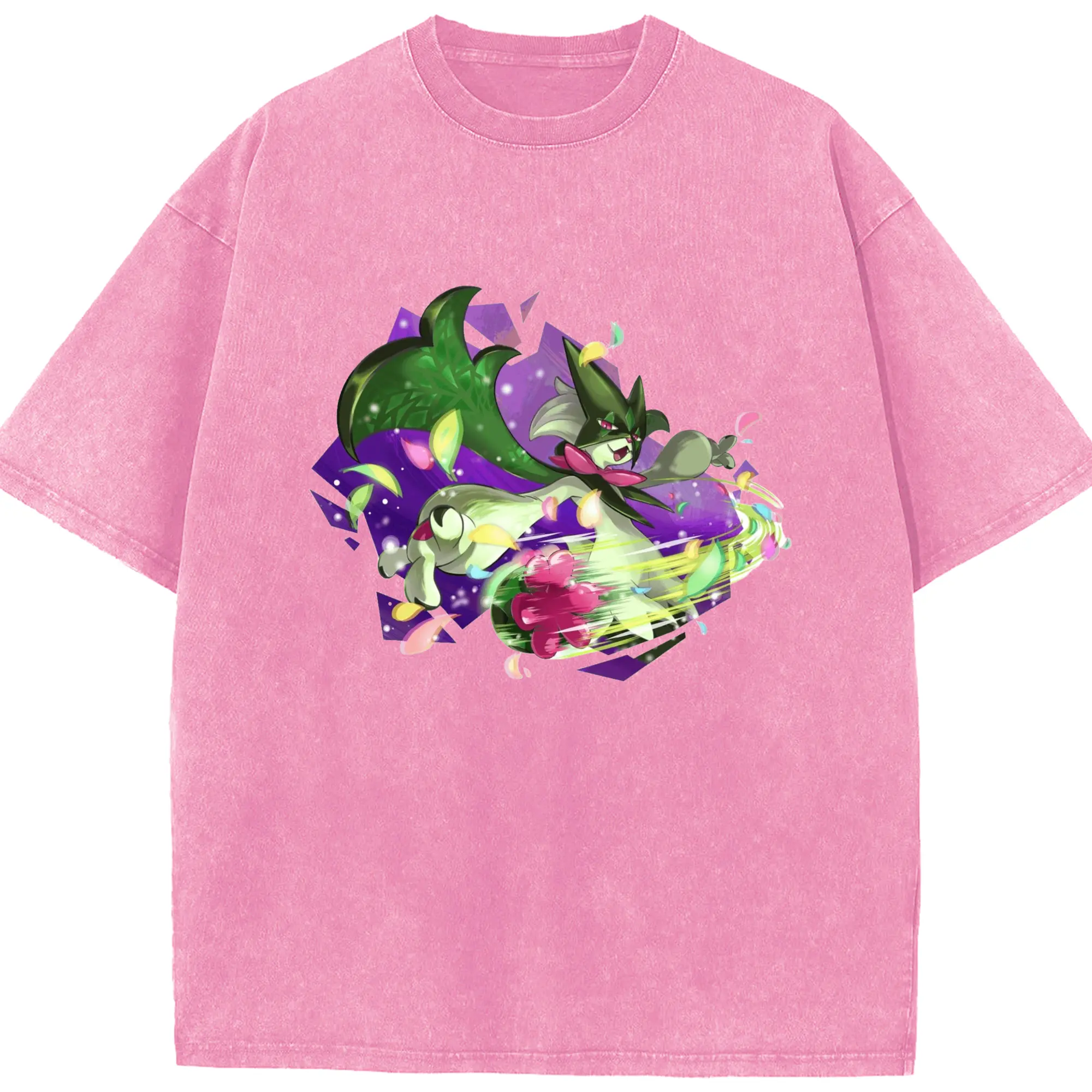Pokemon Meowscarada art shirt - Washed Vintage Look 230g Cotton Oversized T-Shirt With Front Heat Transfer Print – Soft, Lightweight, Stylish Fit – Comfortable Casual Wear For Sports & Everyday Use