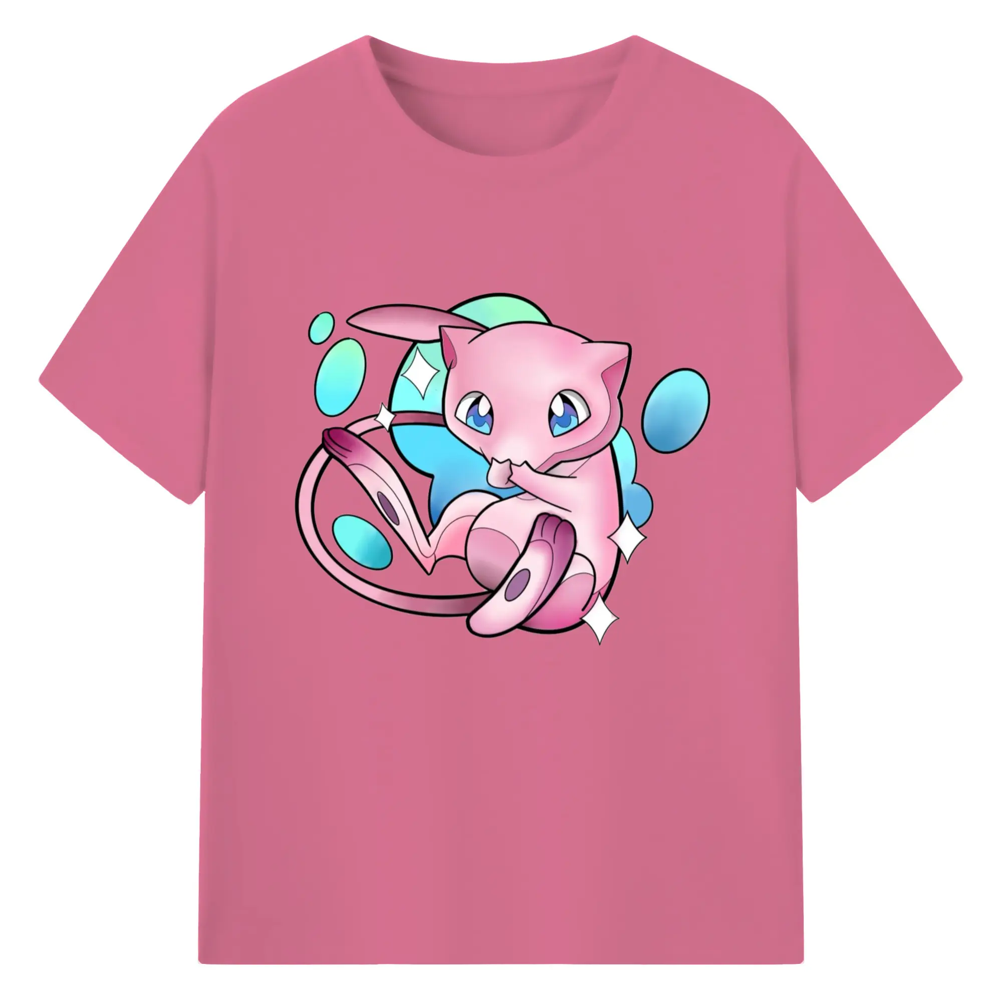 Pokemon Mew art T-Shirt - 180g Cotton T-Shirt With Front Heat Transfer Print – Soft, Lightweight, Fitted Design – Comfortable Casual Wear For Sports & Everyday Use