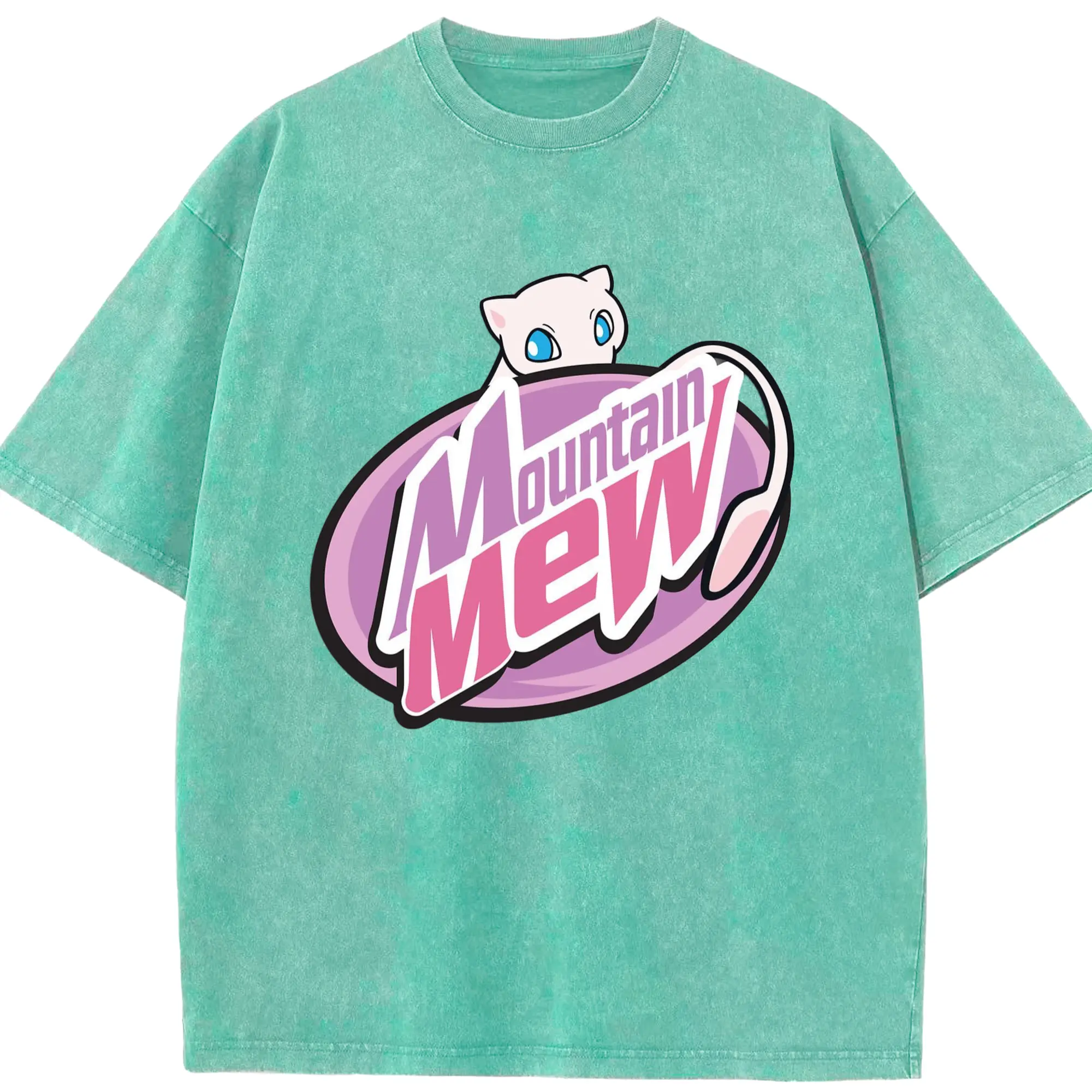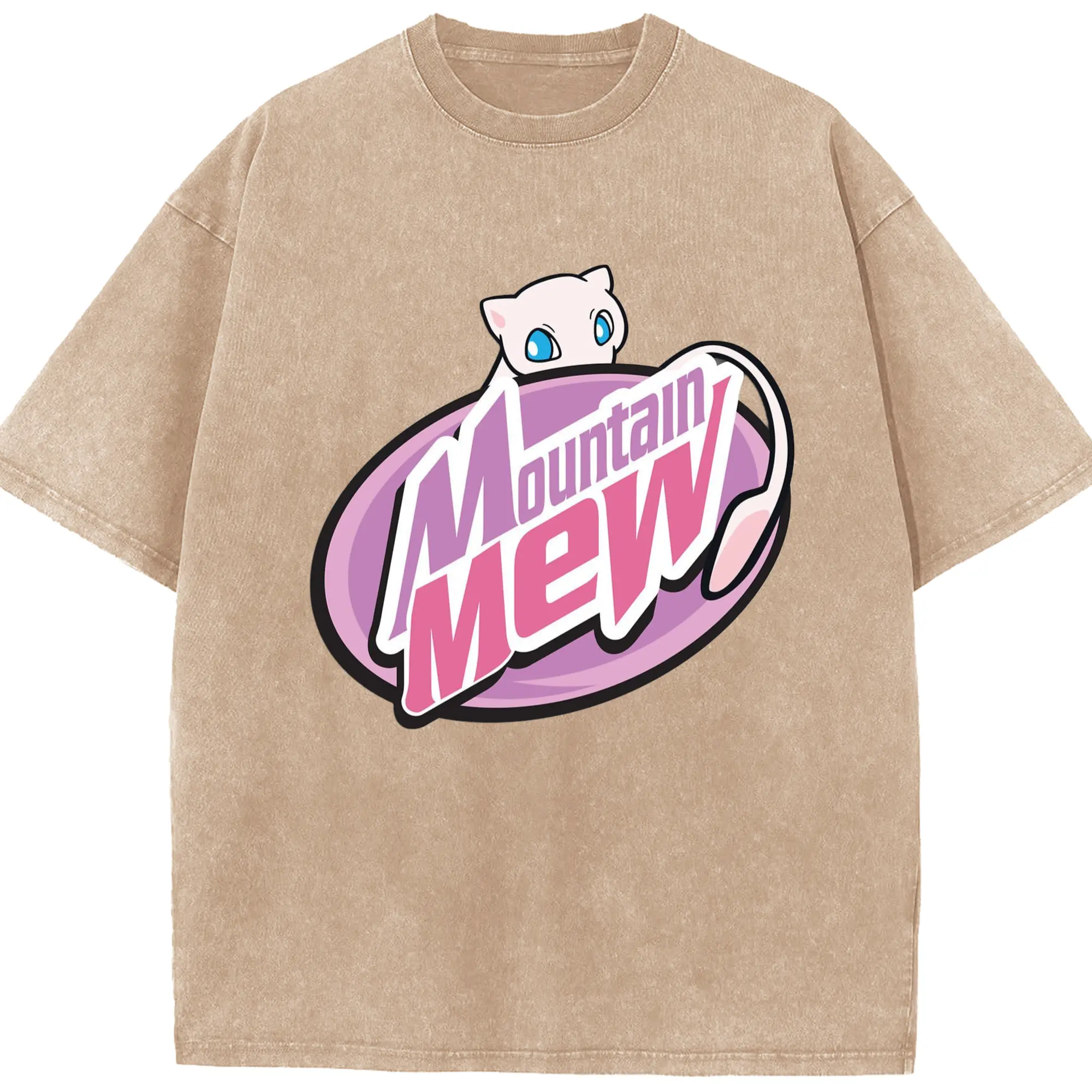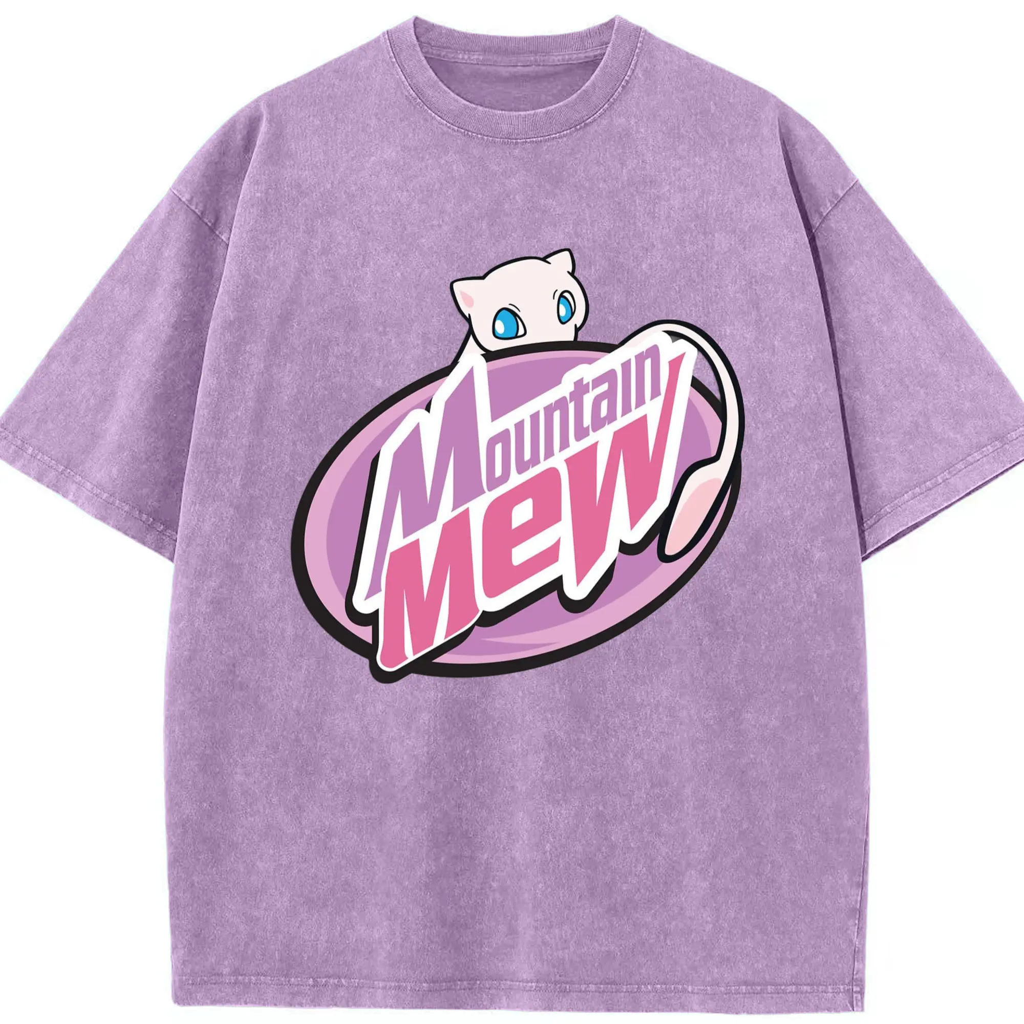 Pokemon mew icon shirt​ - Washed Vintage Look 230g Cotton Oversized T-Shirt With Front Heat Transfer Print – Soft, Lightweight, Stylish Fit – Comfortable Casual Wear For Sports & Everyday Use