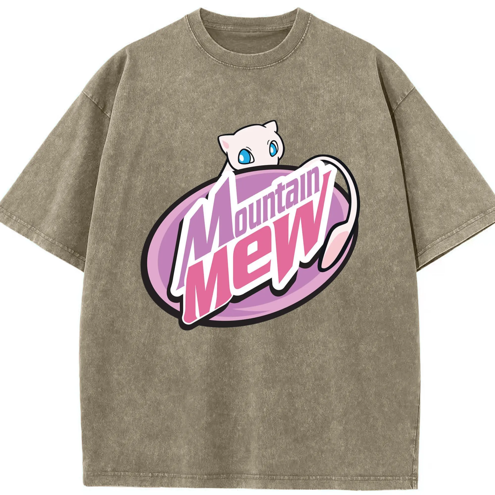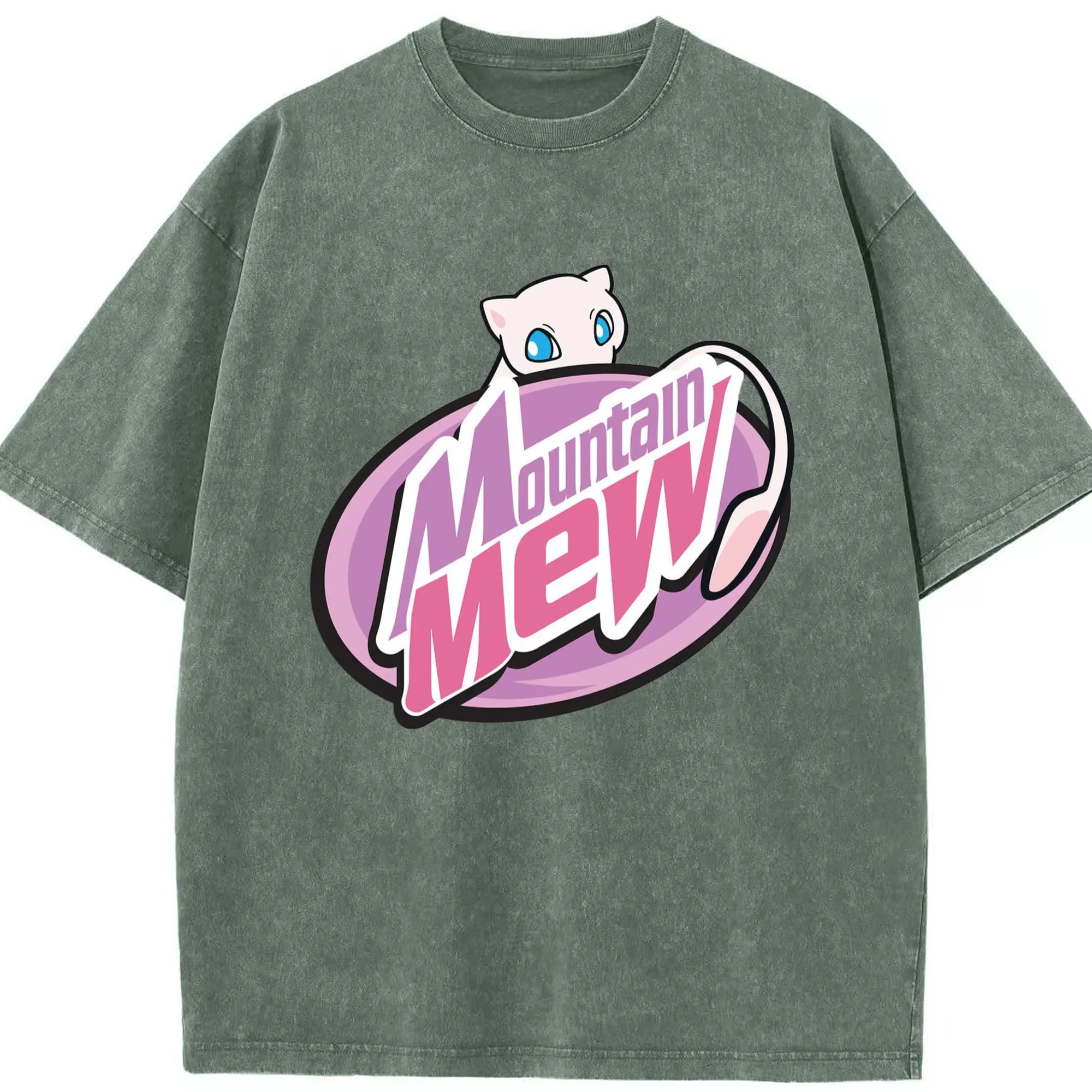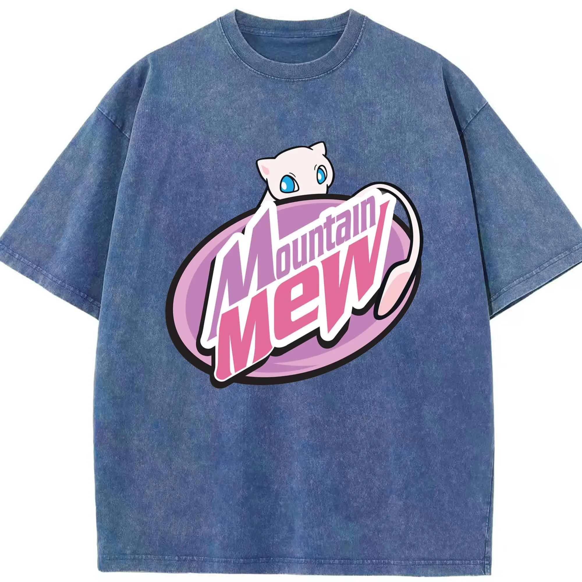 Pokemon mew icon shirt​ - Washed Vintage Look 230g Cotton Oversized T-Shirt With Front Heat Transfer Print – Soft, Lightweight, Stylish Fit – Comfortable Casual Wear For Sports & Everyday Use