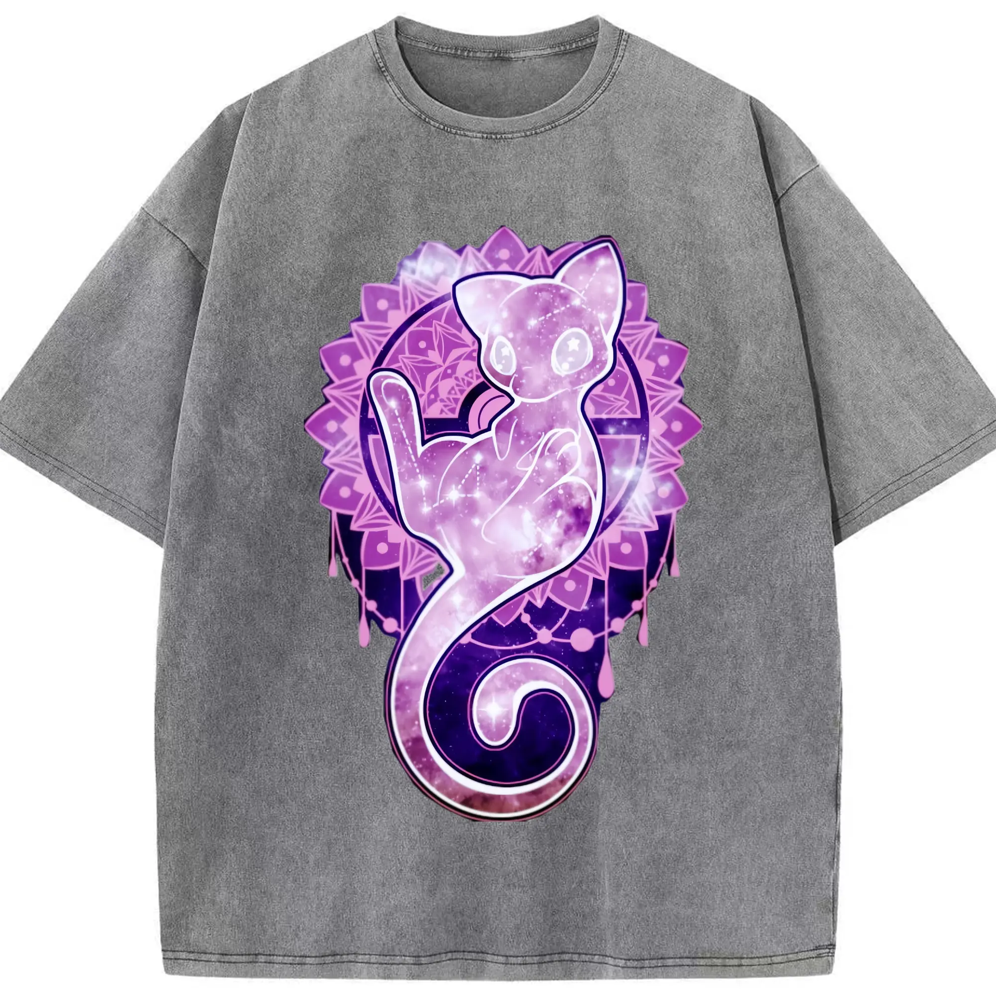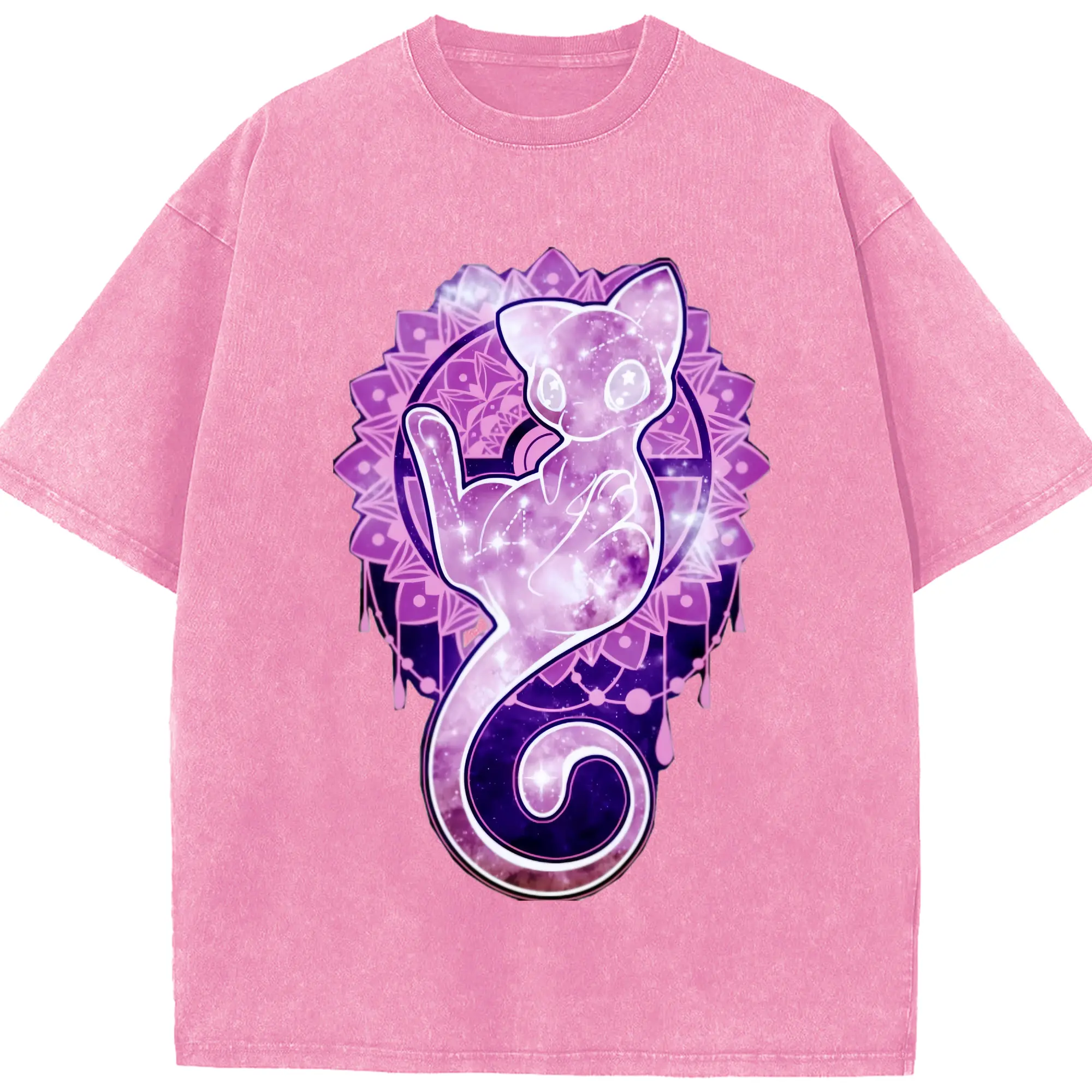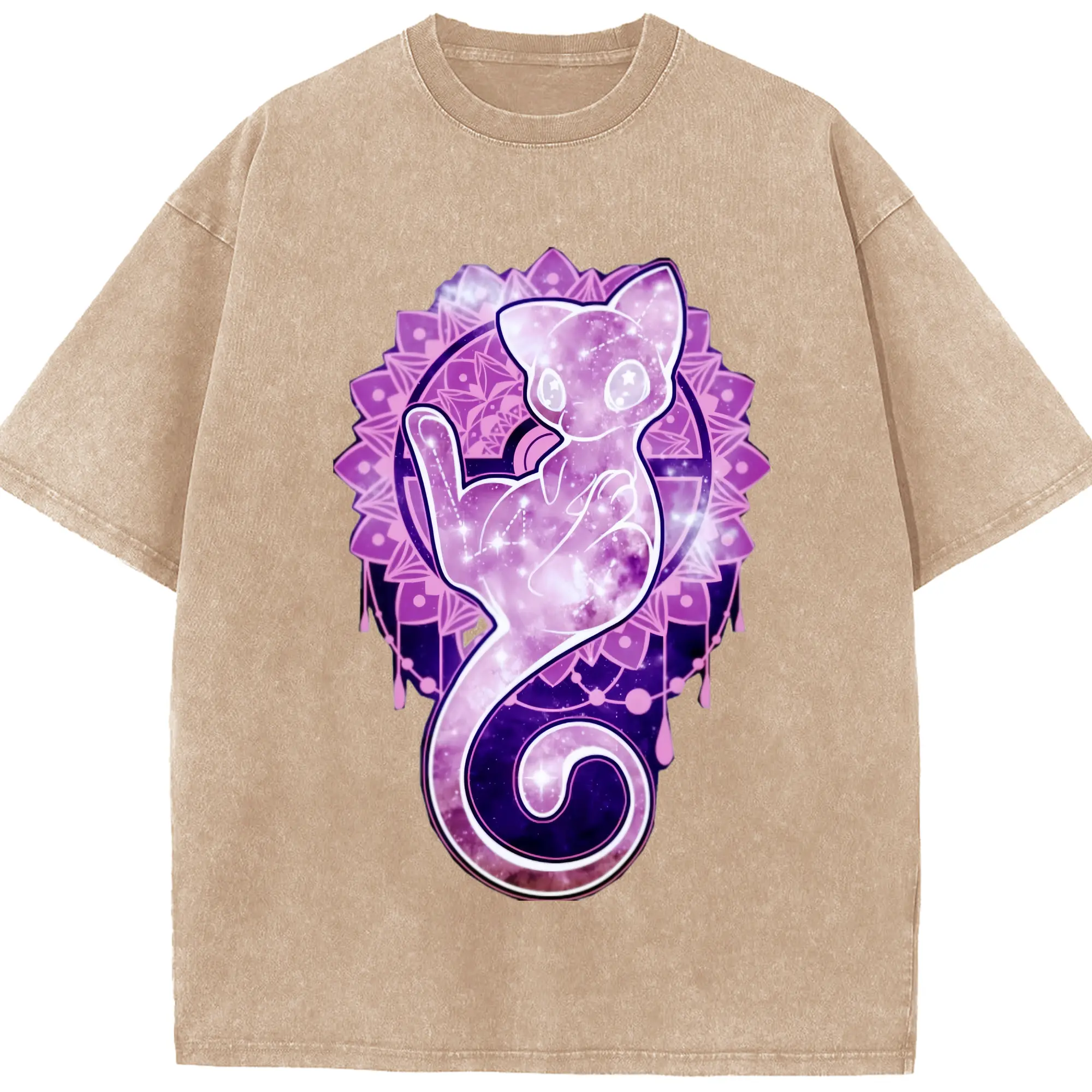 Pokemon mew logo shirt​ - Washed Vintage Look 230g Cotton Oversized T-Shirt With Front Heat Transfer Print – Soft, Lightweight, Stylish Fit – Comfortable Casual Wear For Sports & Everyday Use
