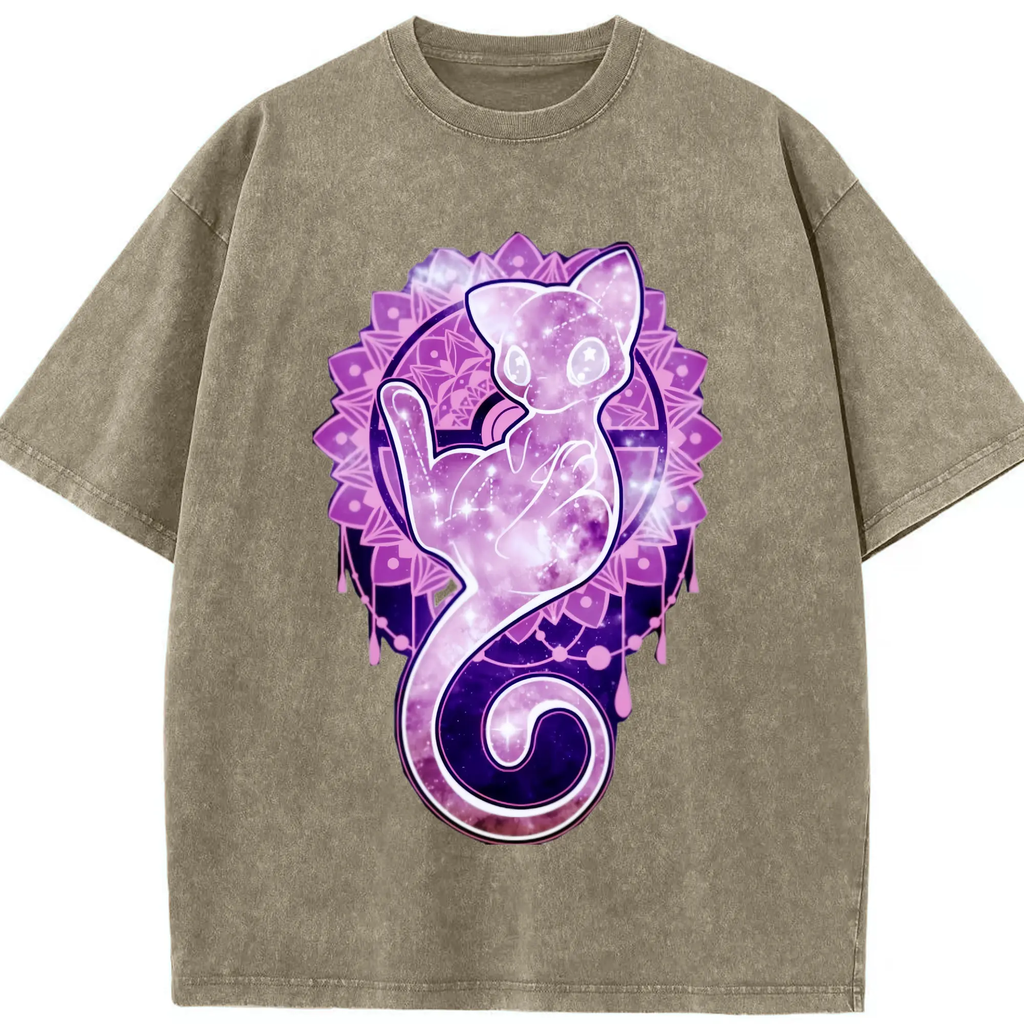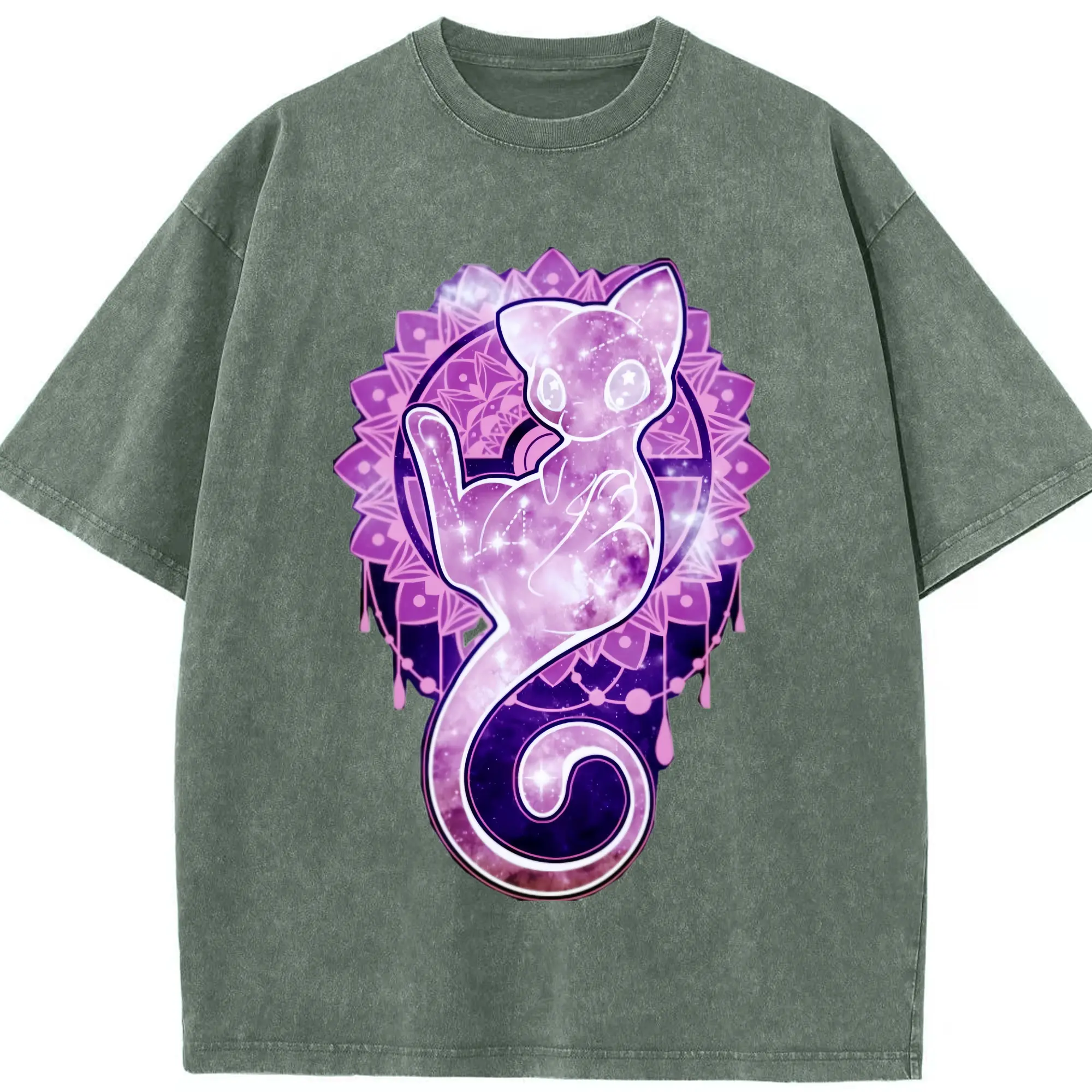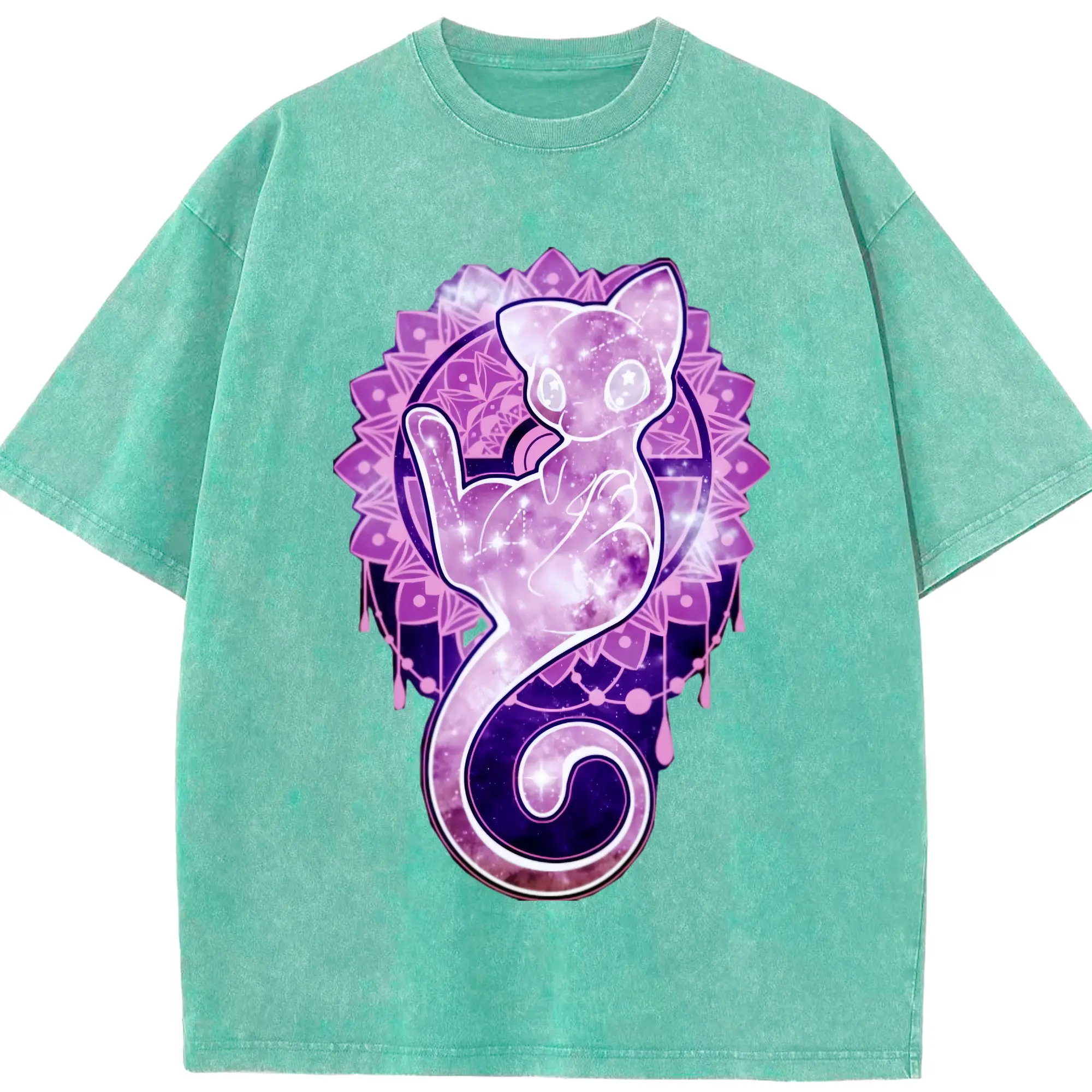 Pokemon mew logo shirt​ - Washed Vintage Look 230g Cotton Oversized T-Shirt With Front Heat Transfer Print – Soft, Lightweight, Stylish Fit – Comfortable Casual Wear For Sports & Everyday Use