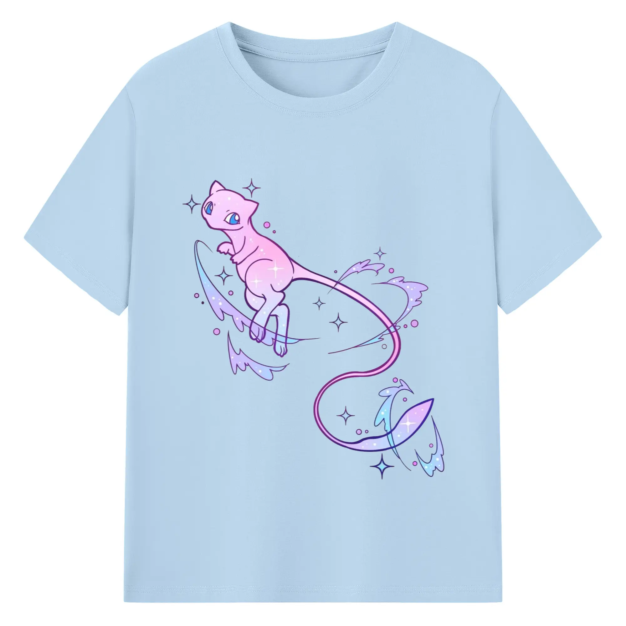 Pokemon mew t-shirt​ - 180g Cotton T-Shirt With Front Heat Transfer Print – Soft, Lightweight, Fitted Design – Comfortable Casual Wear For Sports & Everyday Use