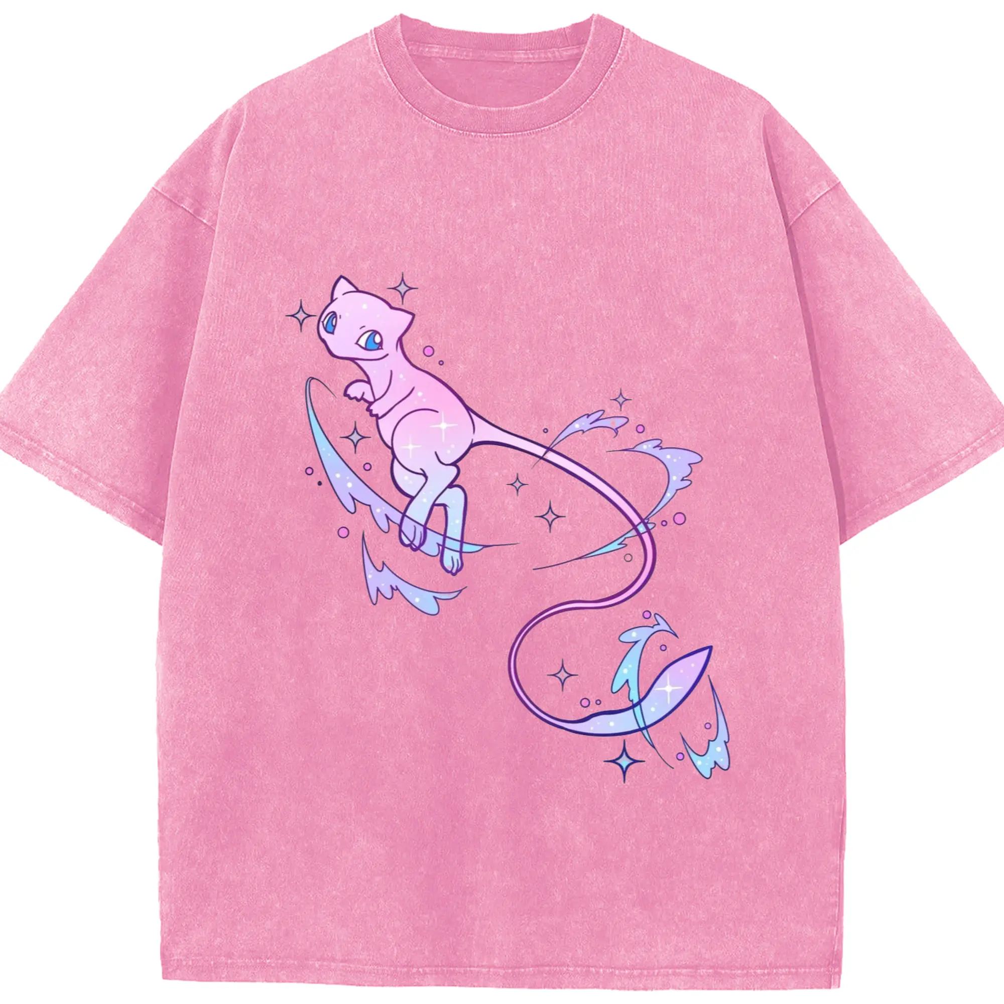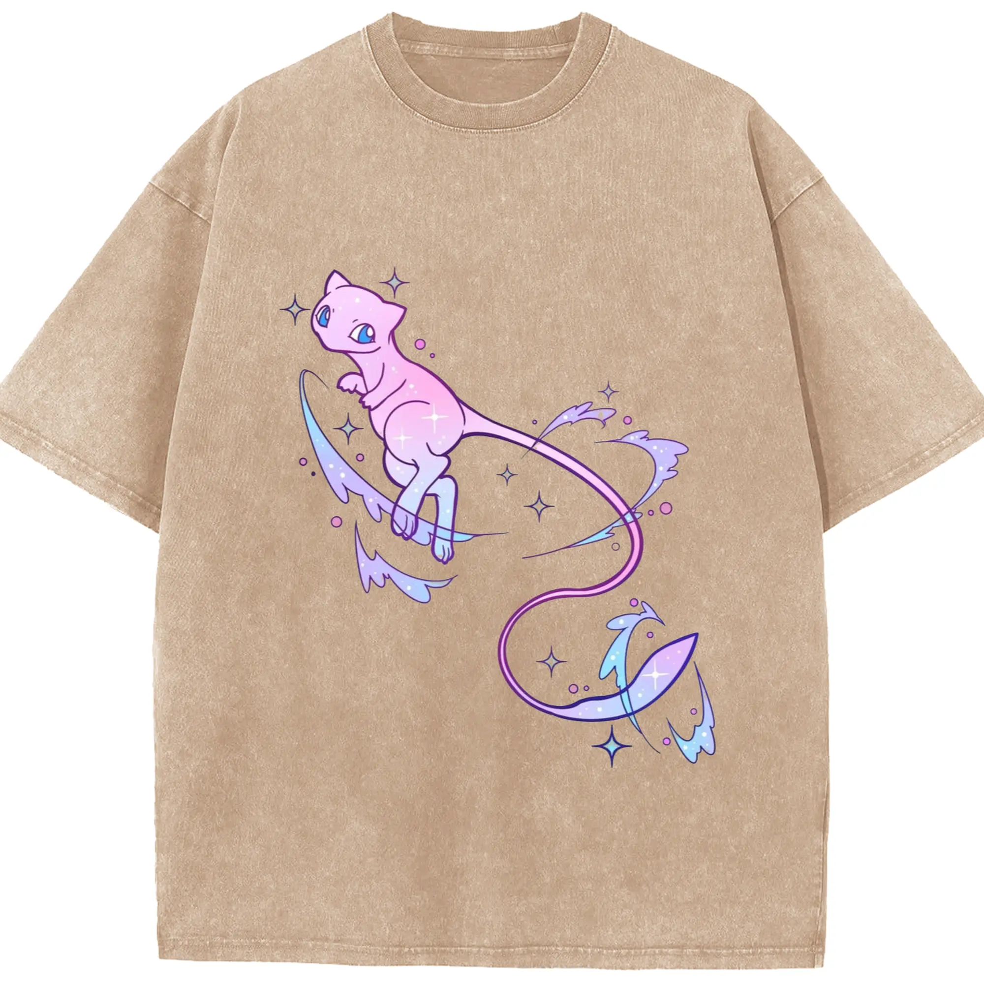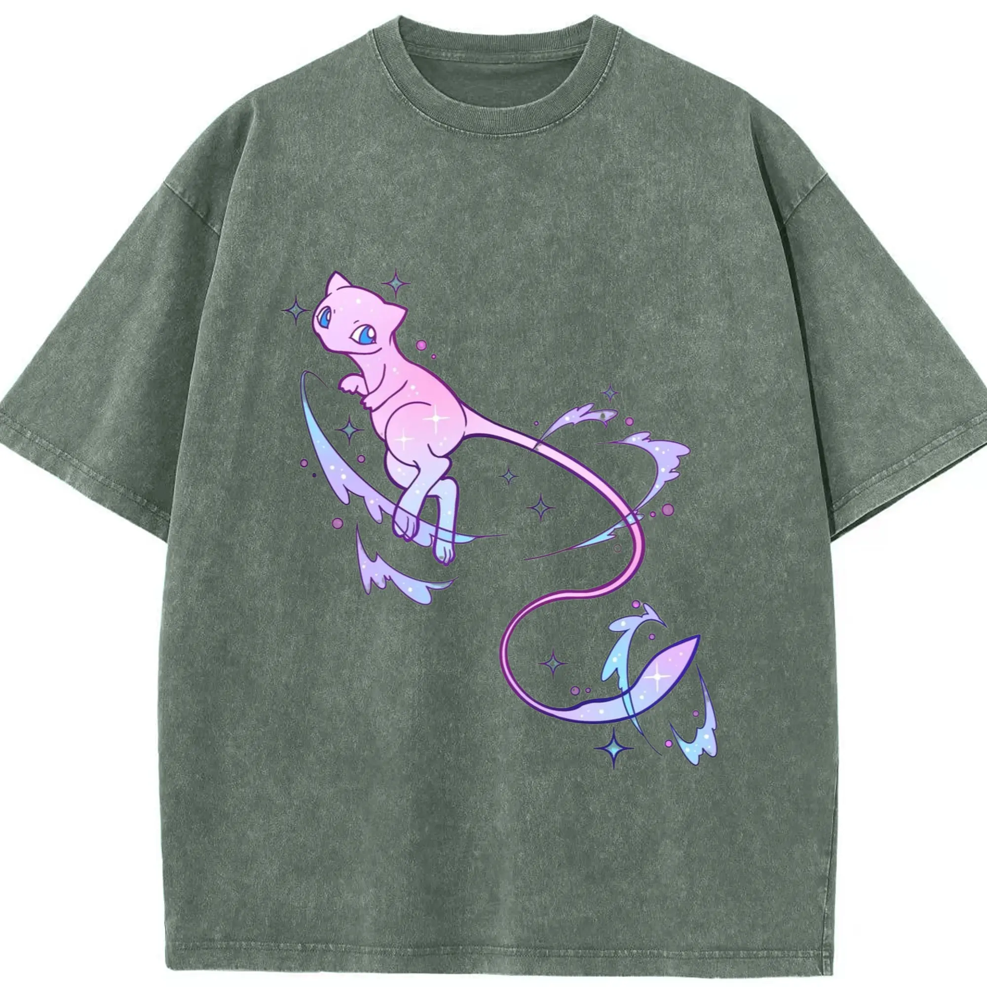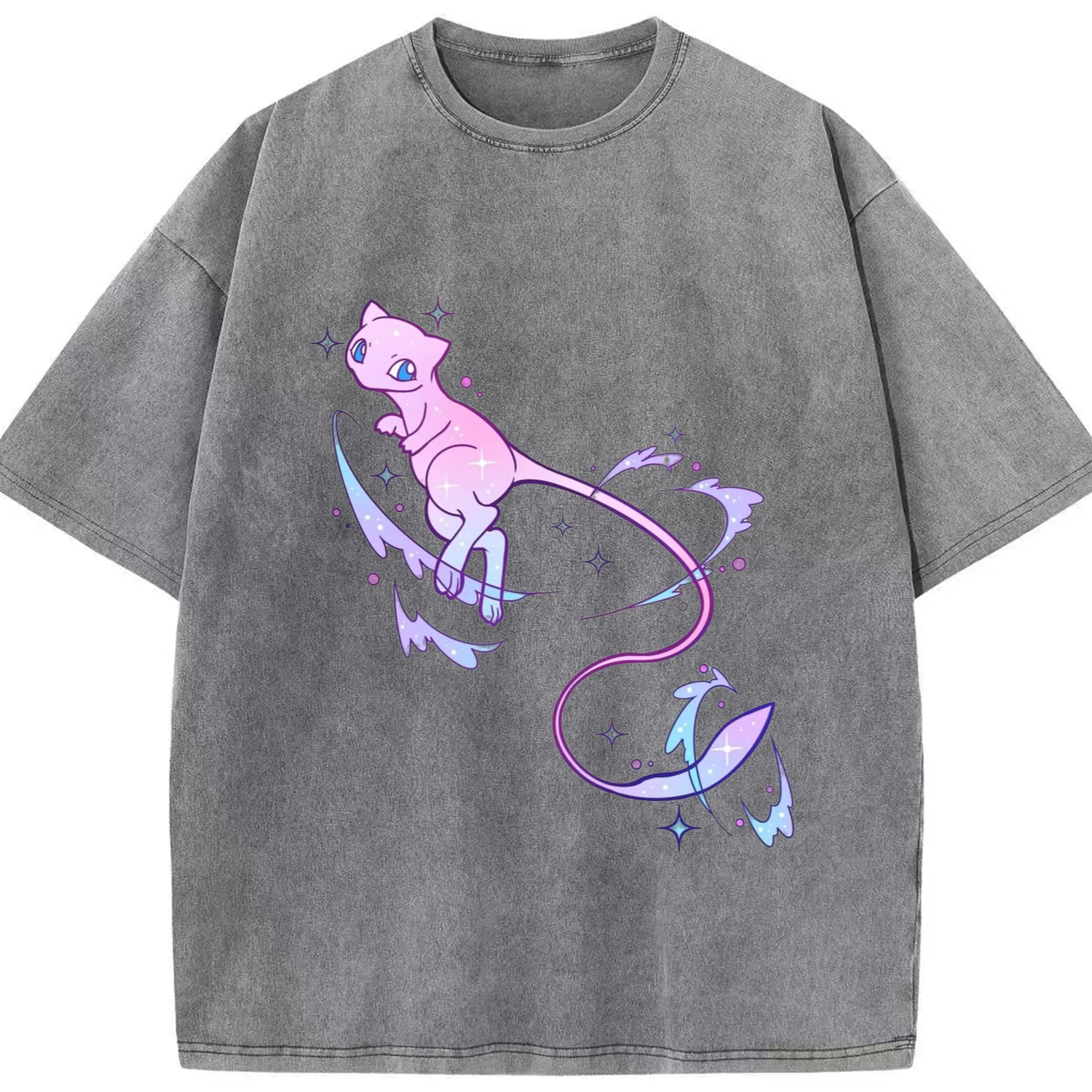 Pokemon mew t-shirt​ - Washed Vintage Look 230g Cotton Oversized T-Shirt With Front Heat Transfer Print – Soft, Lightweight, Stylish Fit – Comfortable Casual Wear For Sports & Everyday Use