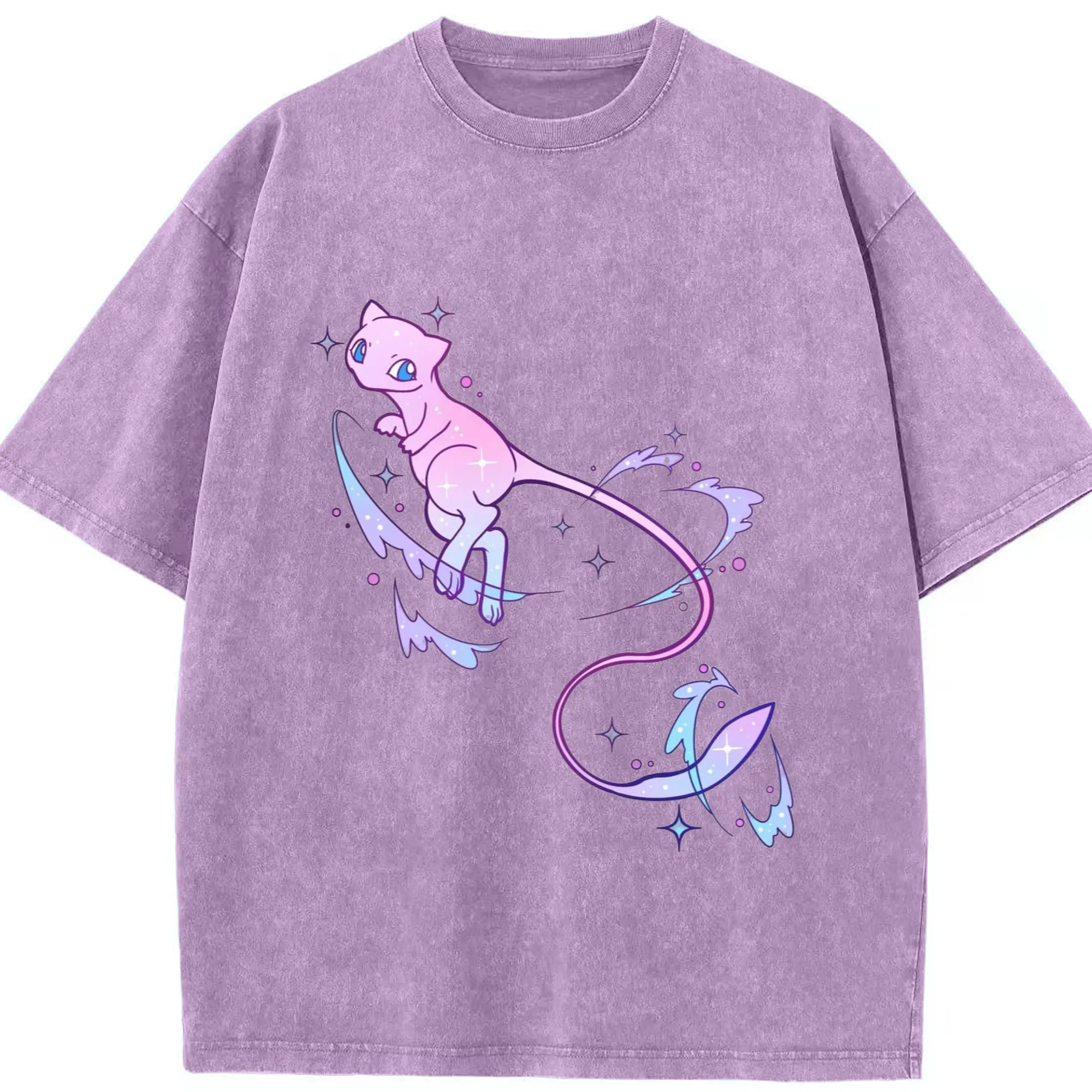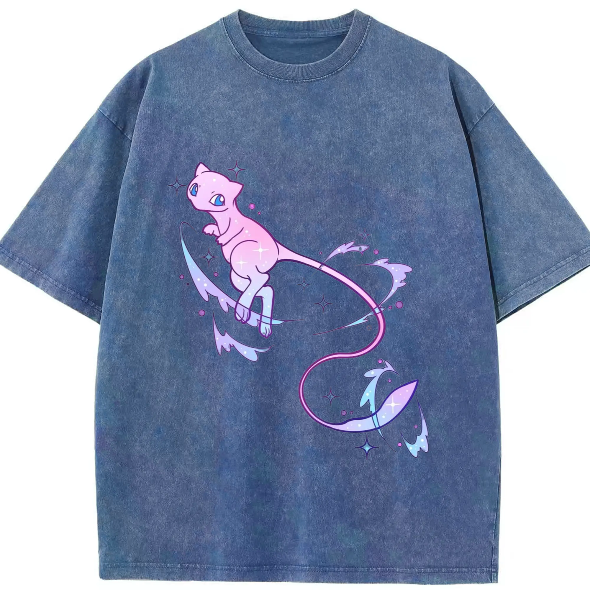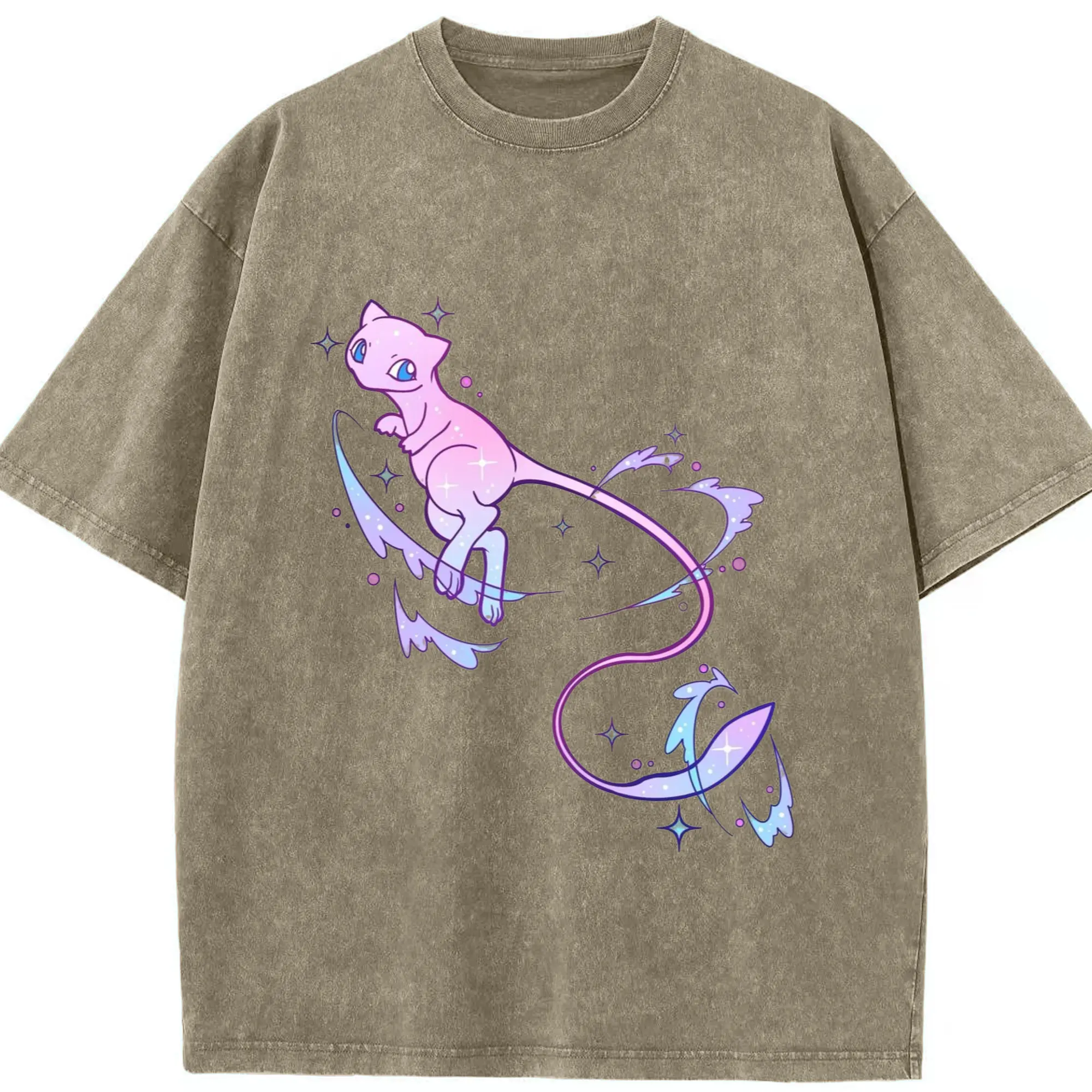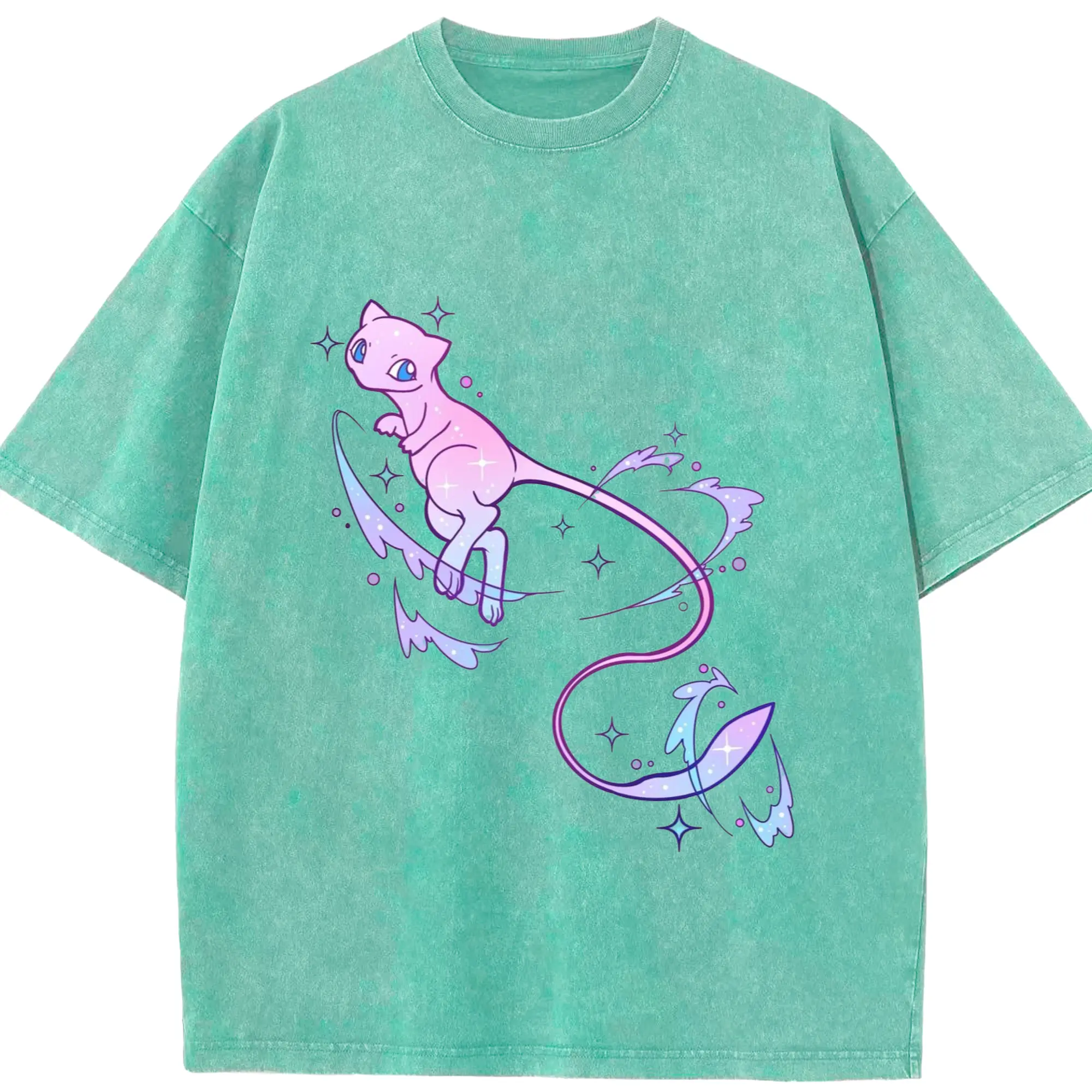 Pokemon mew t-shirt​ - Washed Vintage Look 230g Cotton Oversized T-Shirt With Front Heat Transfer Print – Soft, Lightweight, Stylish Fit – Comfortable Casual Wear For Sports & Everyday Use