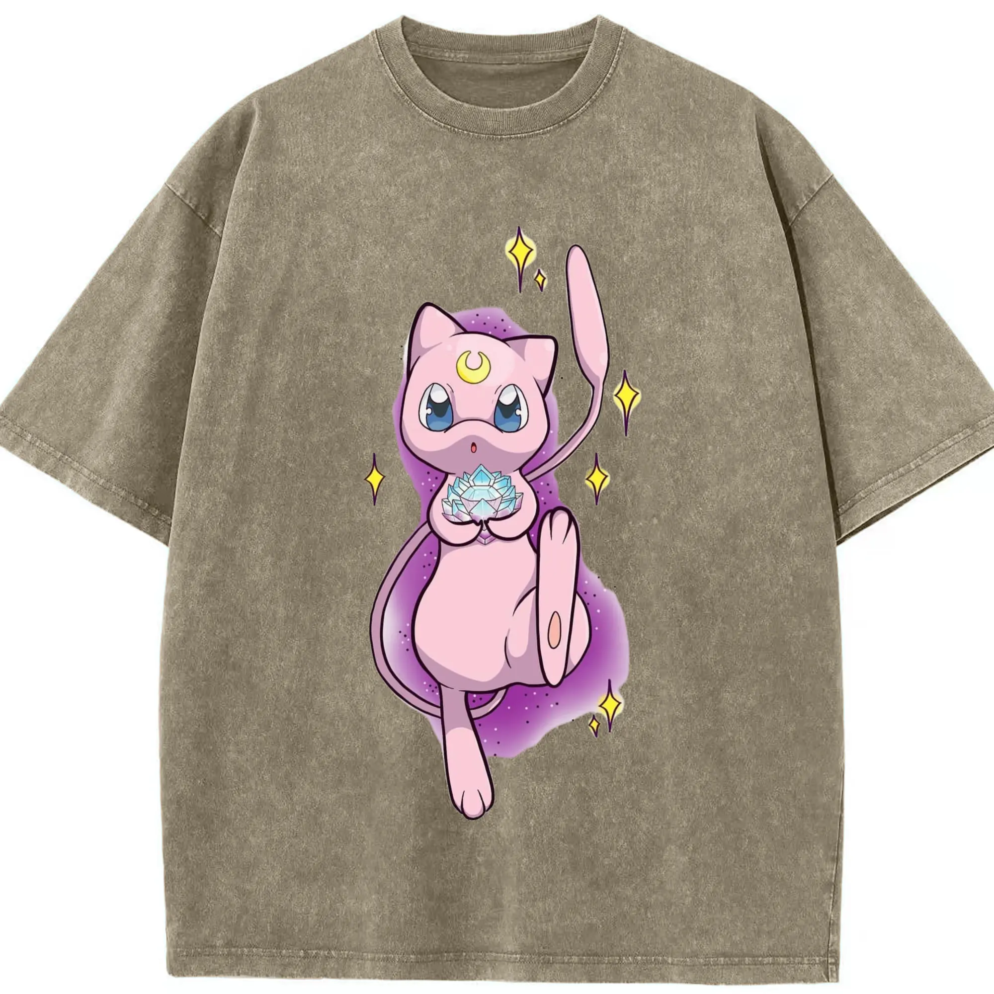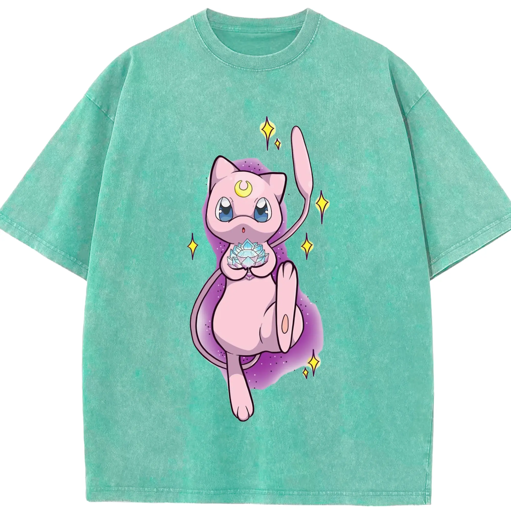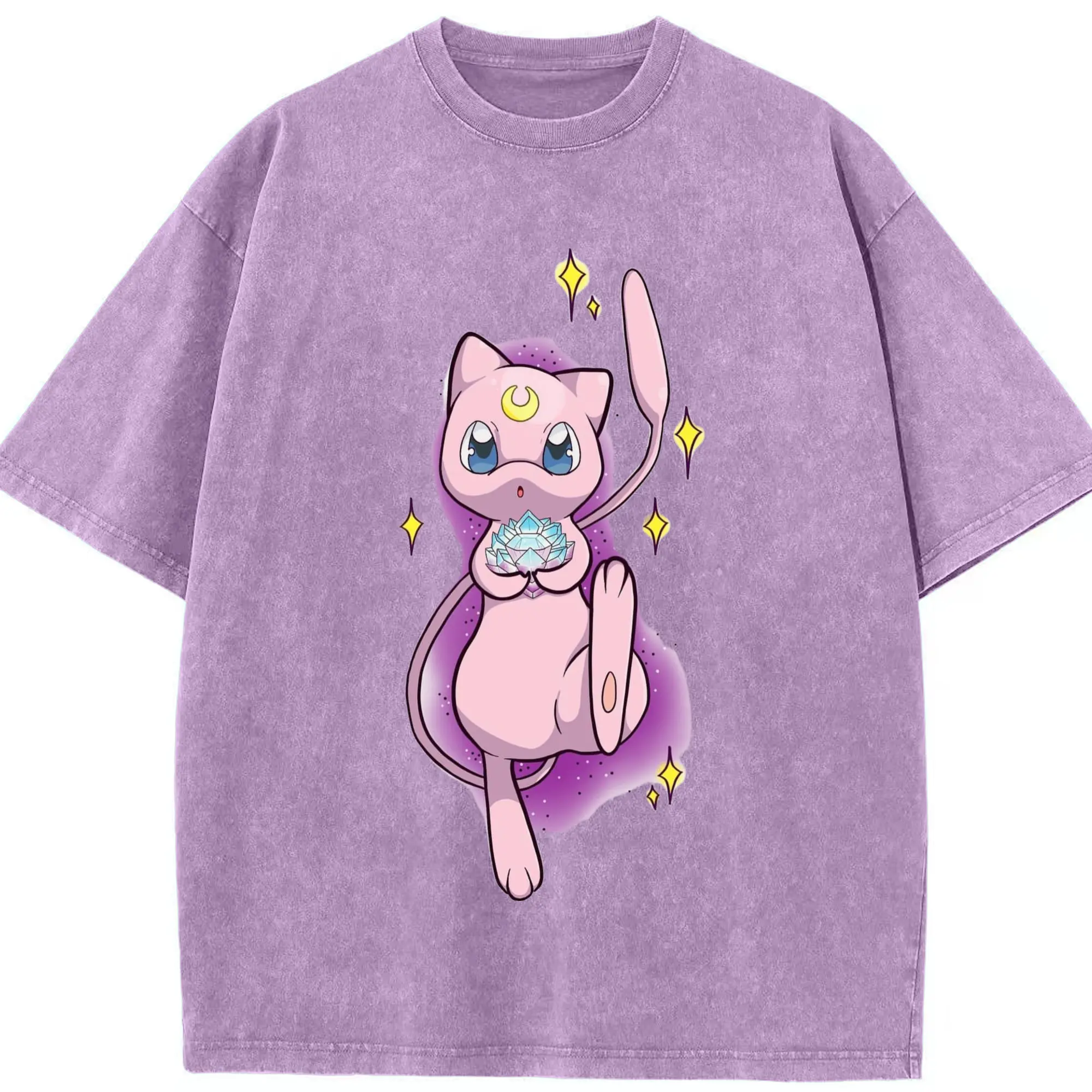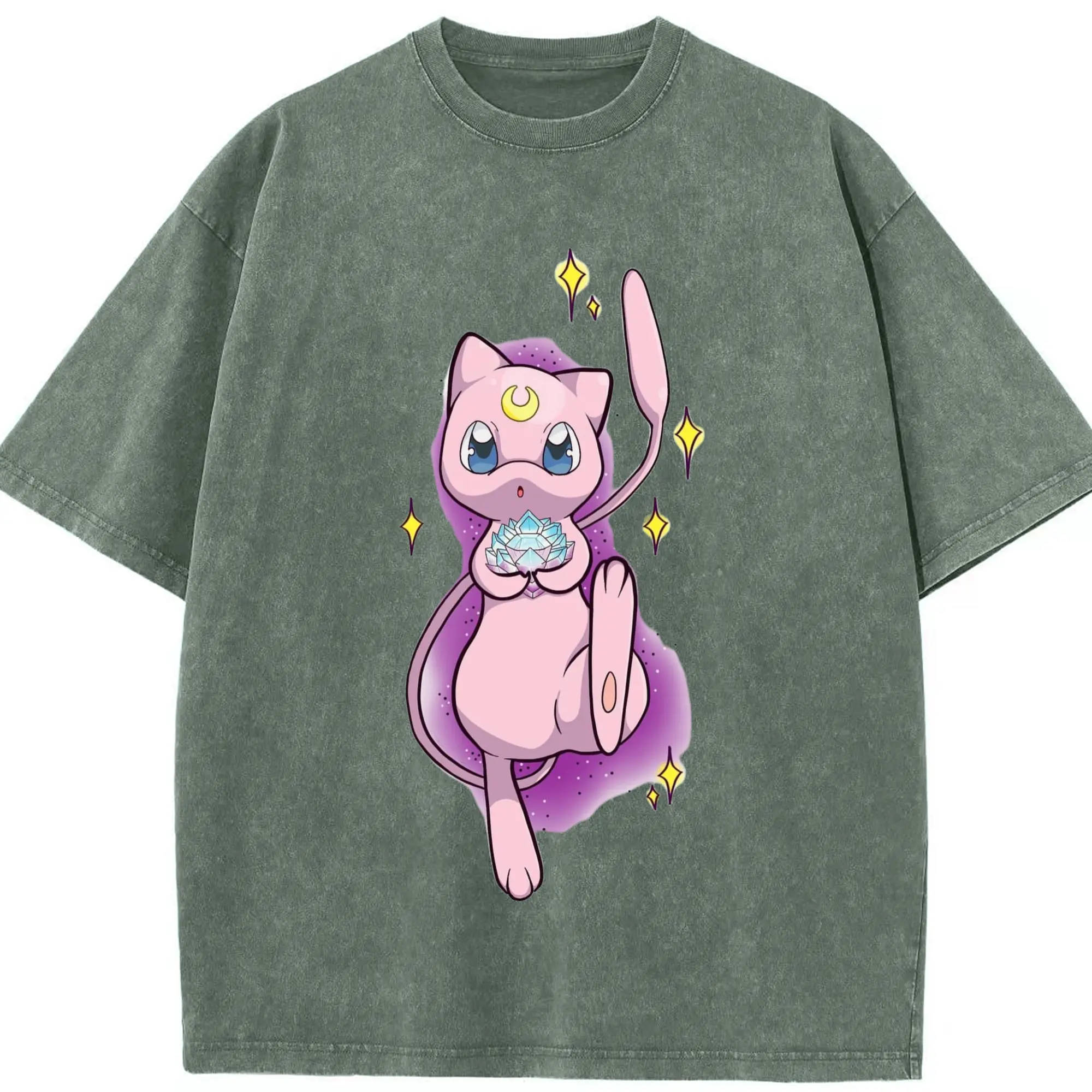 Pokemon mew t-shirt - Washed Vintage Look 230g Cotton Oversized T-Shirt With Front Heat Transfer Print – Soft, Lightweight, Stylish Fit – Comfortable Casual Wear For Sports & Everyday Use