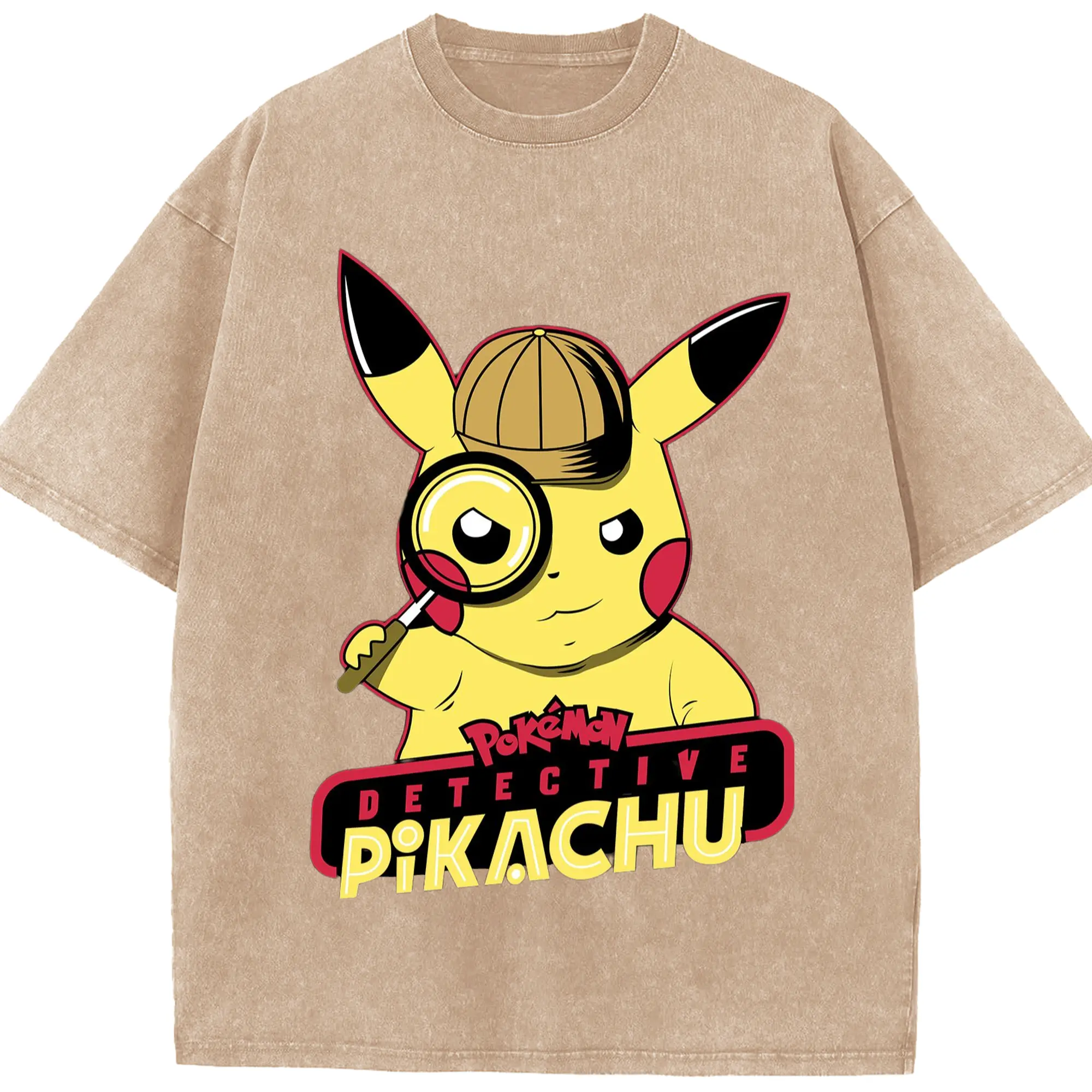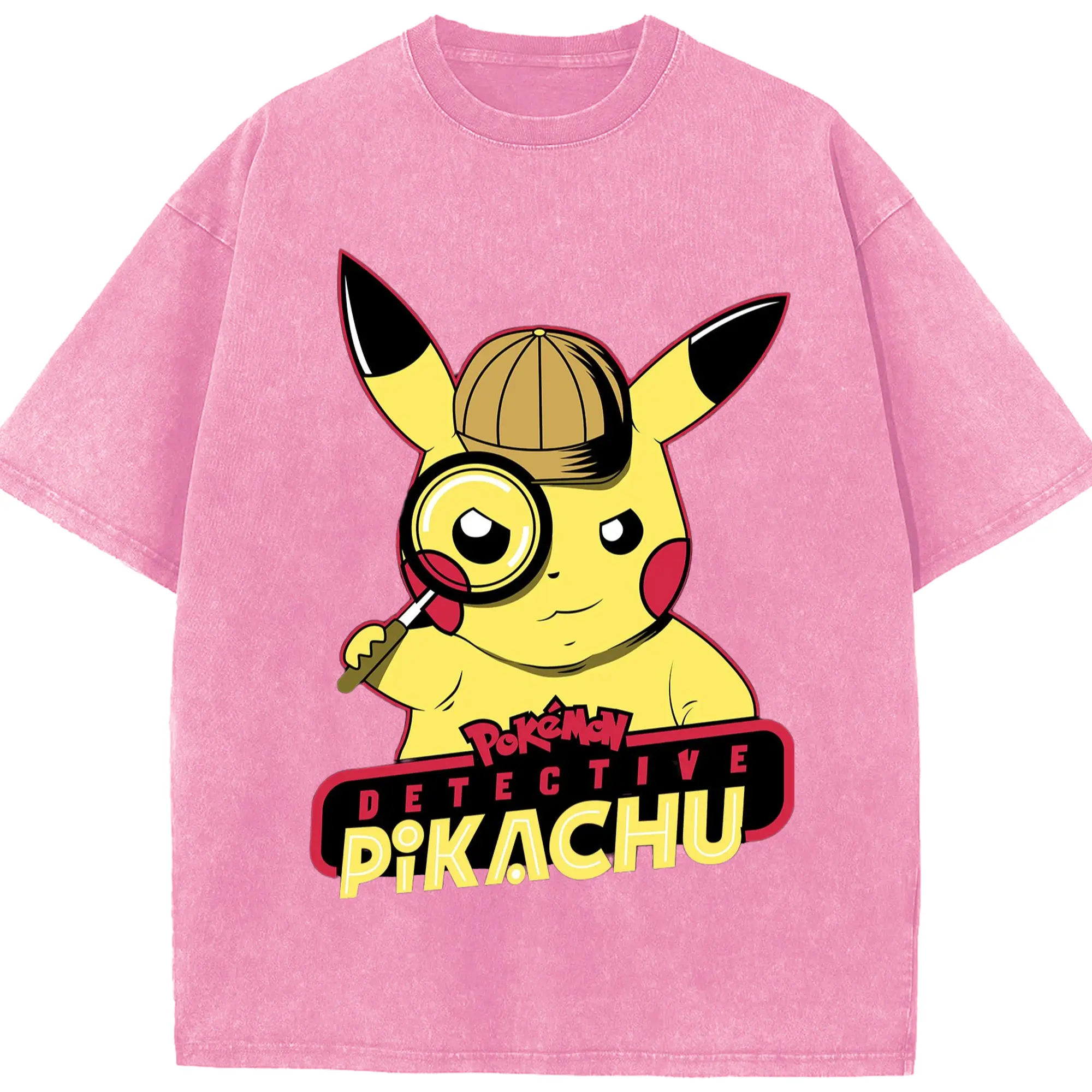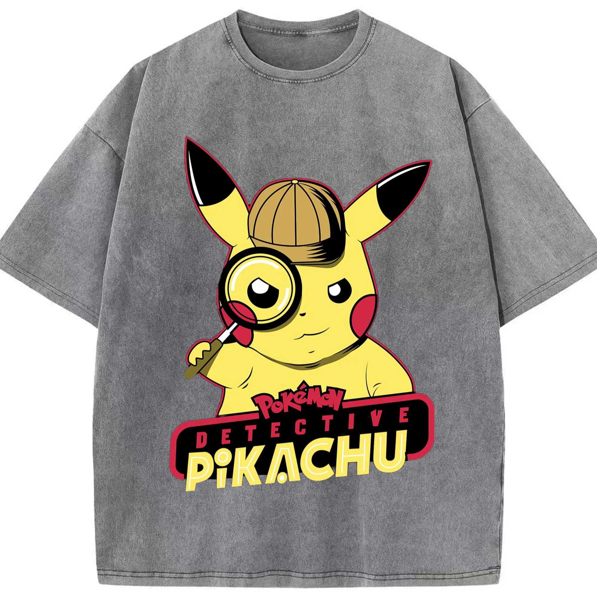 Pokemon Pikachu tee - Washed Vintage Look 230g Cotton Oversized T-Shirt With Front Heat Transfer Print – Soft, Lightweight, Stylish Fit – Comfortable Casual Wear For Sports & Everyday Use