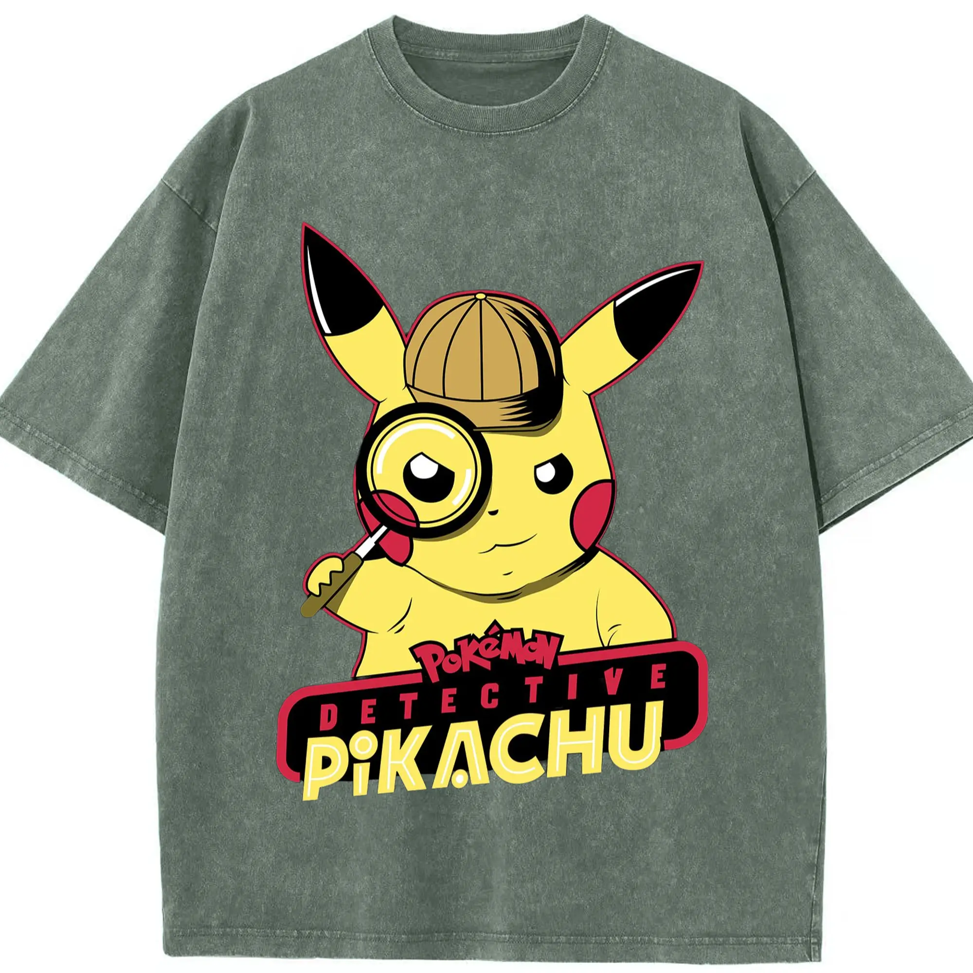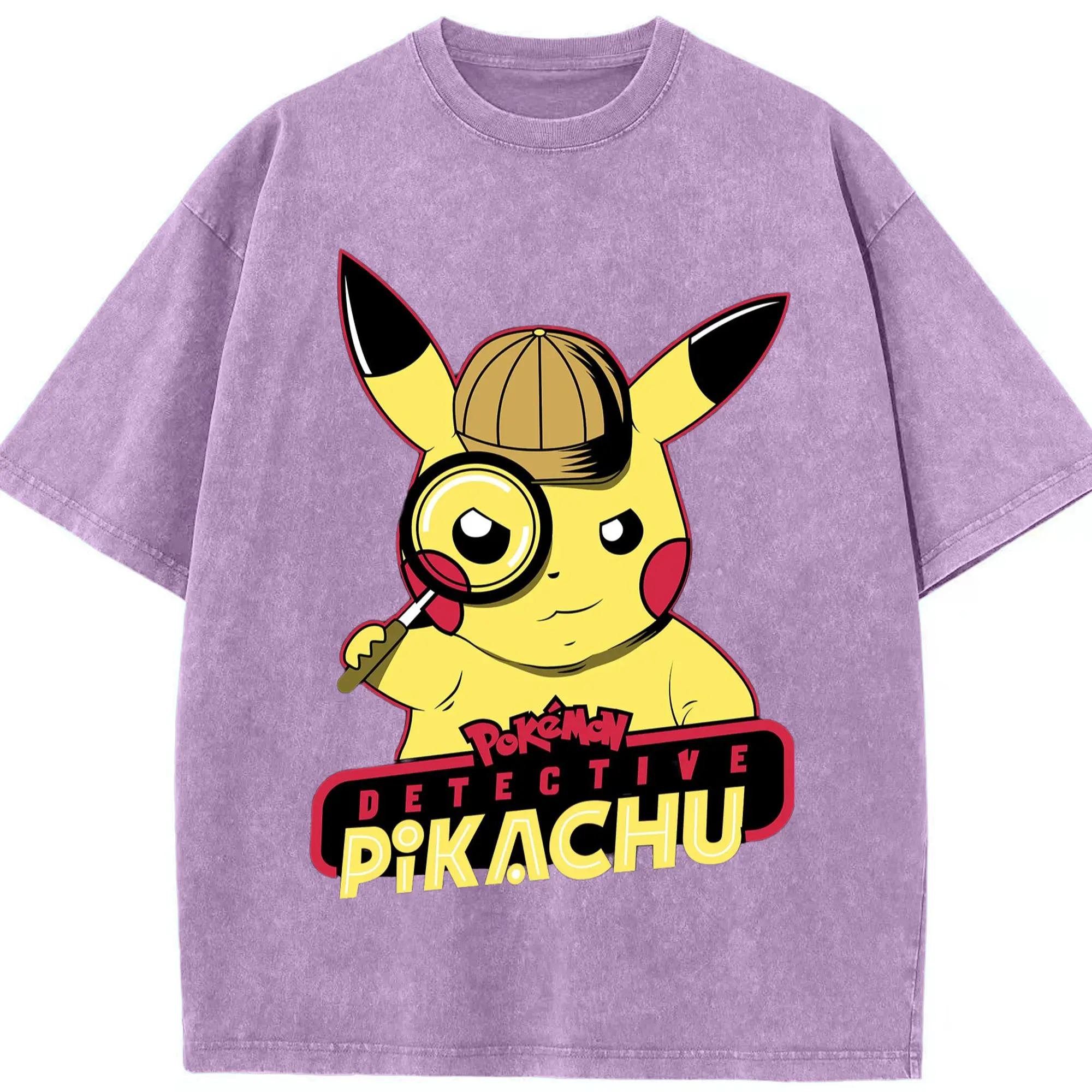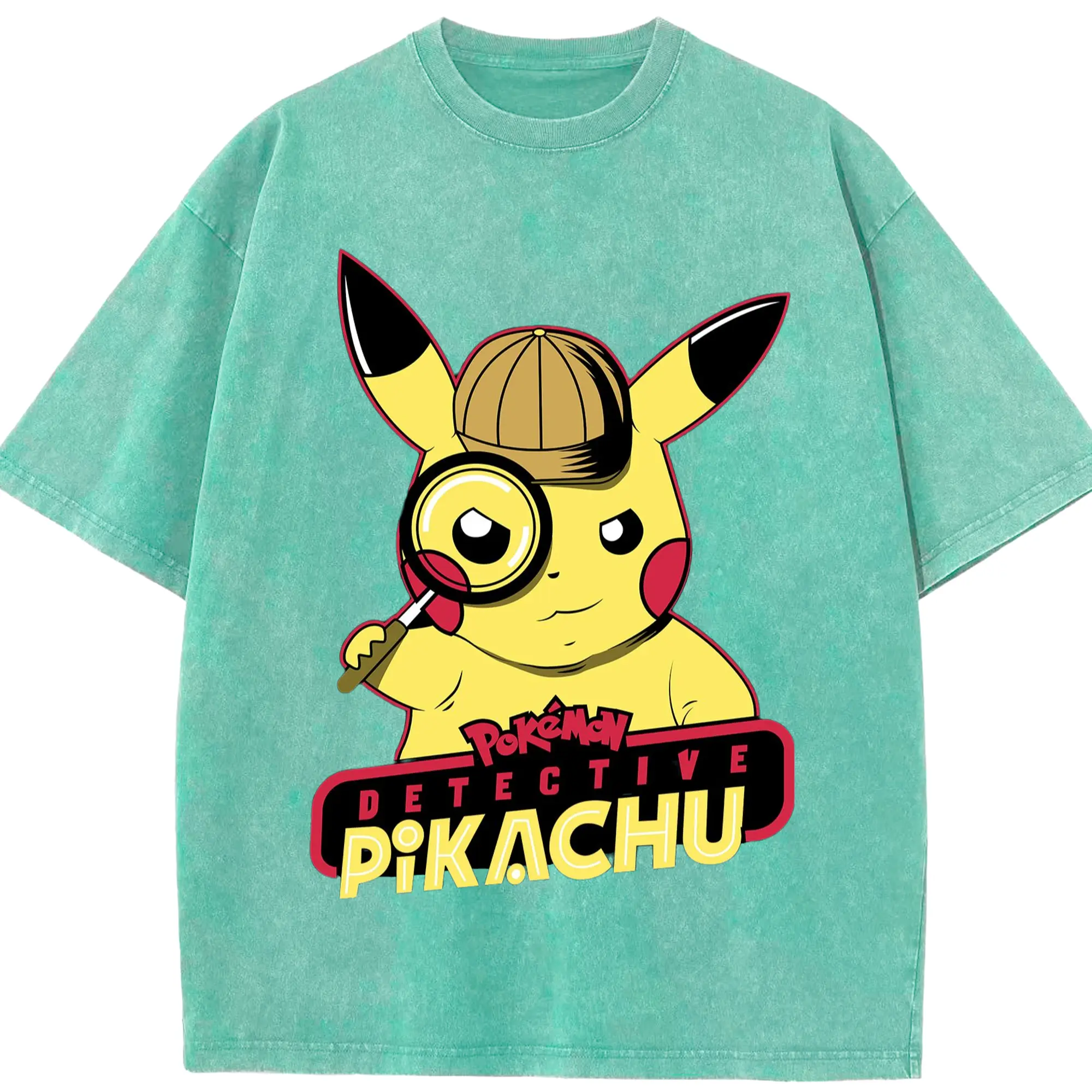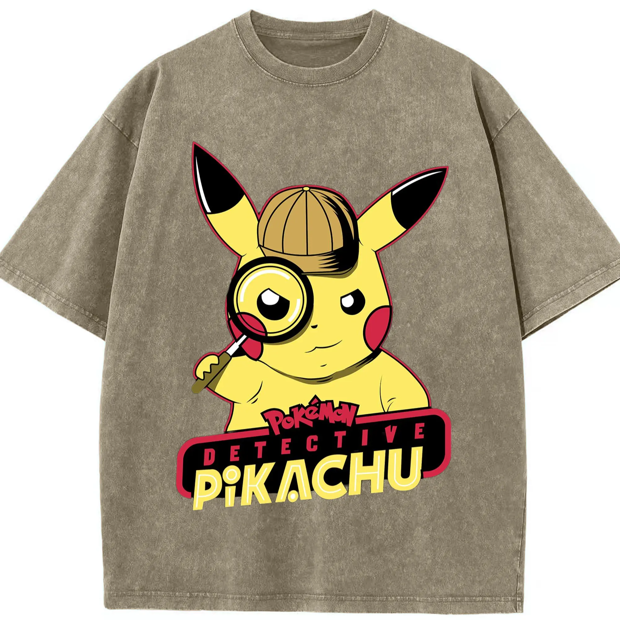 Pokemon Pikachu tee - Washed Vintage Look 230g Cotton Oversized T-Shirt With Front Heat Transfer Print – Soft, Lightweight, Stylish Fit – Comfortable Casual Wear For Sports & Everyday Use