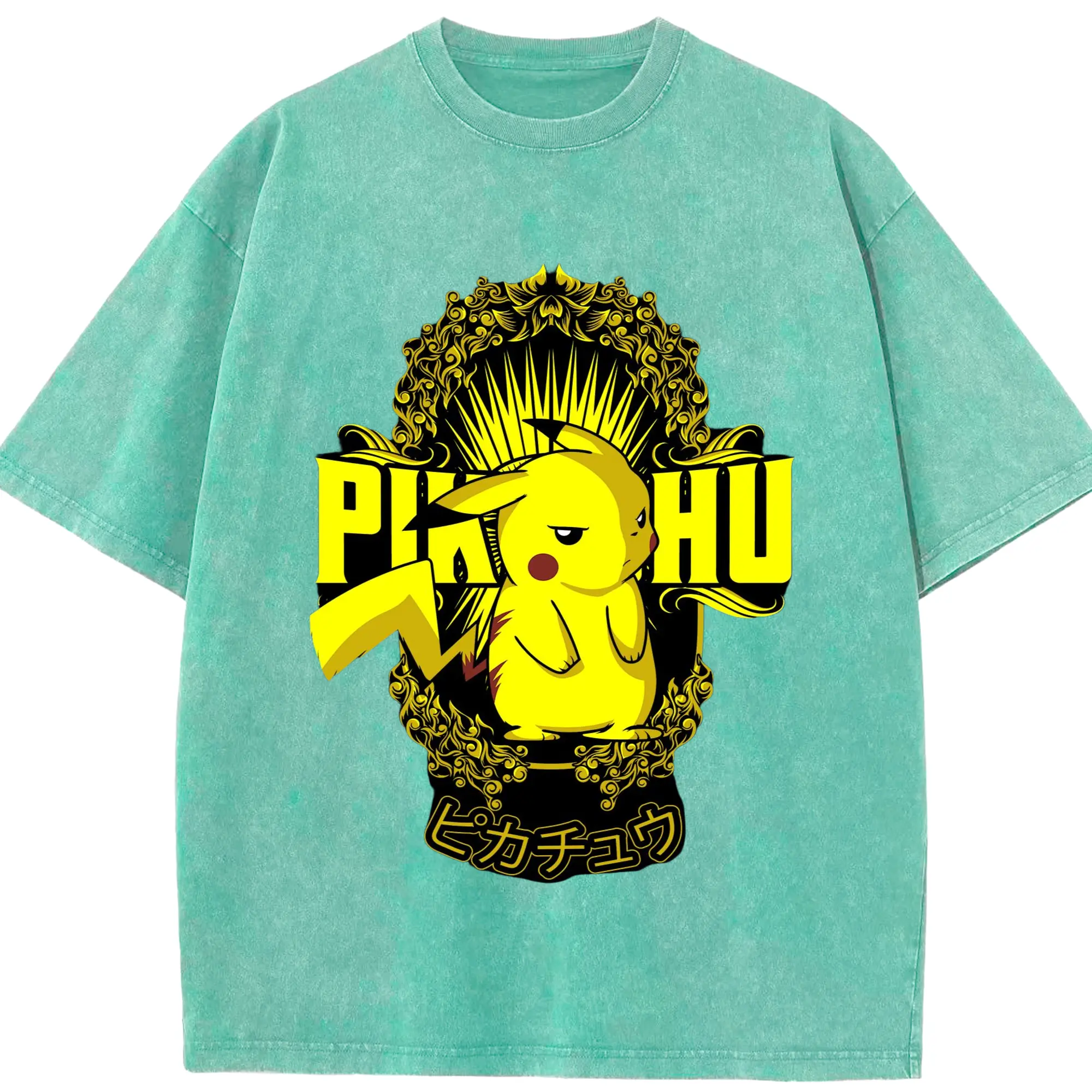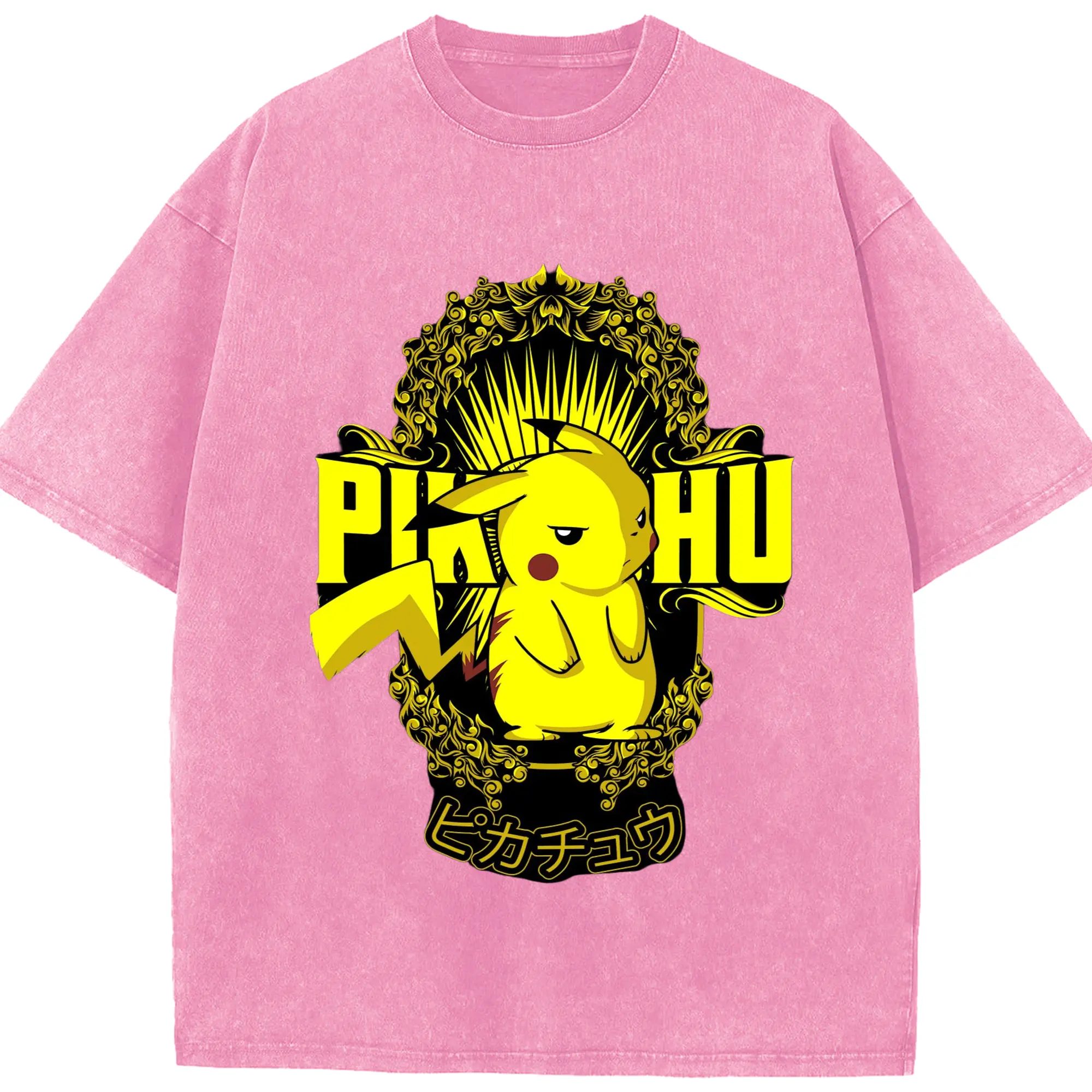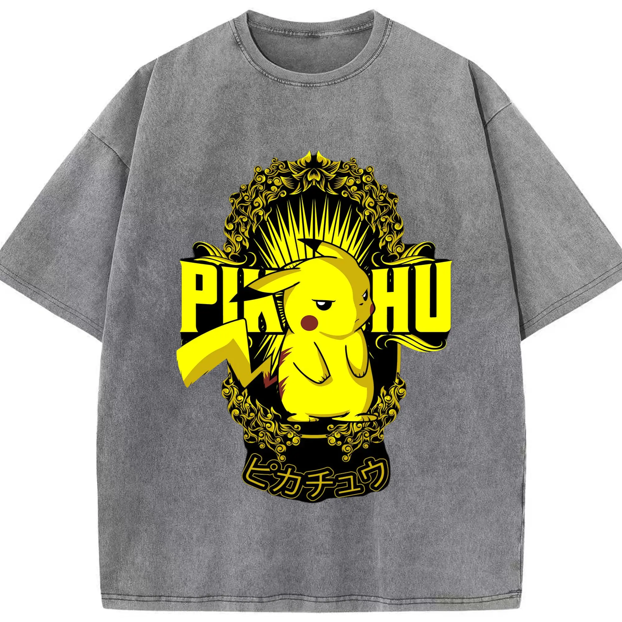 Pokemon Pikachu t-shirt - Washed Vintage Look 230g Cotton Oversized T-Shirt With Front Heat Transfer Print – Soft, Lightweight, Stylish Fit – Comfortable Casual Wear For Sports & Everyday Use
