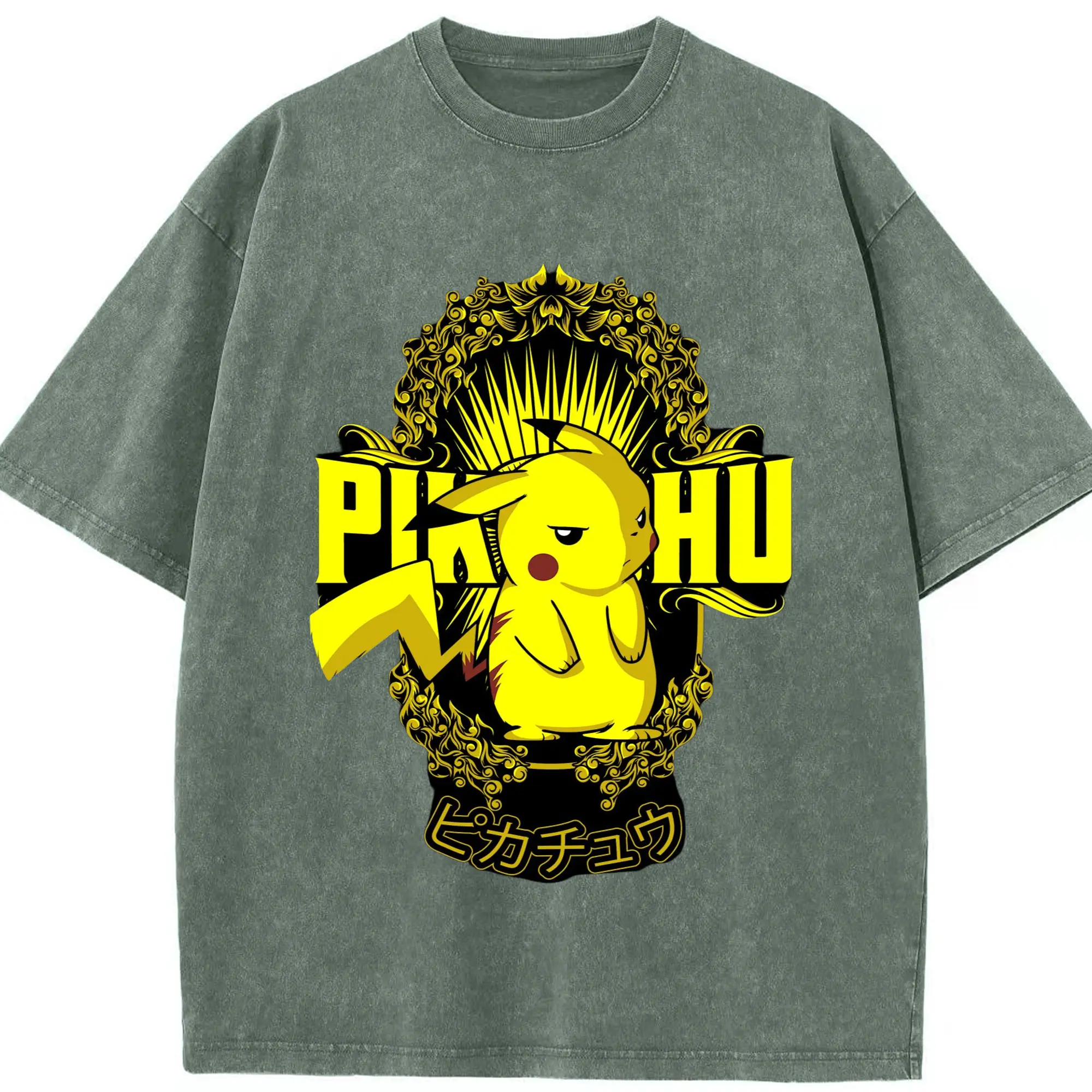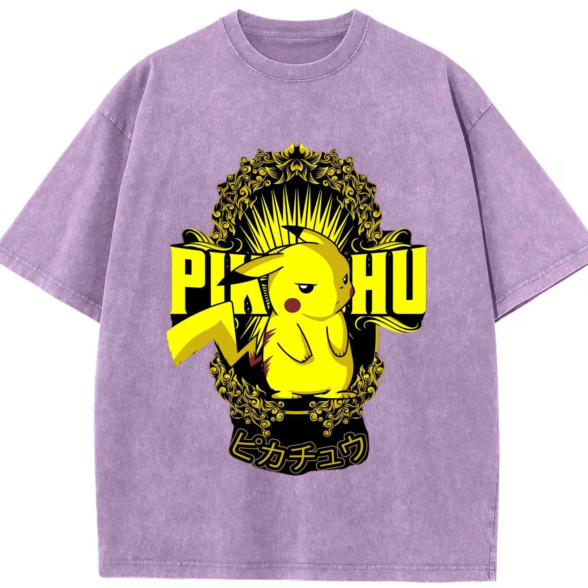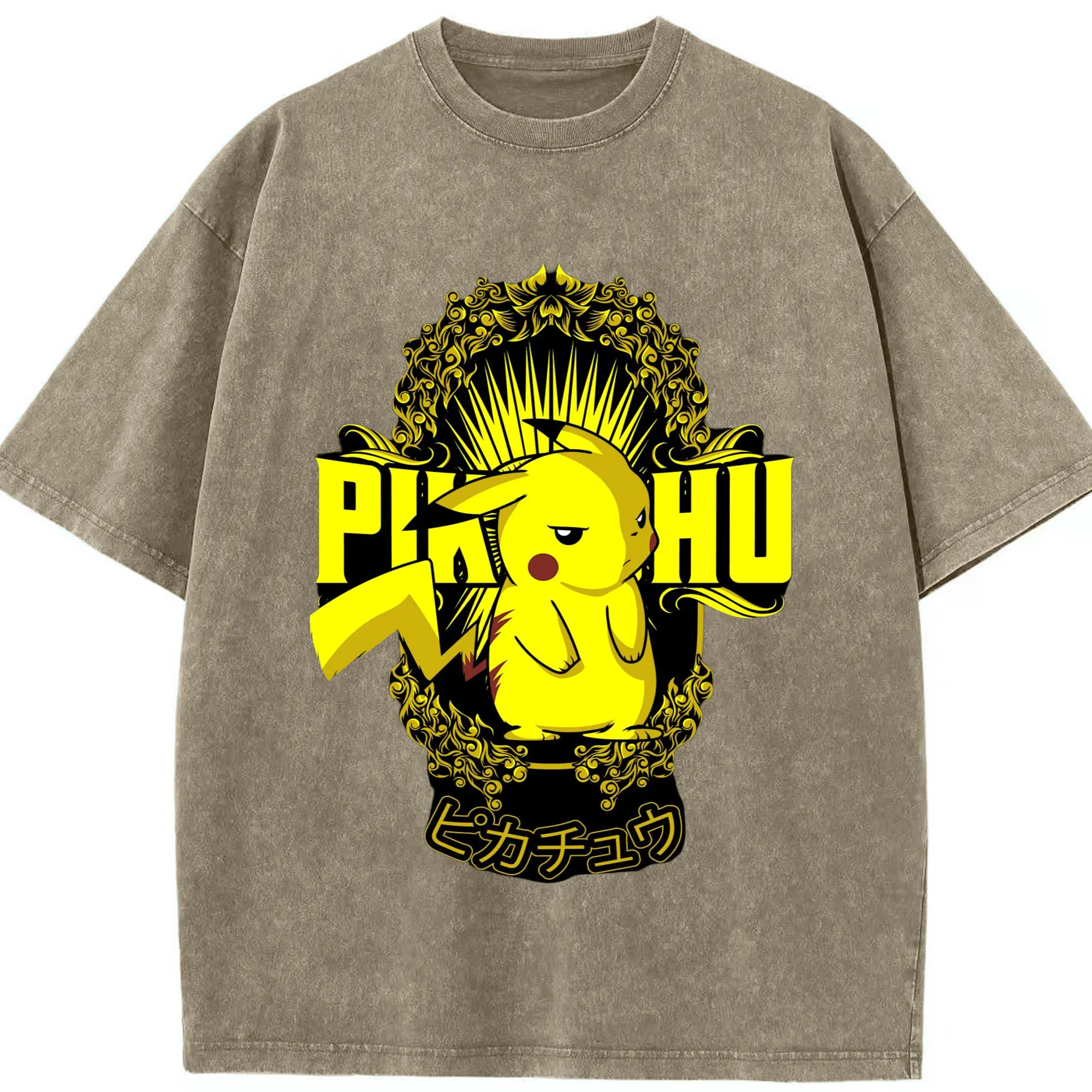 Pokemon Pikachu t-shirt - Washed Vintage Look 230g Cotton Oversized T-Shirt With Front Heat Transfer Print – Soft, Lightweight, Stylish Fit – Comfortable Casual Wear For Sports & Everyday Use