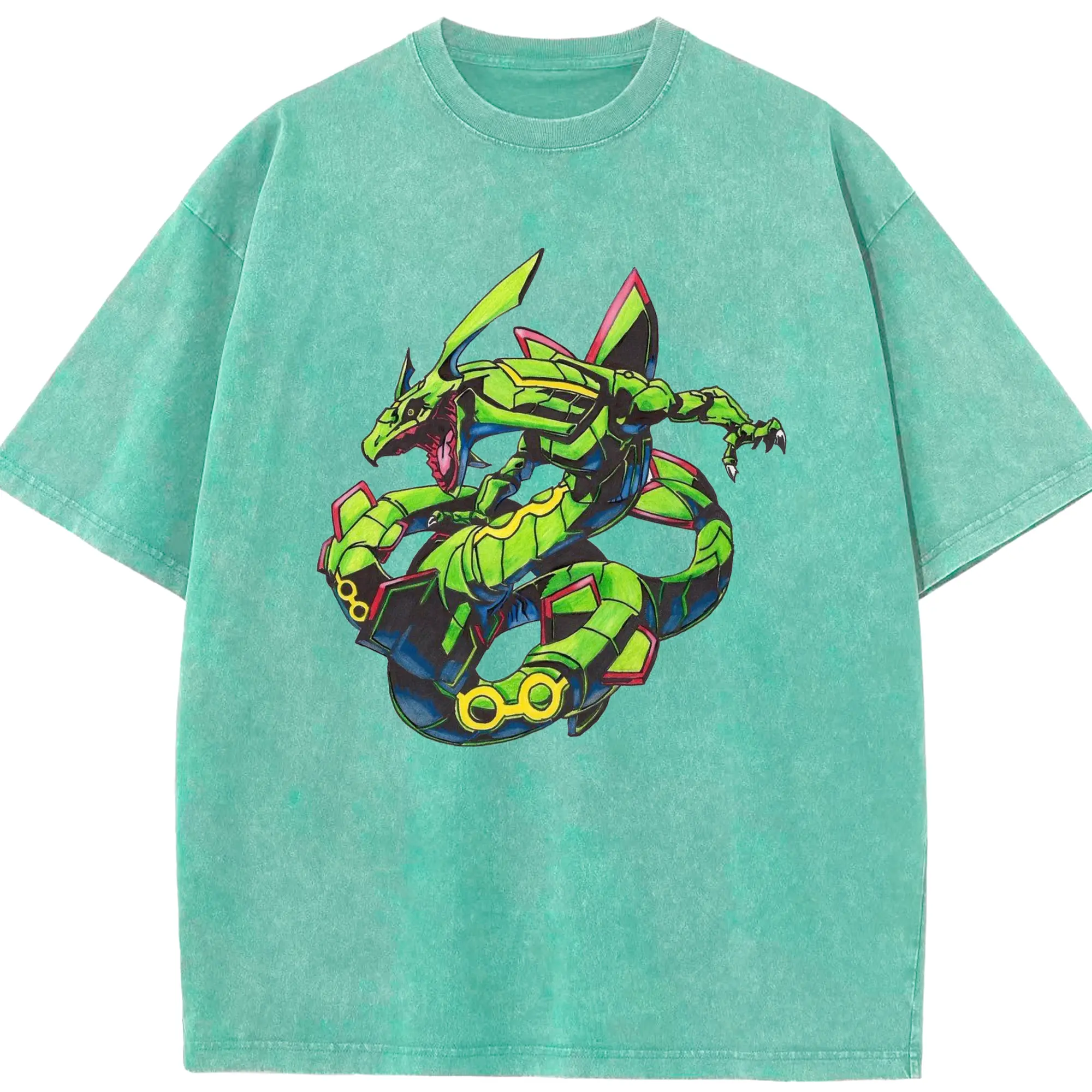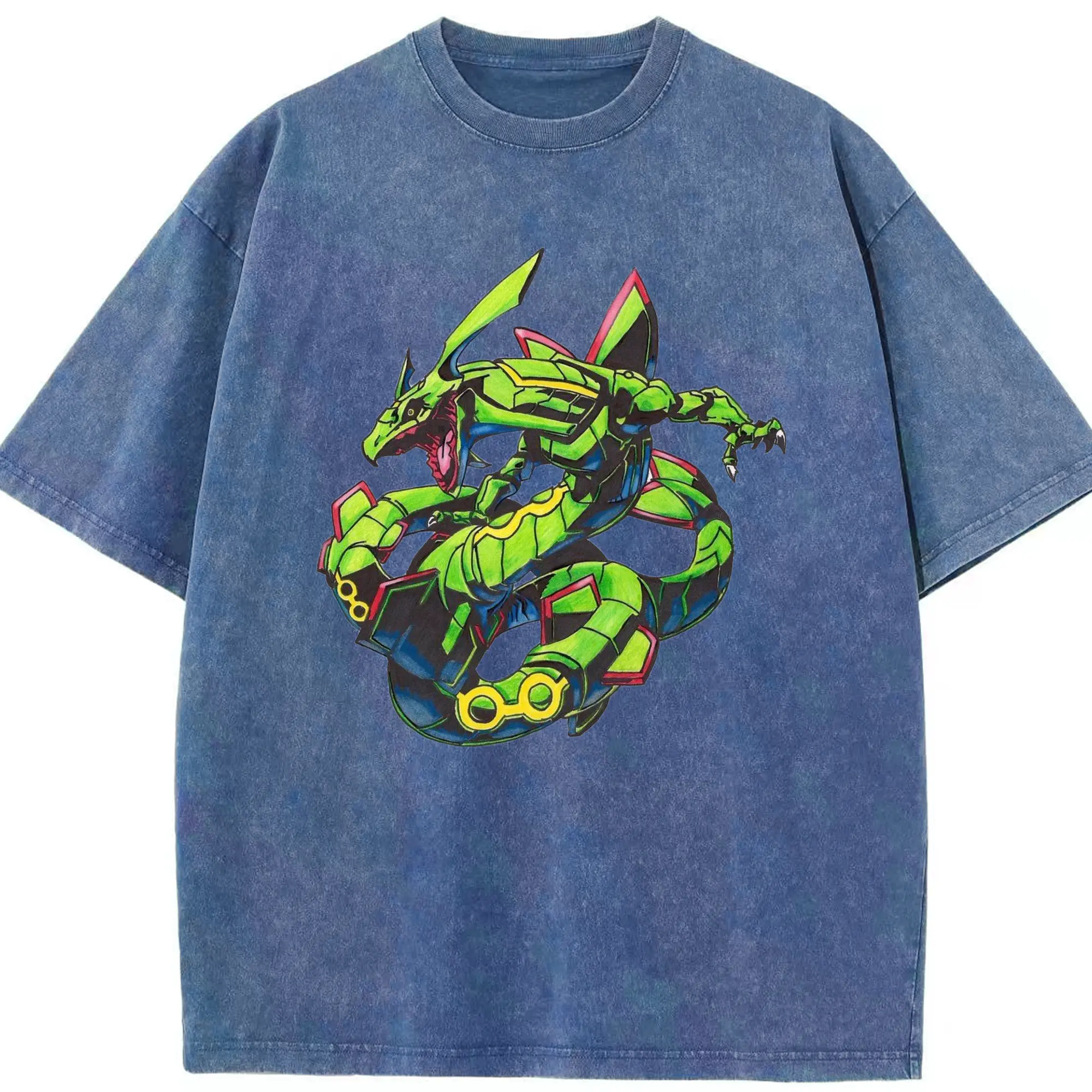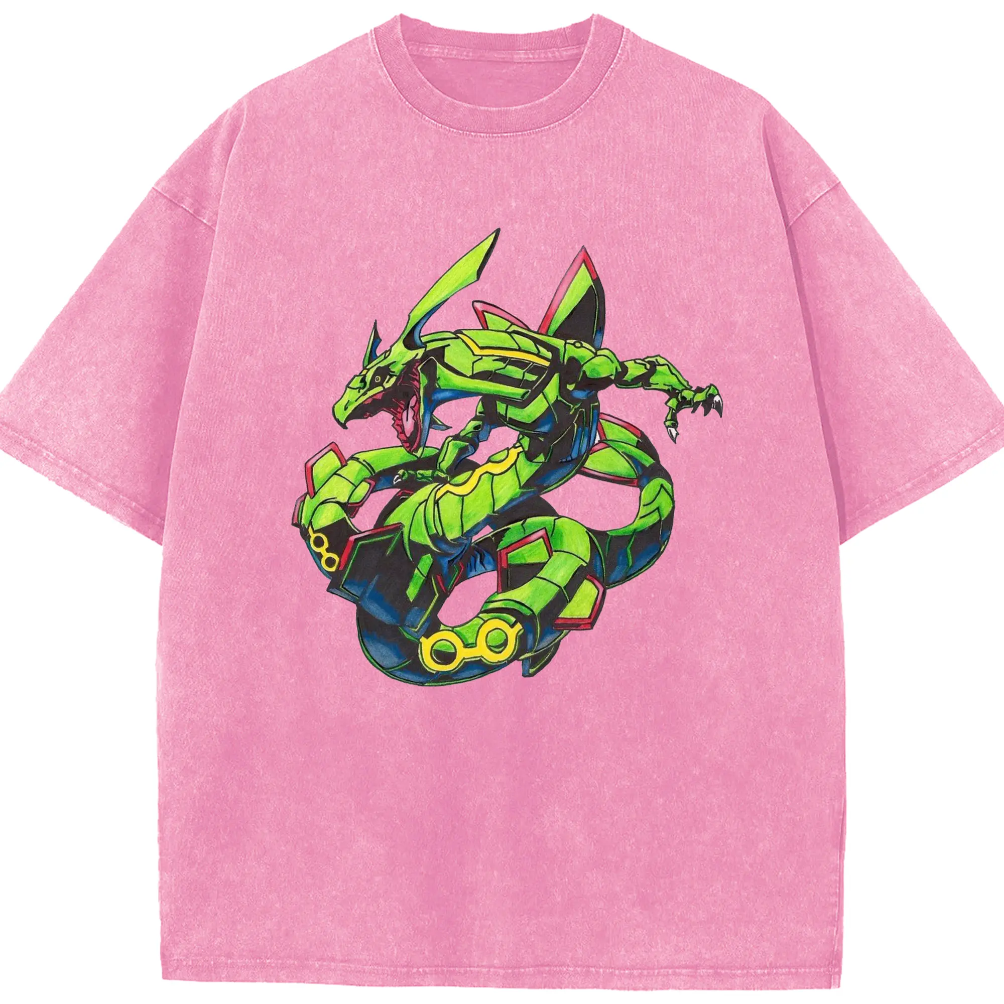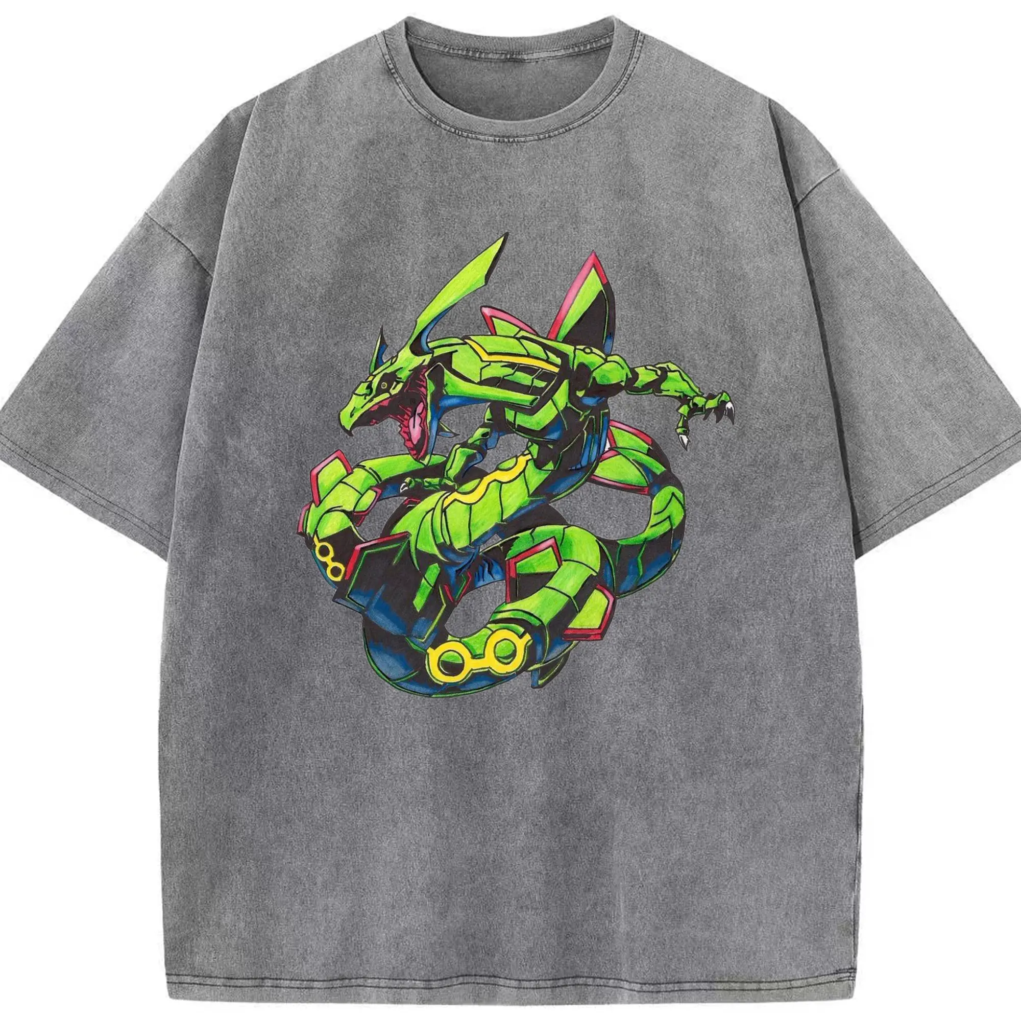 Pokemon rayquaza shirt - Washed Vintage Look 230g Cotton Oversized T-Shirt With Front Heat Transfer Print – Soft, Lightweight, Stylish Fit – Comfortable Casual Wear For Sports & Everyday Use