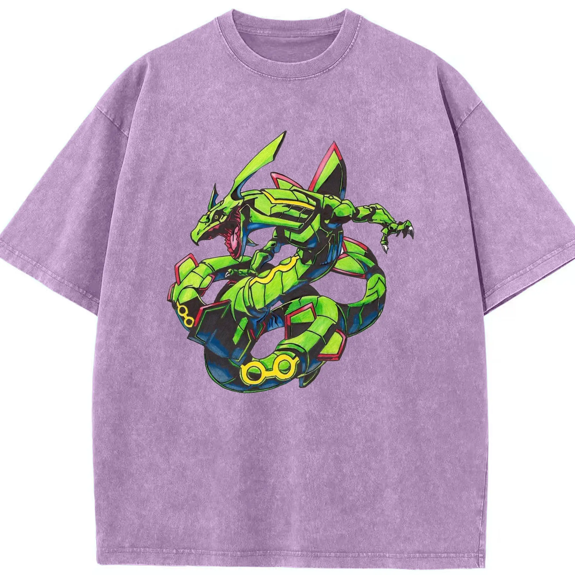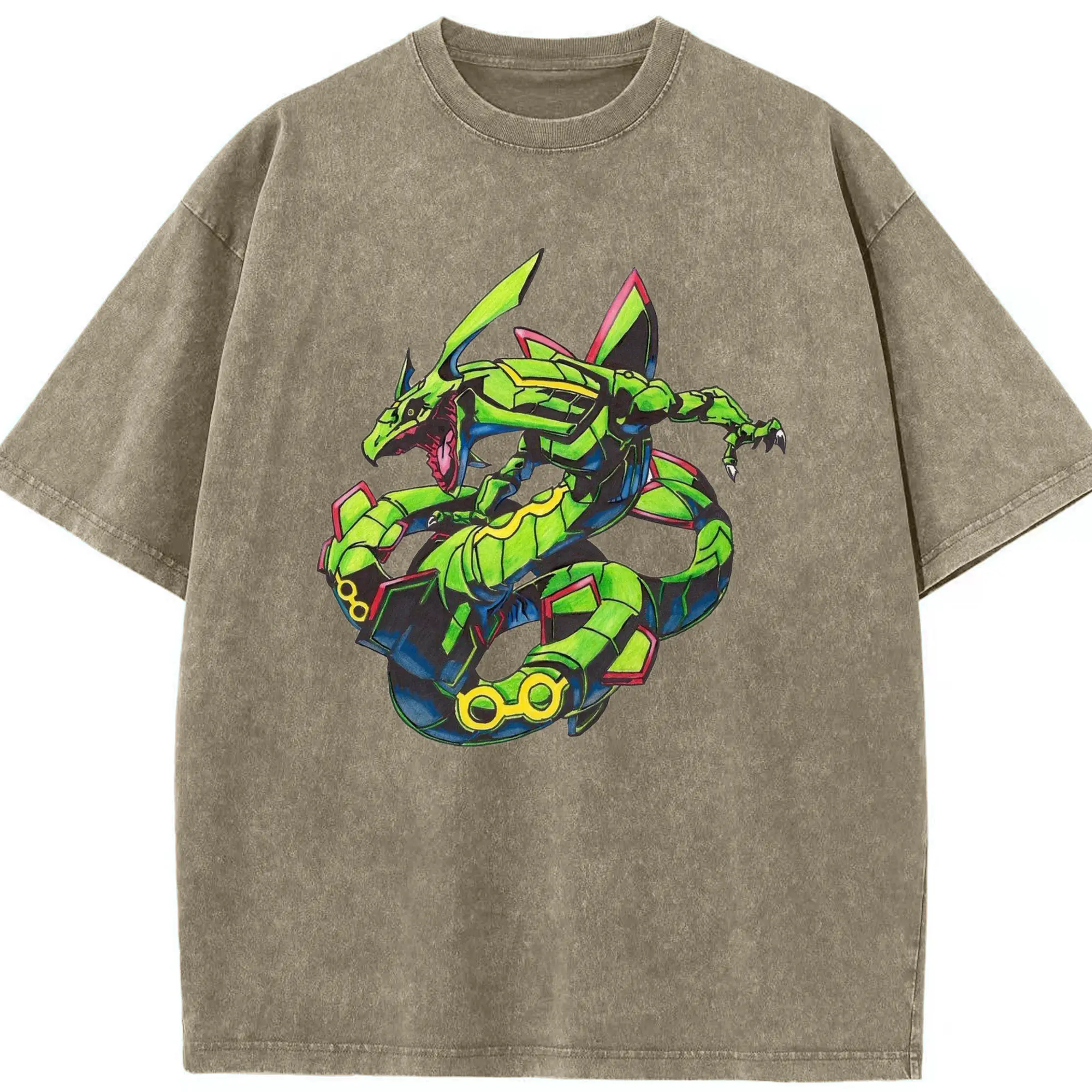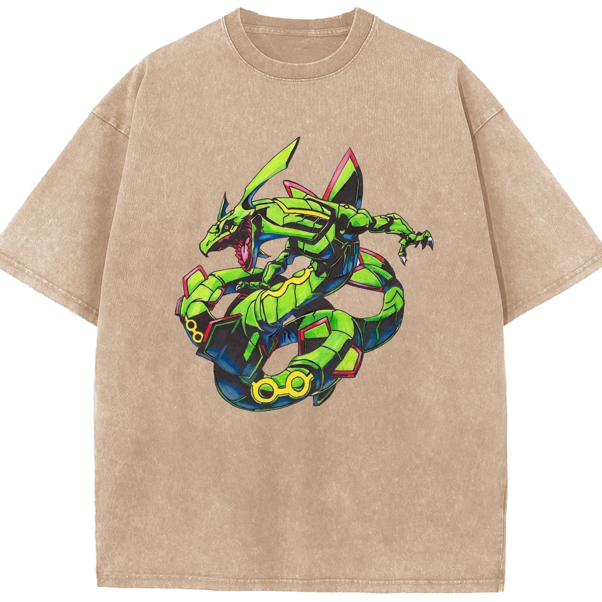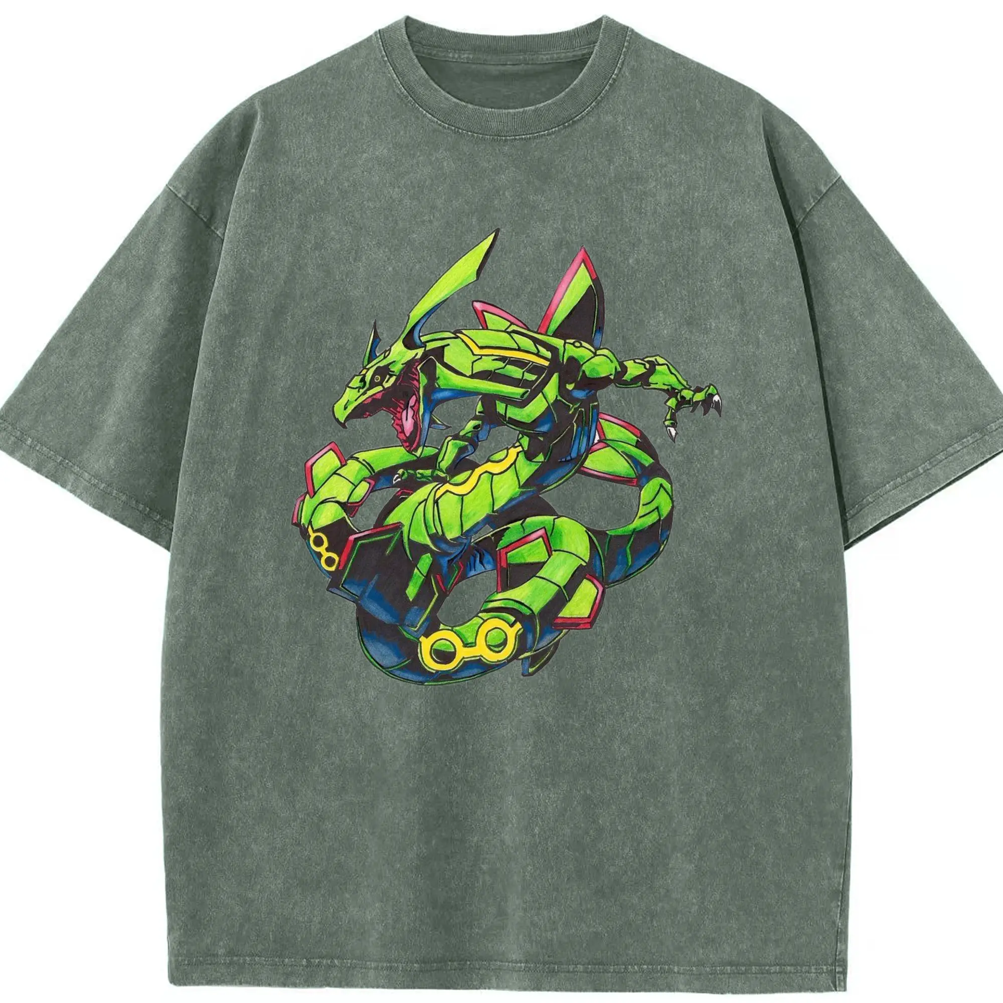 Pokemon rayquaza shirt - Washed Vintage Look 230g Cotton Oversized T-Shirt With Front Heat Transfer Print – Soft, Lightweight, Stylish Fit – Comfortable Casual Wear For Sports & Everyday Use