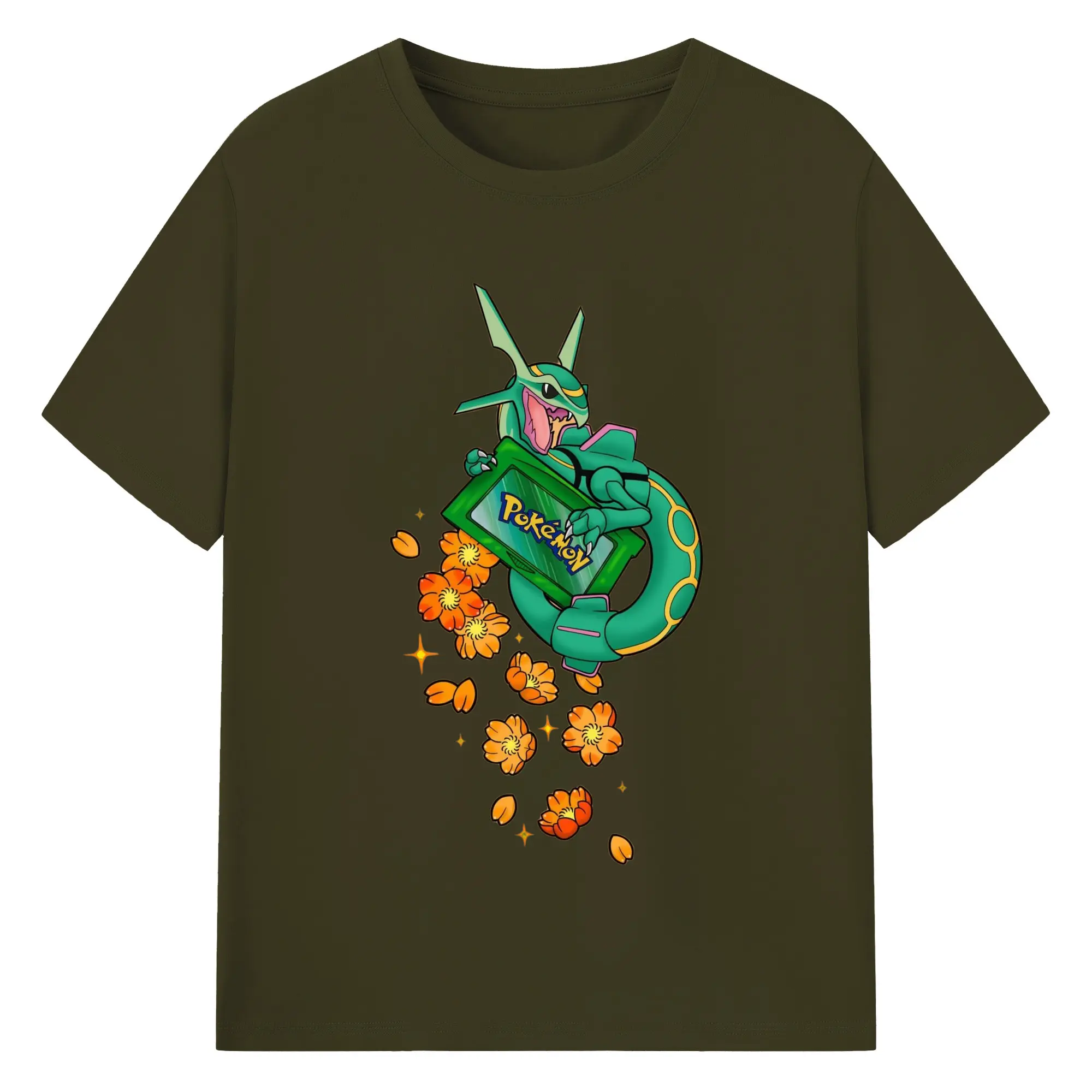 Pokemon rayquaza t-shirt - 180g Cotton T-Shirt With Front Heat Transfer Print – Soft, Lightweight, Fitted Design – Comfortable Casual Wear For Sports & Everyday Use