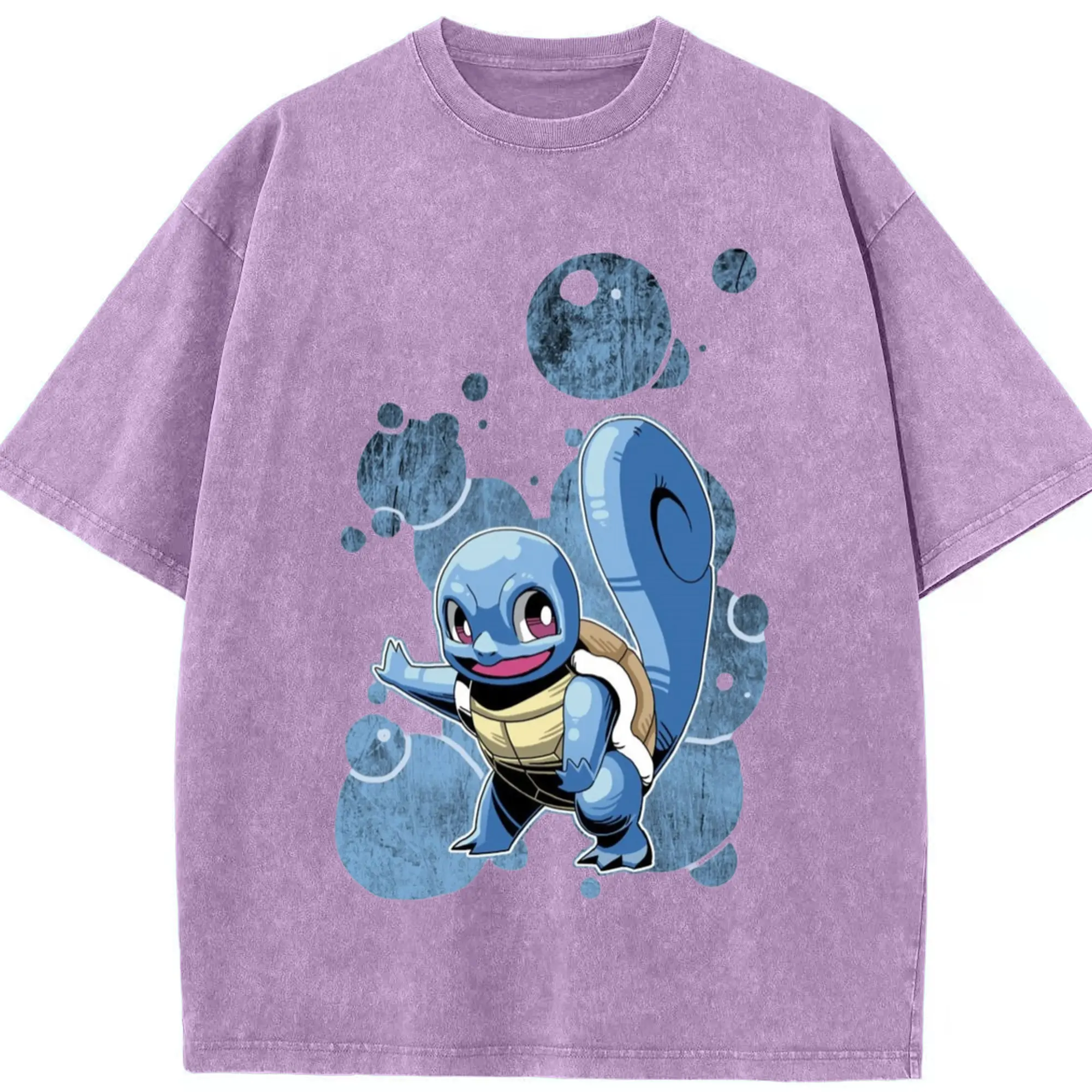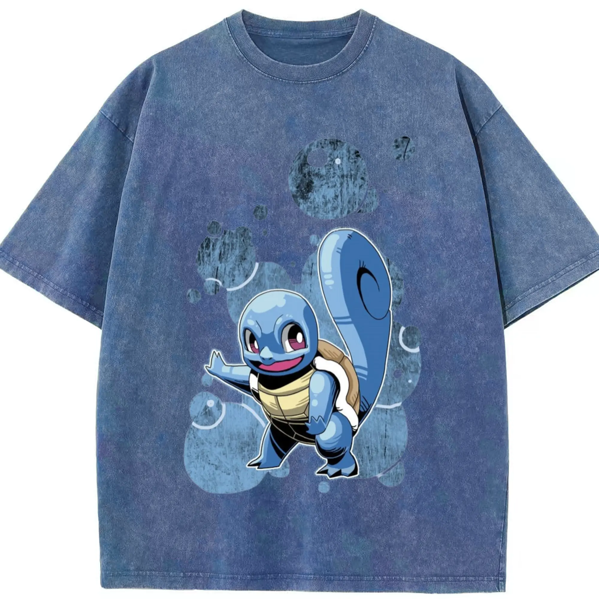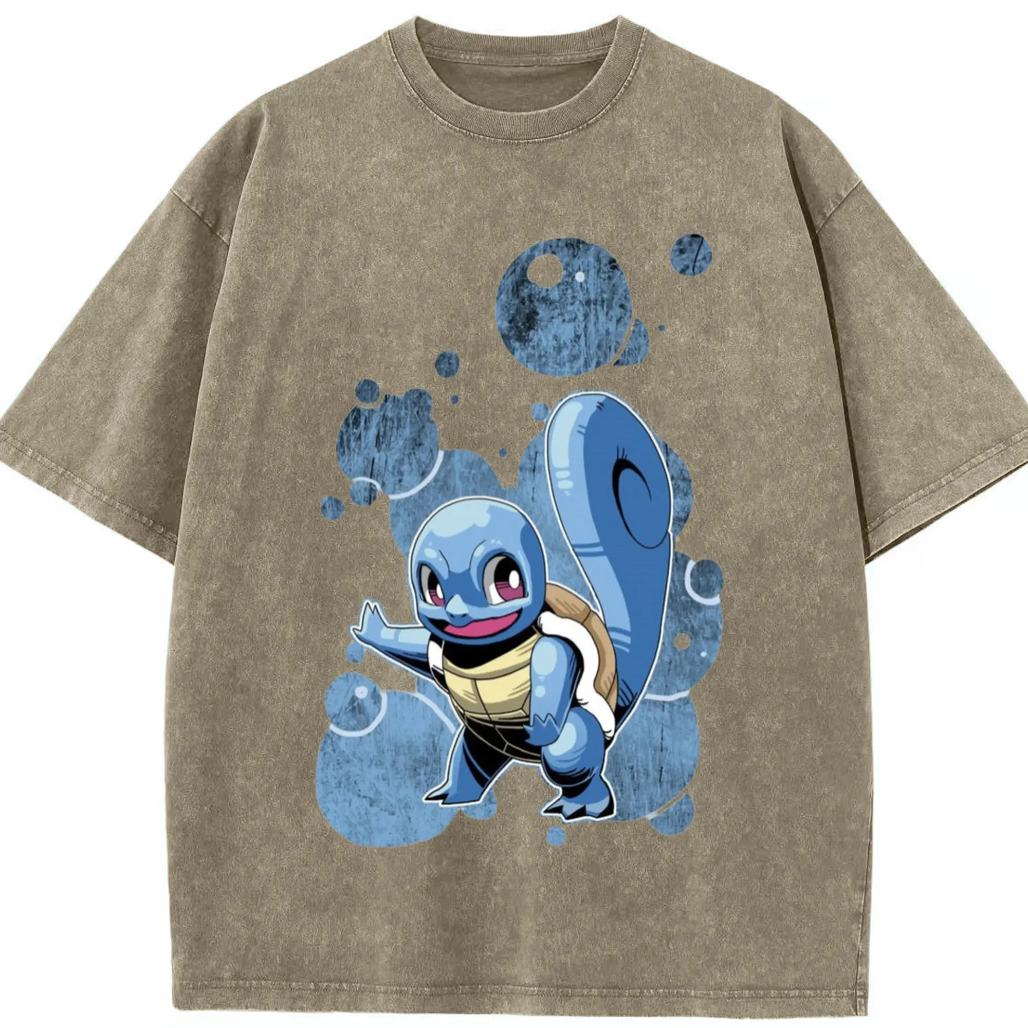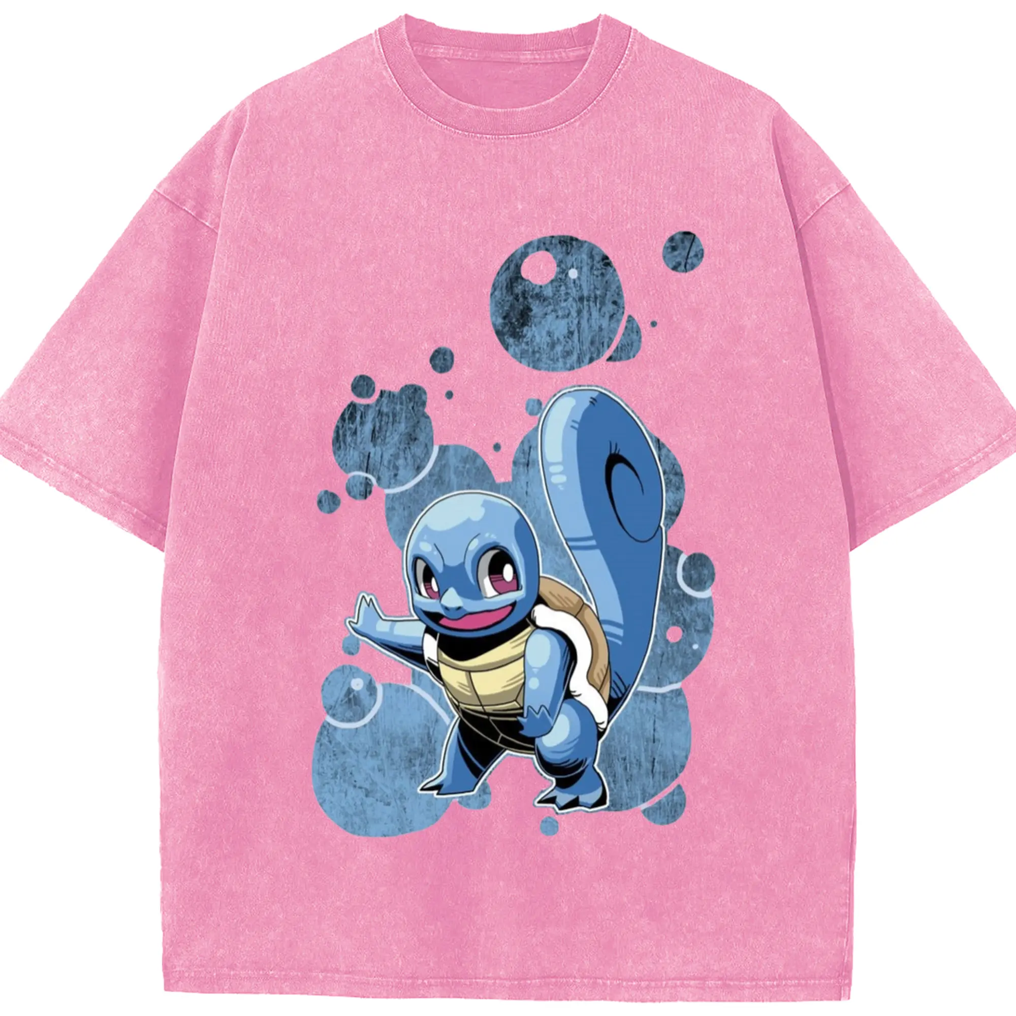 Pokemon squirtle graphic tee - Washed Vintage Look 230g Cotton Oversized T-Shirt With Front Heat Transfer Print – Soft, Lightweight, Stylish Fit – Comfortable Casual Wear For Sports & Everyday Use