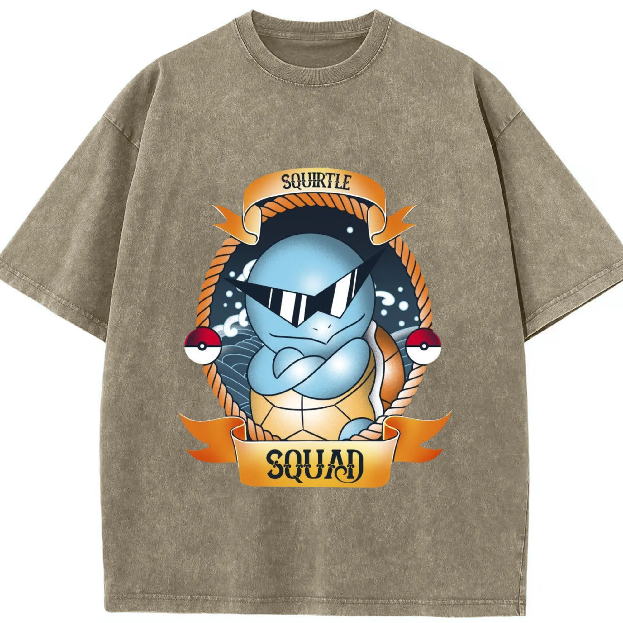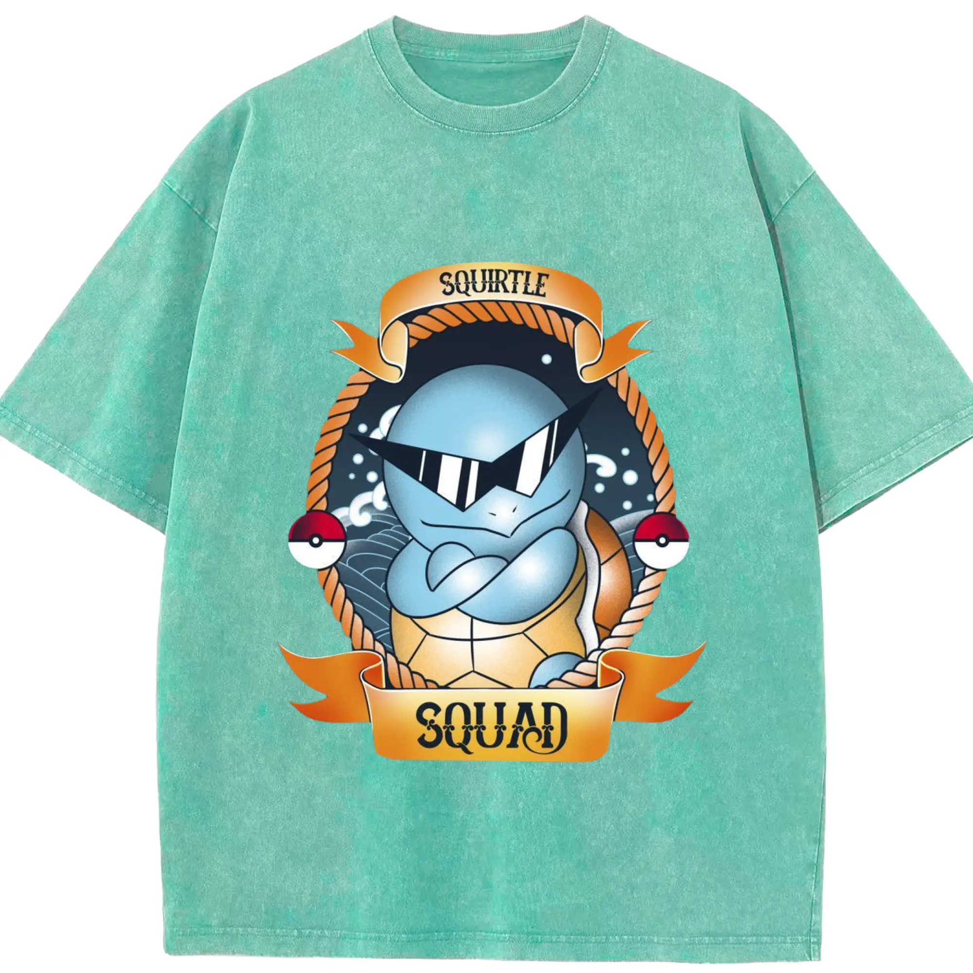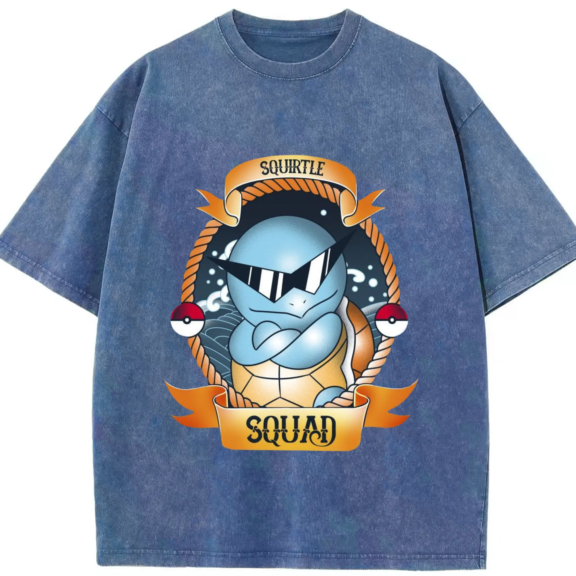 Pokemon squirtle icon t shirt​ - Washed Vintage Look 230g Cotton Oversized T-Shirt With Front Heat Transfer Print – Soft, Lightweight, Stylish Fit – Comfortable Casual Wear For Sports & Everyday Use