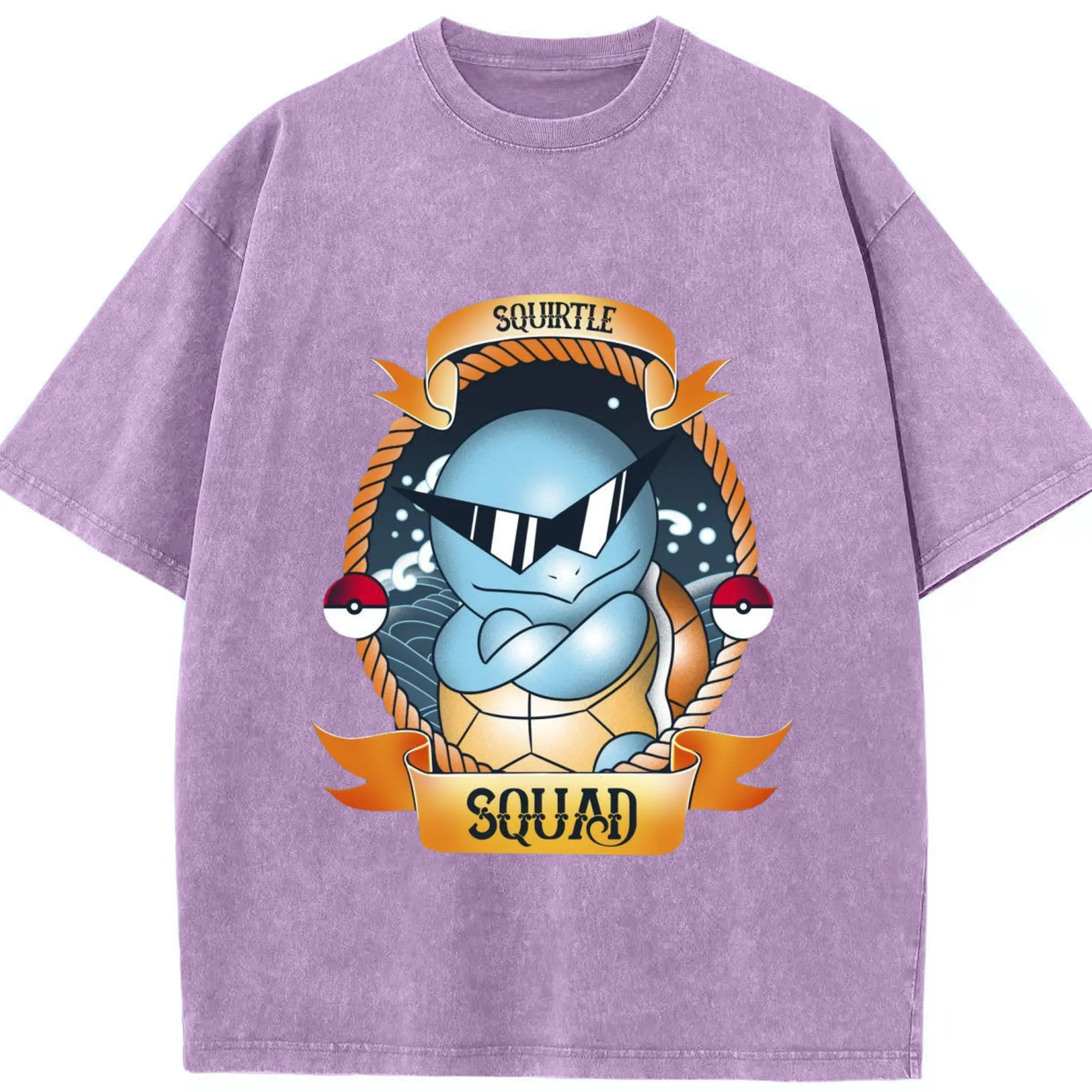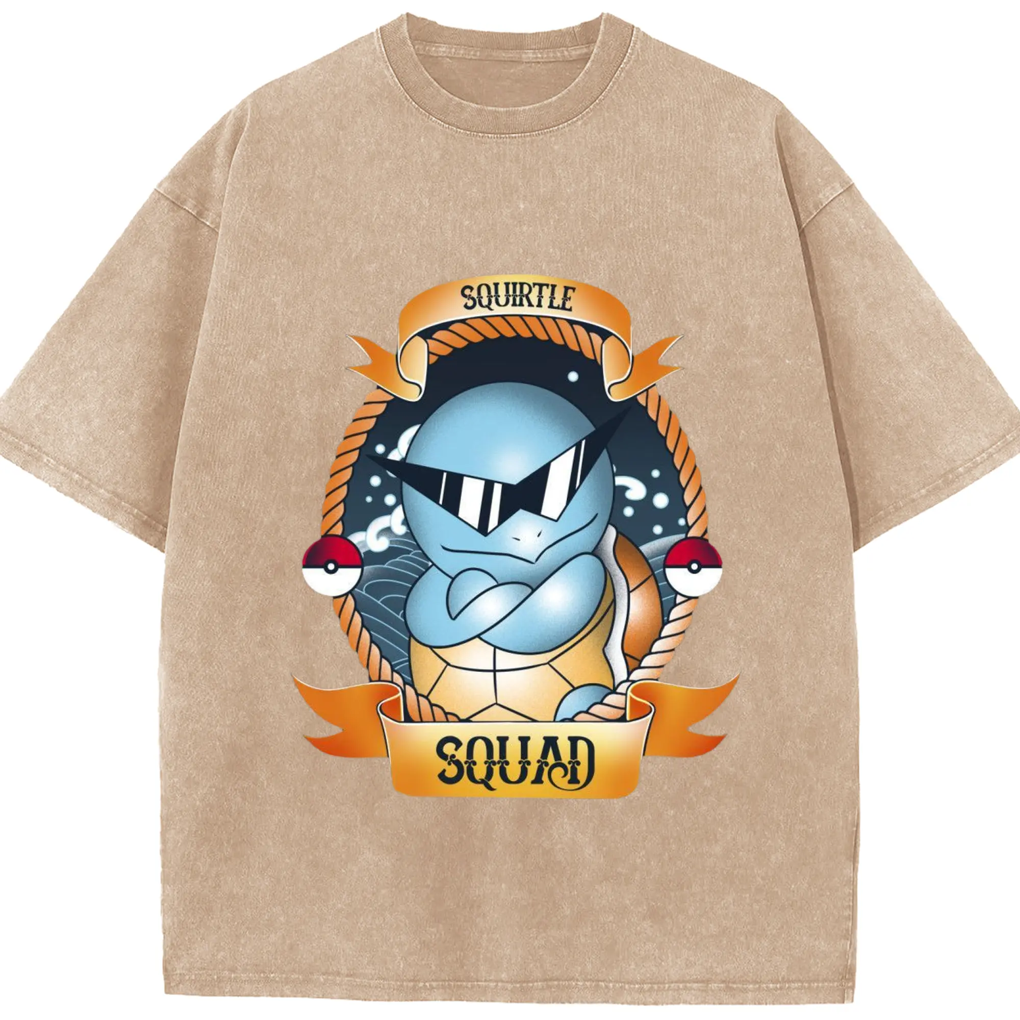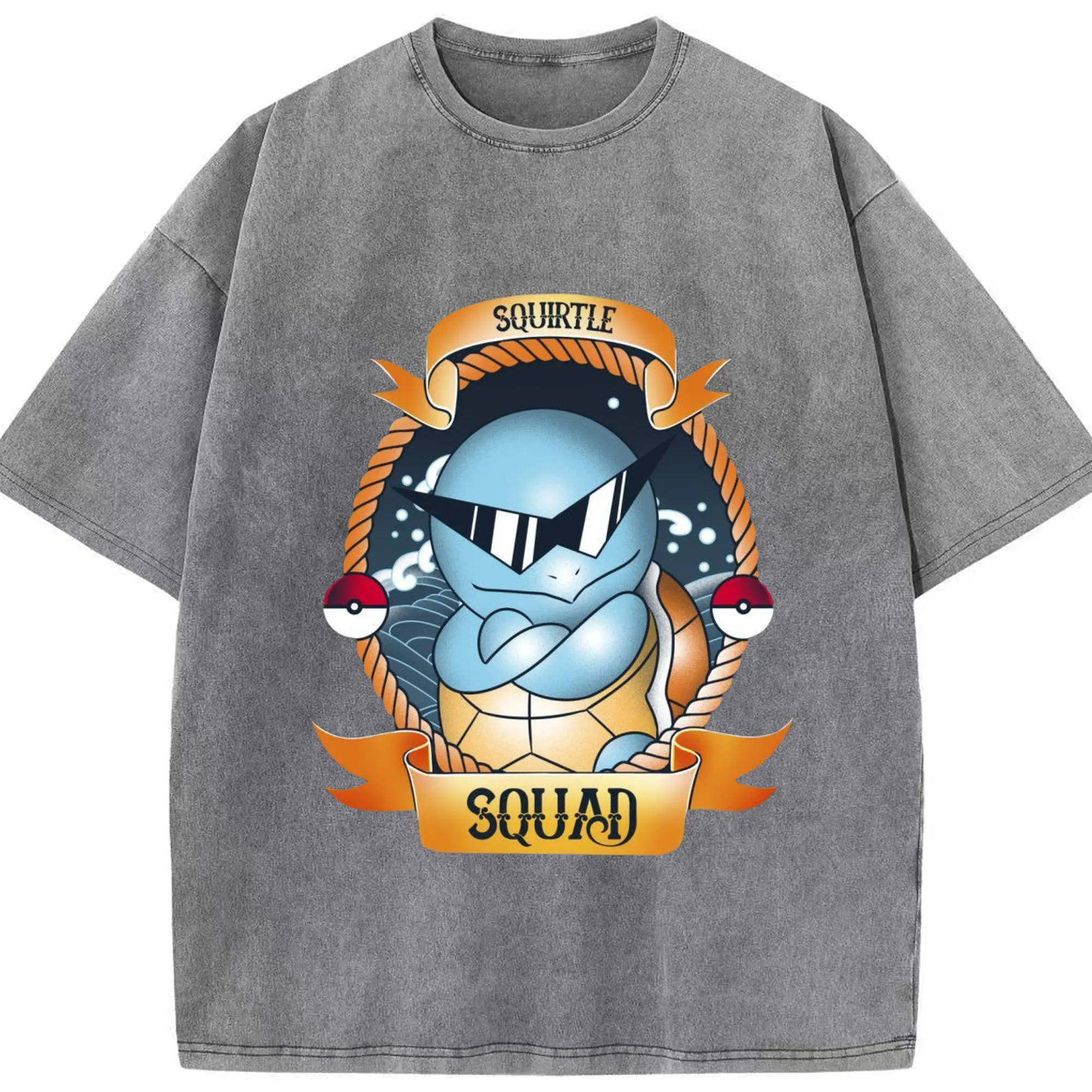 Pokemon squirtle icon t shirt​ - Washed Vintage Look 230g Cotton Oversized T-Shirt With Front Heat Transfer Print – Soft, Lightweight, Stylish Fit – Comfortable Casual Wear For Sports & Everyday Use
