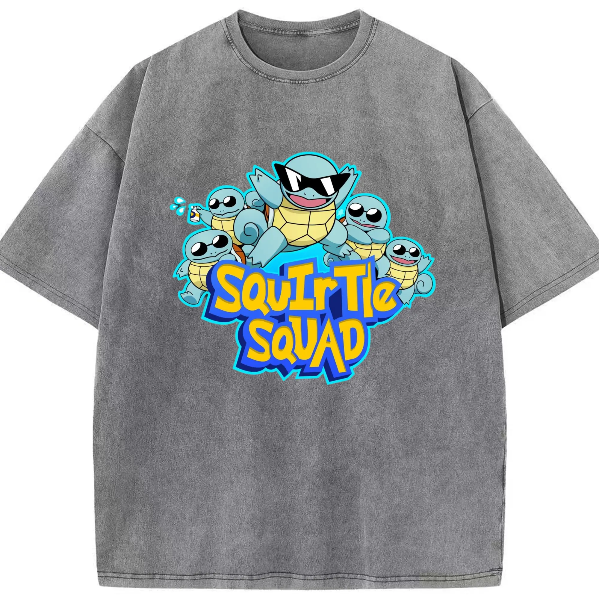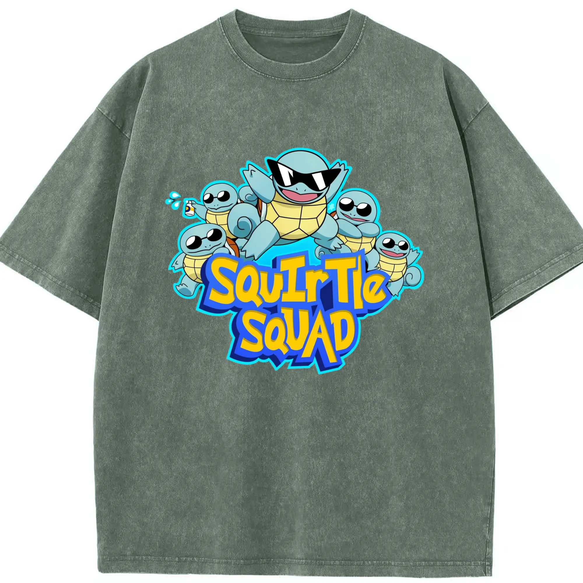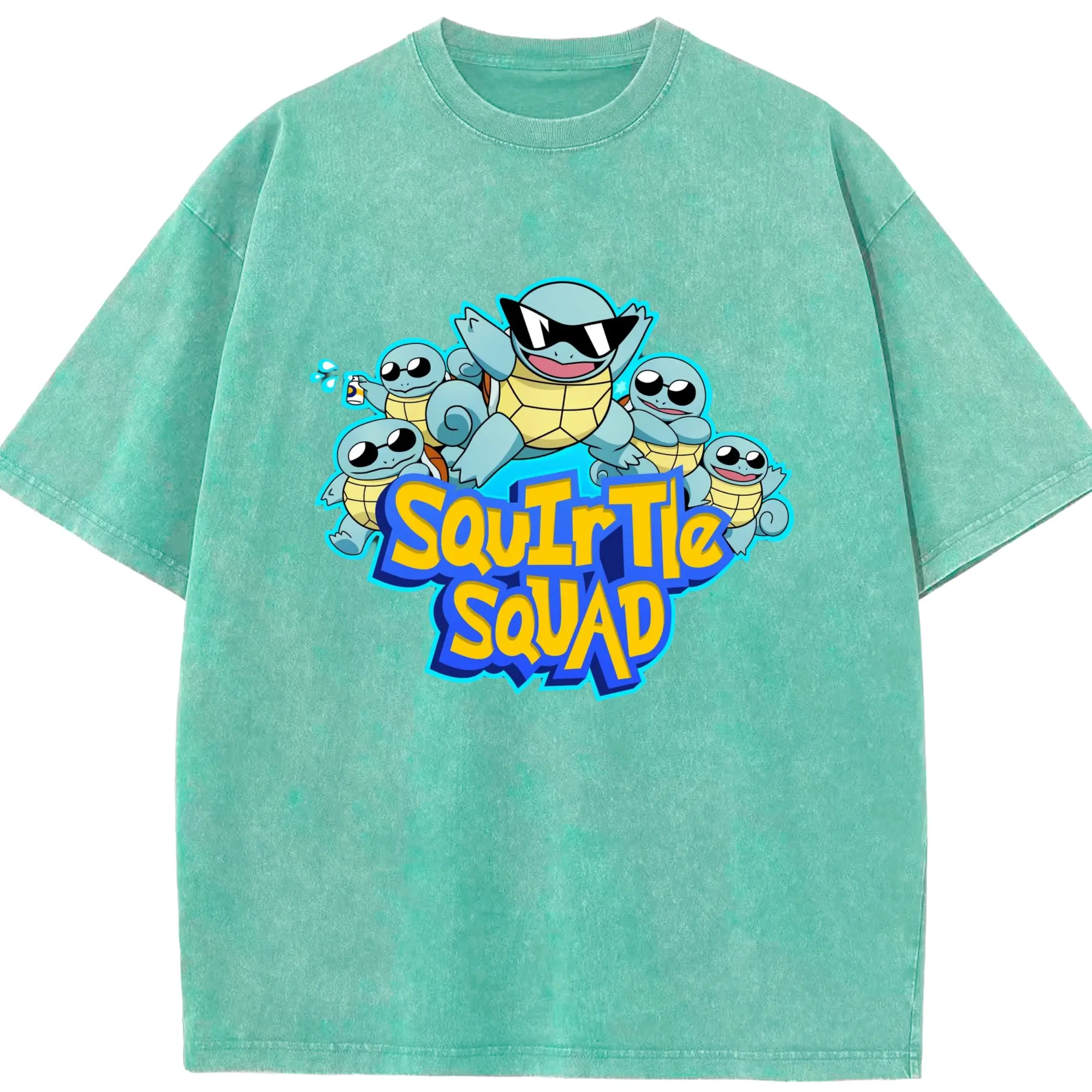 Pokemon squirtle squad shirt​ - Washed Vintage Look 230g Cotton Oversized T-Shirt With Front Heat Transfer Print – Soft, Lightweight, Stylish Fit – Comfortable Casual Wear For Sports & Everyday Use