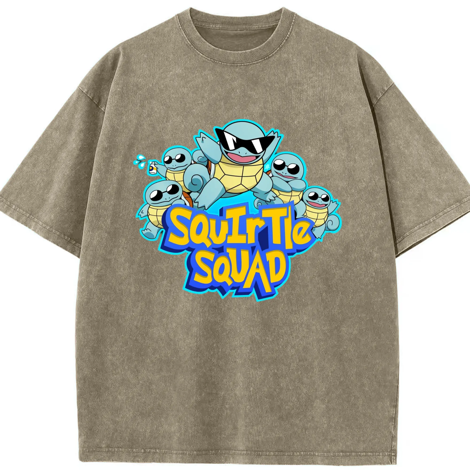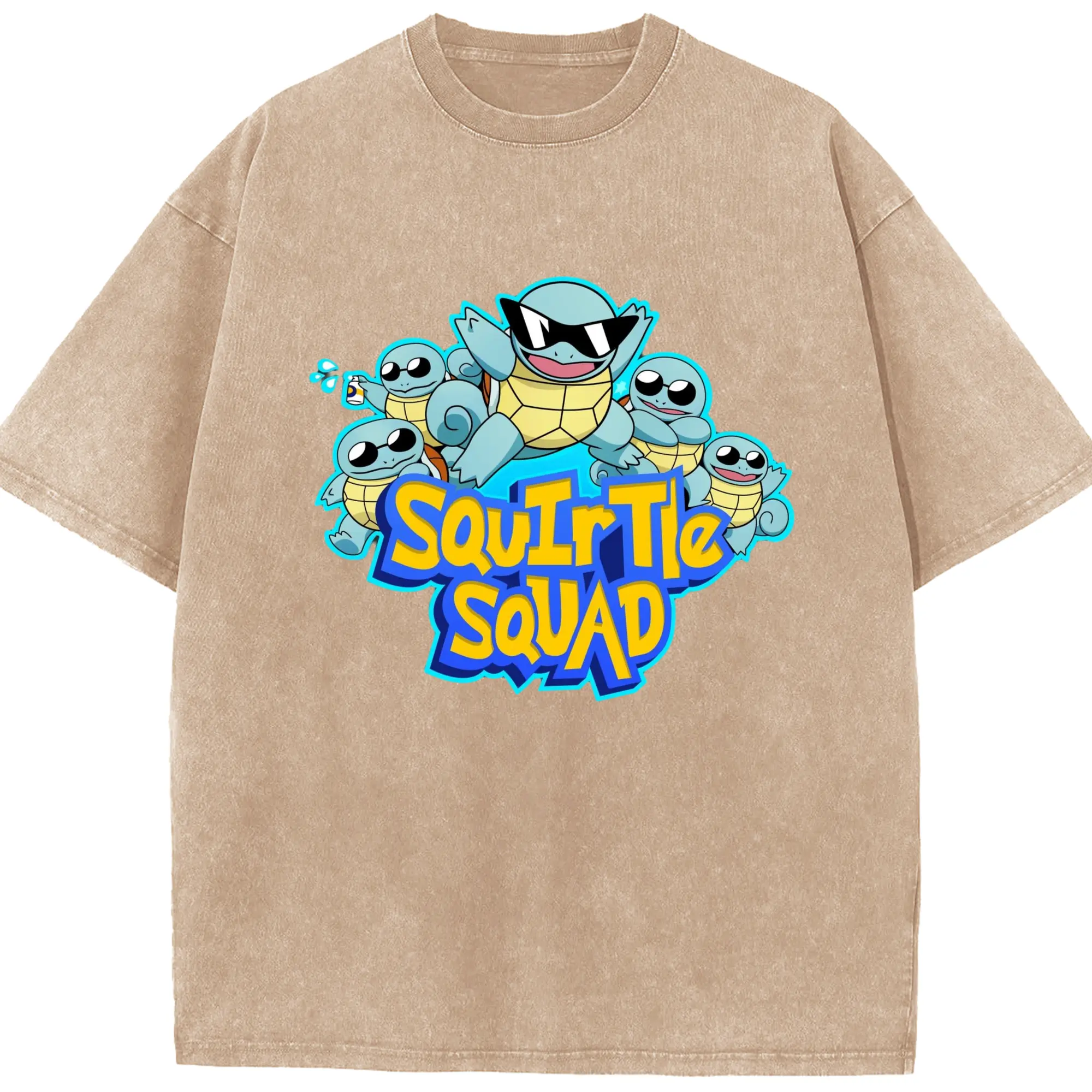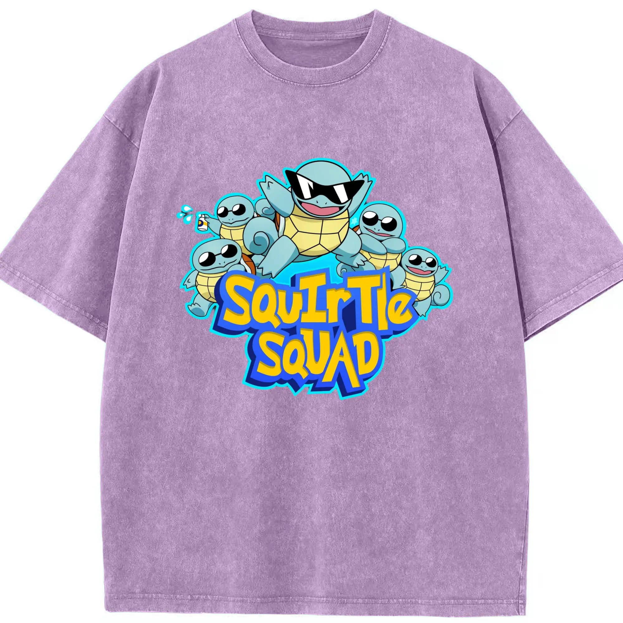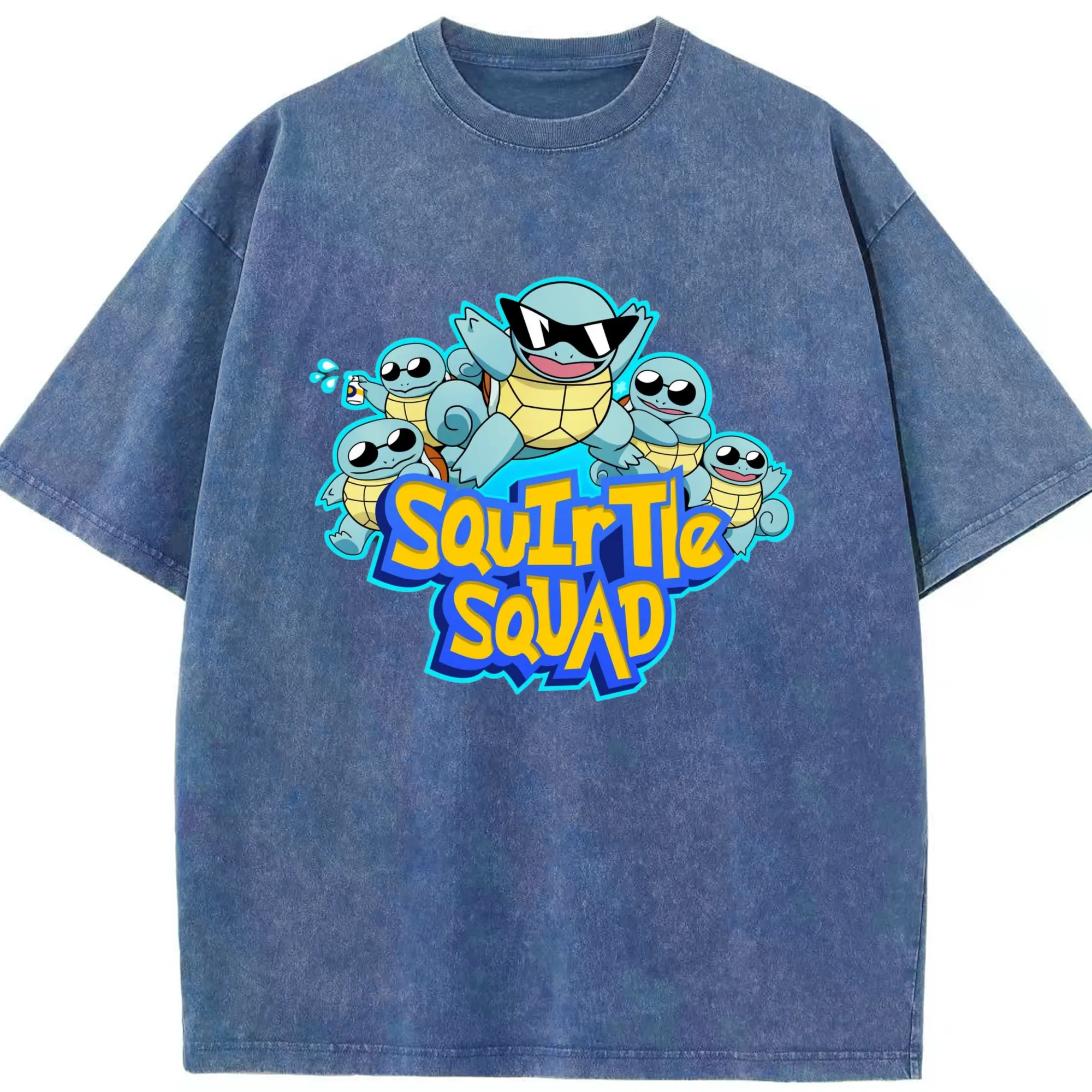 Pokemon squirtle squad shirt​ - Washed Vintage Look 230g Cotton Oversized T-Shirt With Front Heat Transfer Print – Soft, Lightweight, Stylish Fit – Comfortable Casual Wear For Sports & Everyday Use