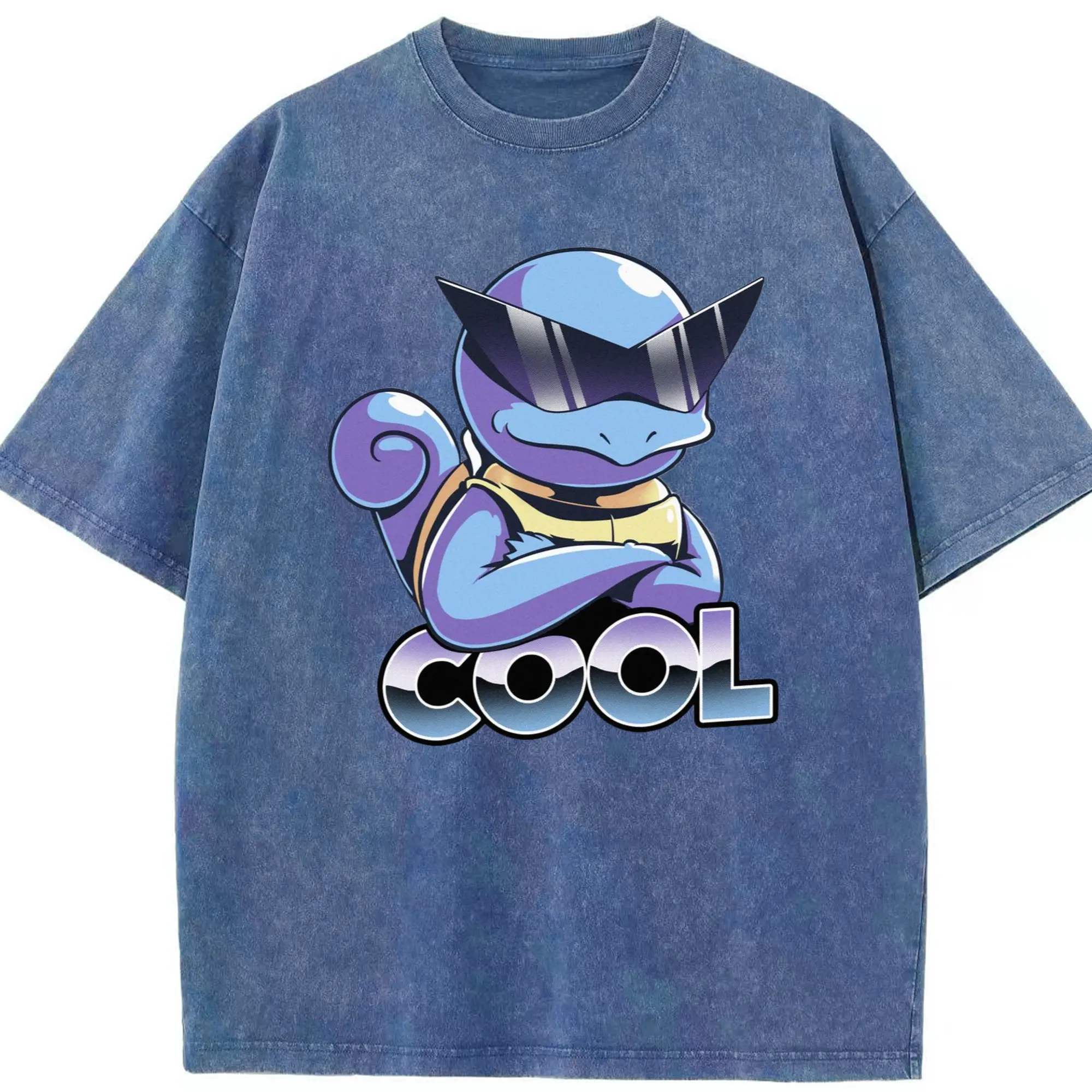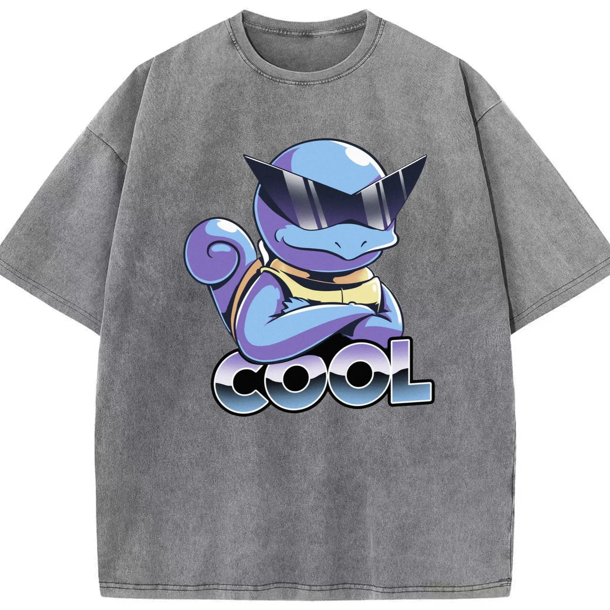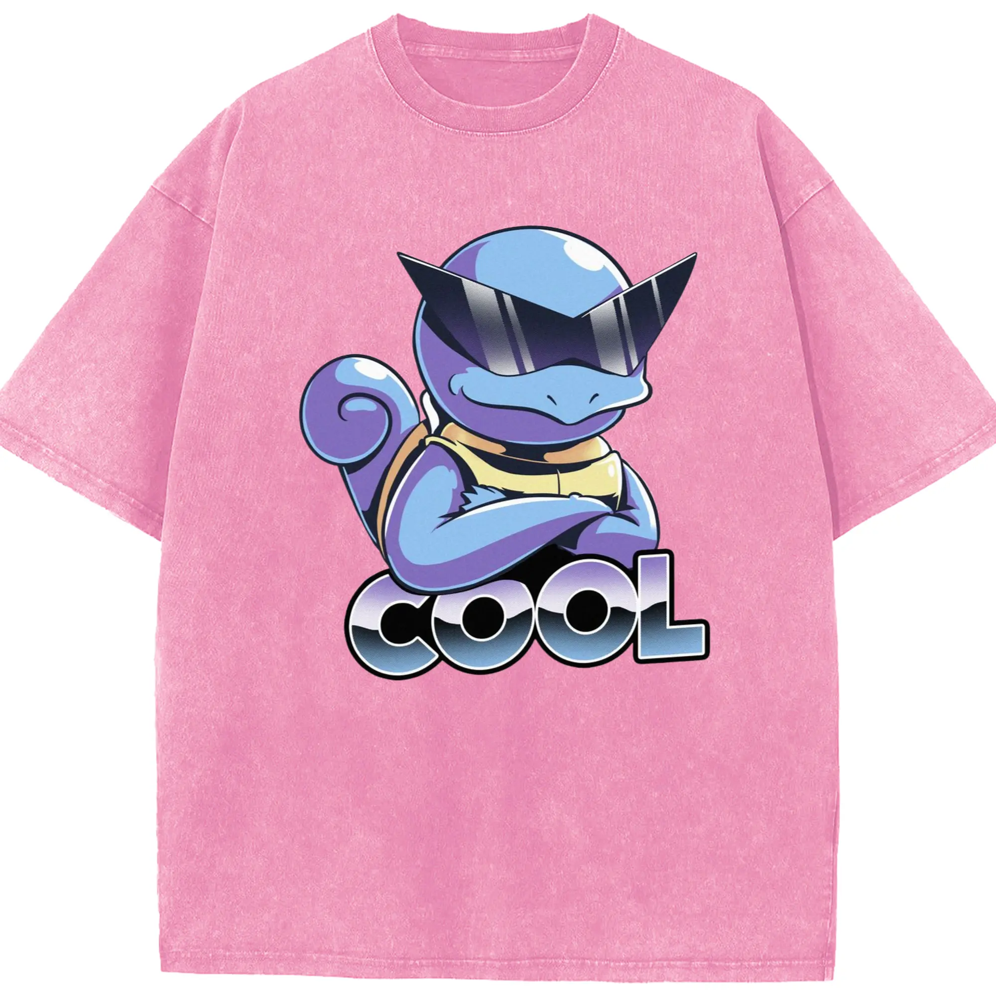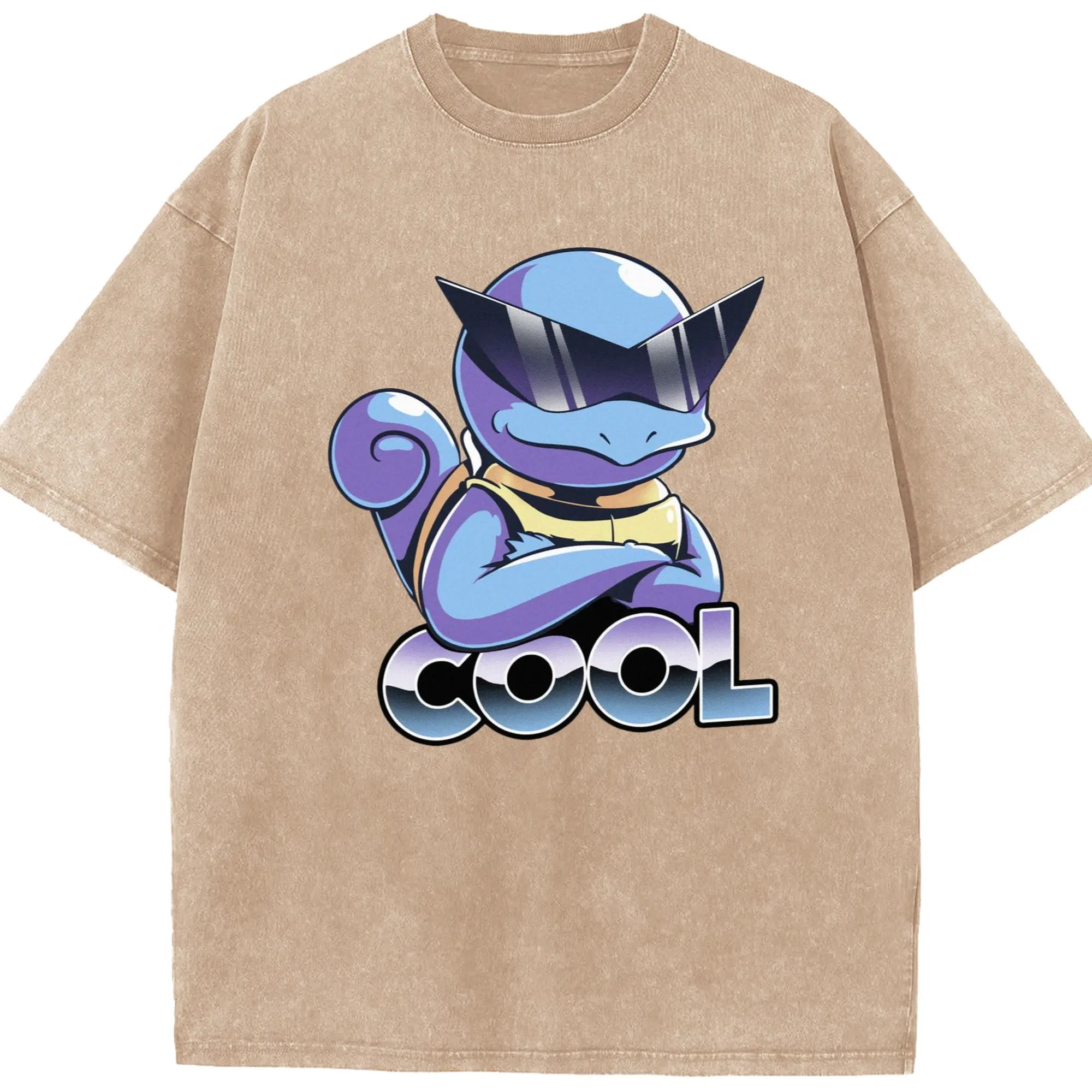 Pokemon squirtle t shirt​ - Washed Vintage Look 230g Cotton Oversized T-Shirt With Front Heat Transfer Print – Soft, Lightweight, Stylish Fit – Comfortable Casual Wear For Sports & Everyday Use